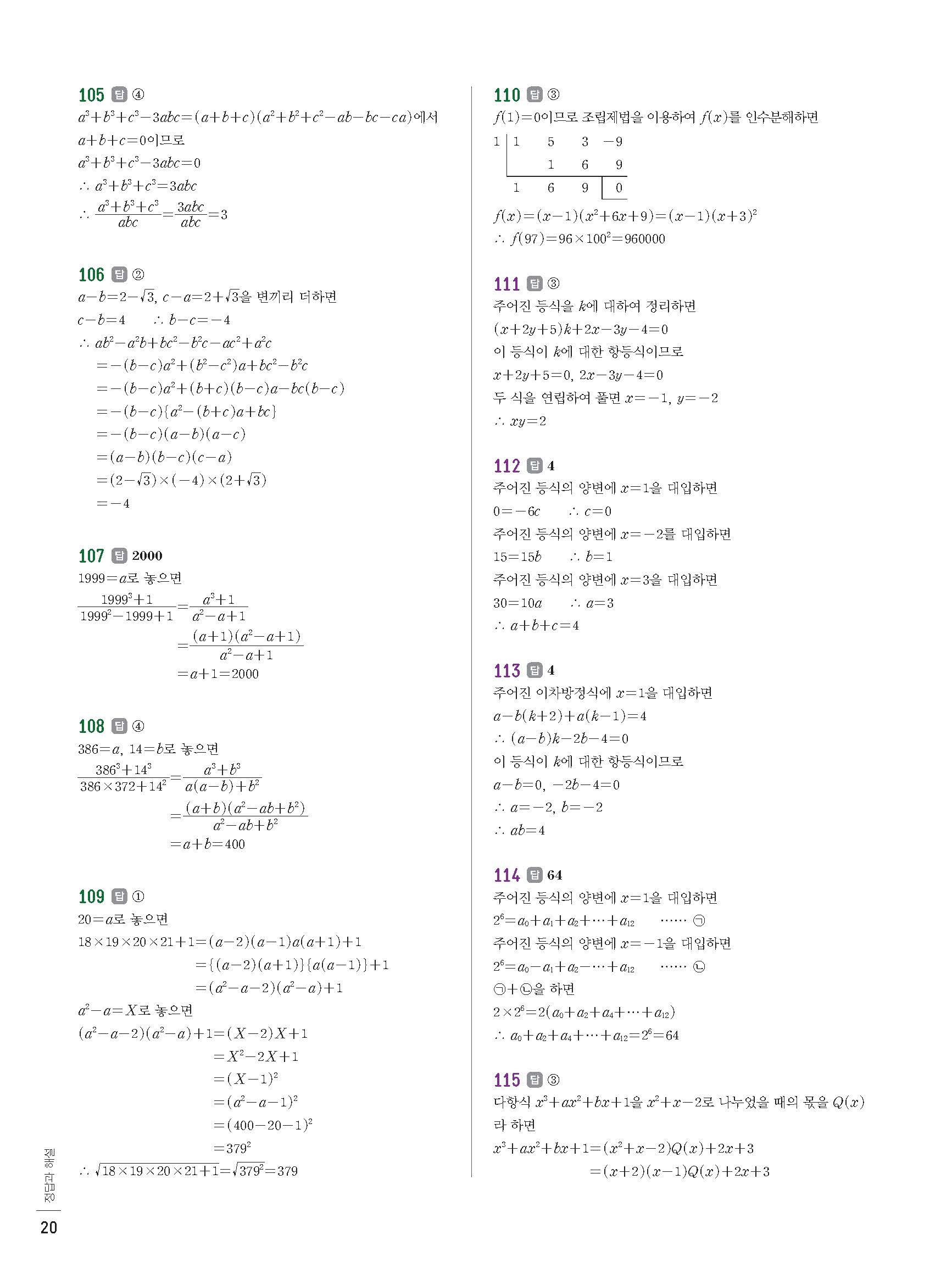 | 베이직쎈 고등수학하 | https://mathuncle.tistory.com/383 |