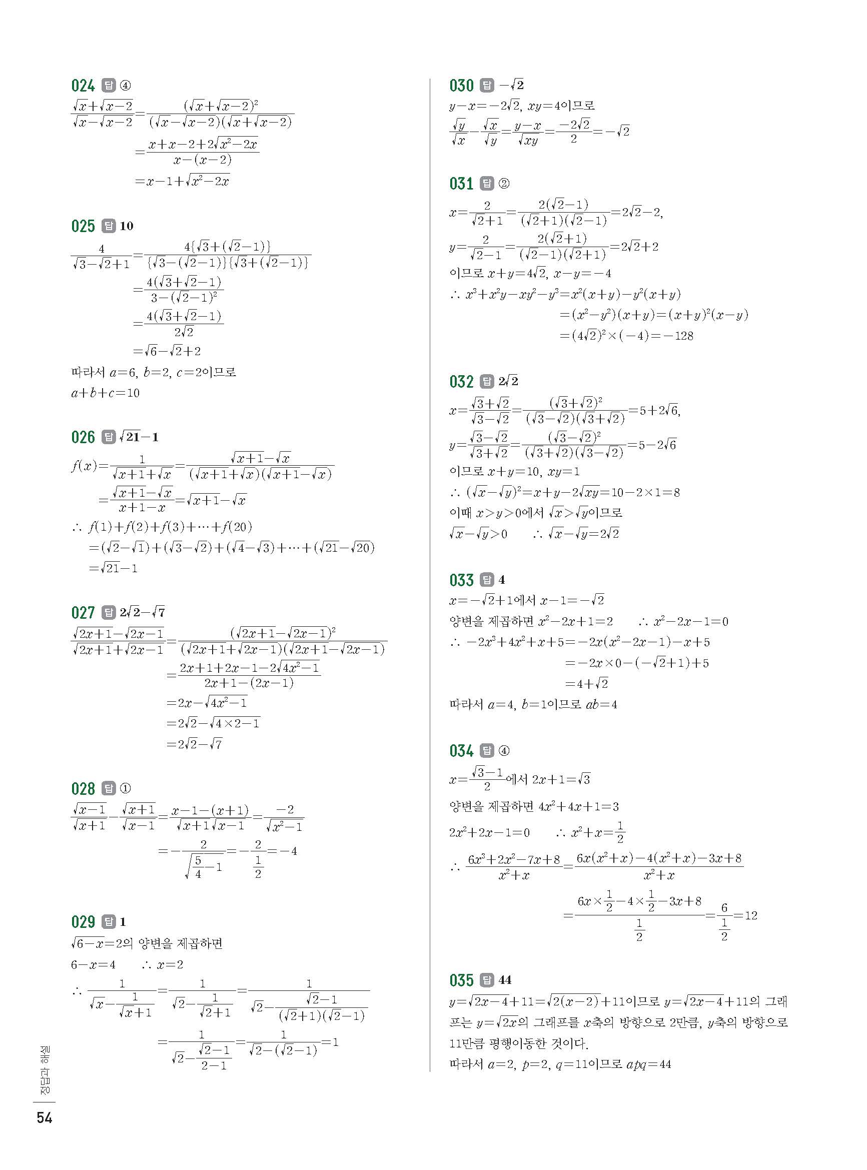 | 개념쎈라이트 고등수학하 | https://mathuncle.tistory.com/1112 |