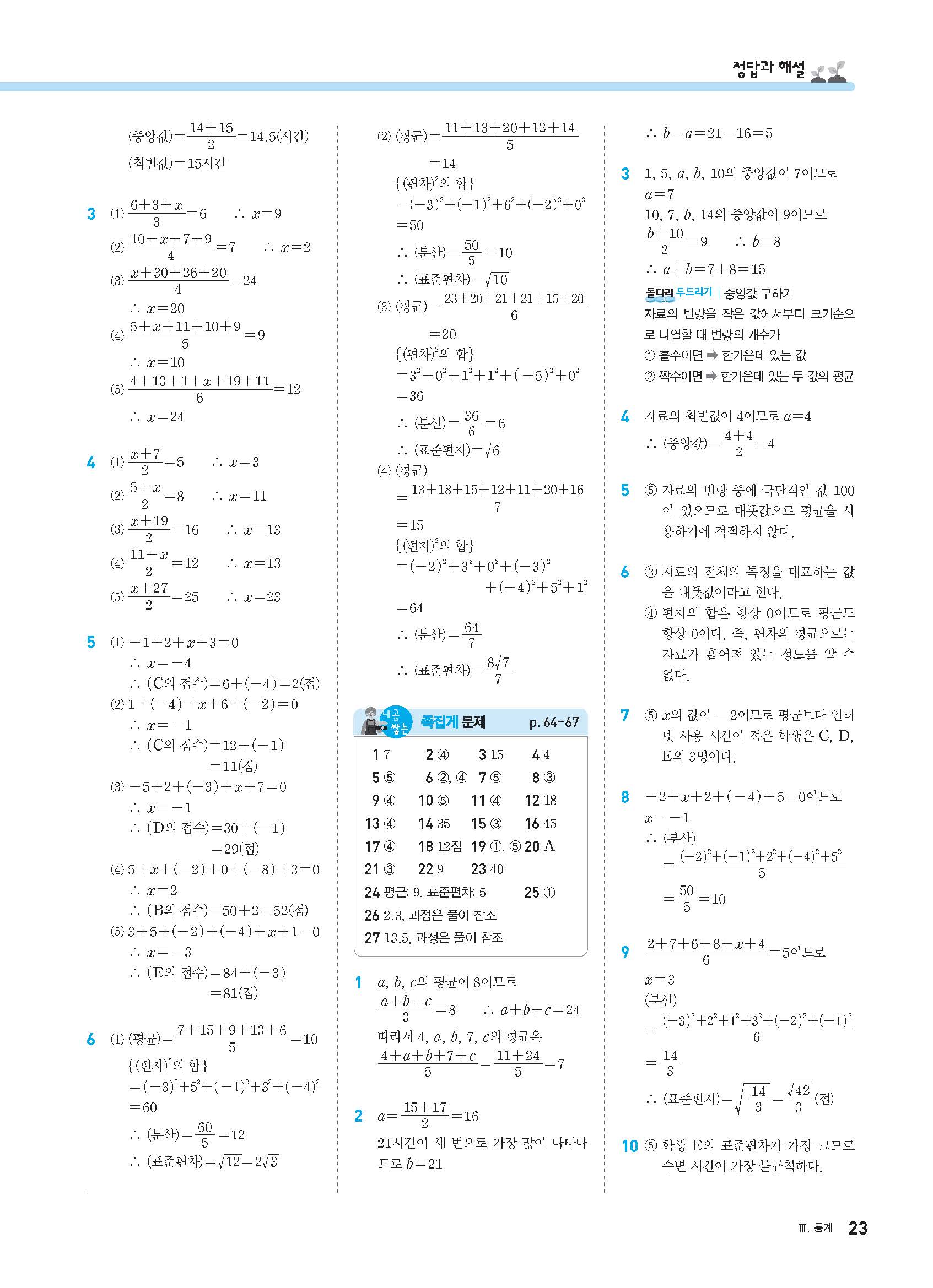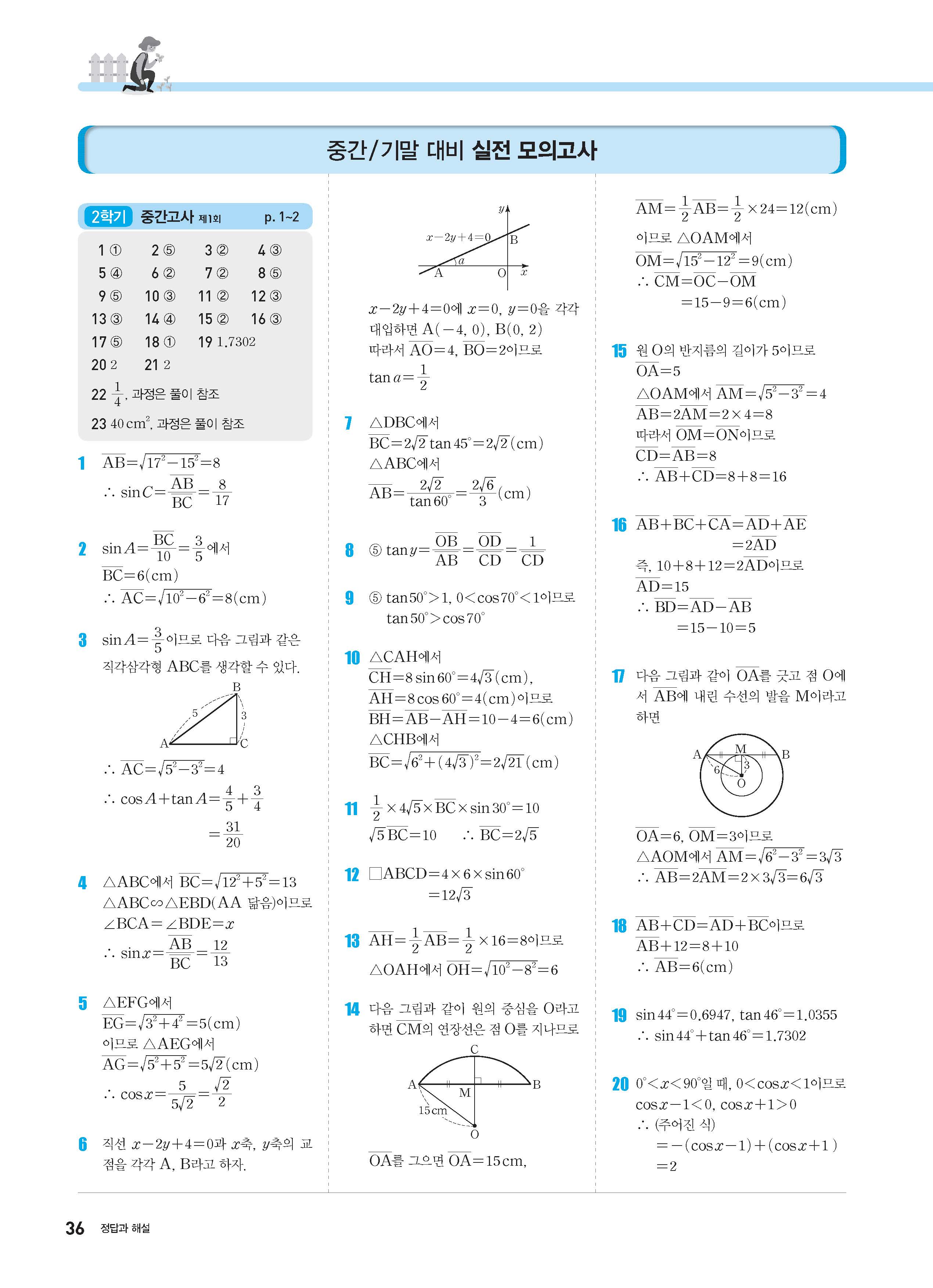 | 천재교육 류희찬 중3 수학교과서 답지 | |