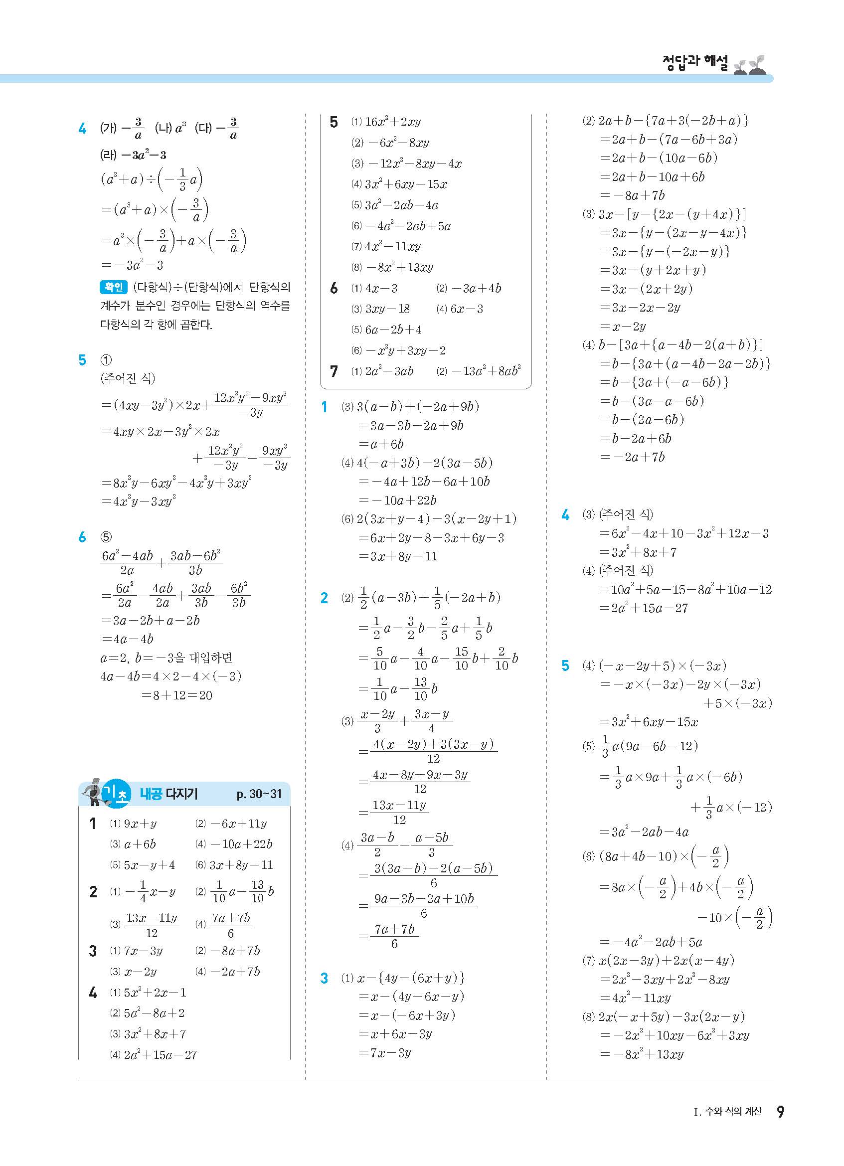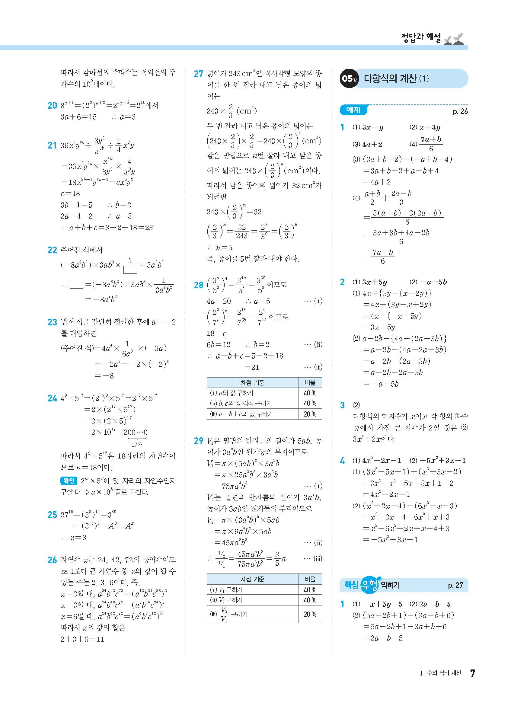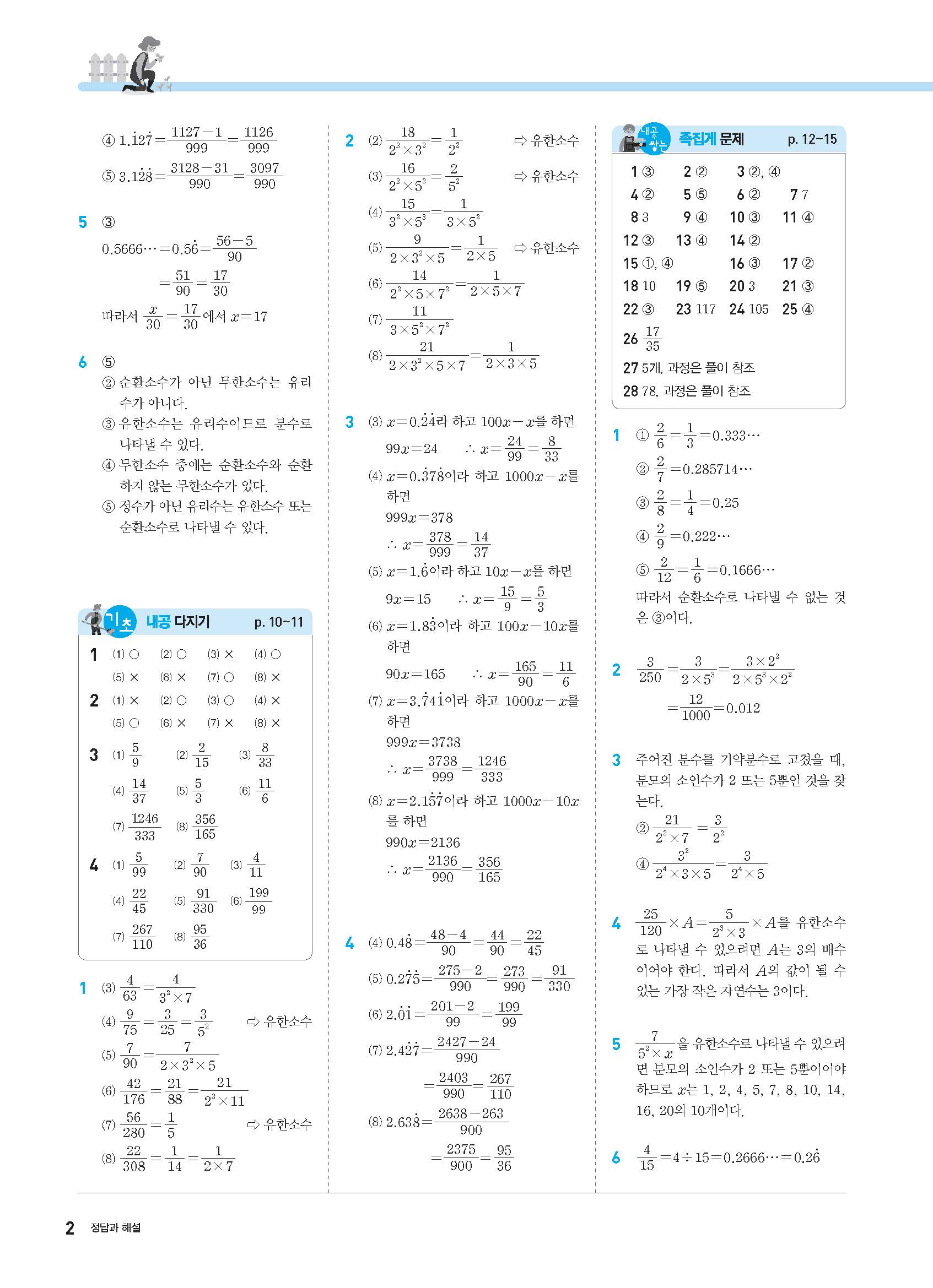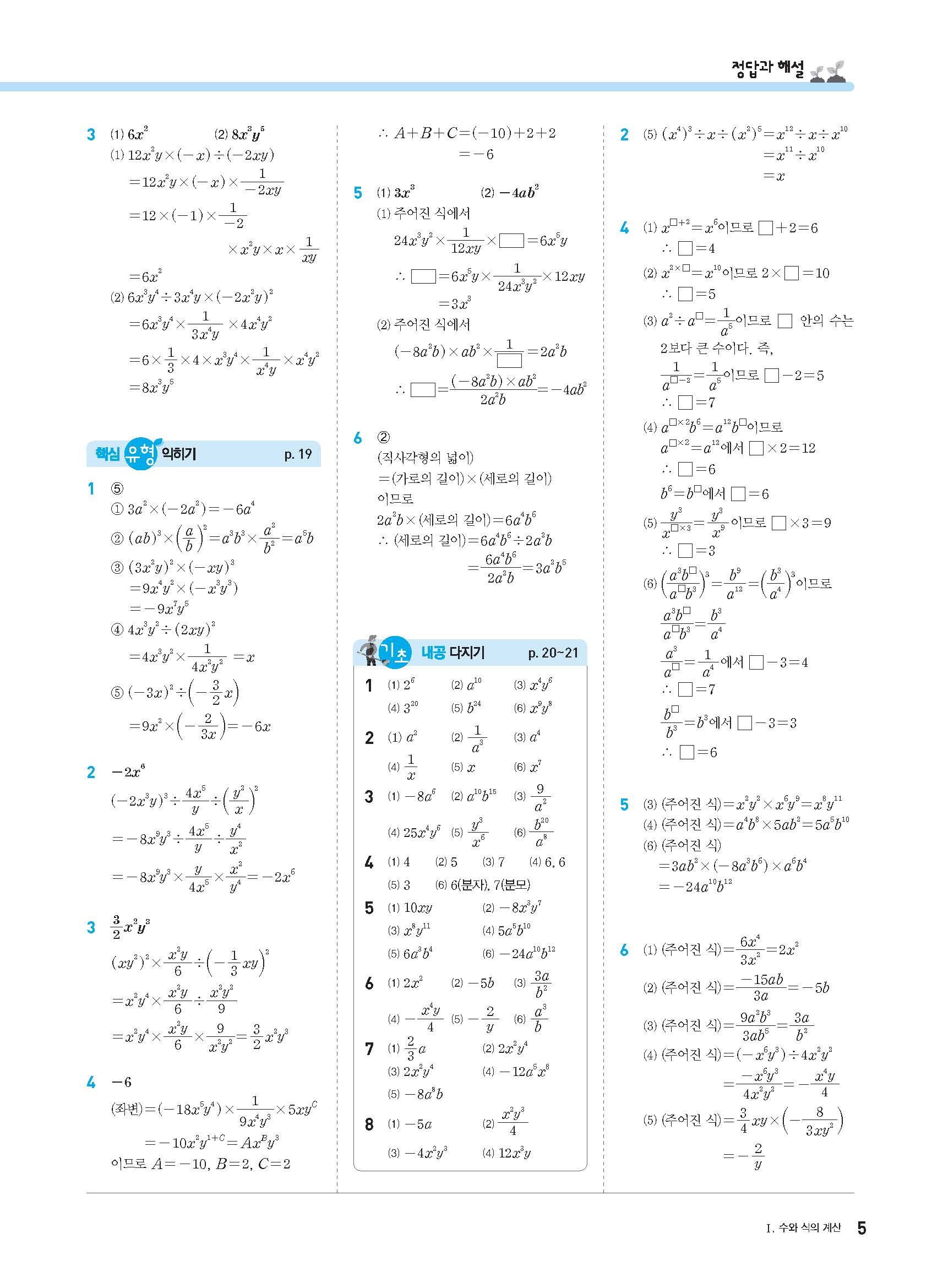 내공의힘 중등수학 중2상 2-1 사진답지 빠른답지 모바일최적화