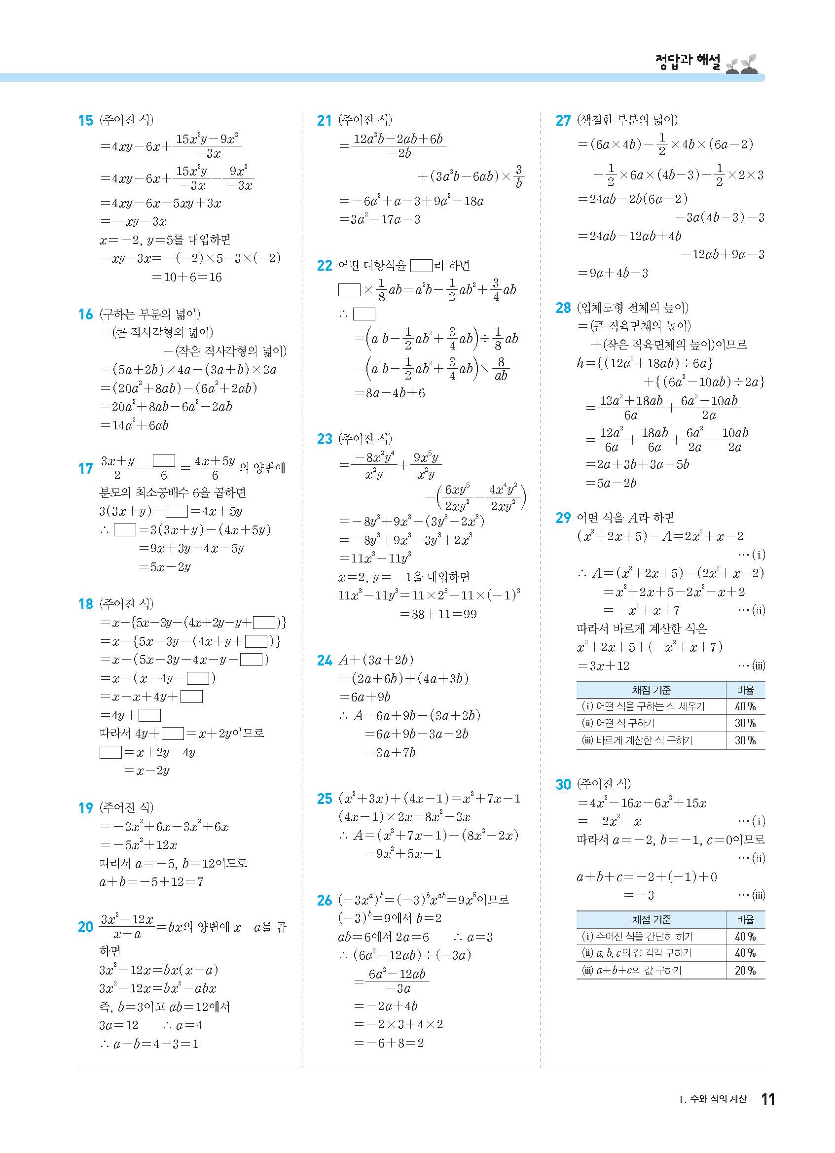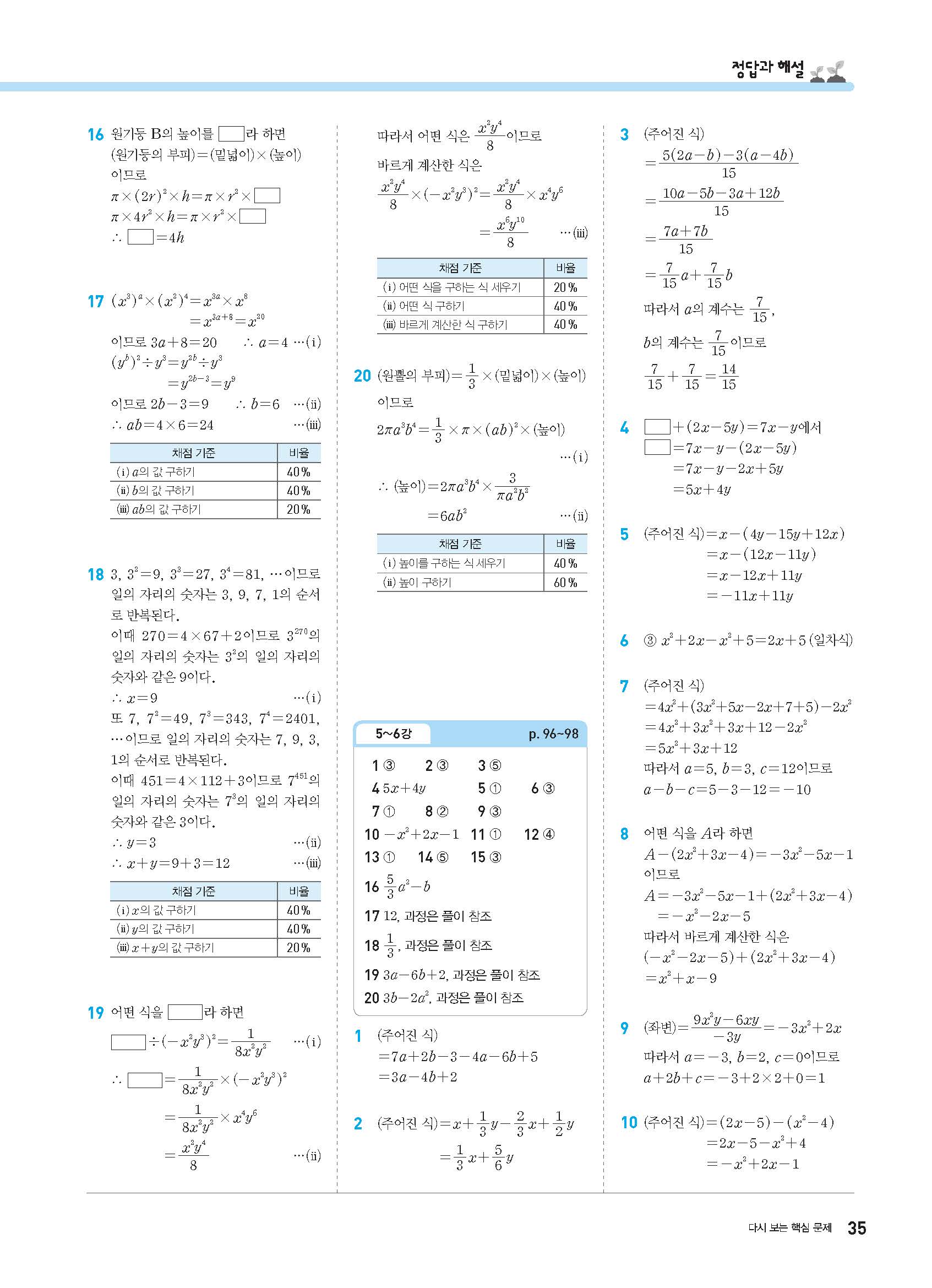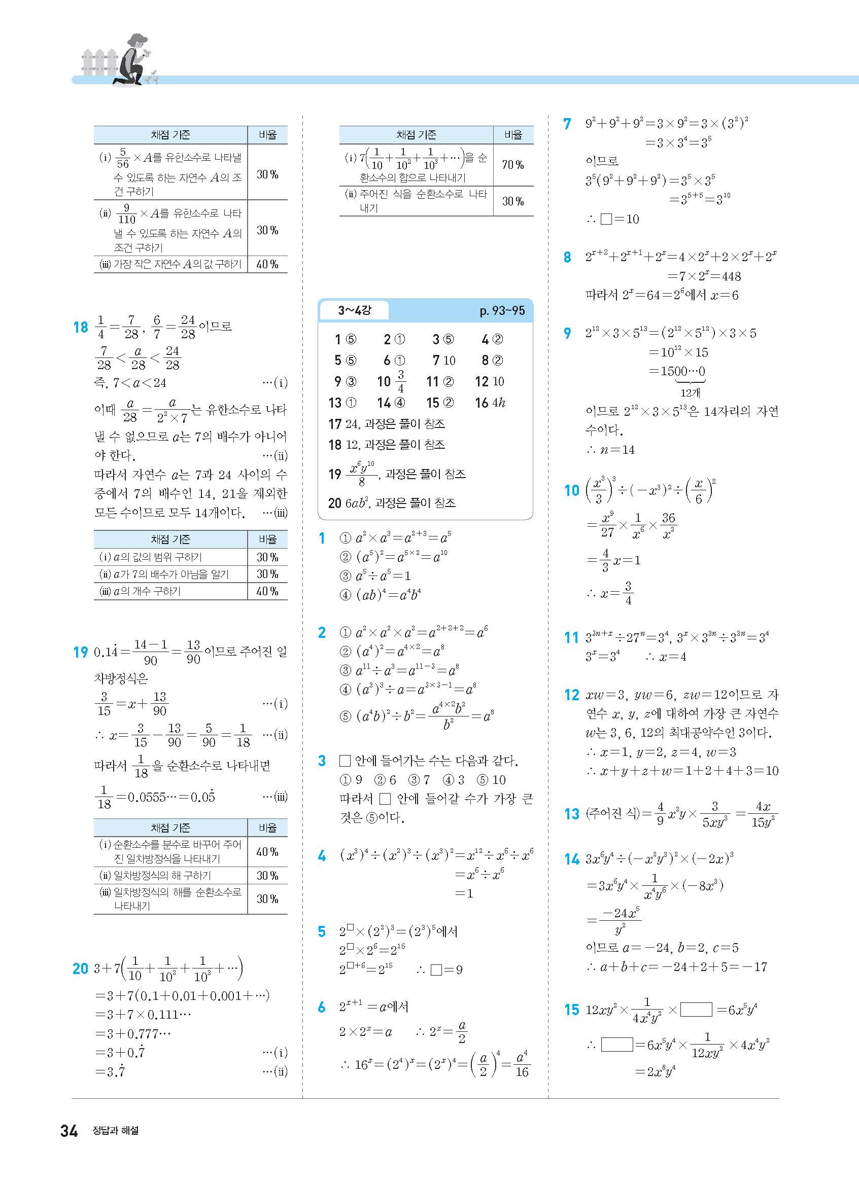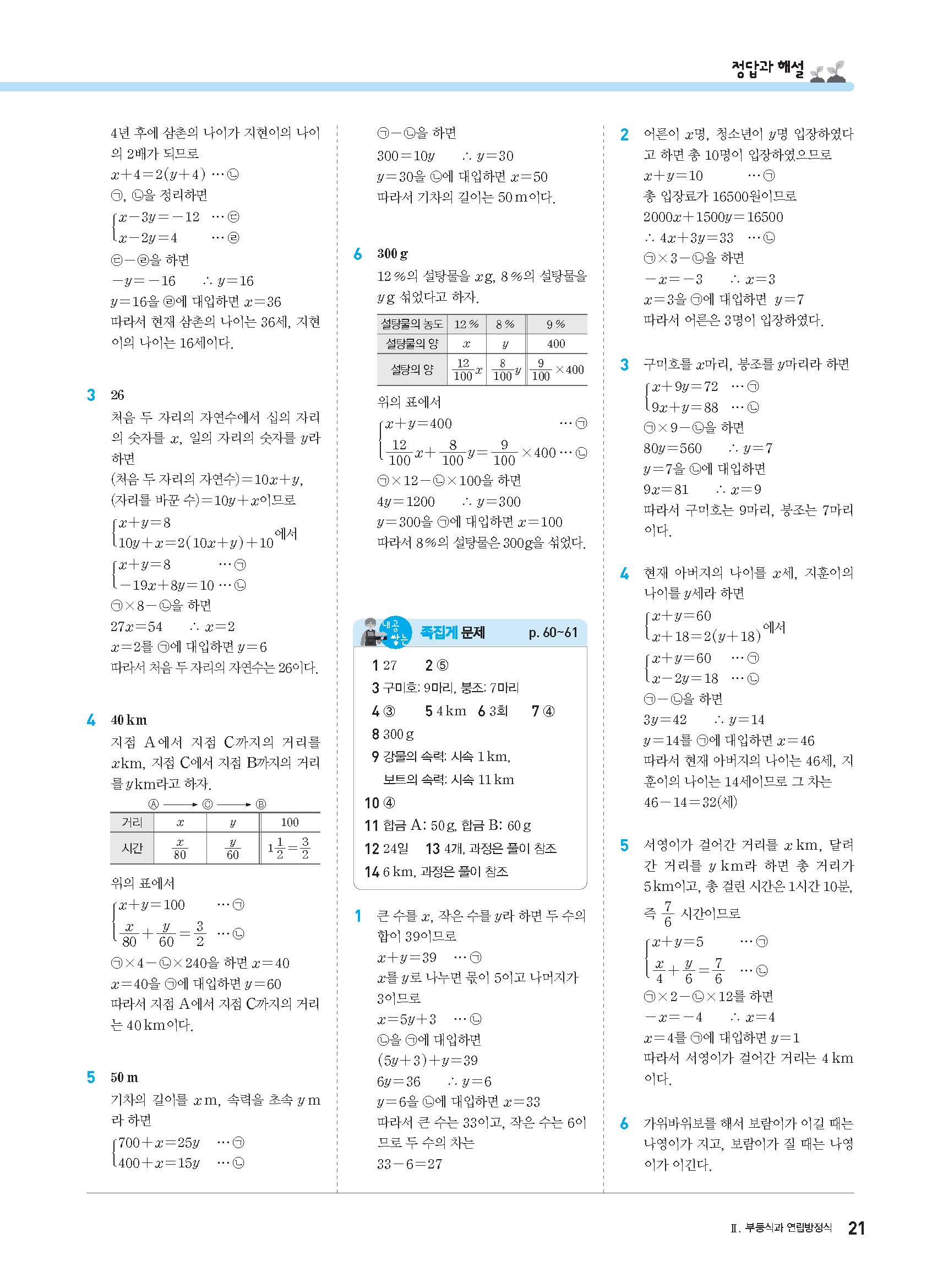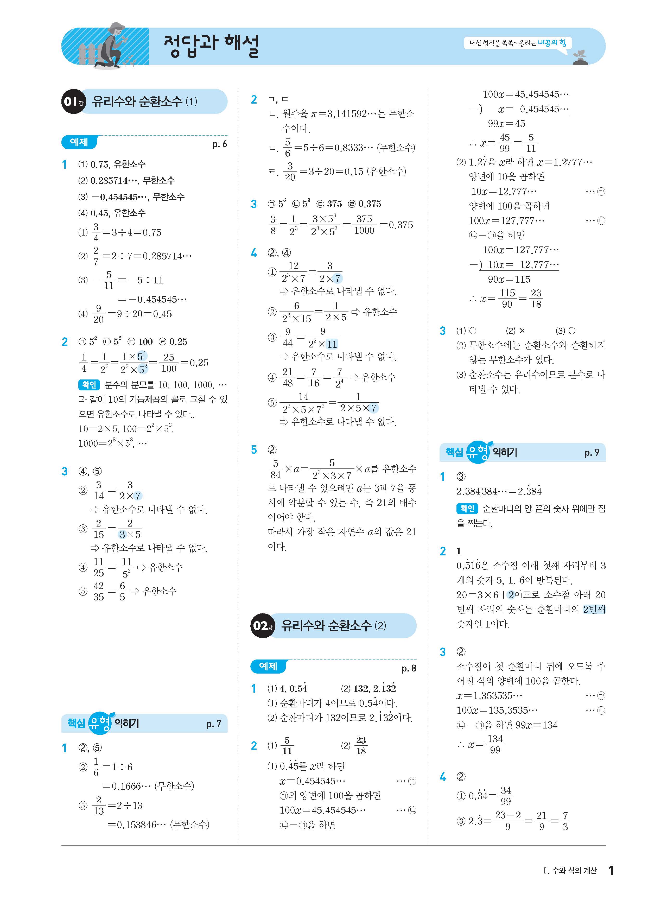 내공의힘 중등수학 중2상 2-1 사진답지 빠른답지 모바일최적화