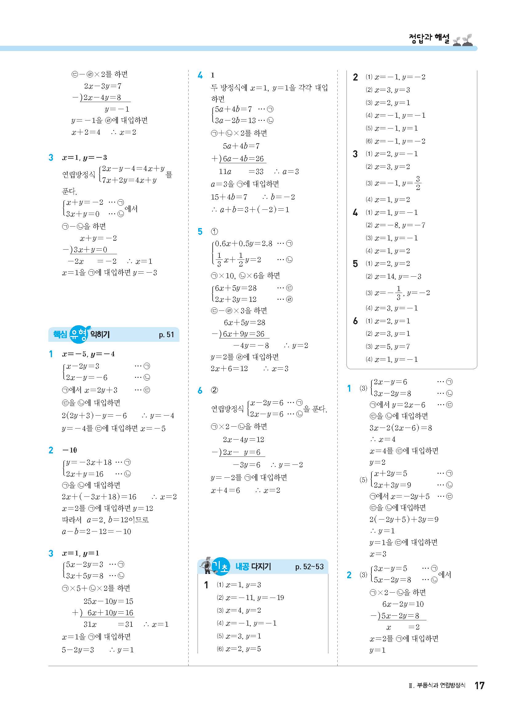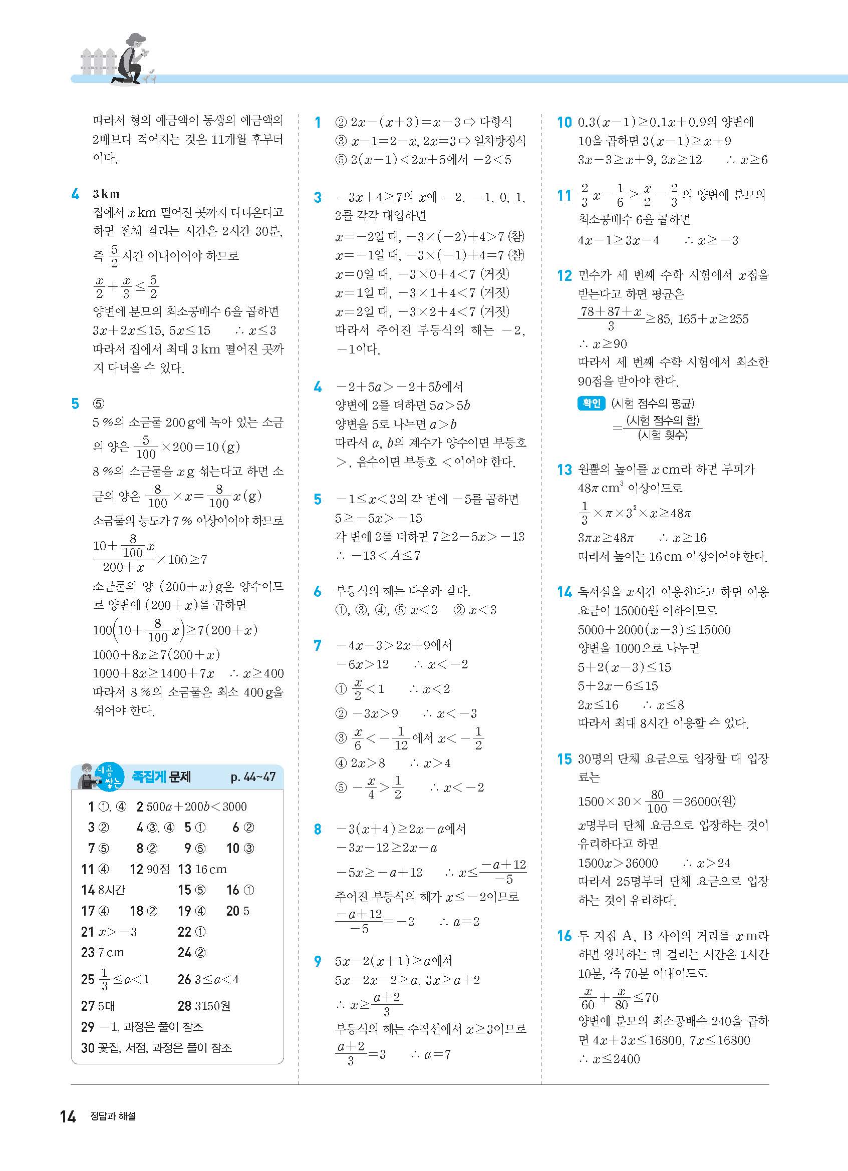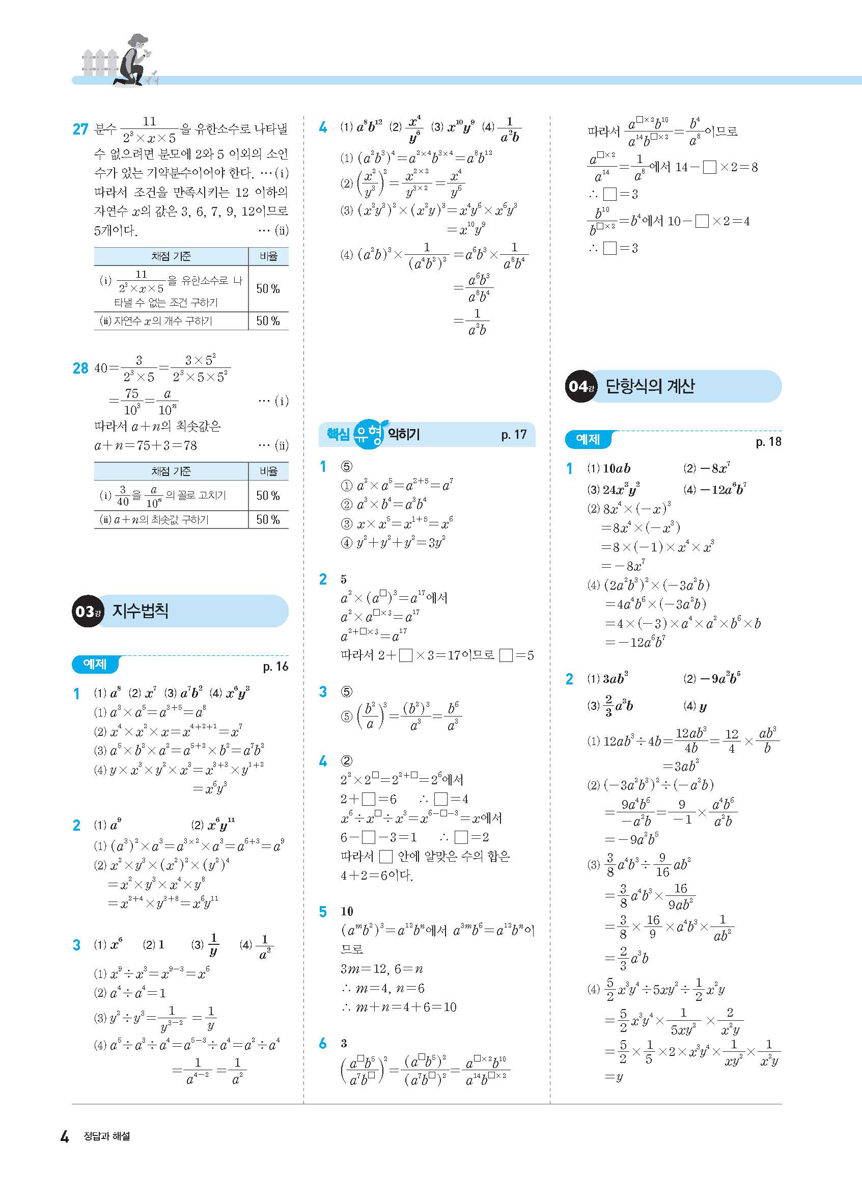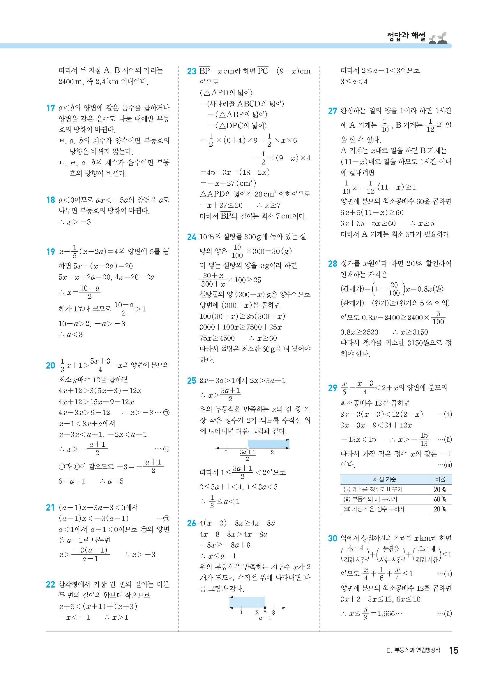 내공의힘 중등수학 중2상 2-1 사진답지 빠른답지 모바일최적화