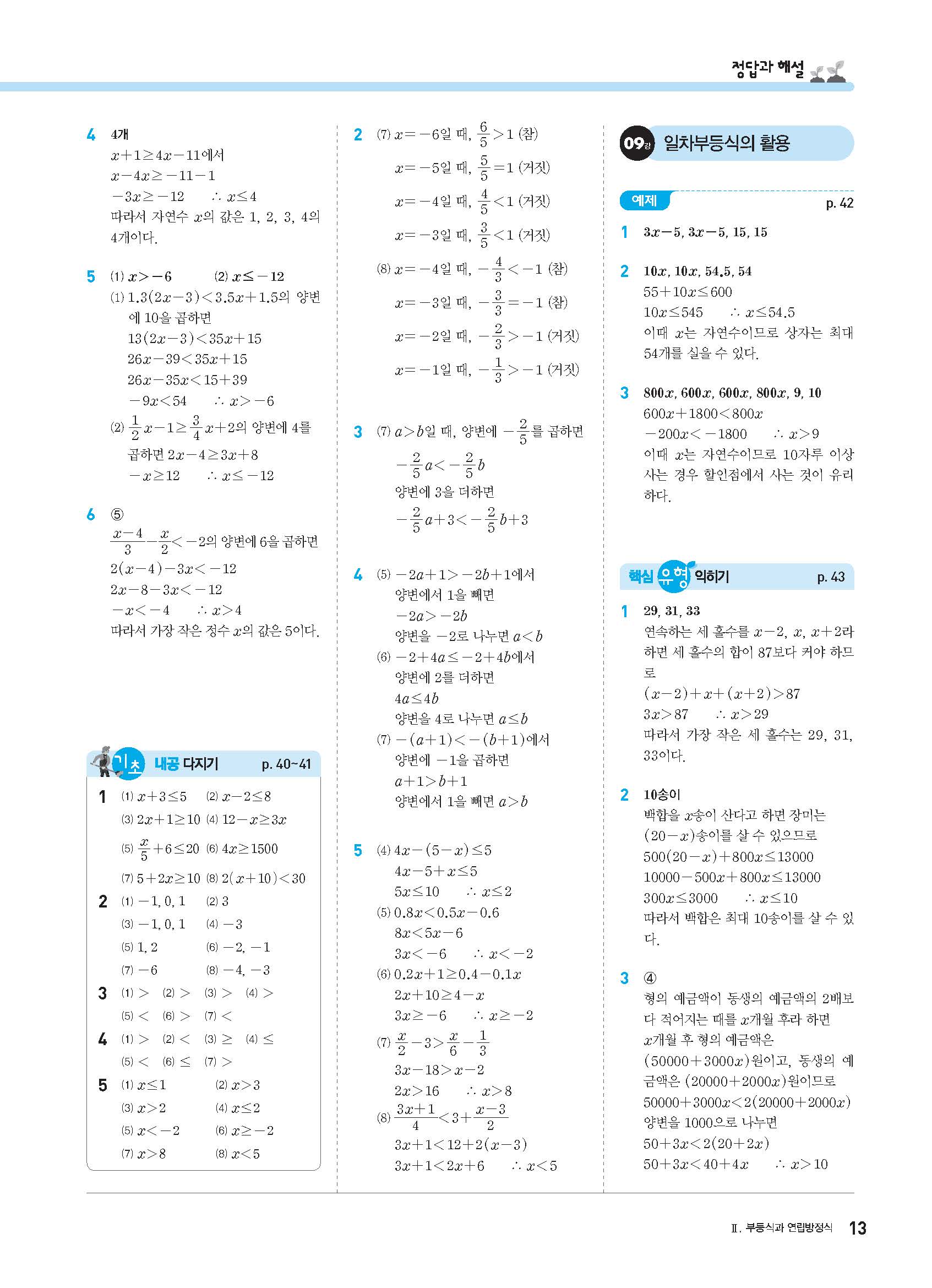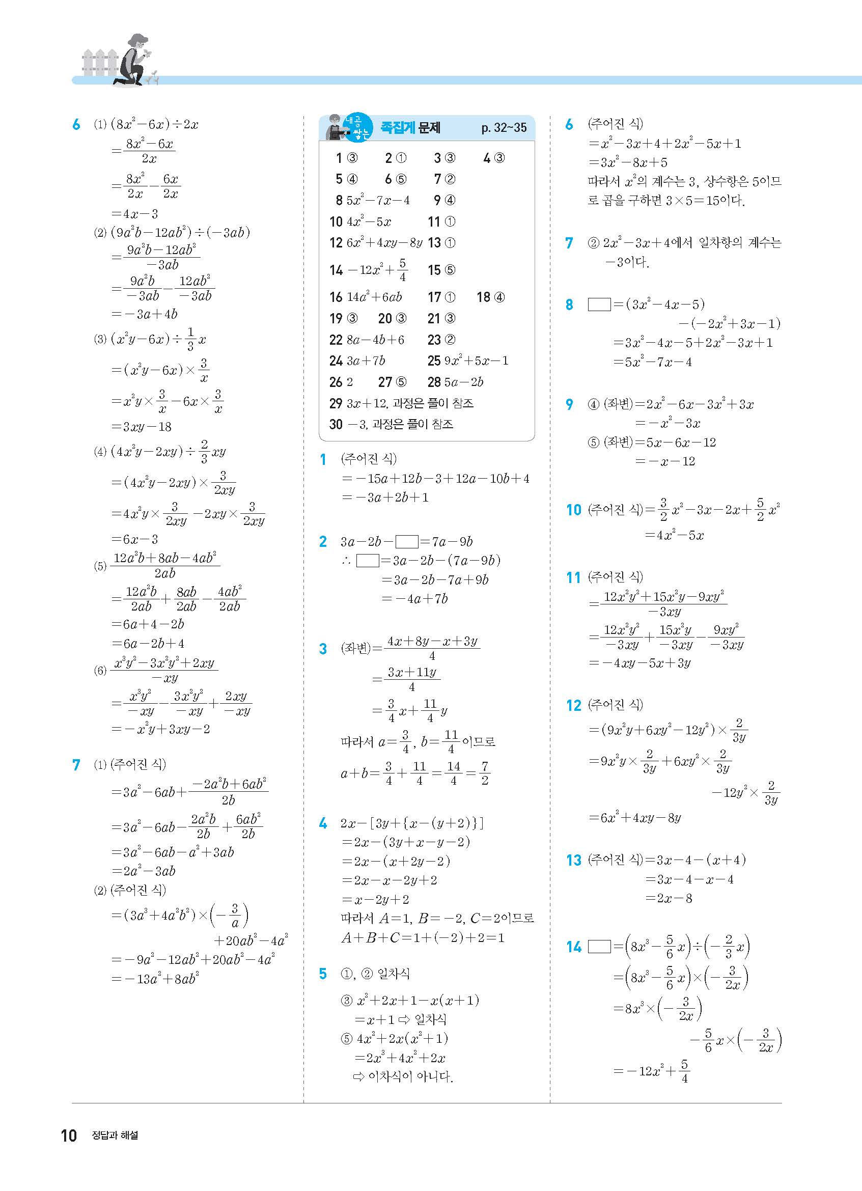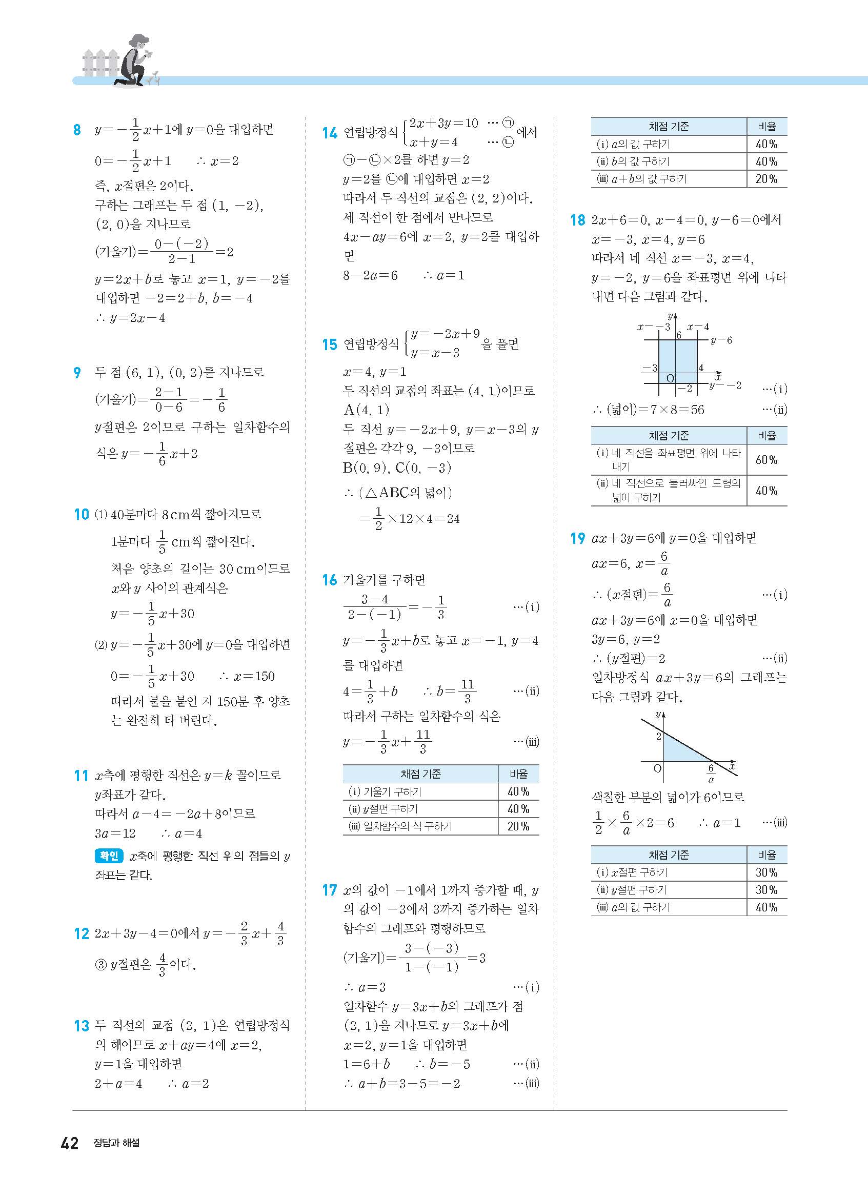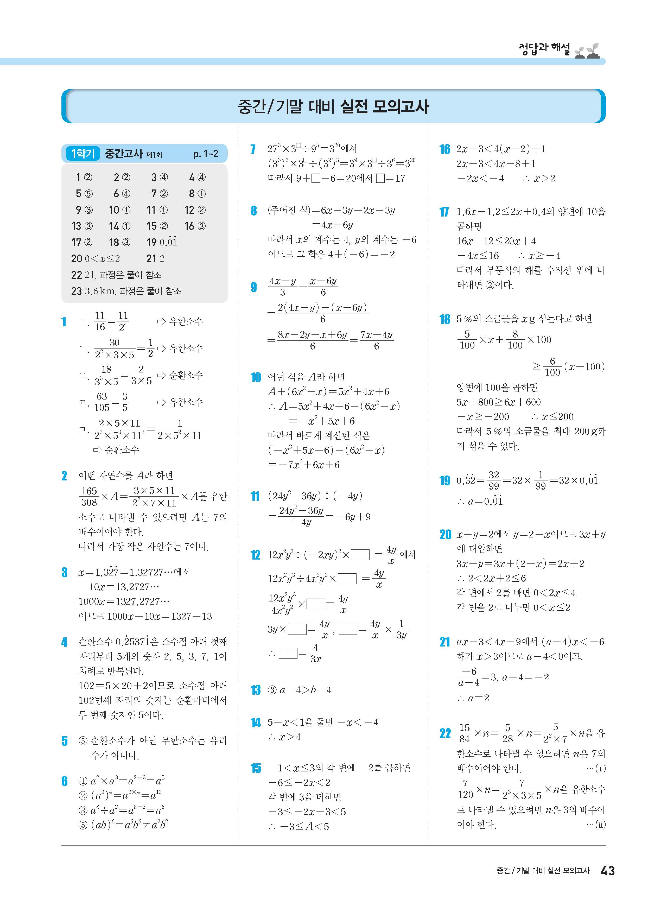| 천재교육 이준열 중2 수학교과서 답지 | |