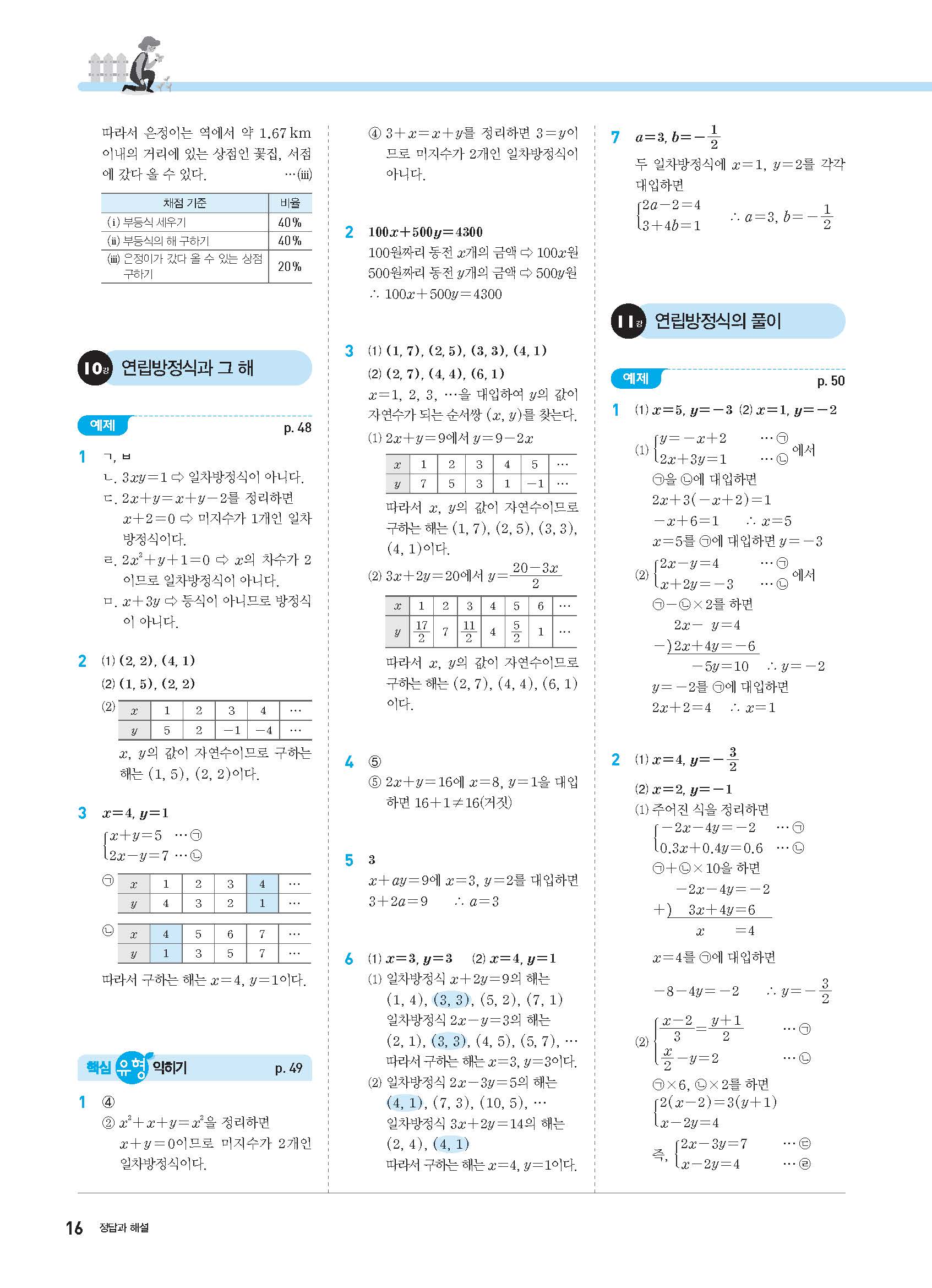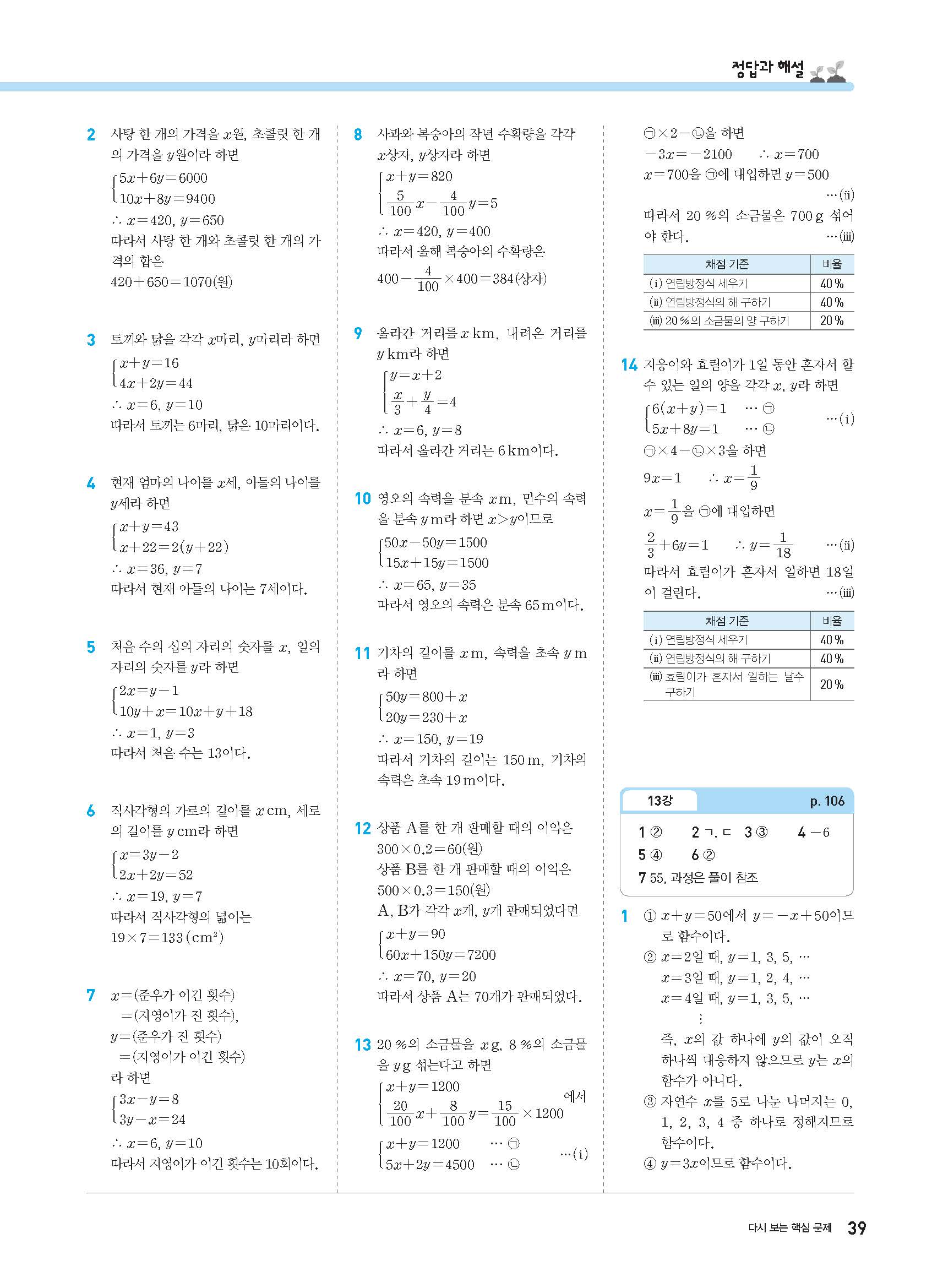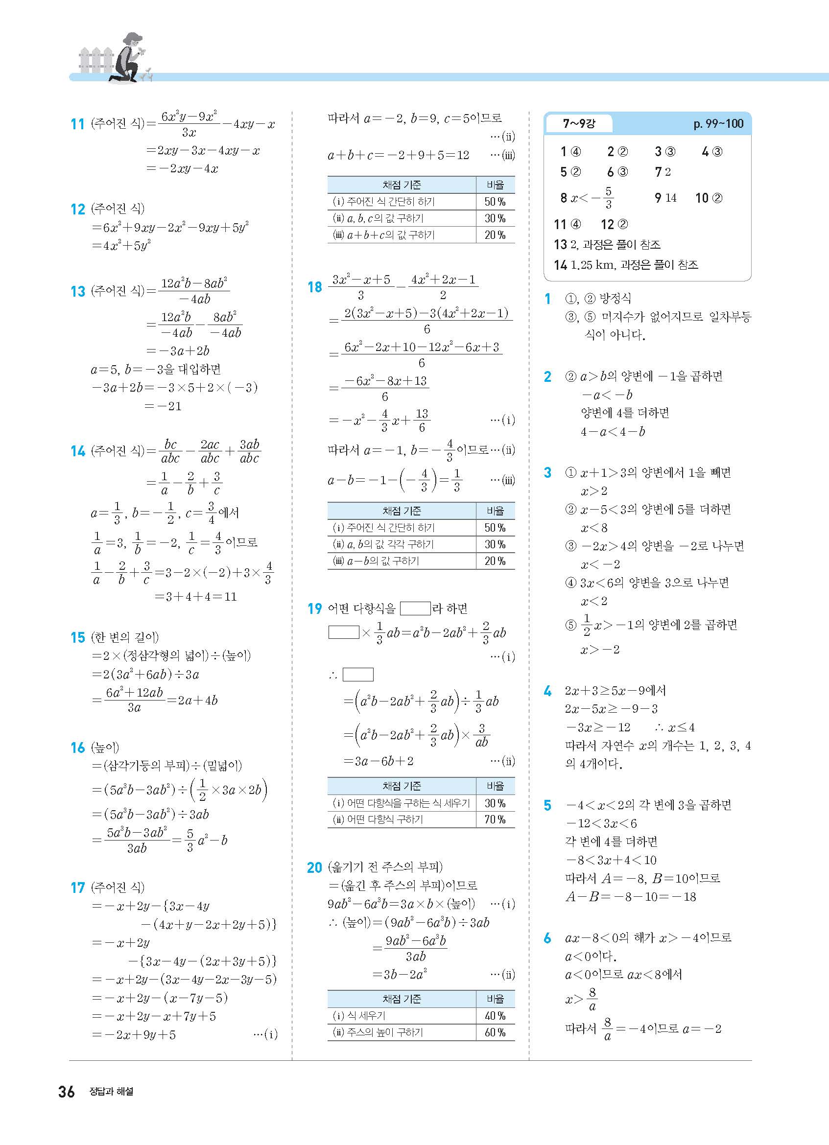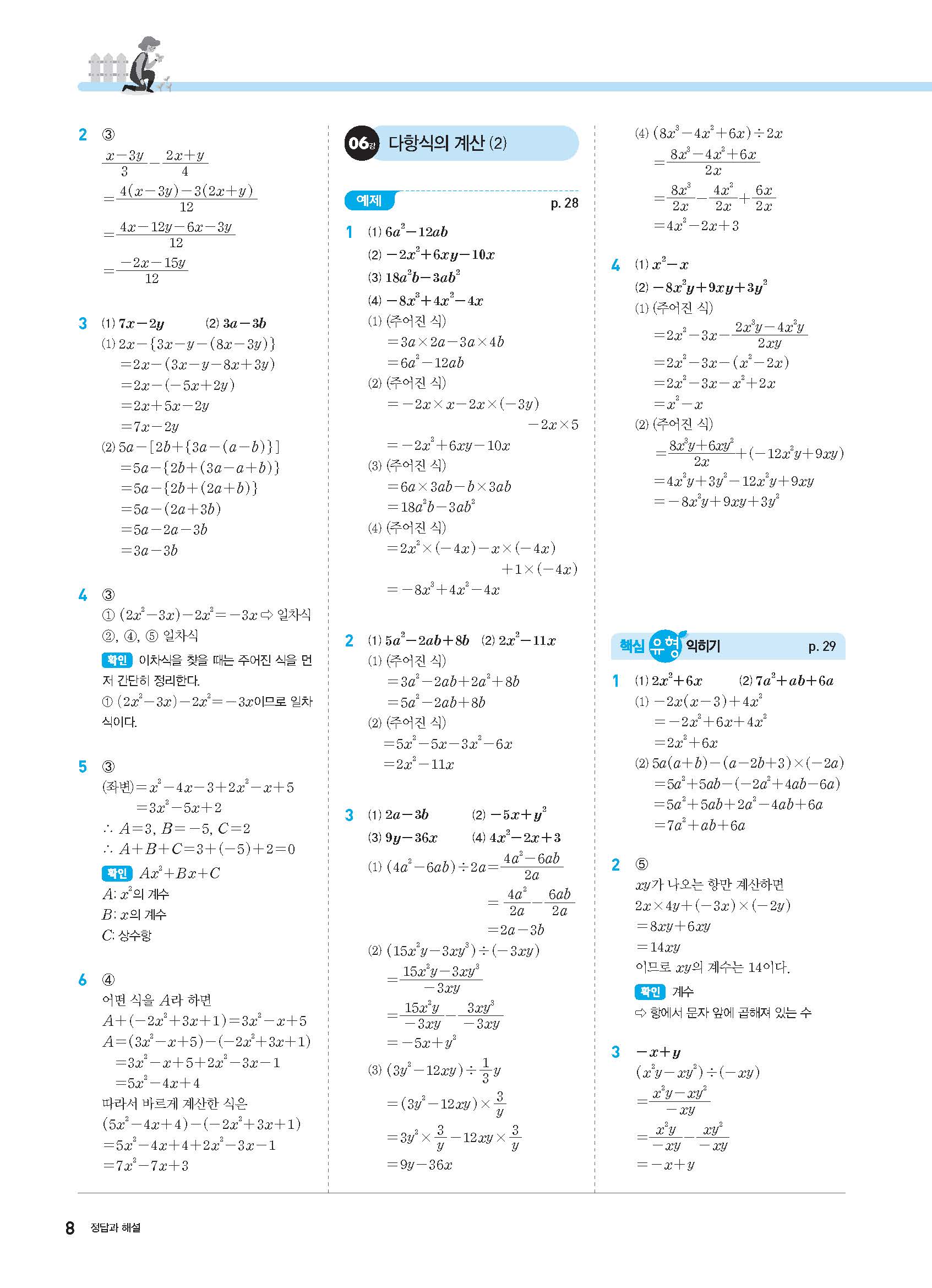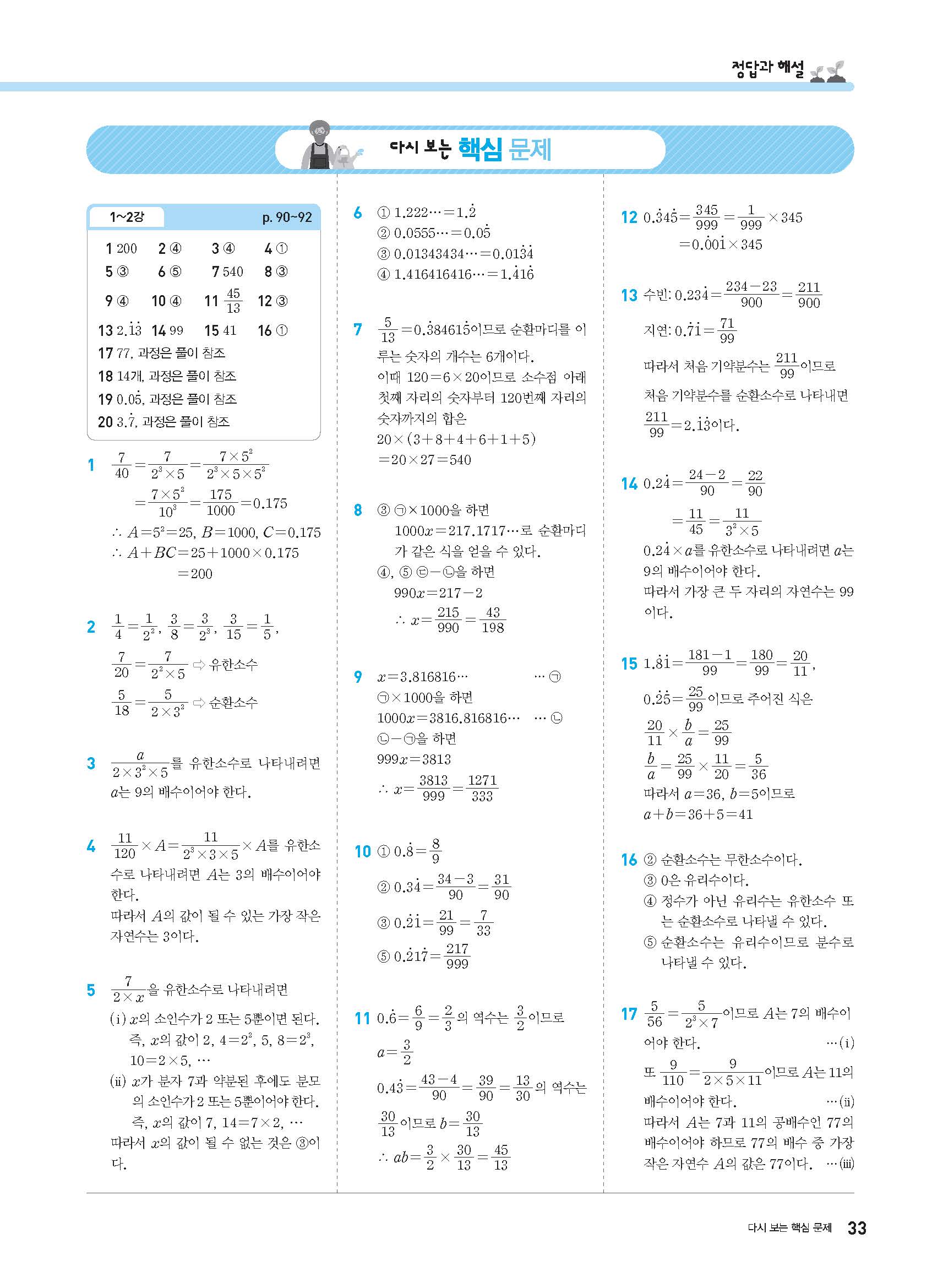 | 천재교육 이준열 중2 수학교과서 답지 | |