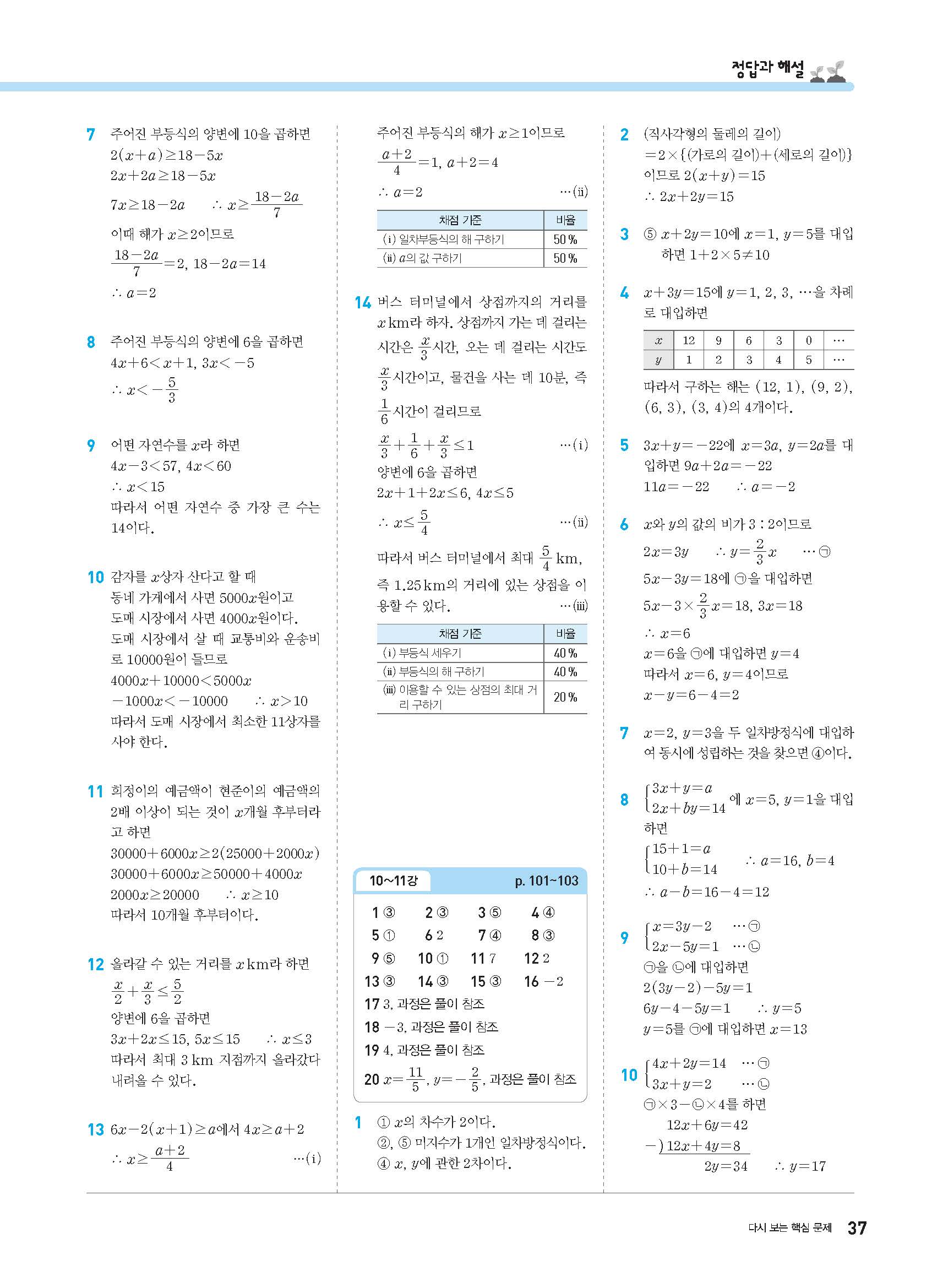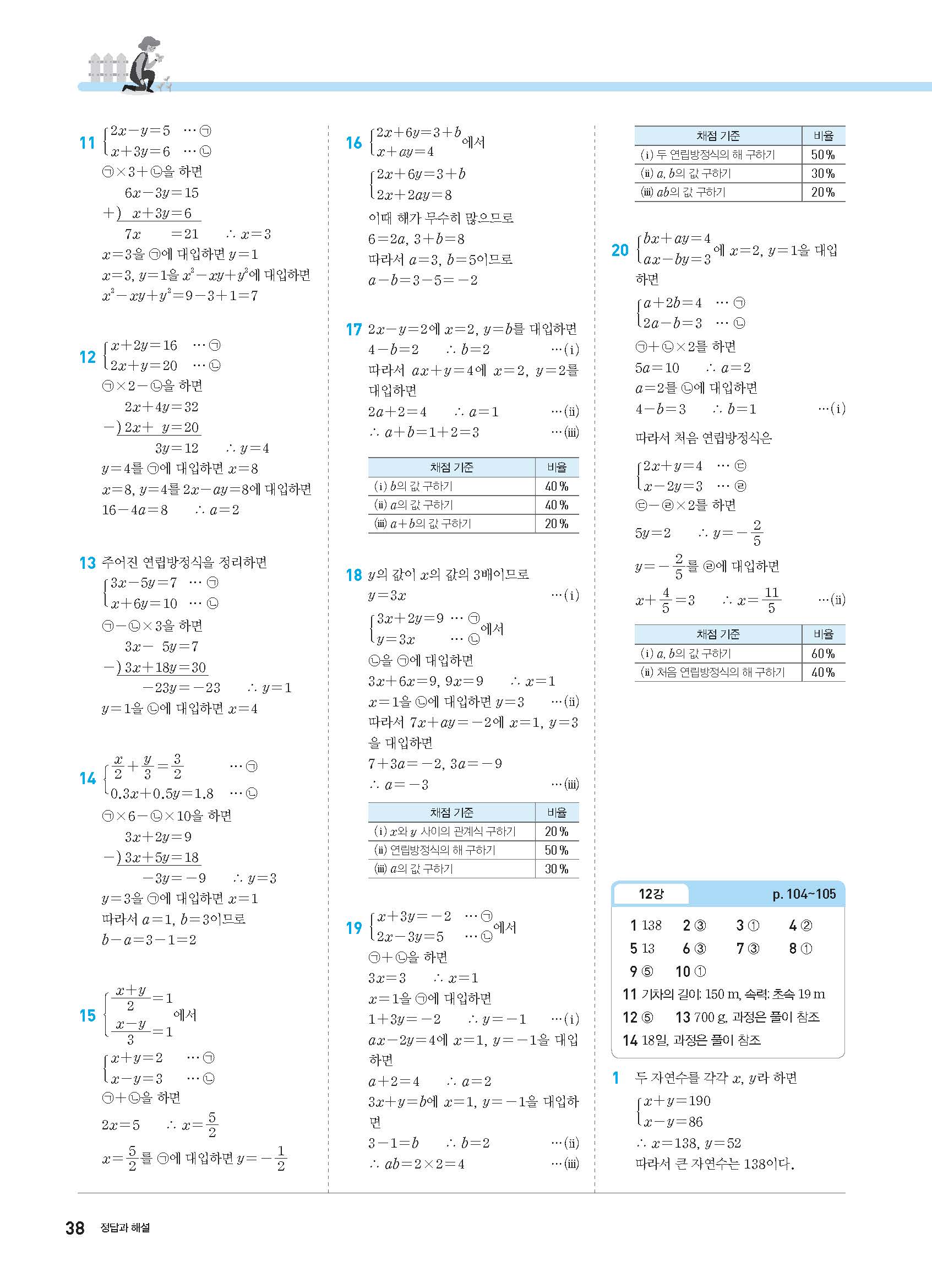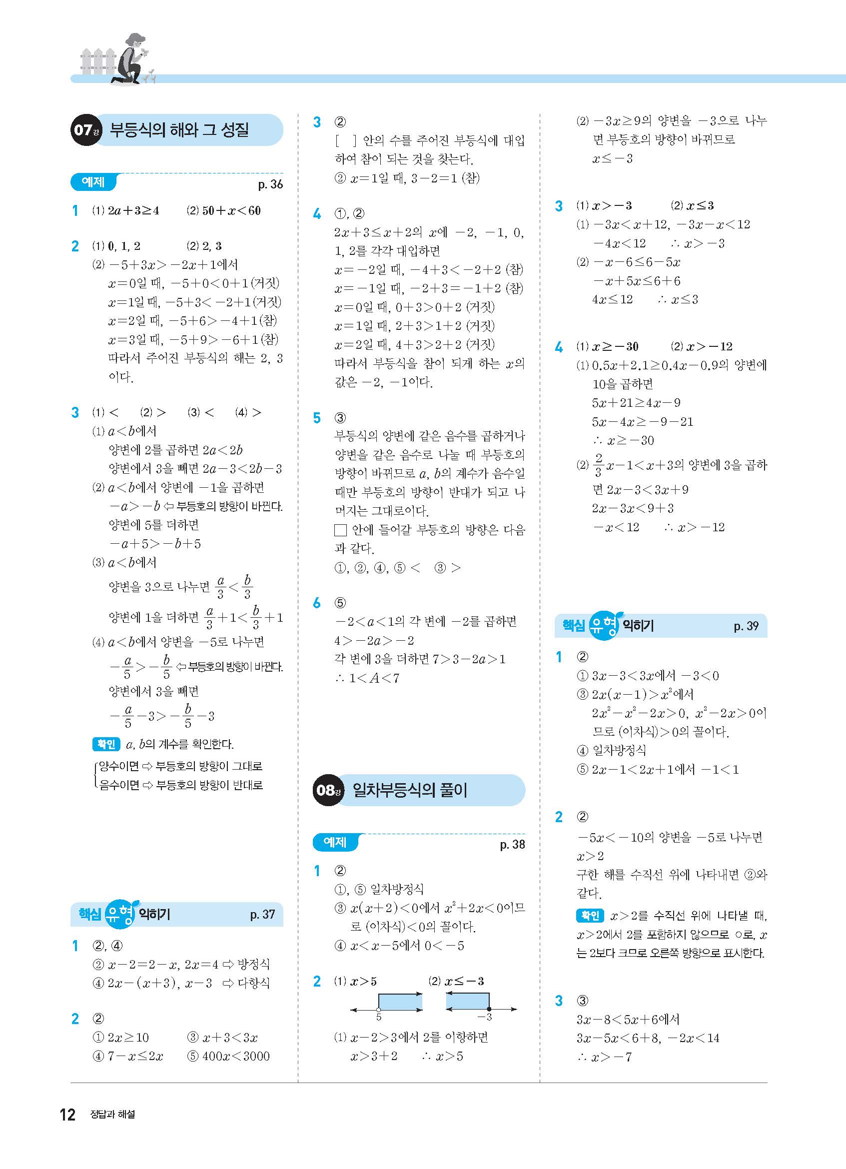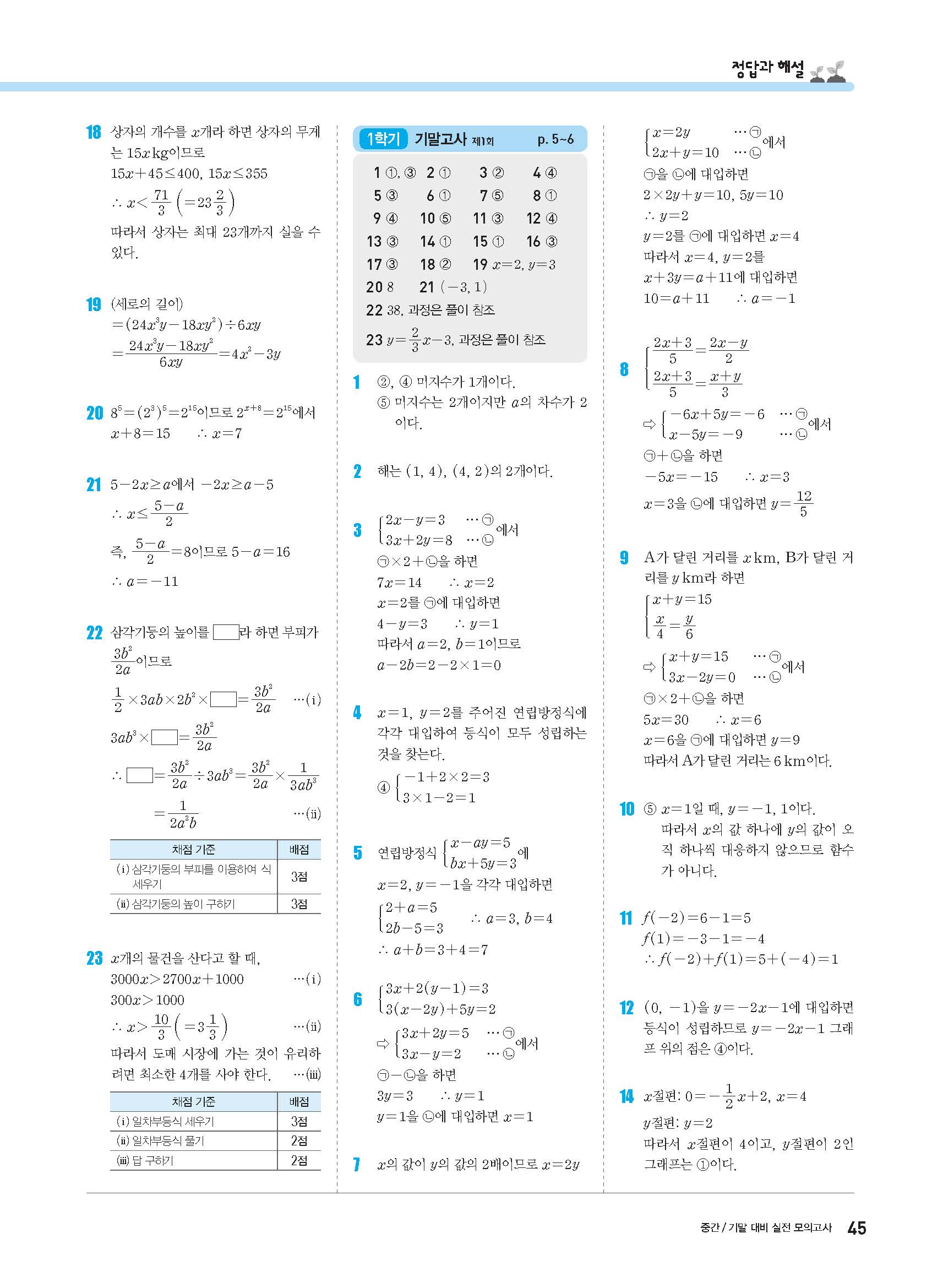 | 천재교육 이준열 중2 수학교과서 답지 | |