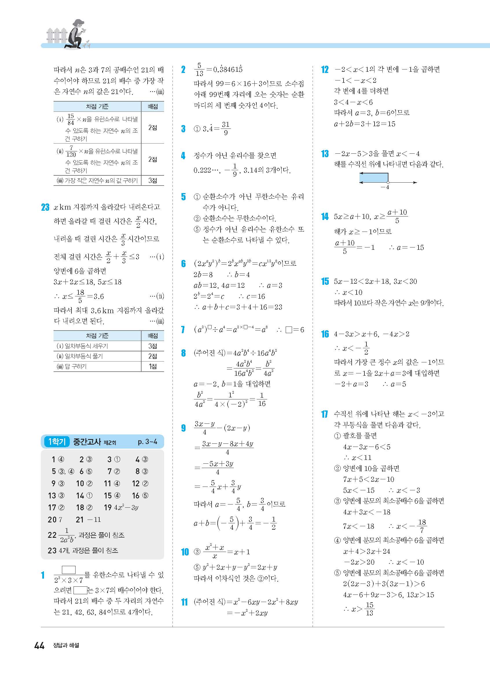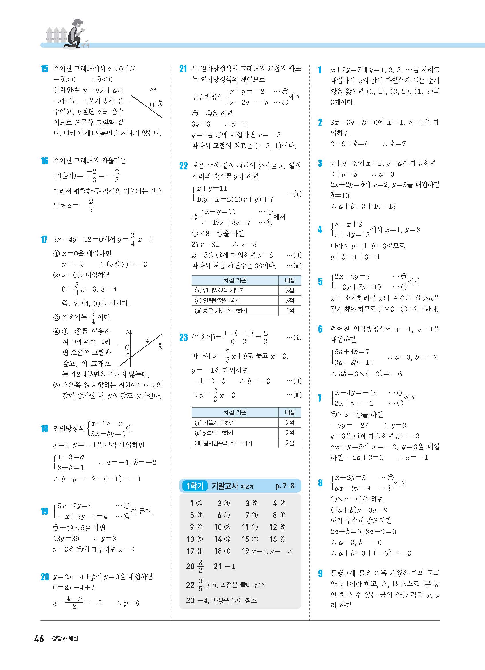 | 교학사 고호경 중2 수학교과서 답지 | |