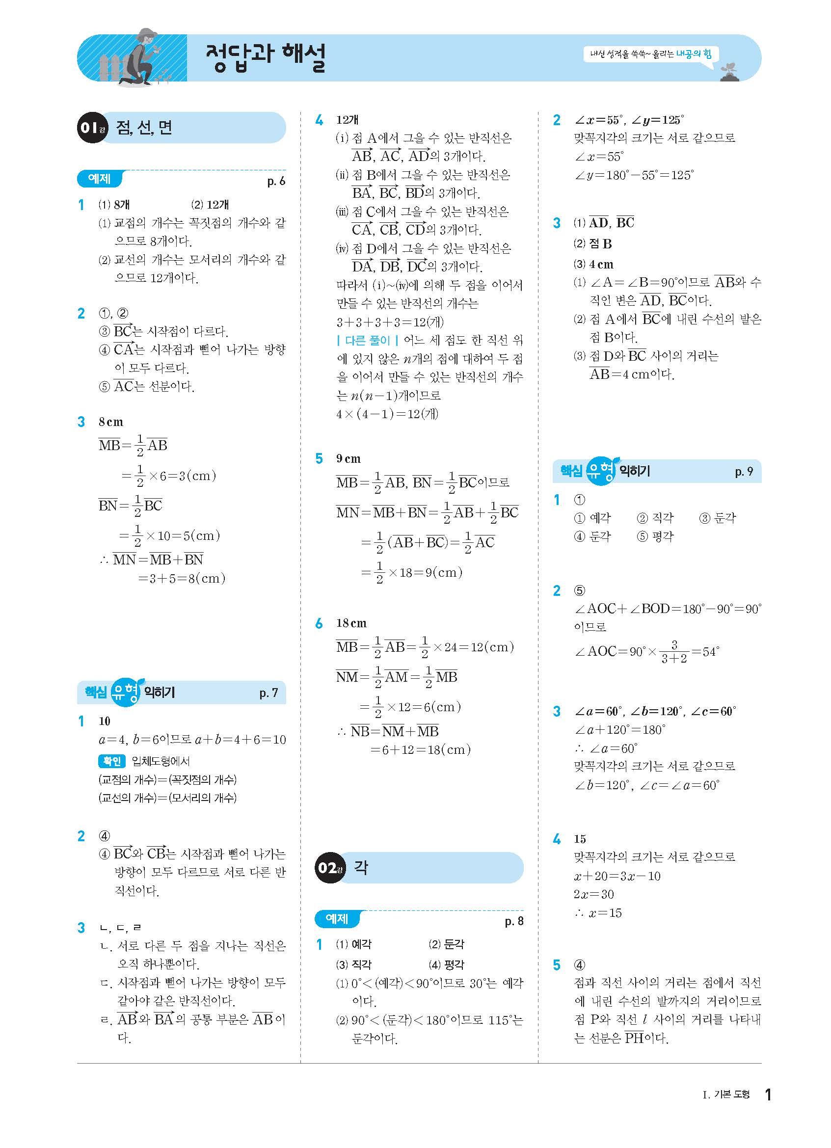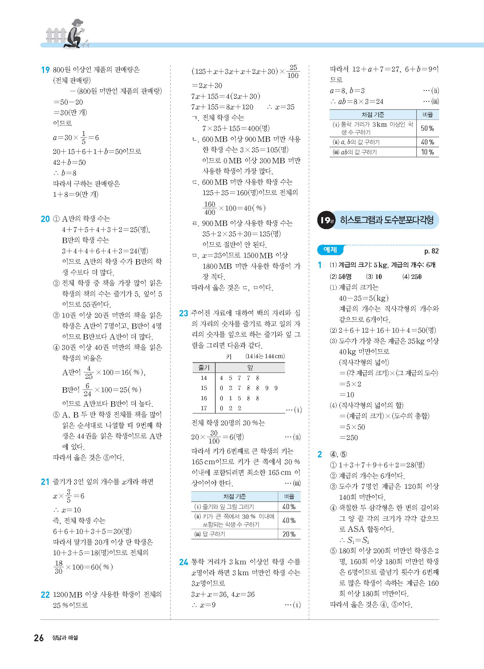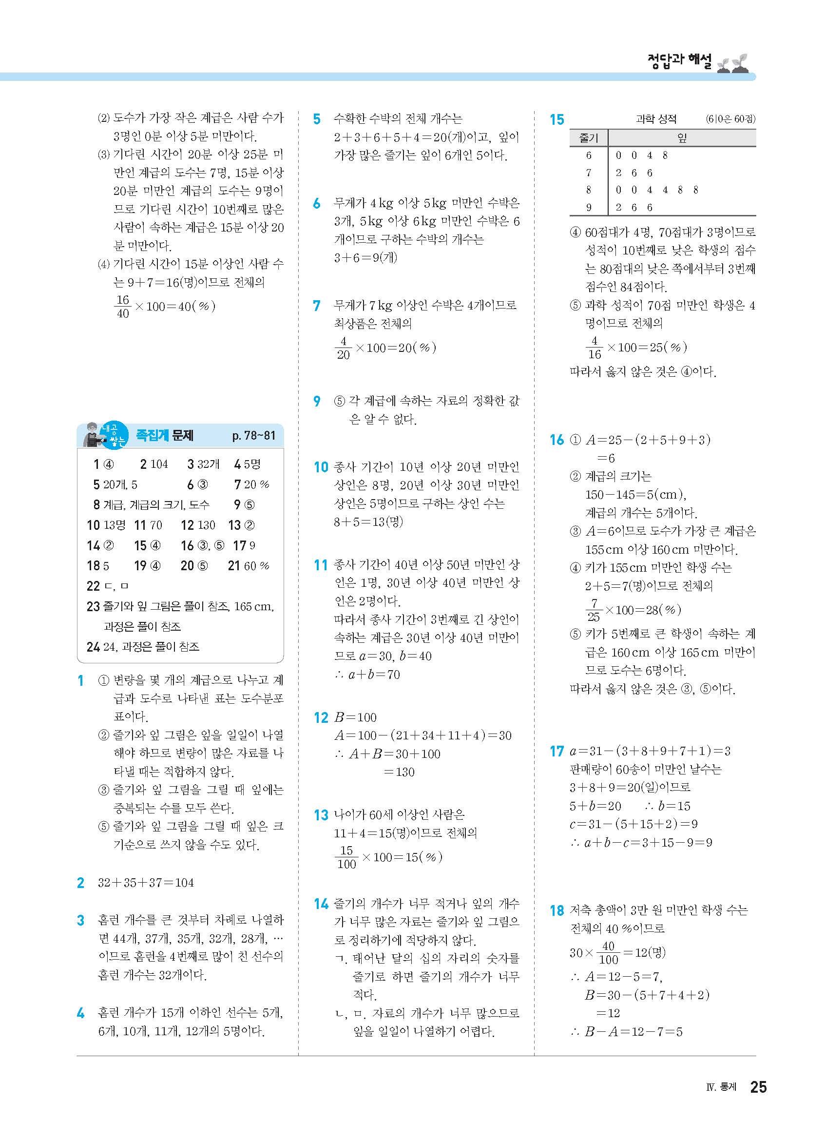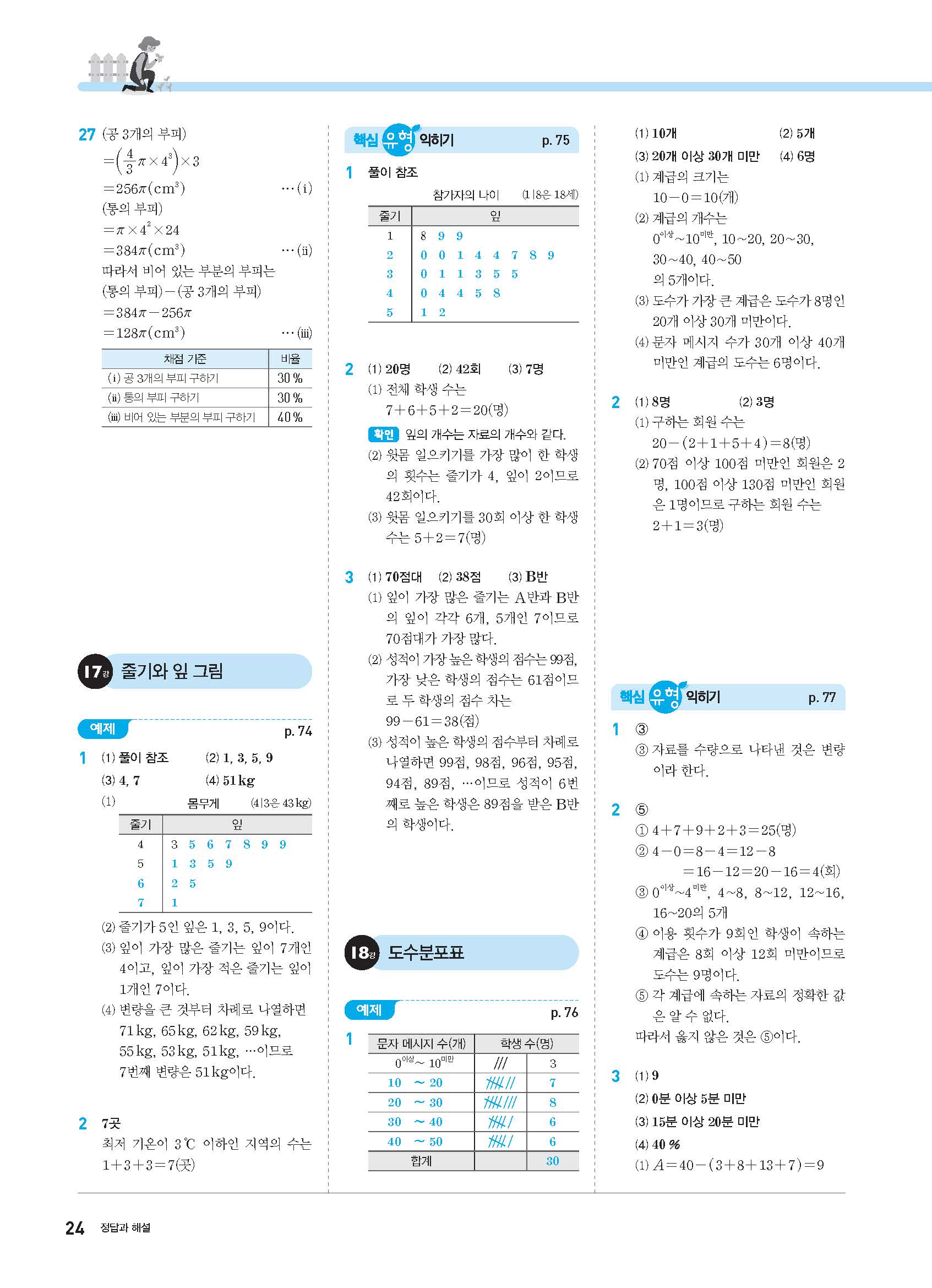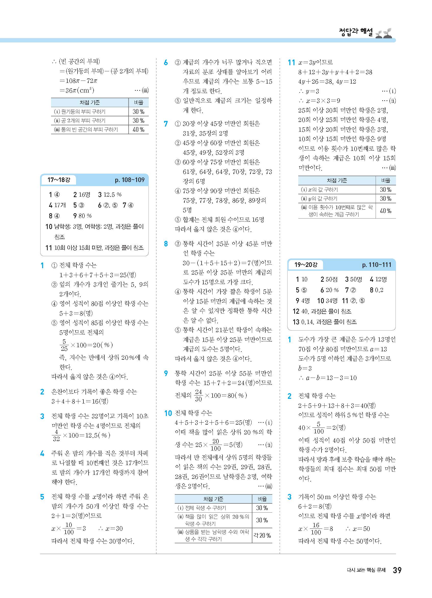 내공의힘 중등수학 중1하 1-2 사진답지 빠른답지 모바일최적화