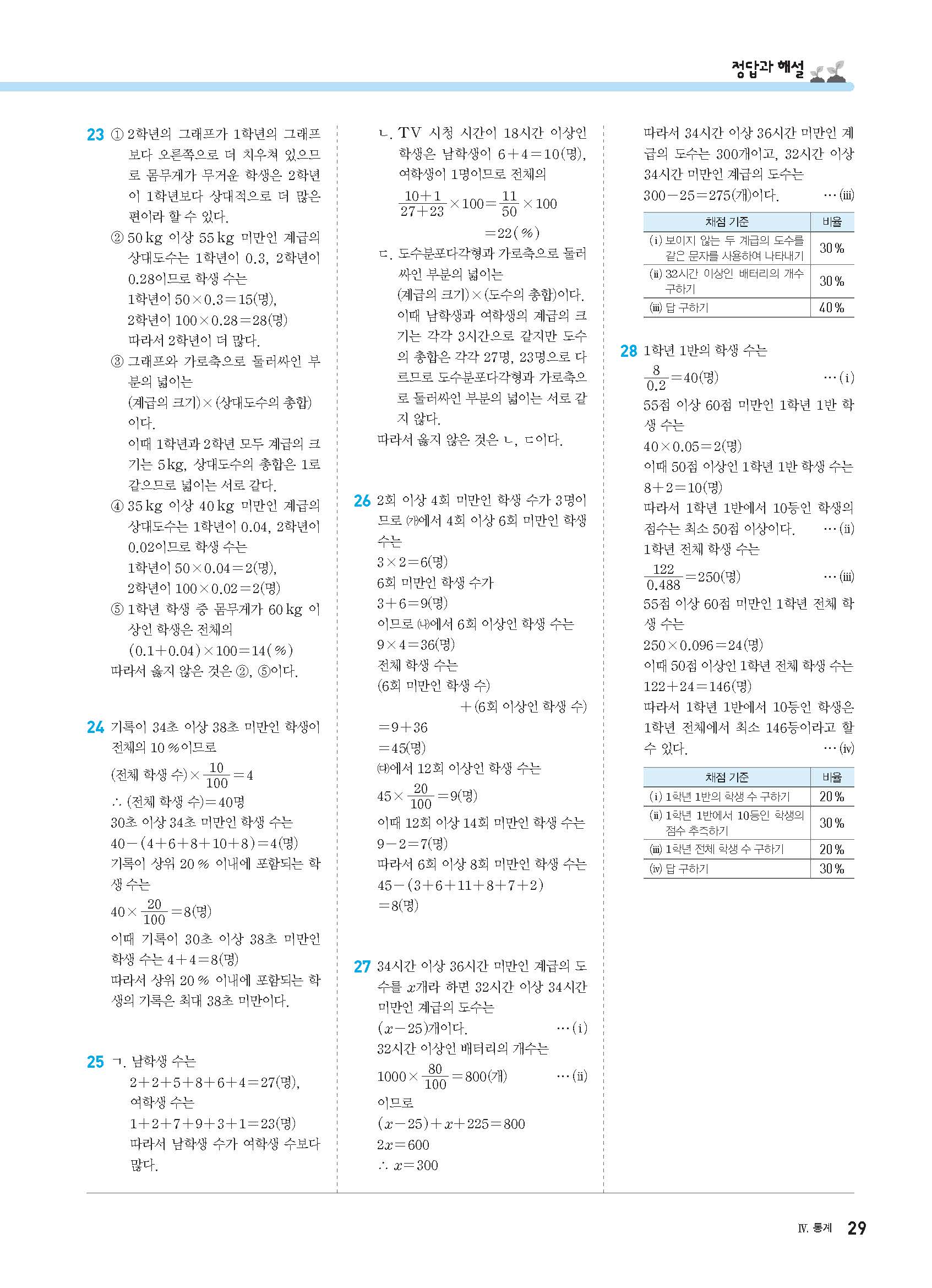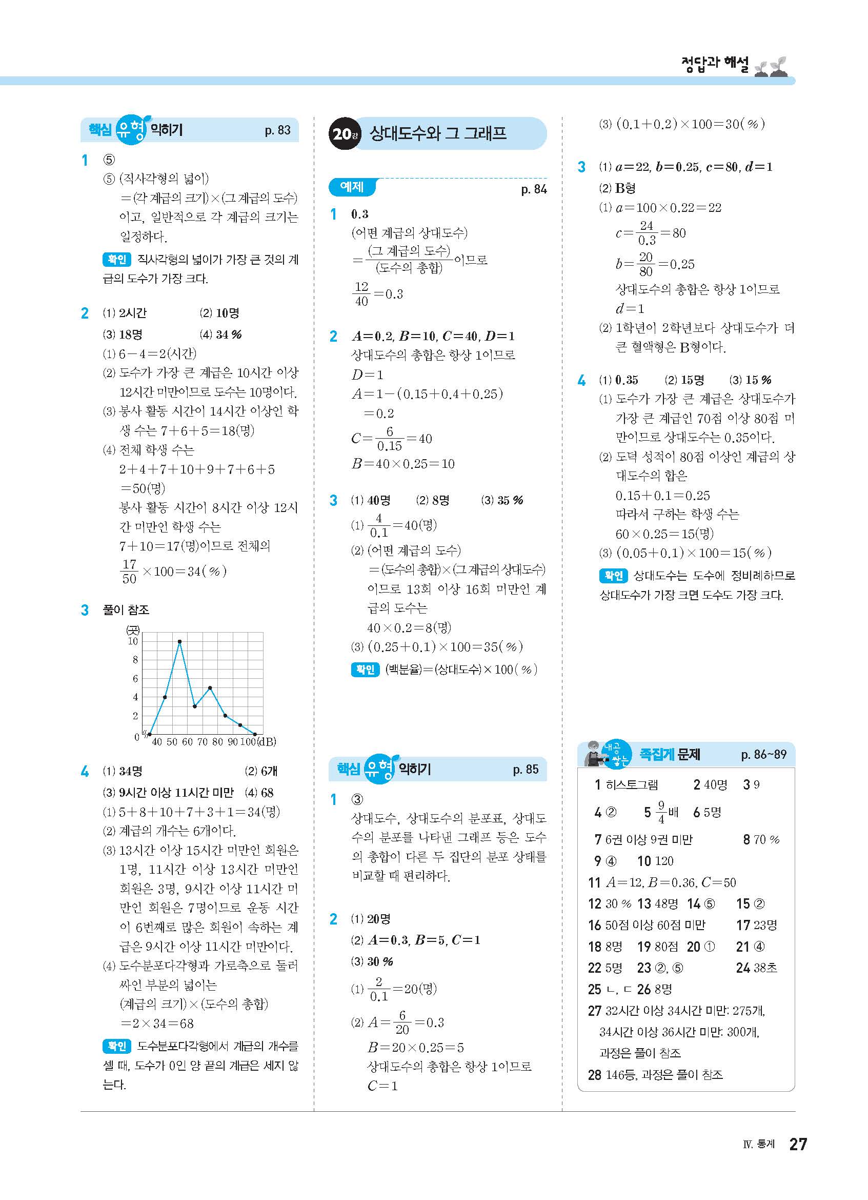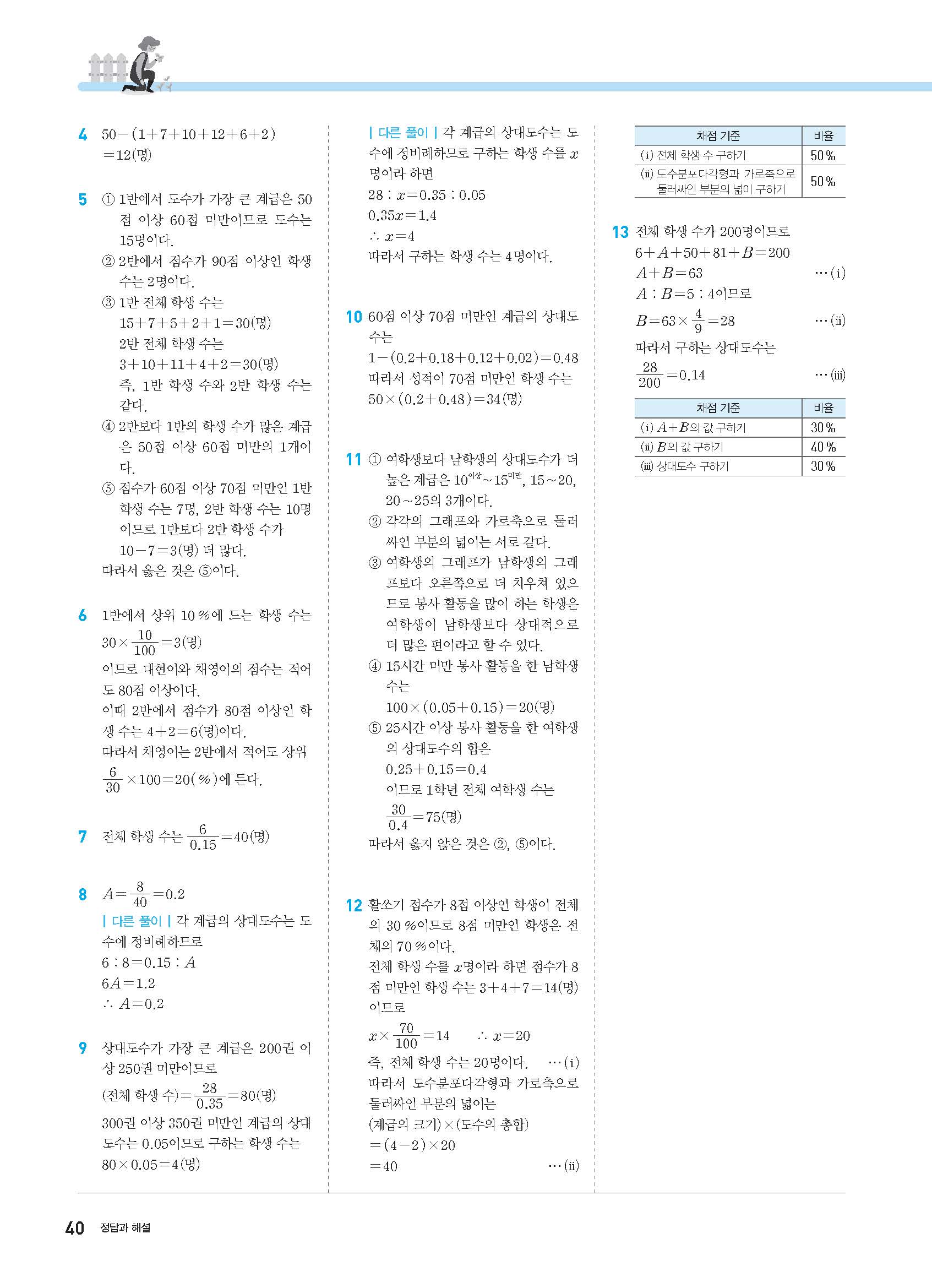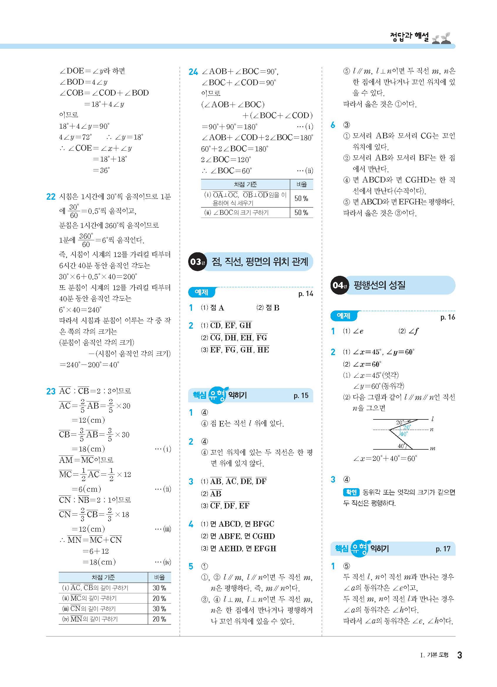 내공의힘 중등수학 중1하 1-2 사진답지 빠른답지 모바일최적화