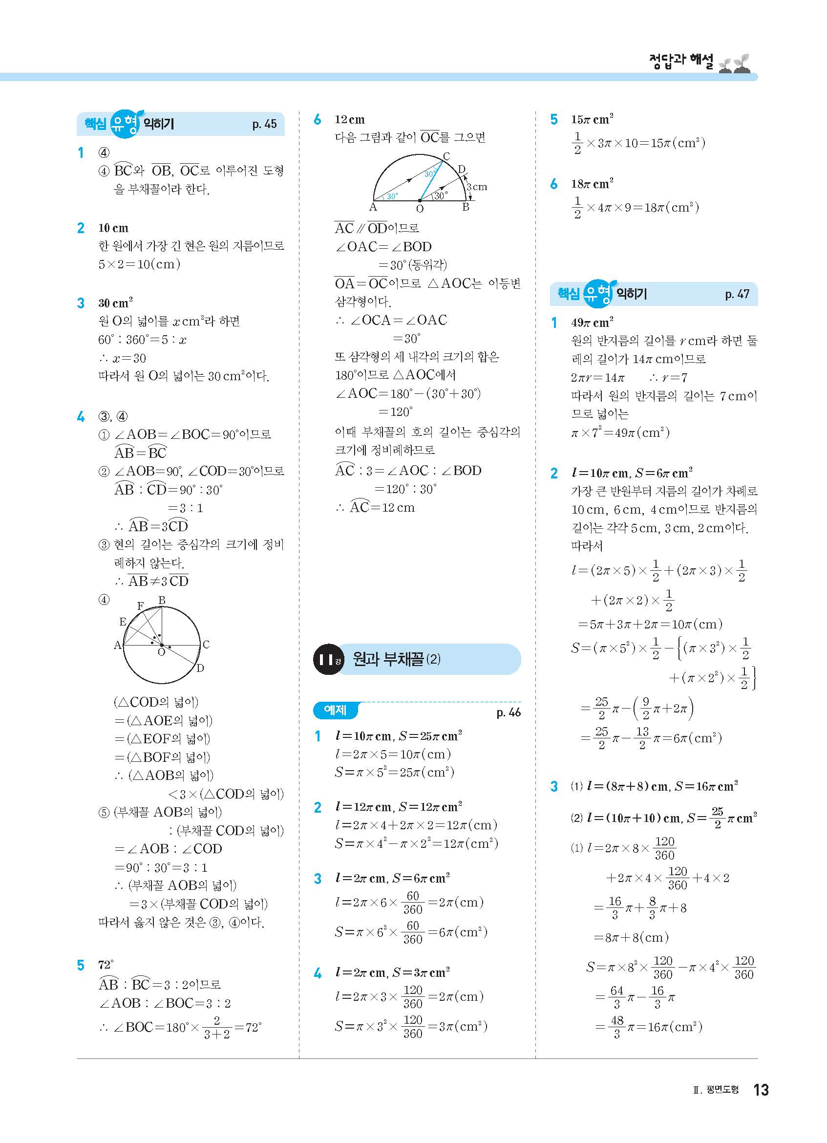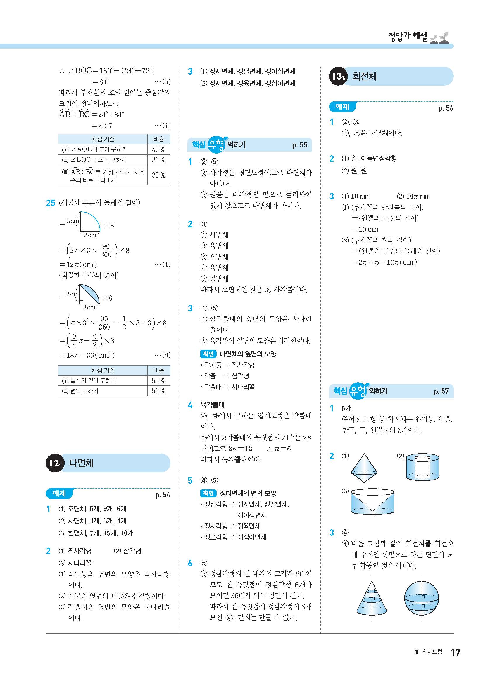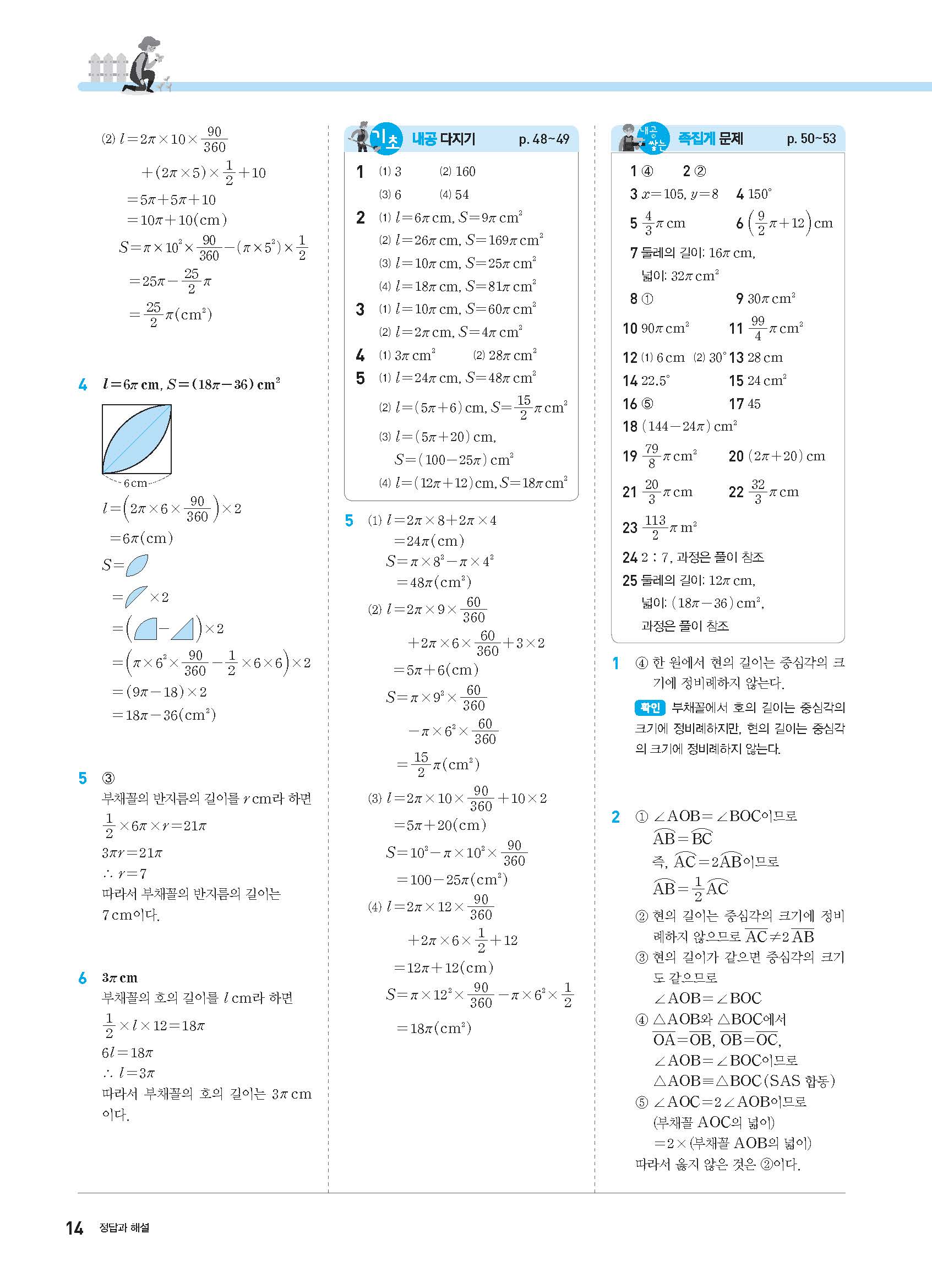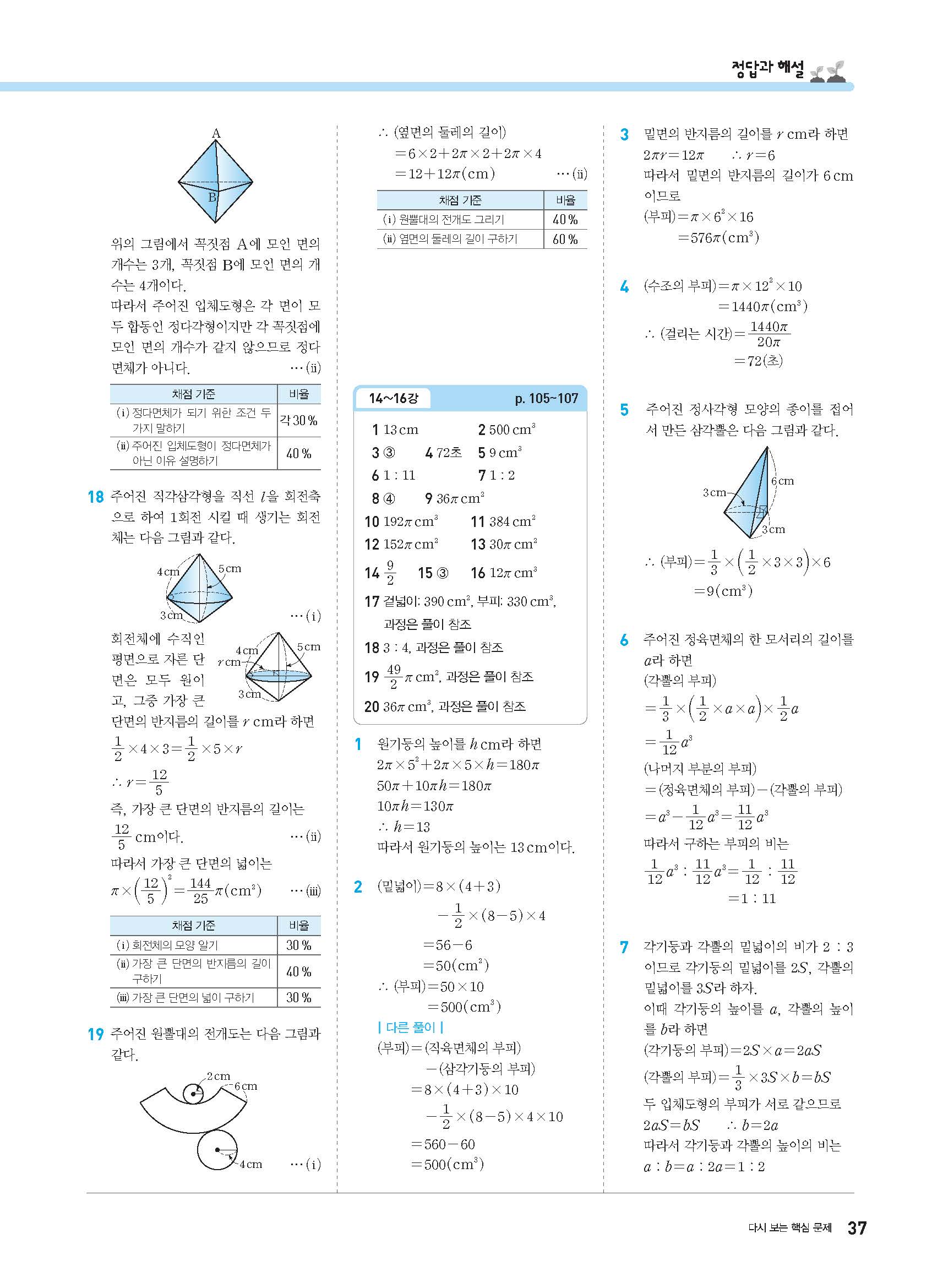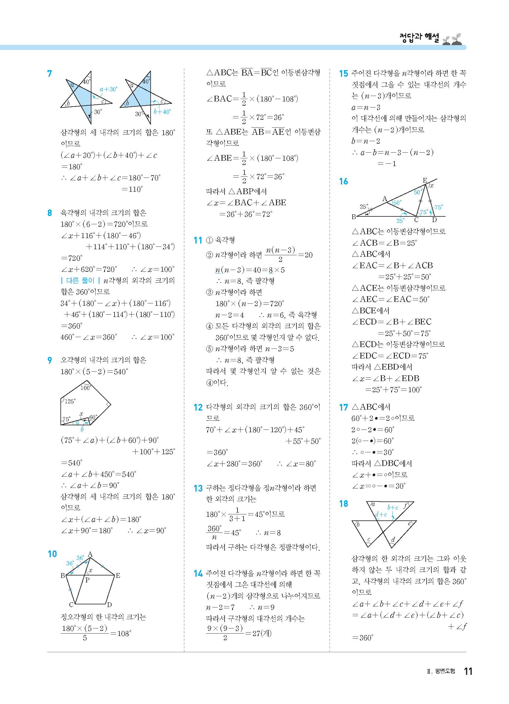 내공의힘 중등수학 중1하 1-2 사진답지 빠른답지 모바일최적화