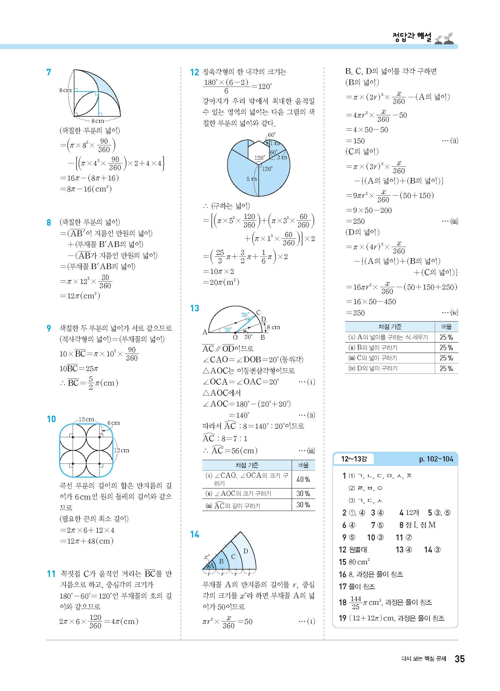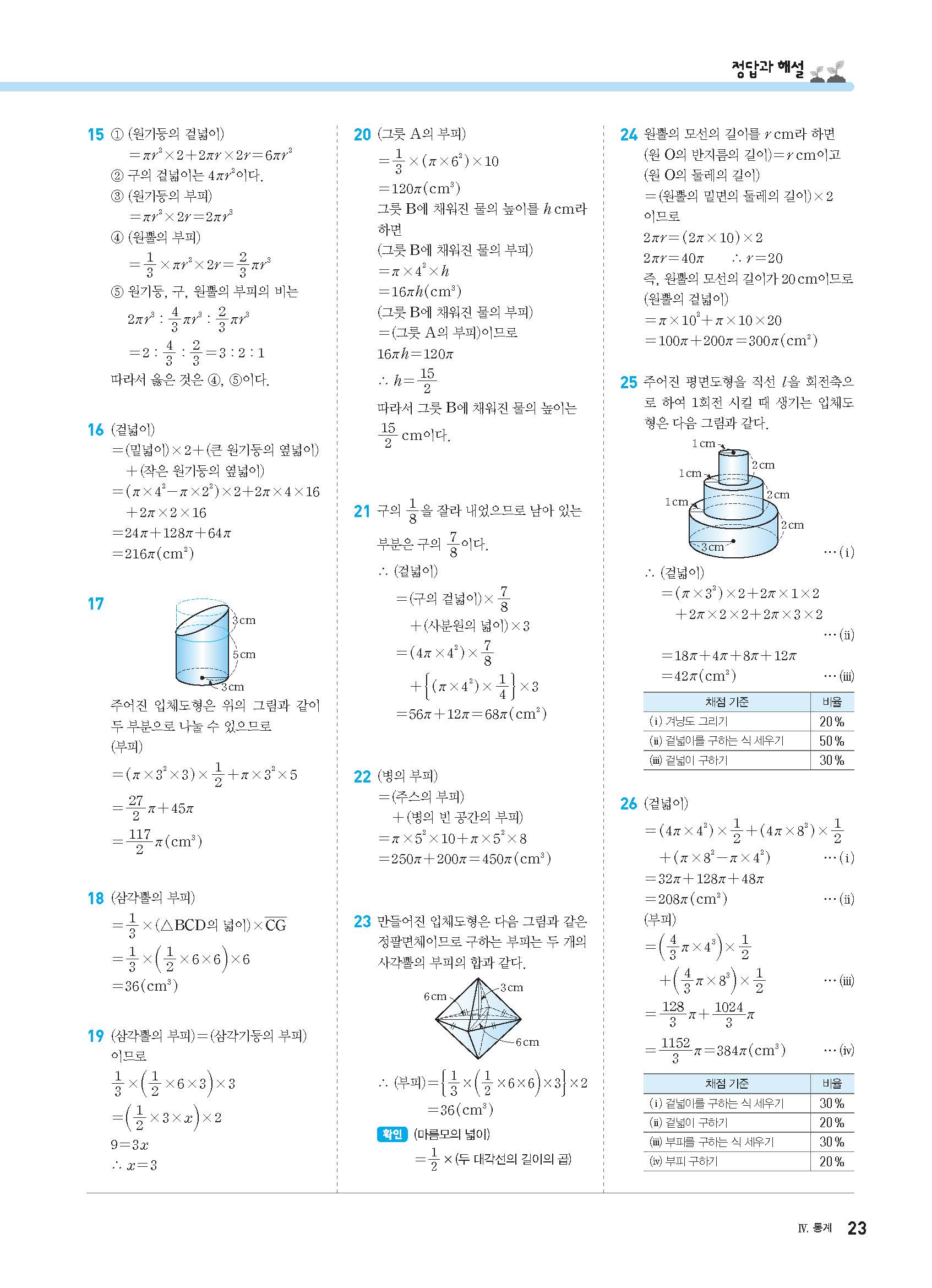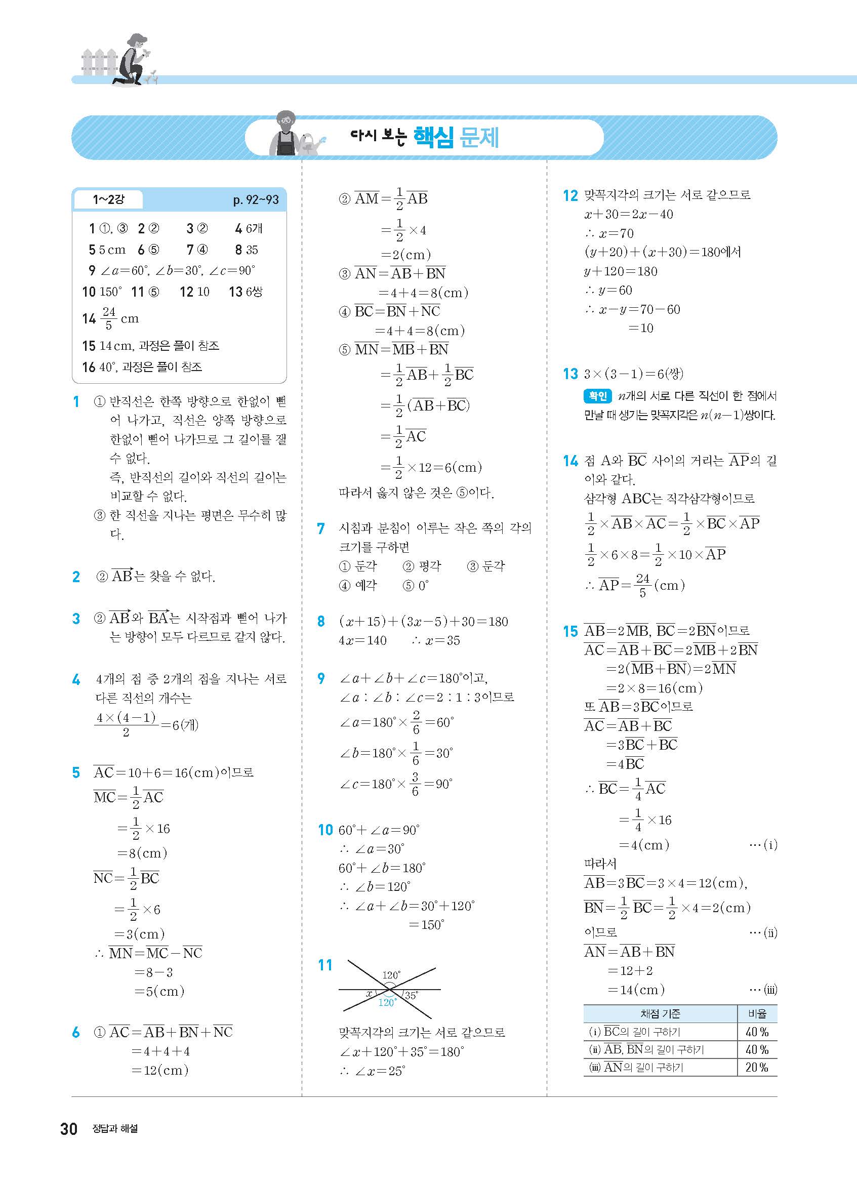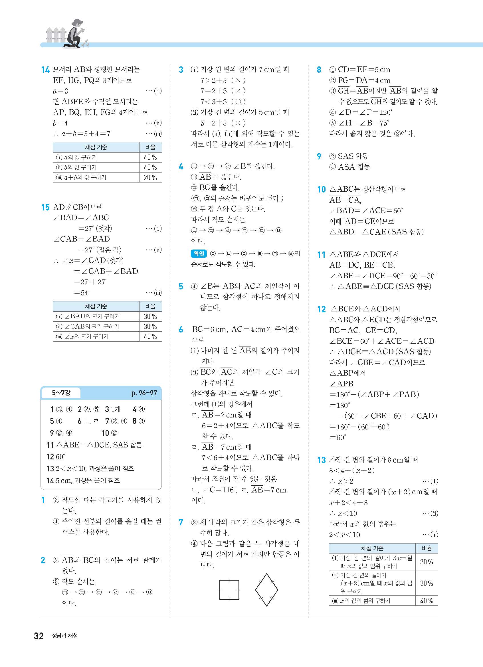 내공의힘 중등수학 중1하 1-2 사진답지 빠른답지 모바일최적화