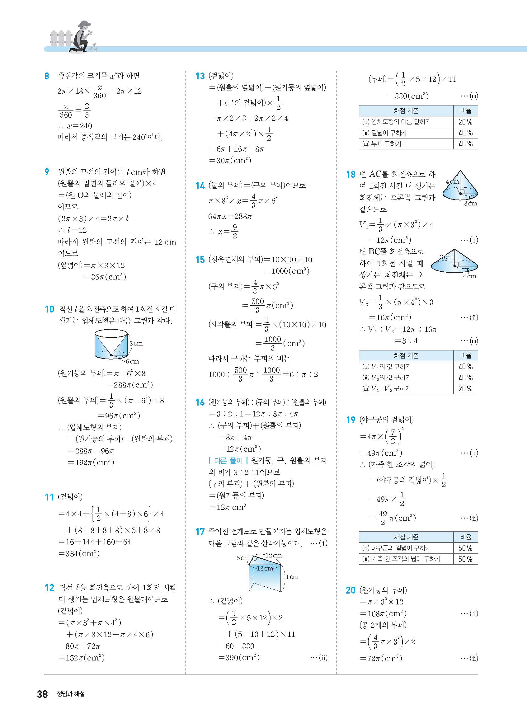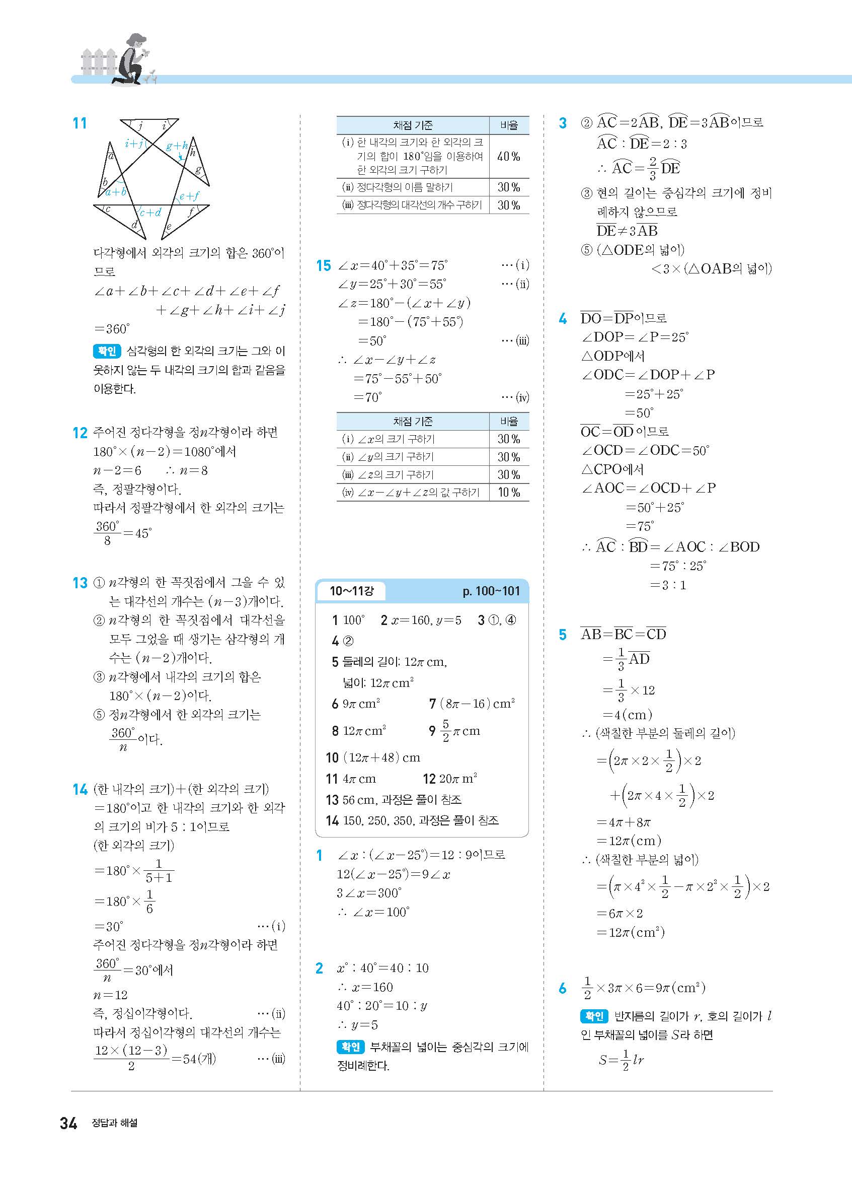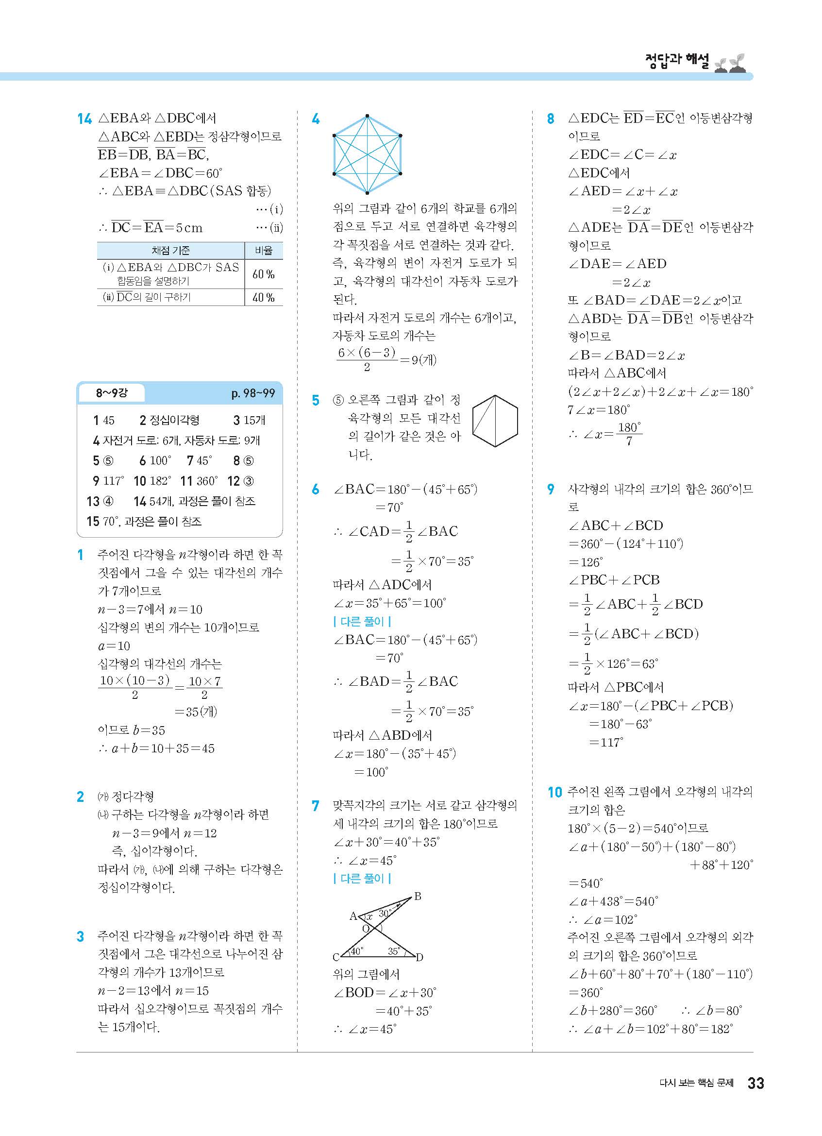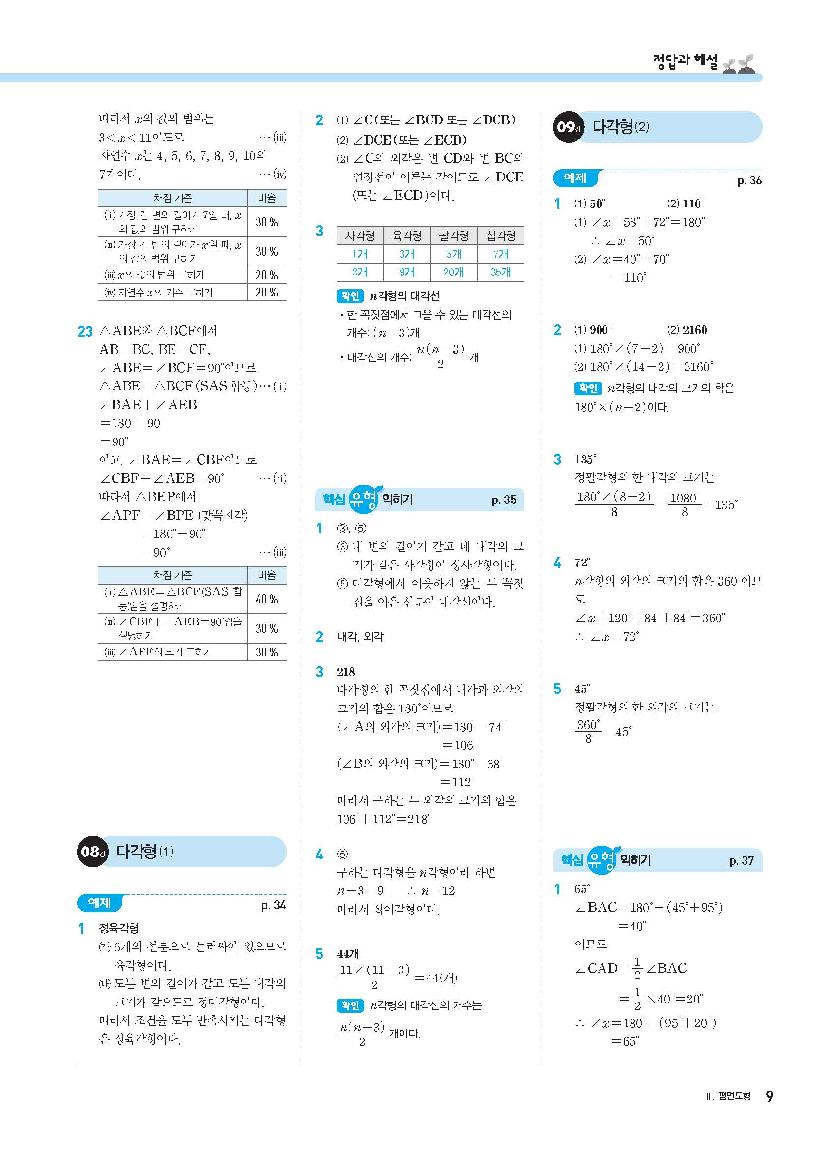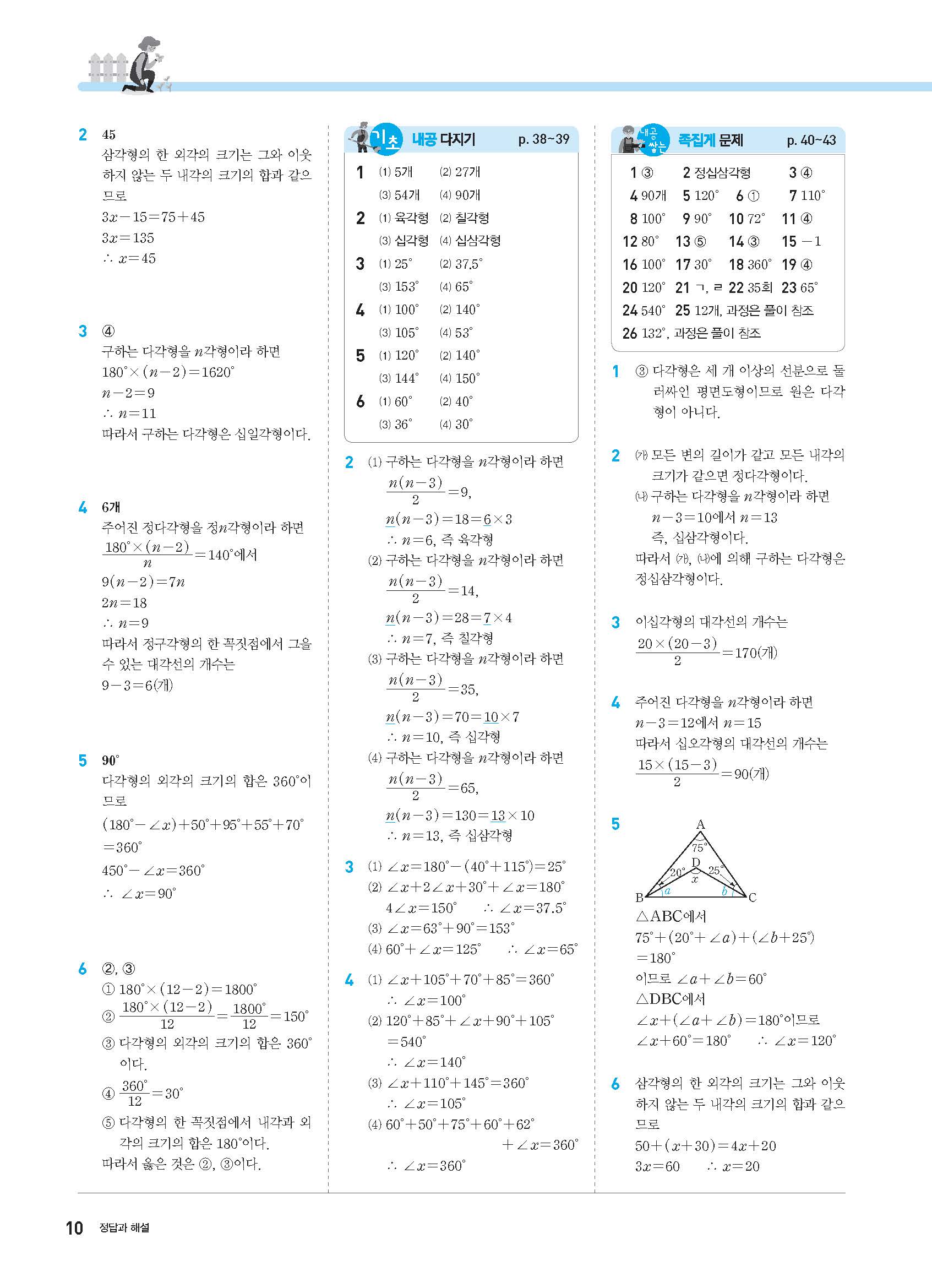 내공의힘 중등수학 중1하 1-2 사진답지 빠른답지 모바일최적화