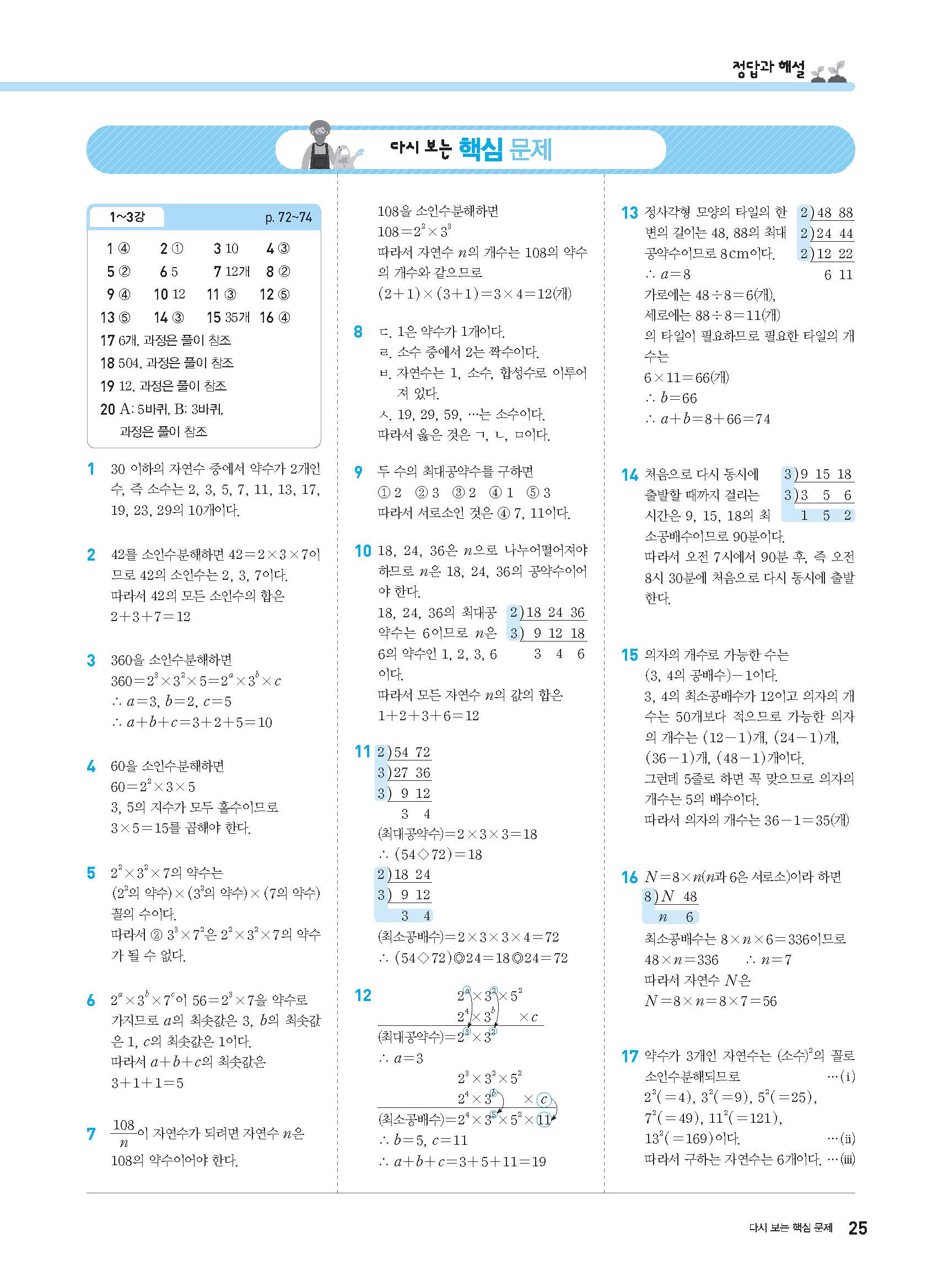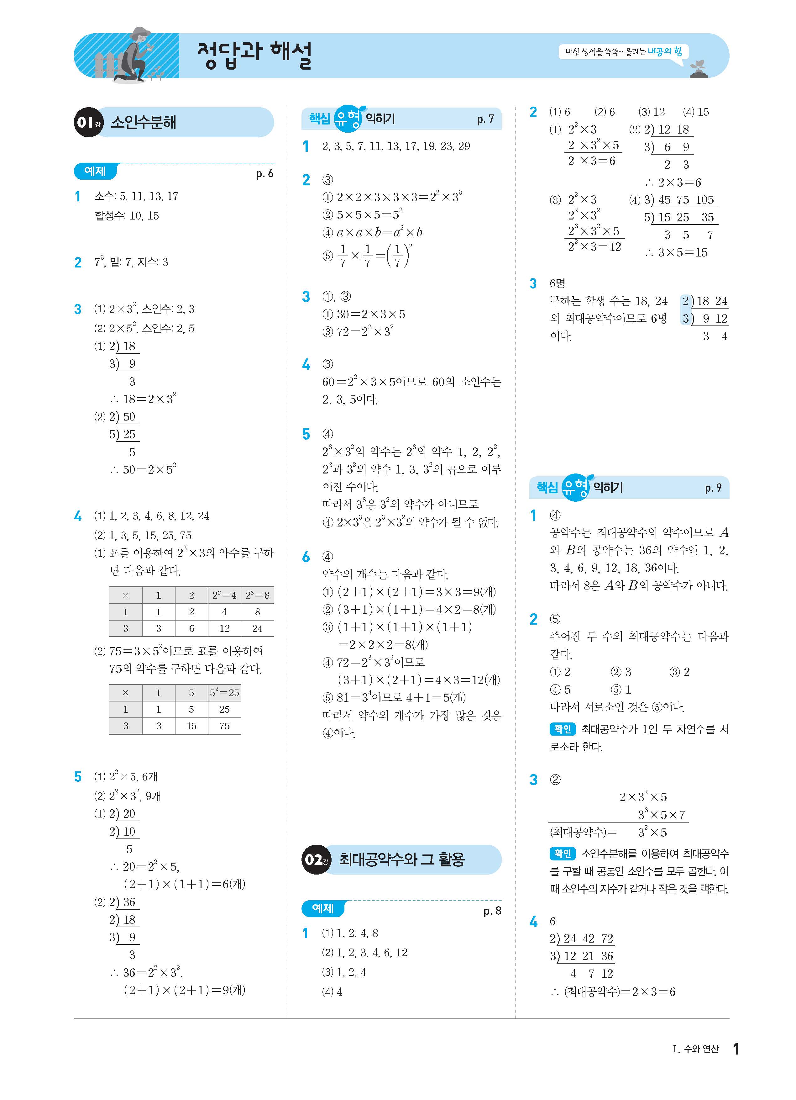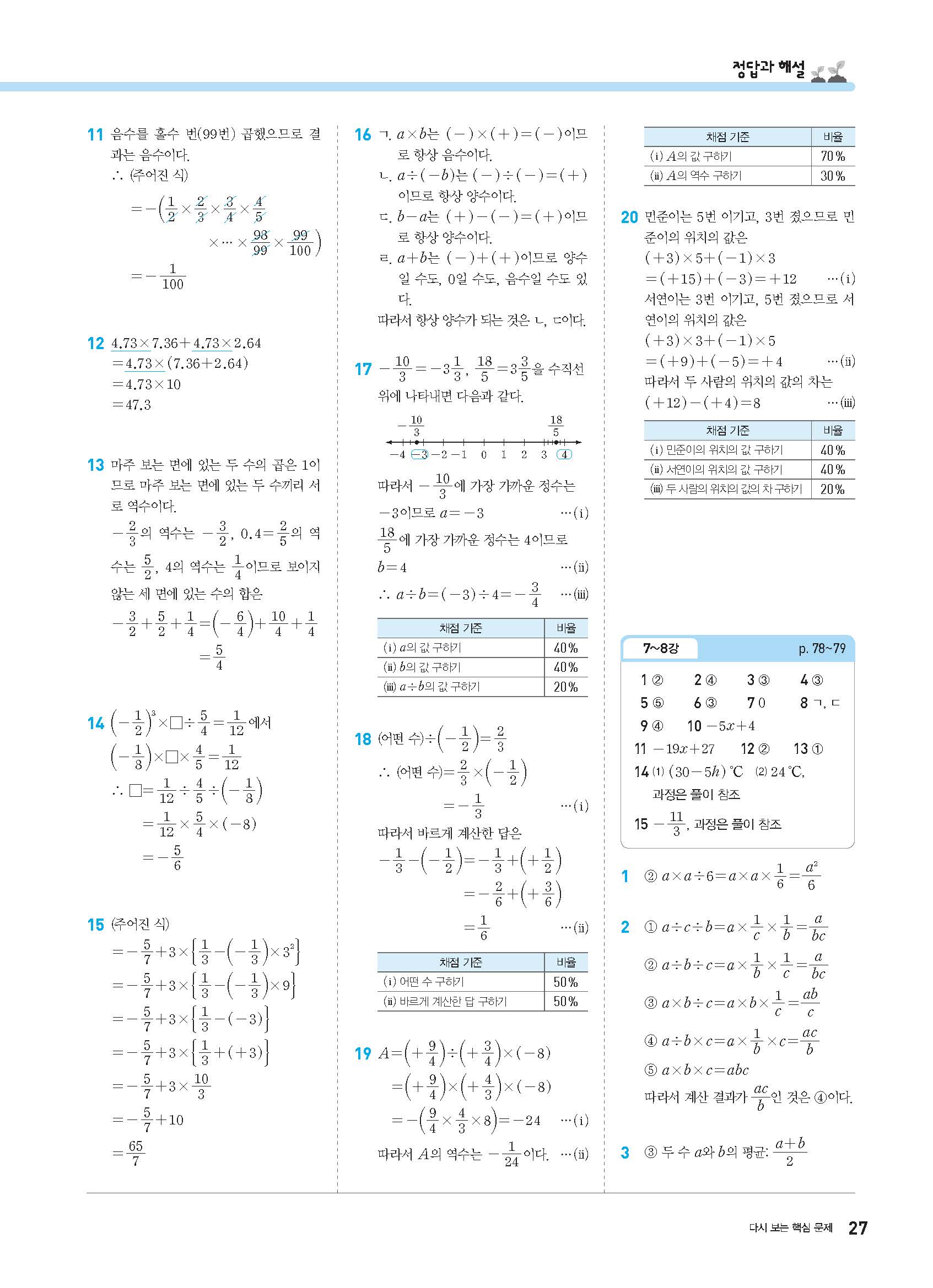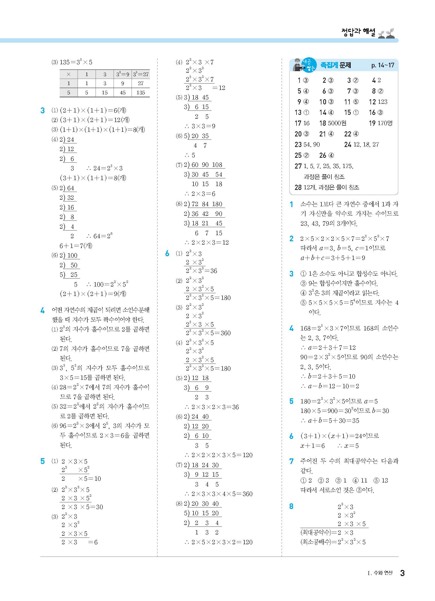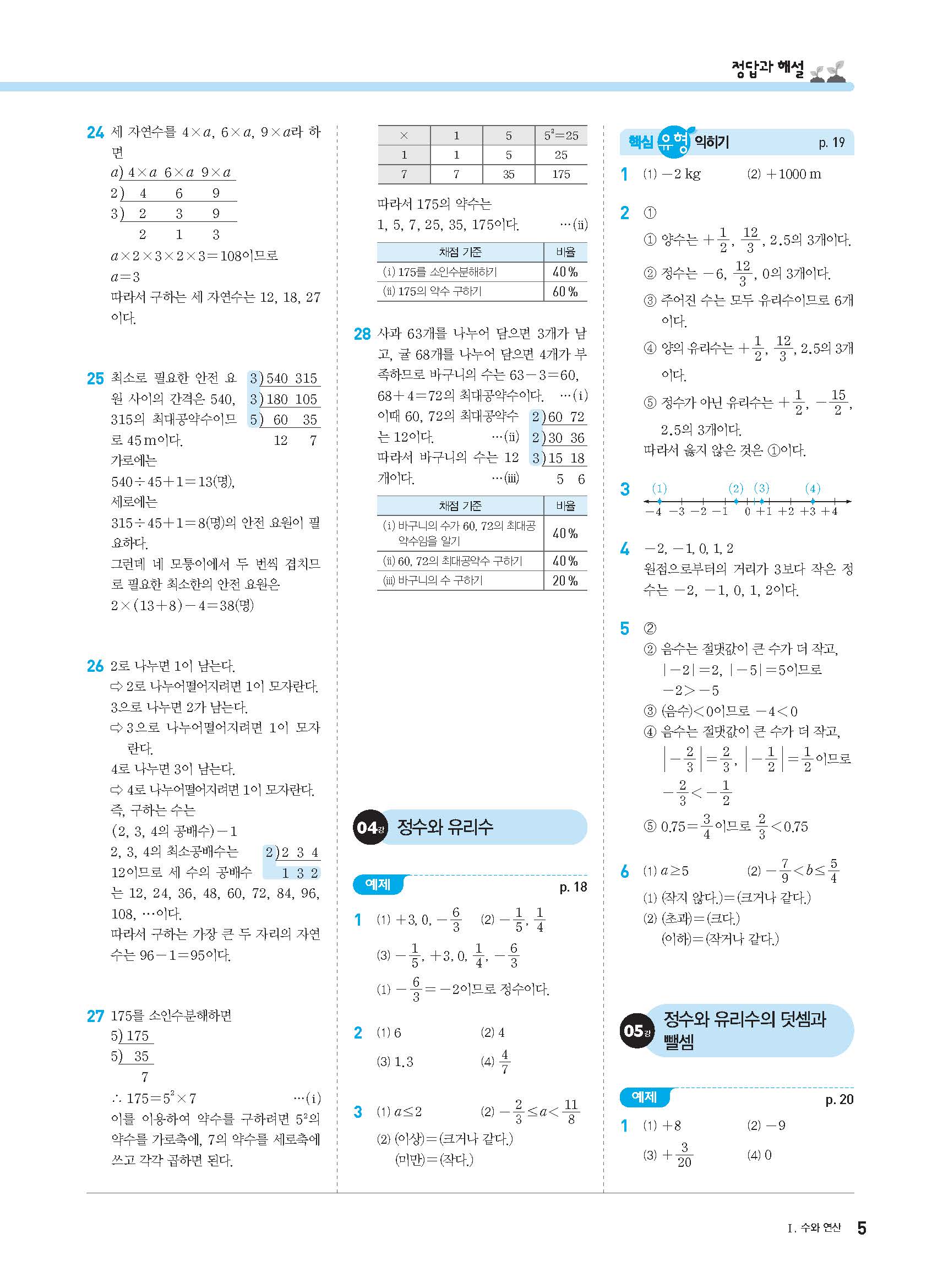 내공의힘 중등수학 중1상 1-1 사진답지 빠른답지 모바일최적화