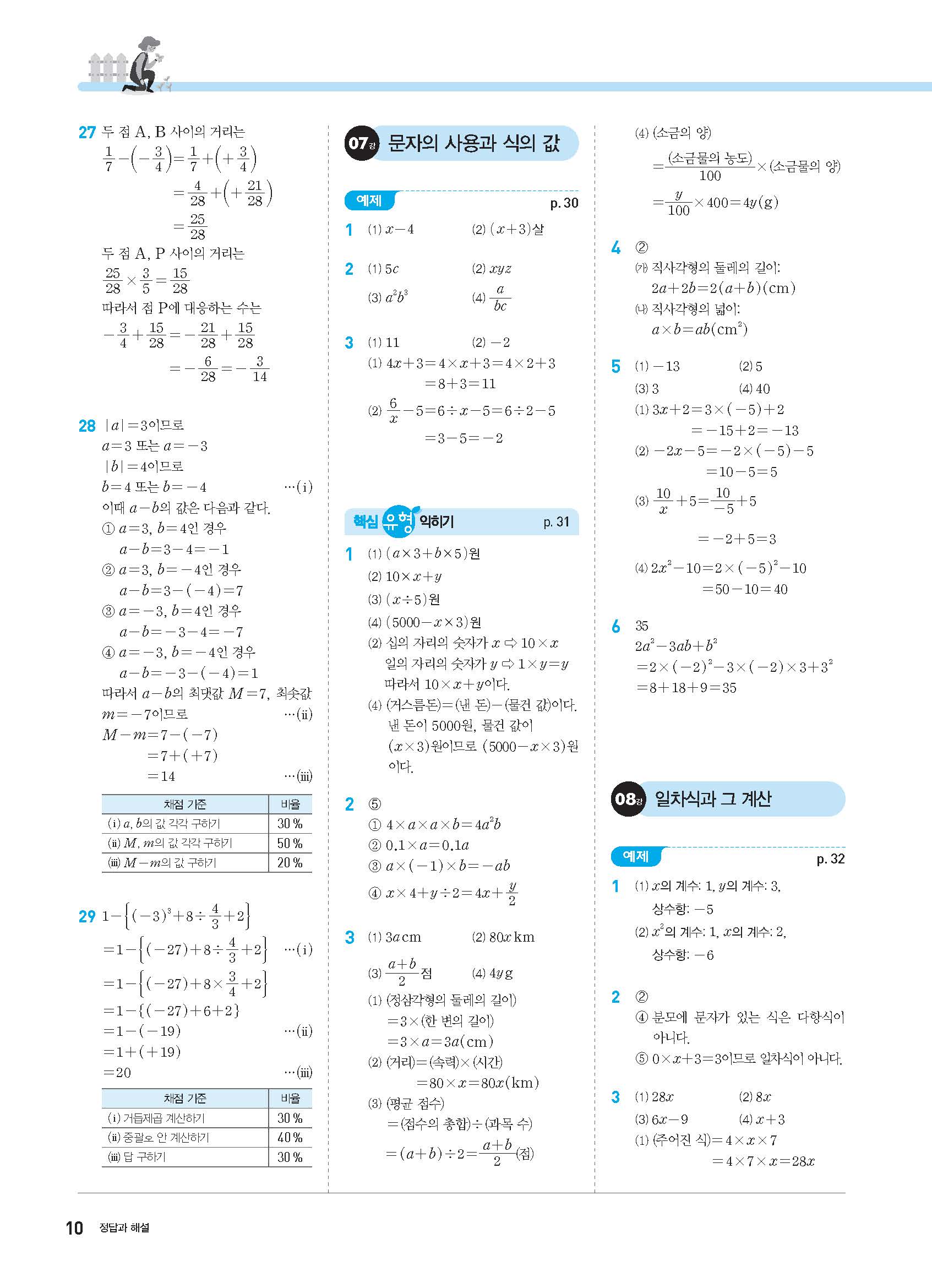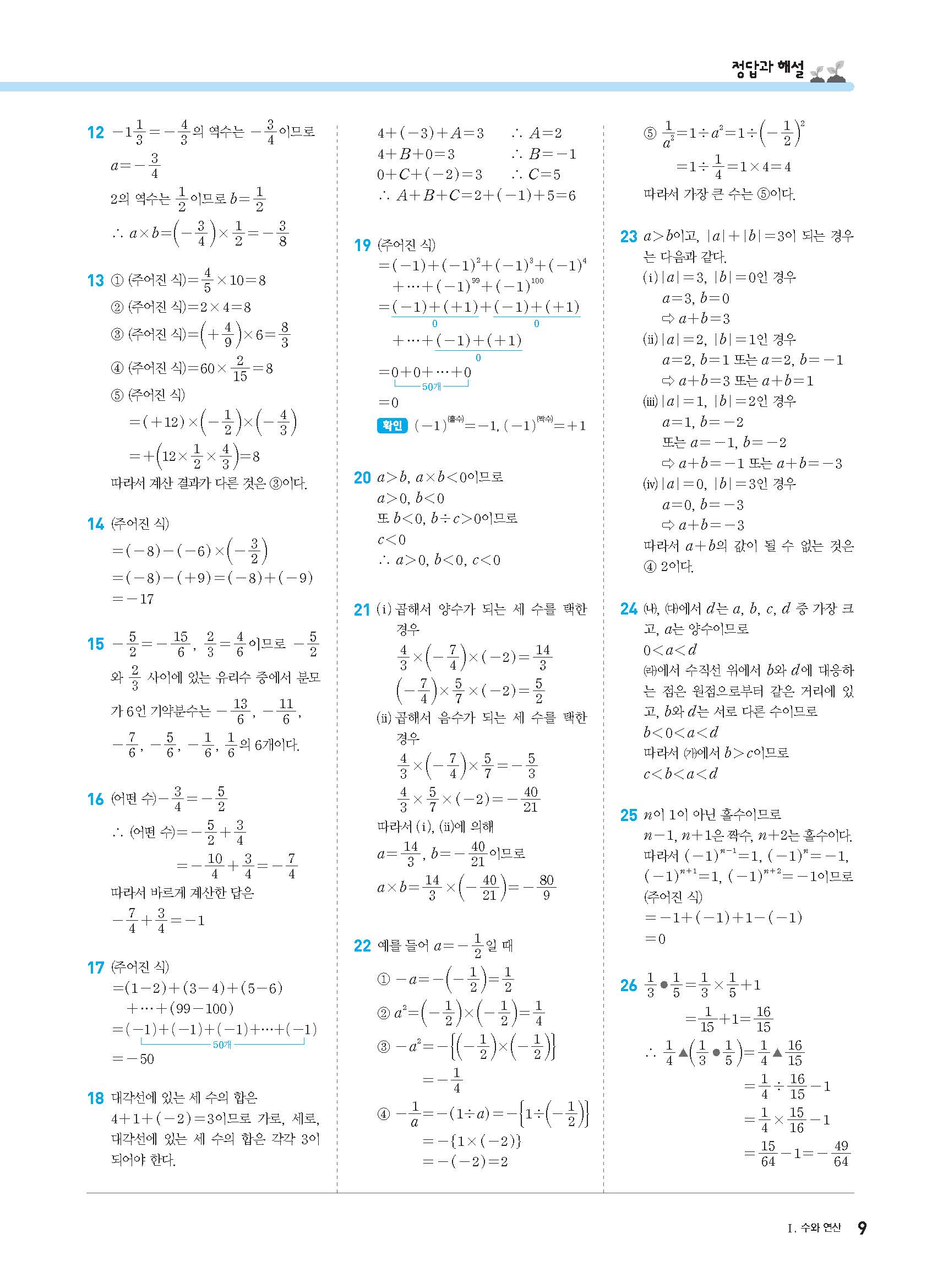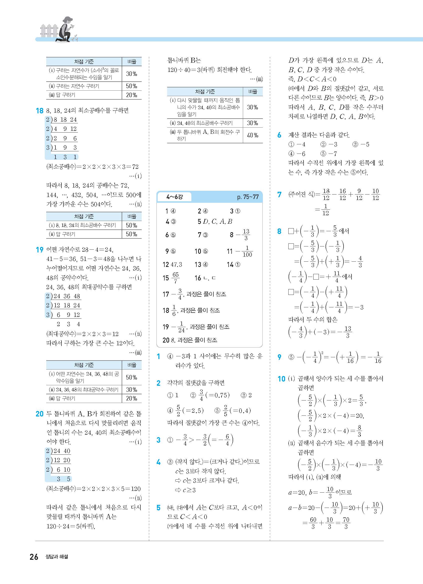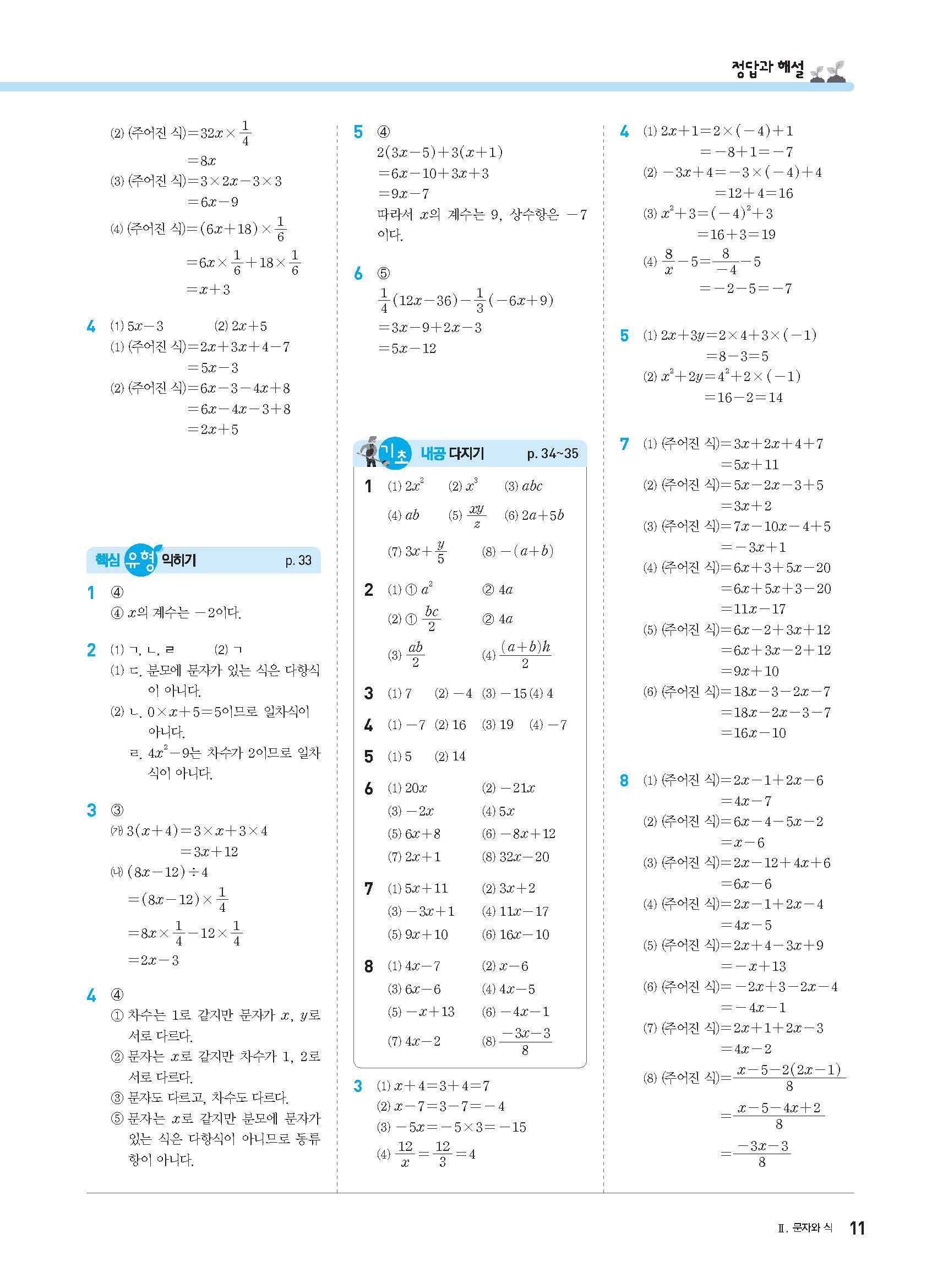 내공의힘 중등수학 중1상 1-1 사진답지 빠른답지 모바일최적화