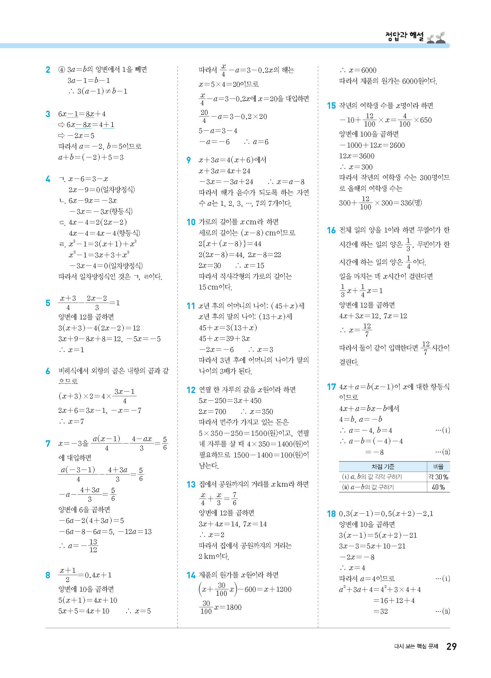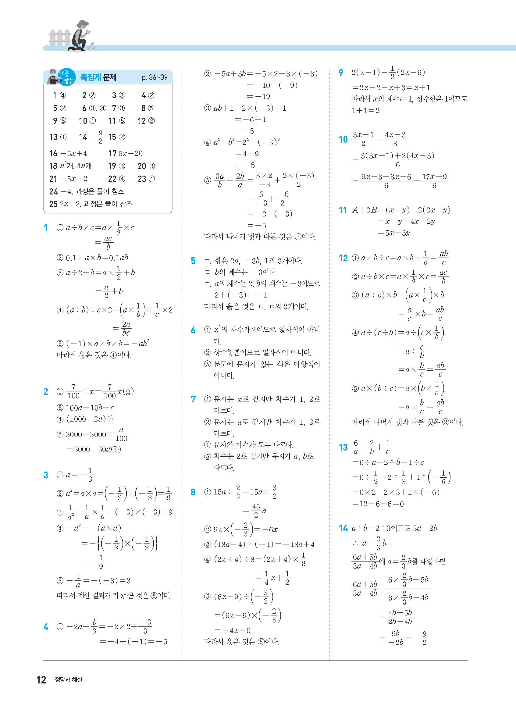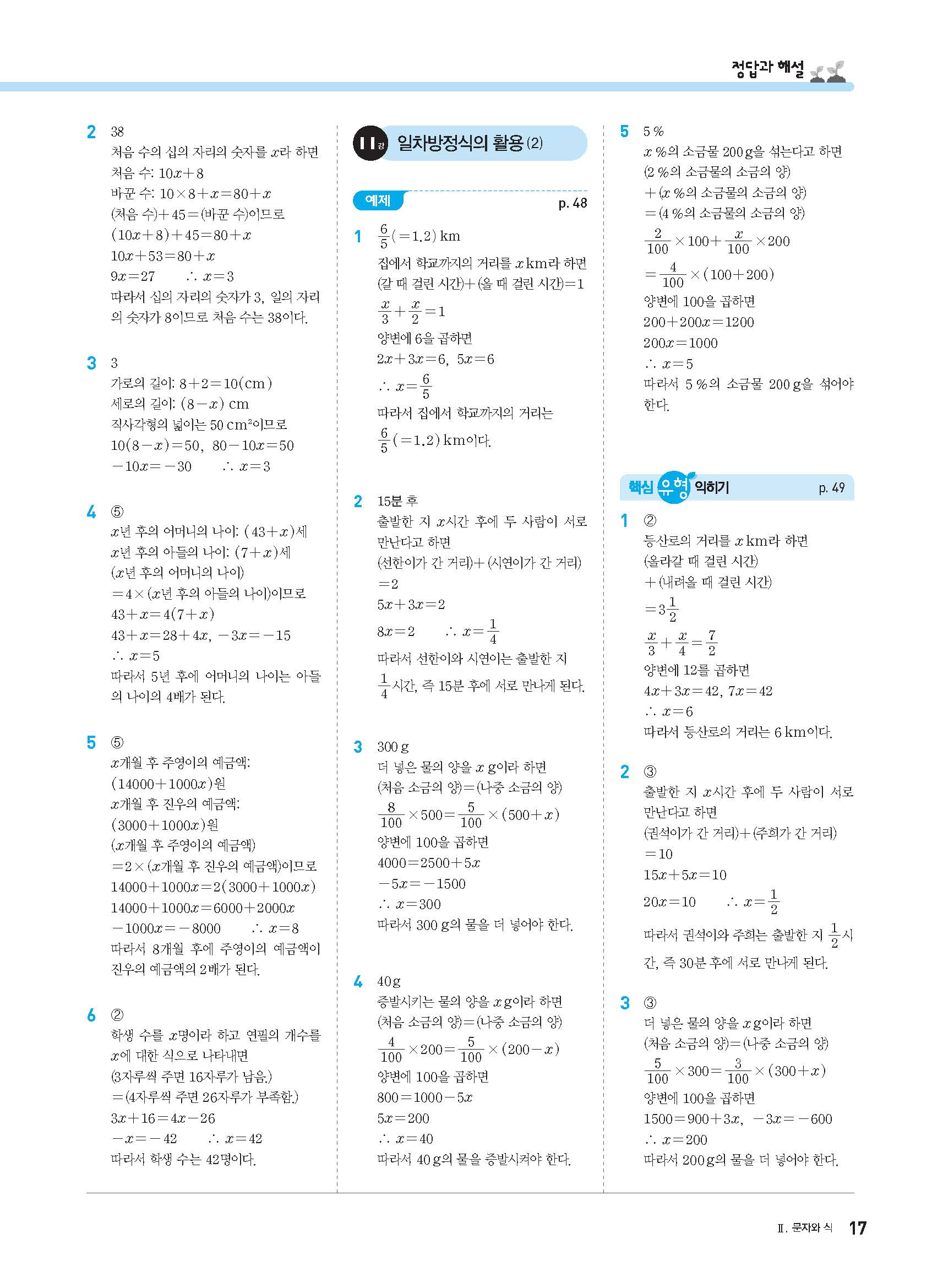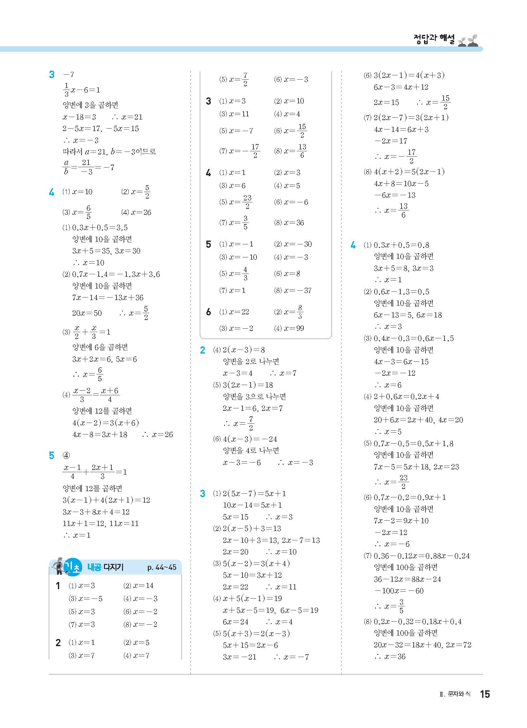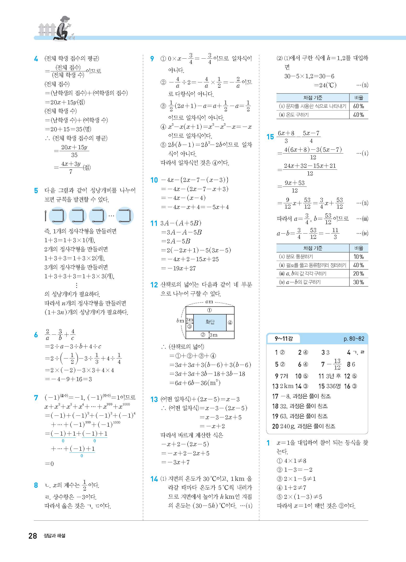 내공의힘 중등수학 중1상 1-1 사진답지 빠른답지 모바일최적화