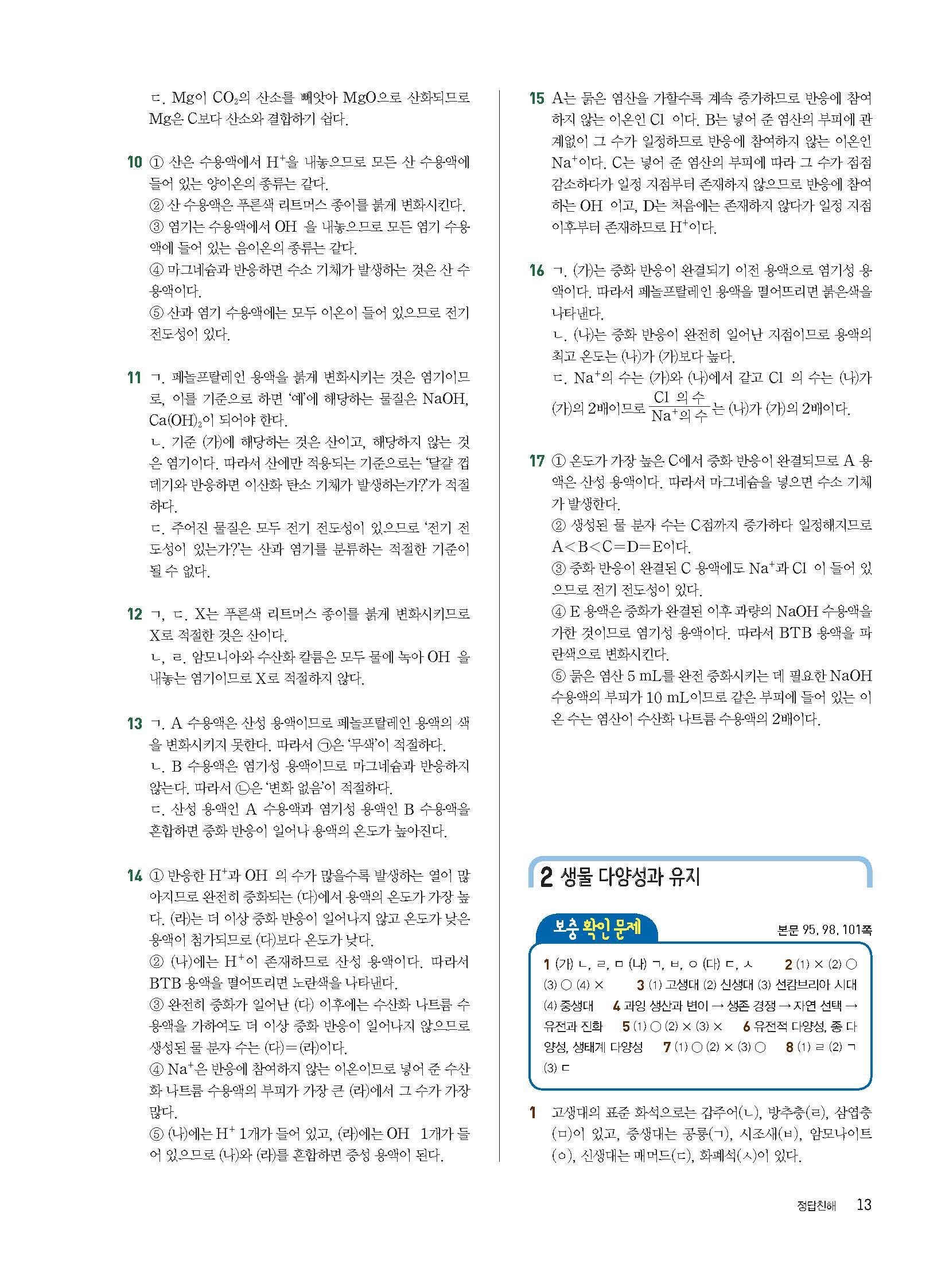 신사고 자습서 고등통합과학 사진답지 빠른답지 모바일최적화