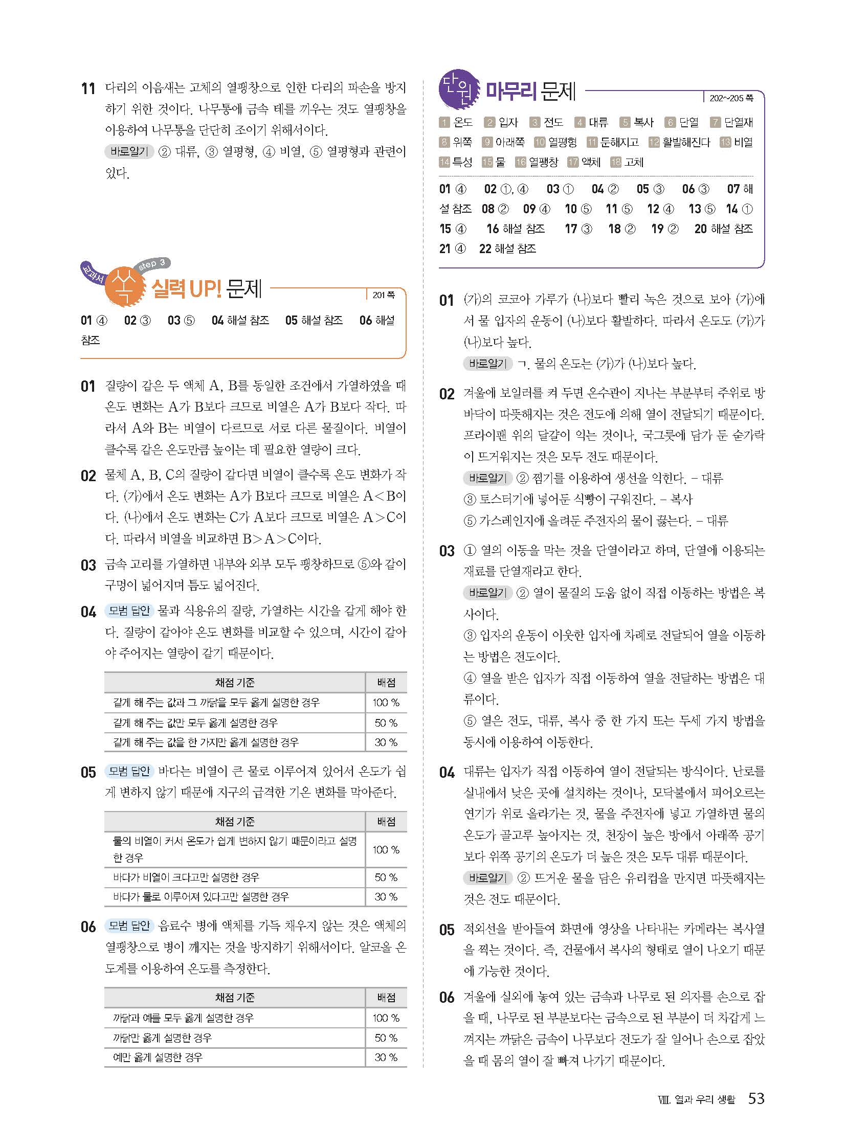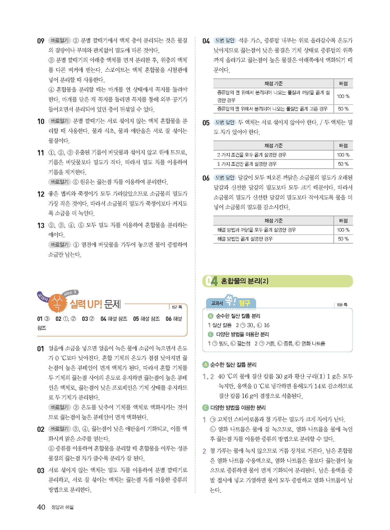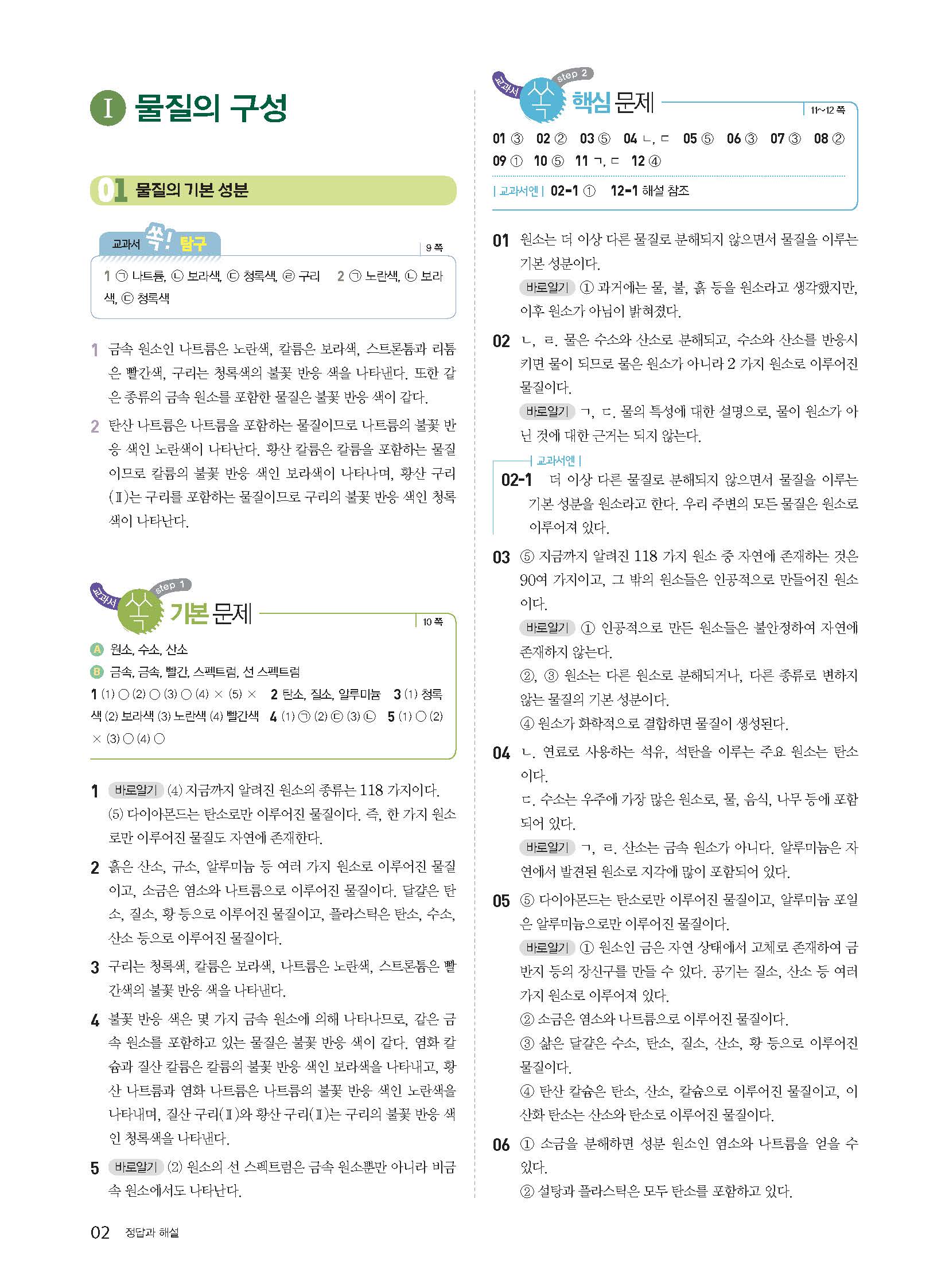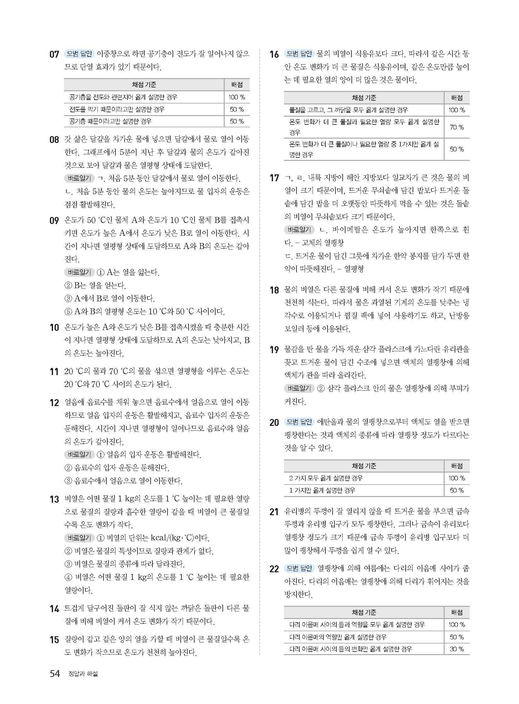 평가문제집 신사고 중등과학2 사진답지 빠른답지 모바일최적화