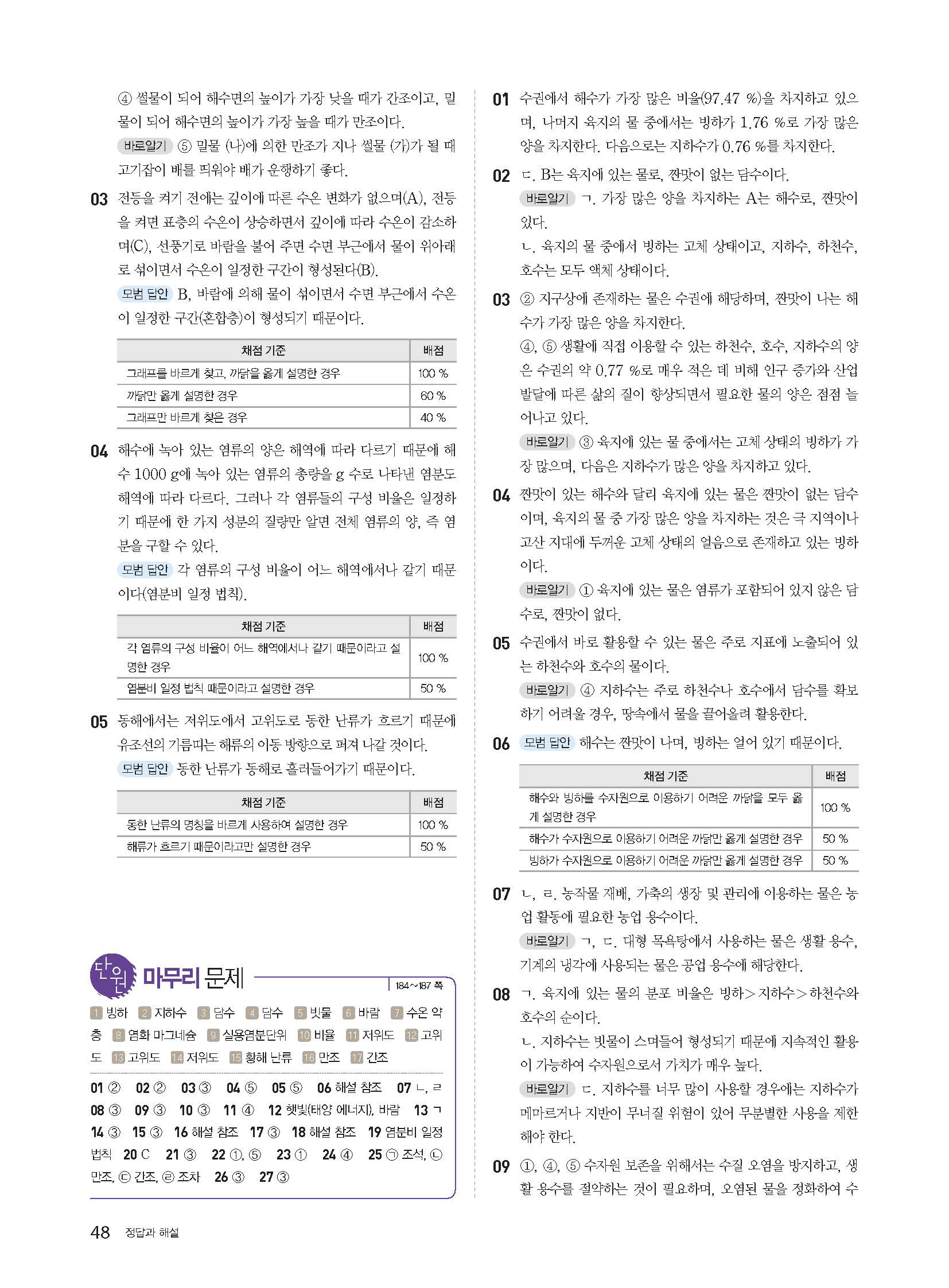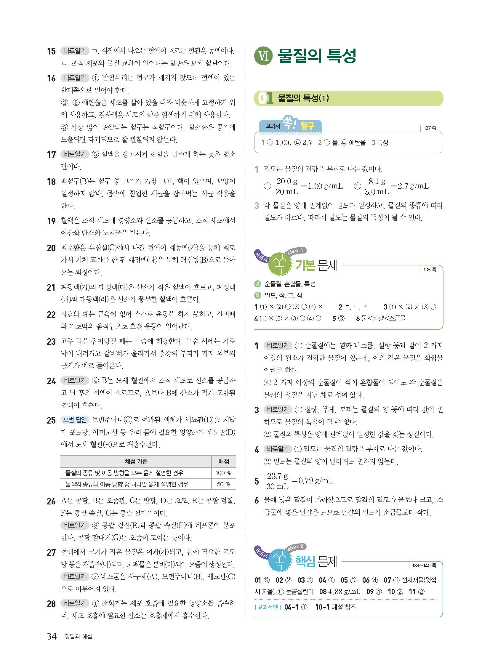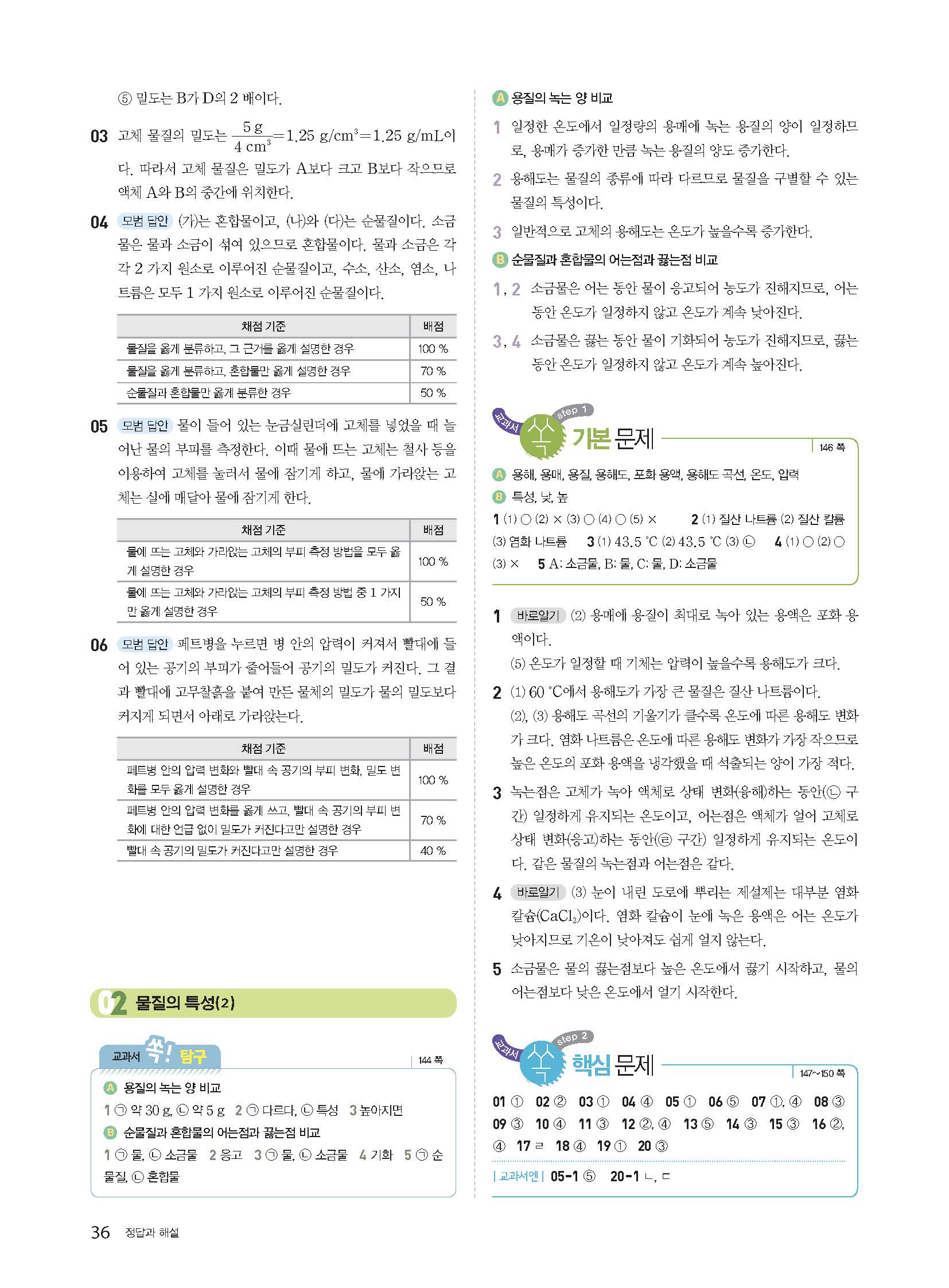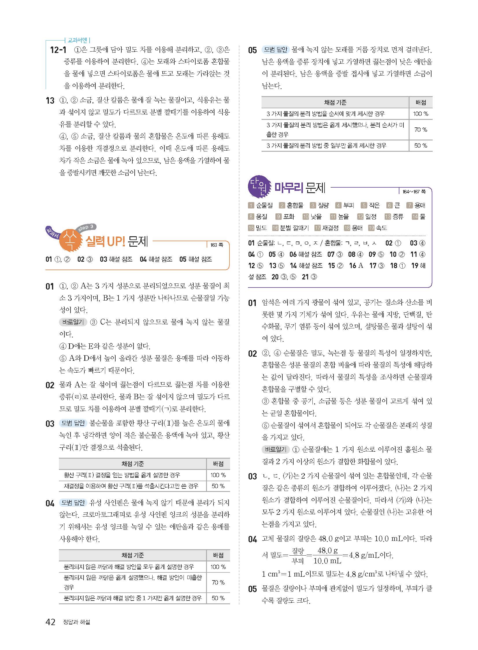평가문제집 신사고 중등과학2 사진답지 빠른답지 모바일최적화