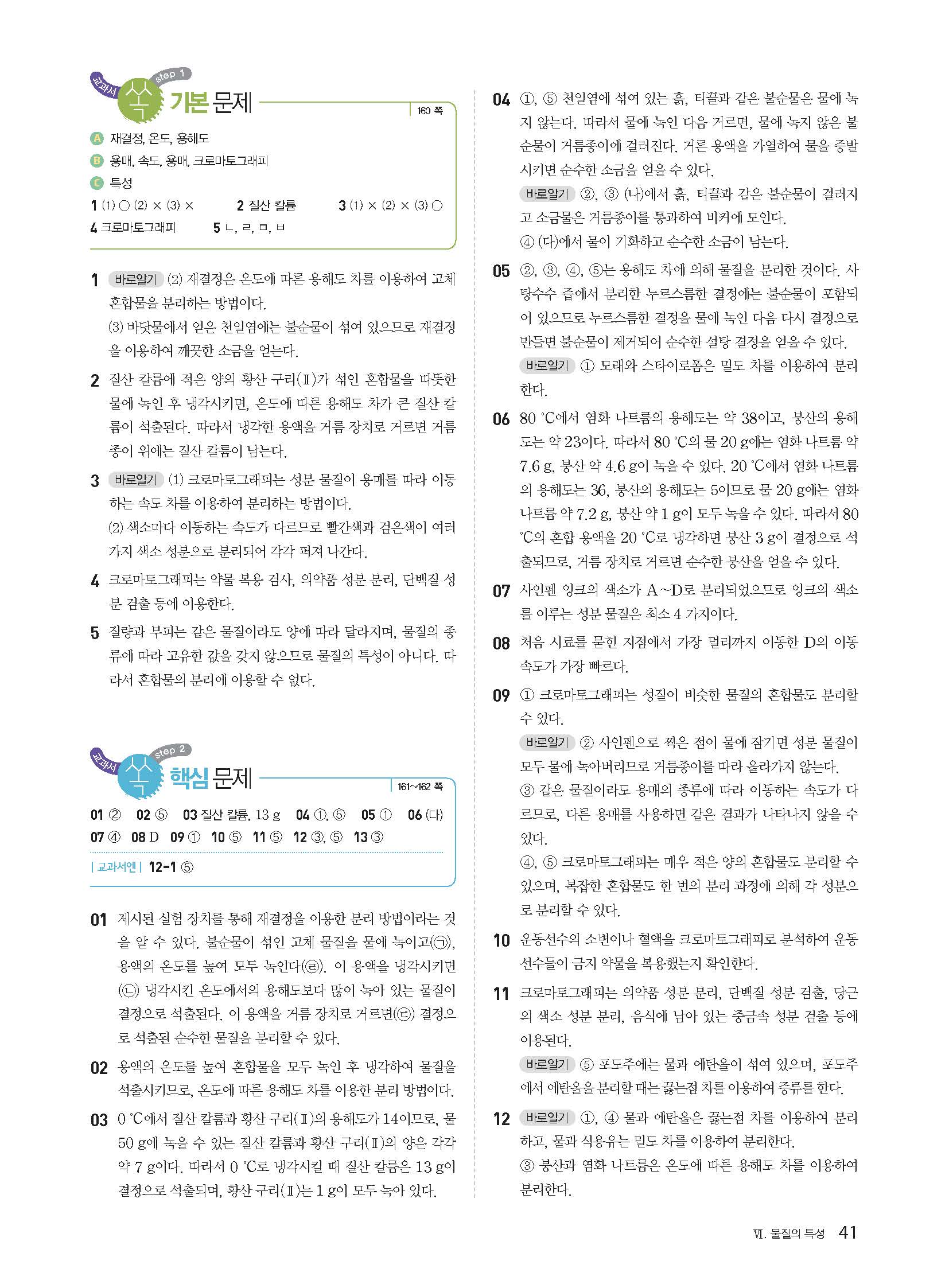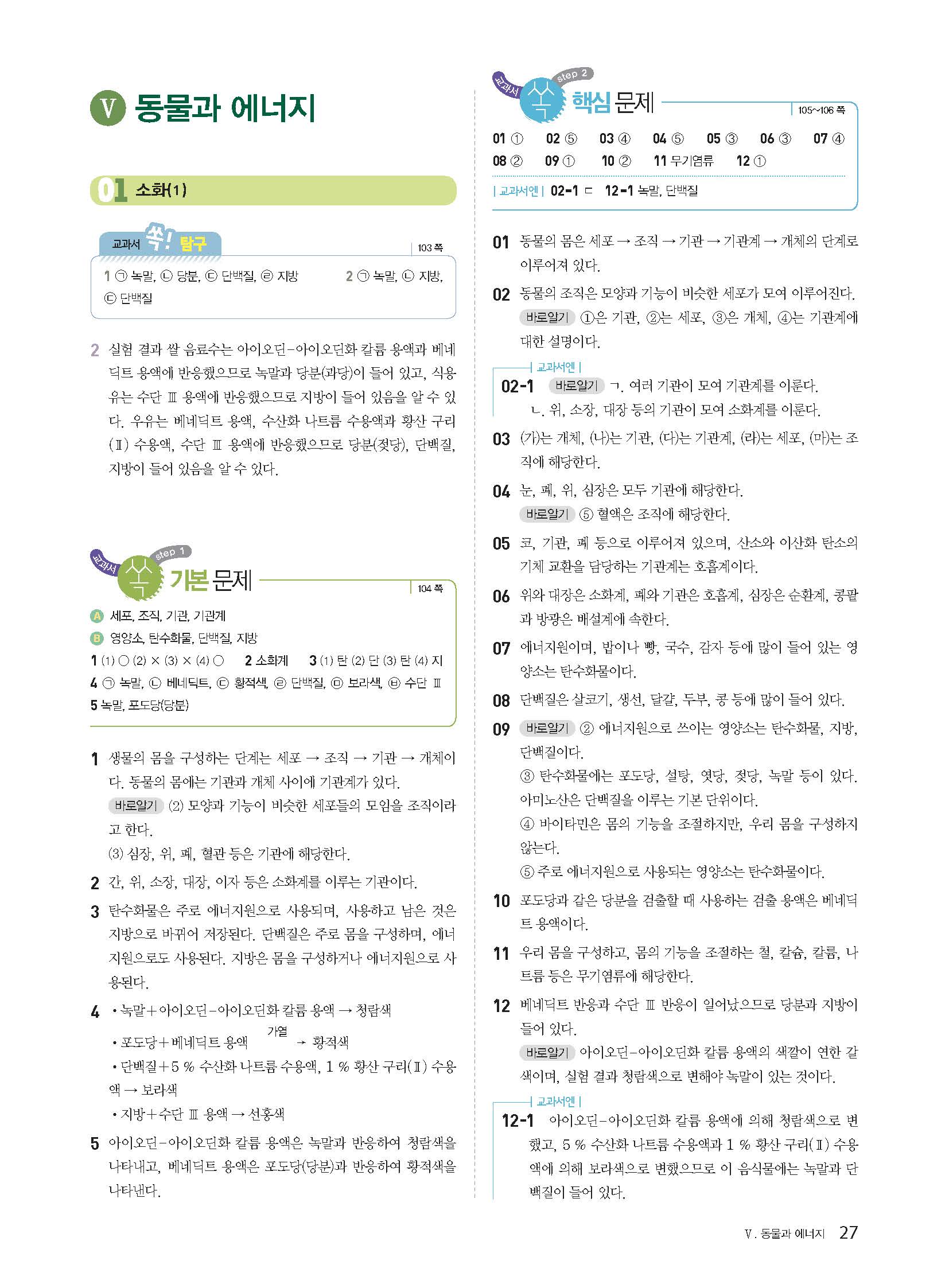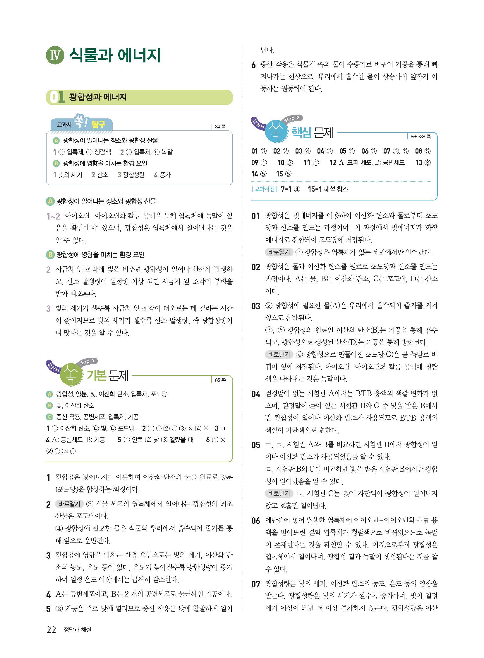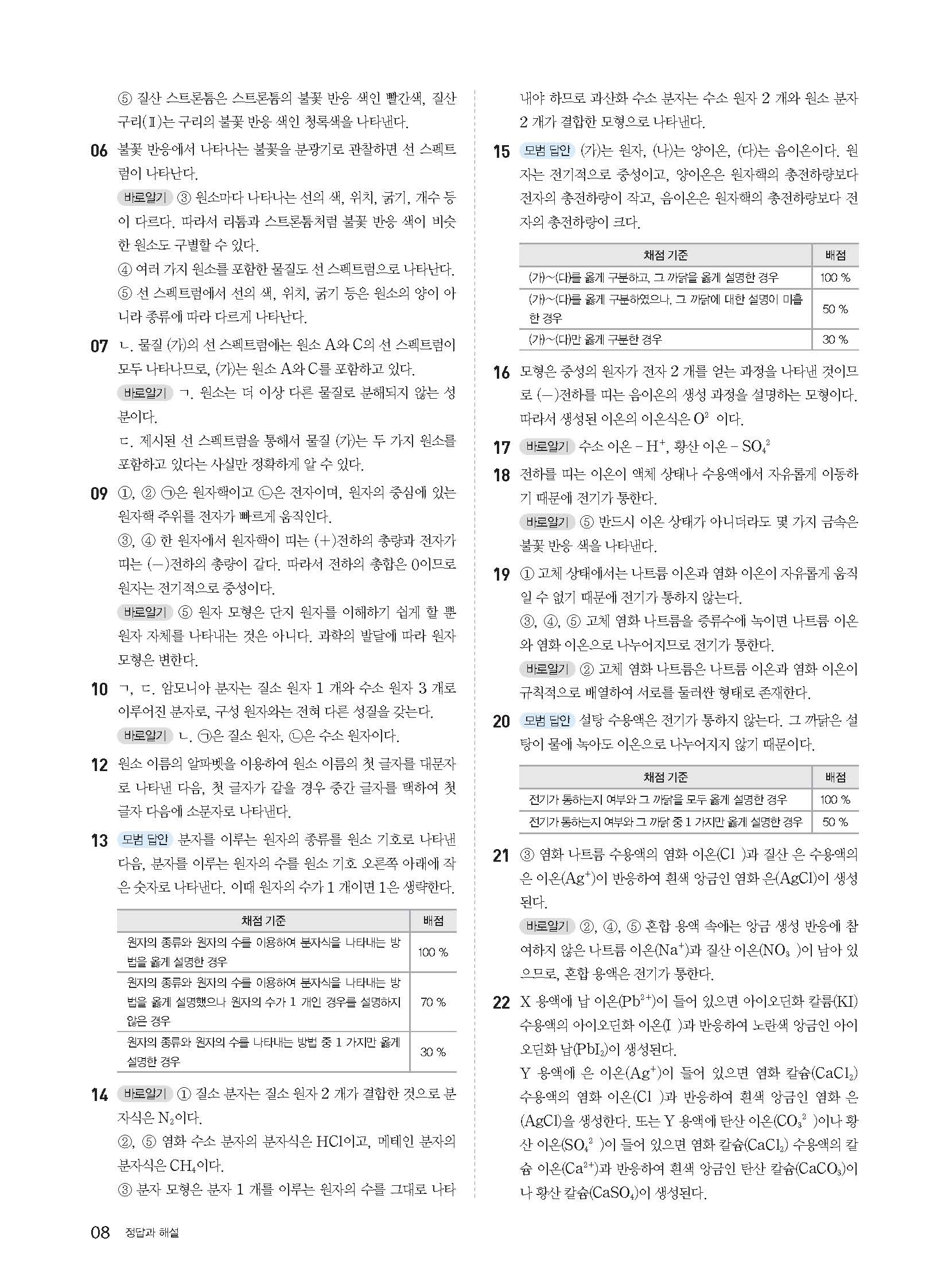 평가문제집 신사고 중등과학2 사진답지 빠른답지 모바일최적화