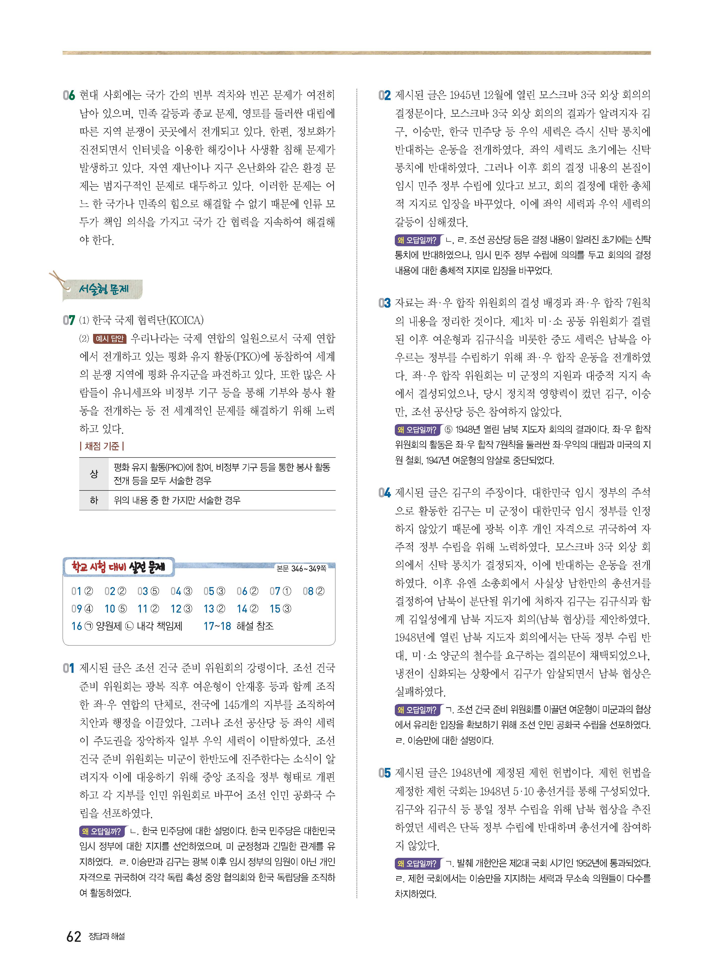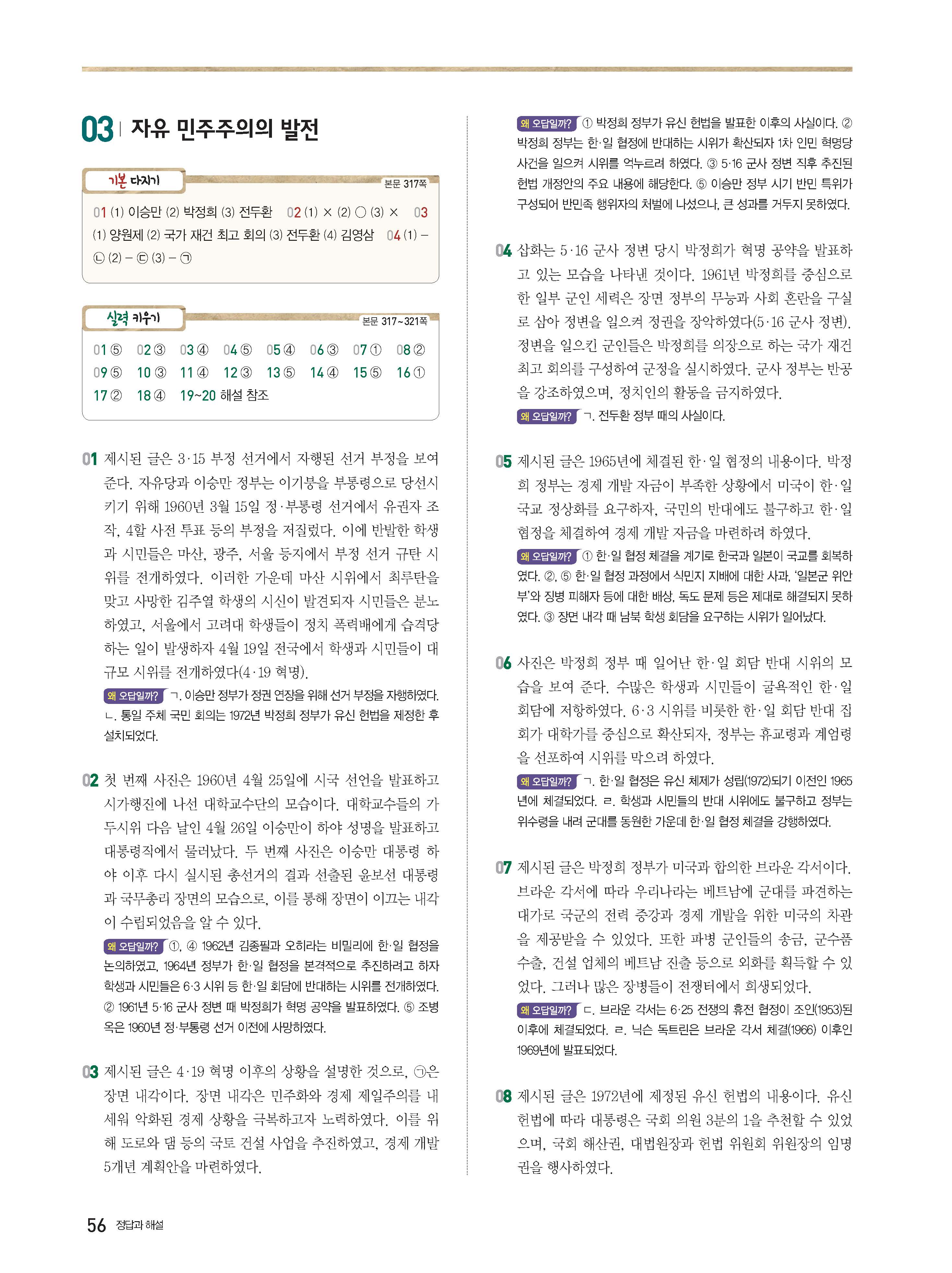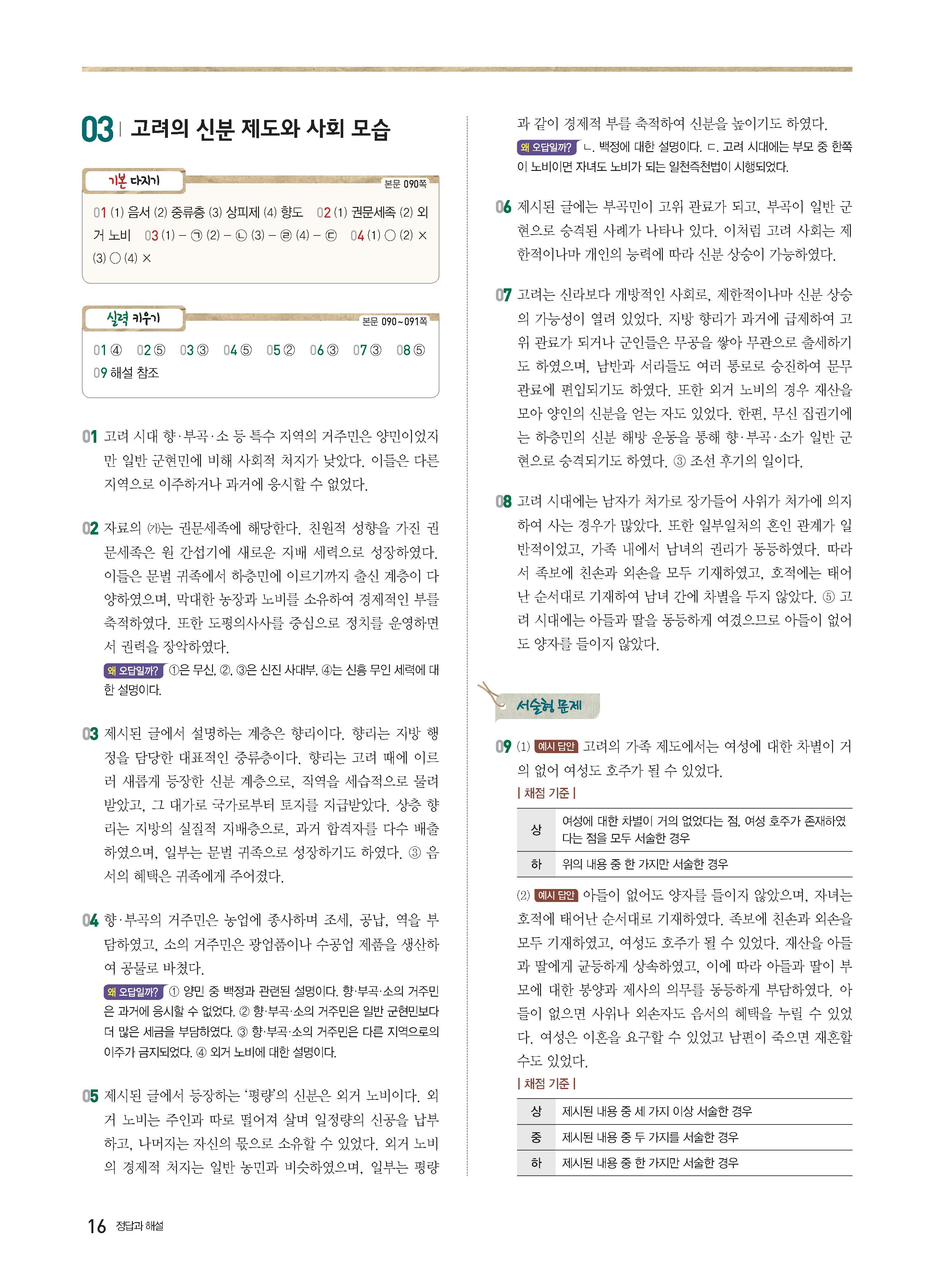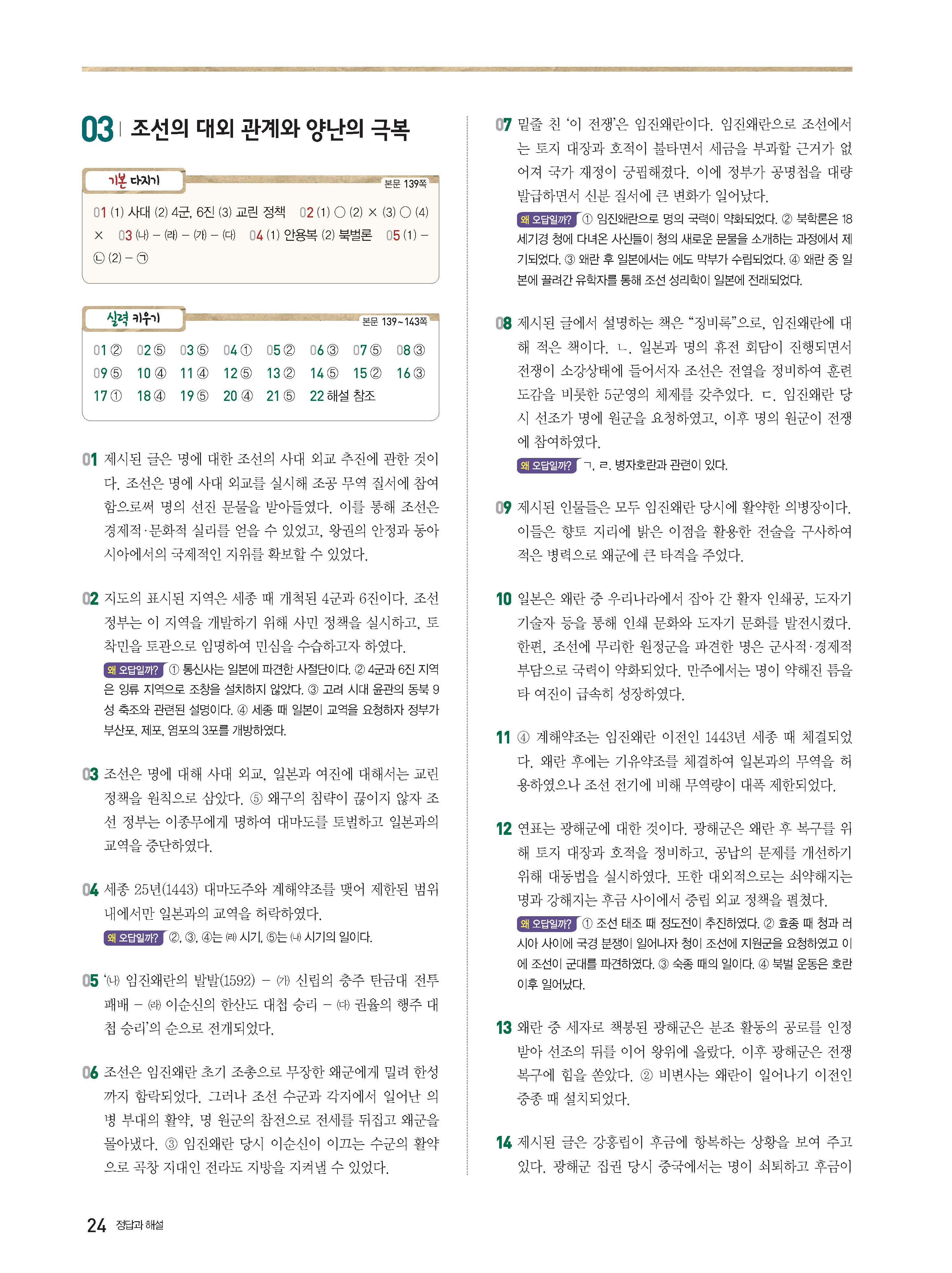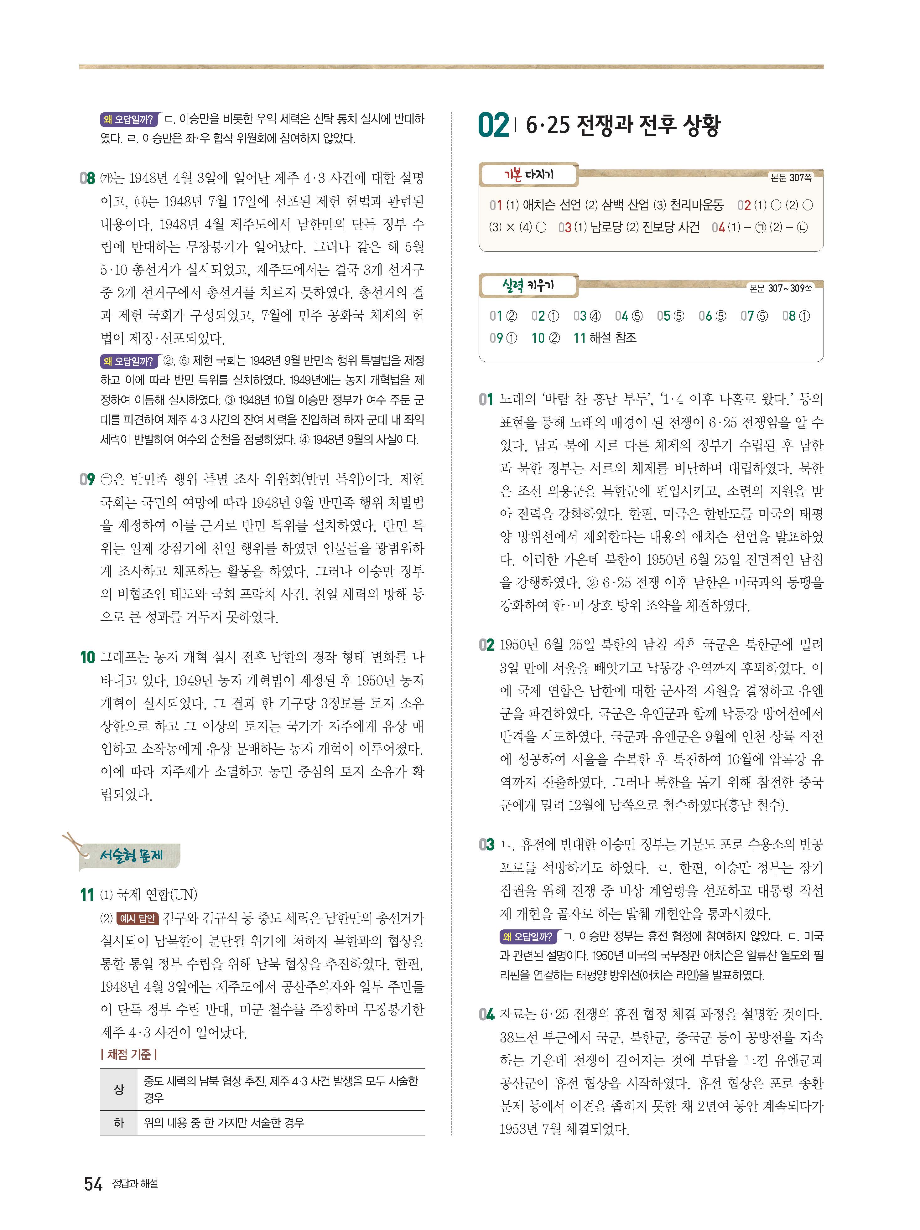 비상 자습서 고등한국사 사진답지 빠른답지 모바일최적화