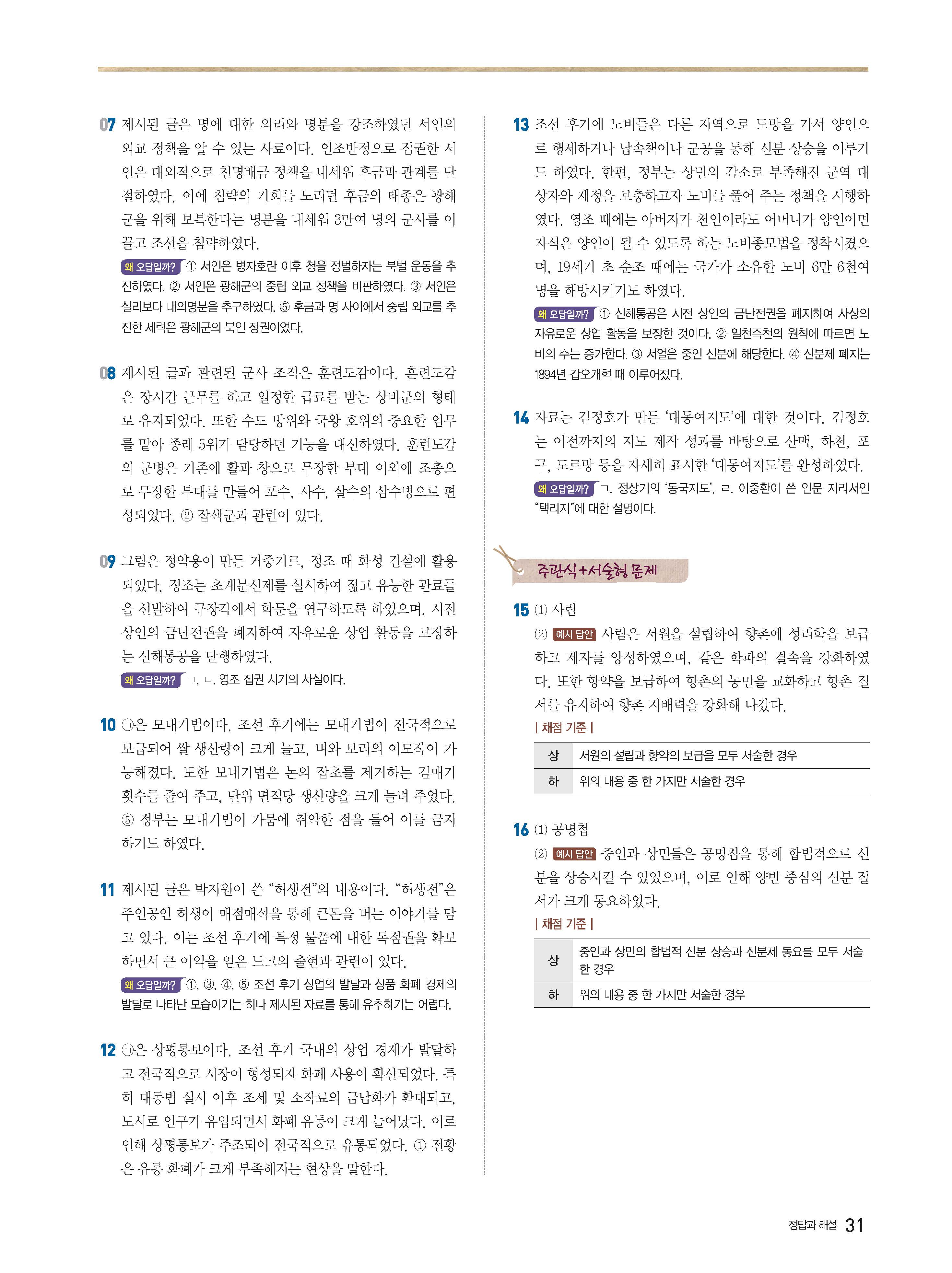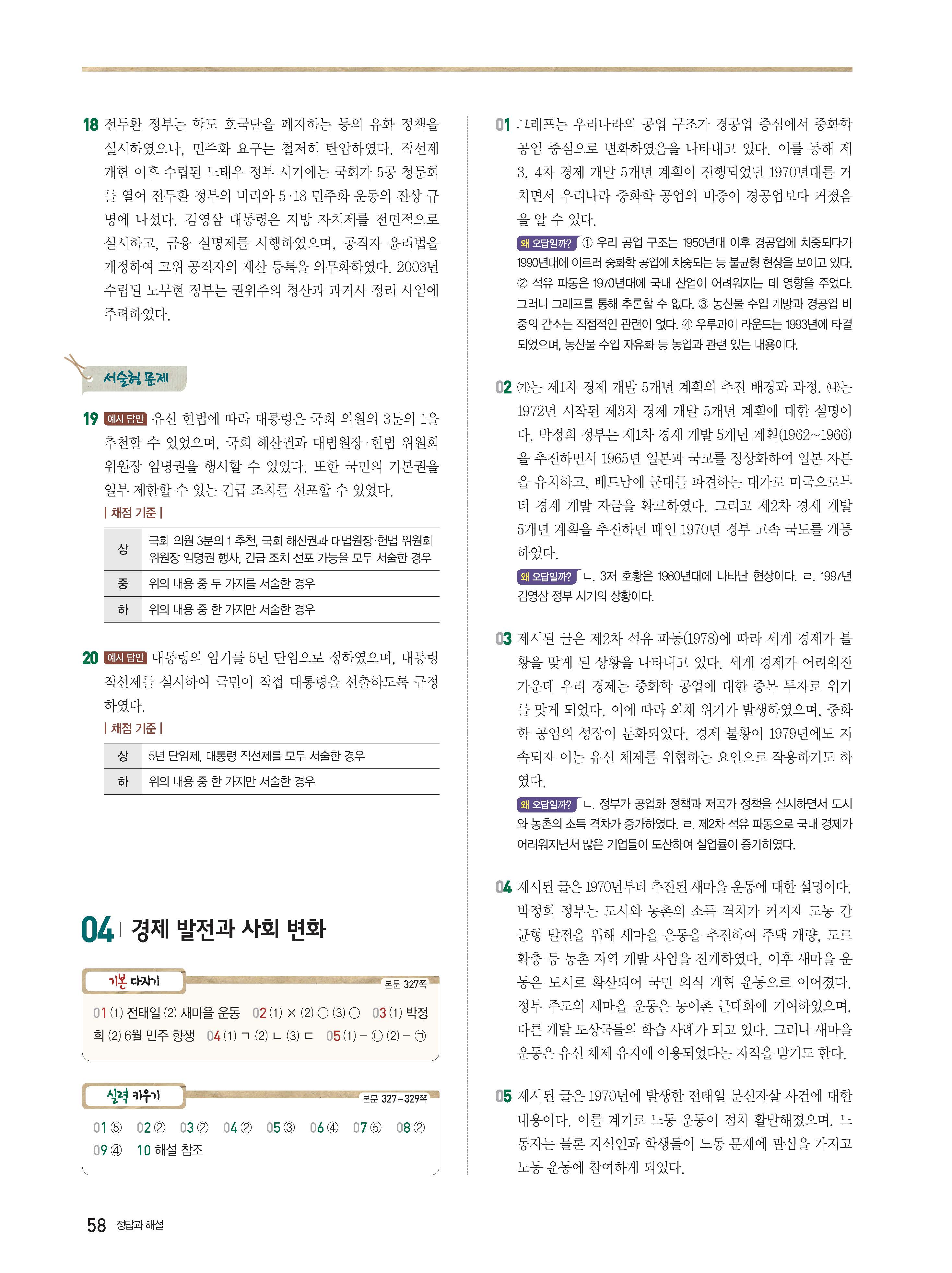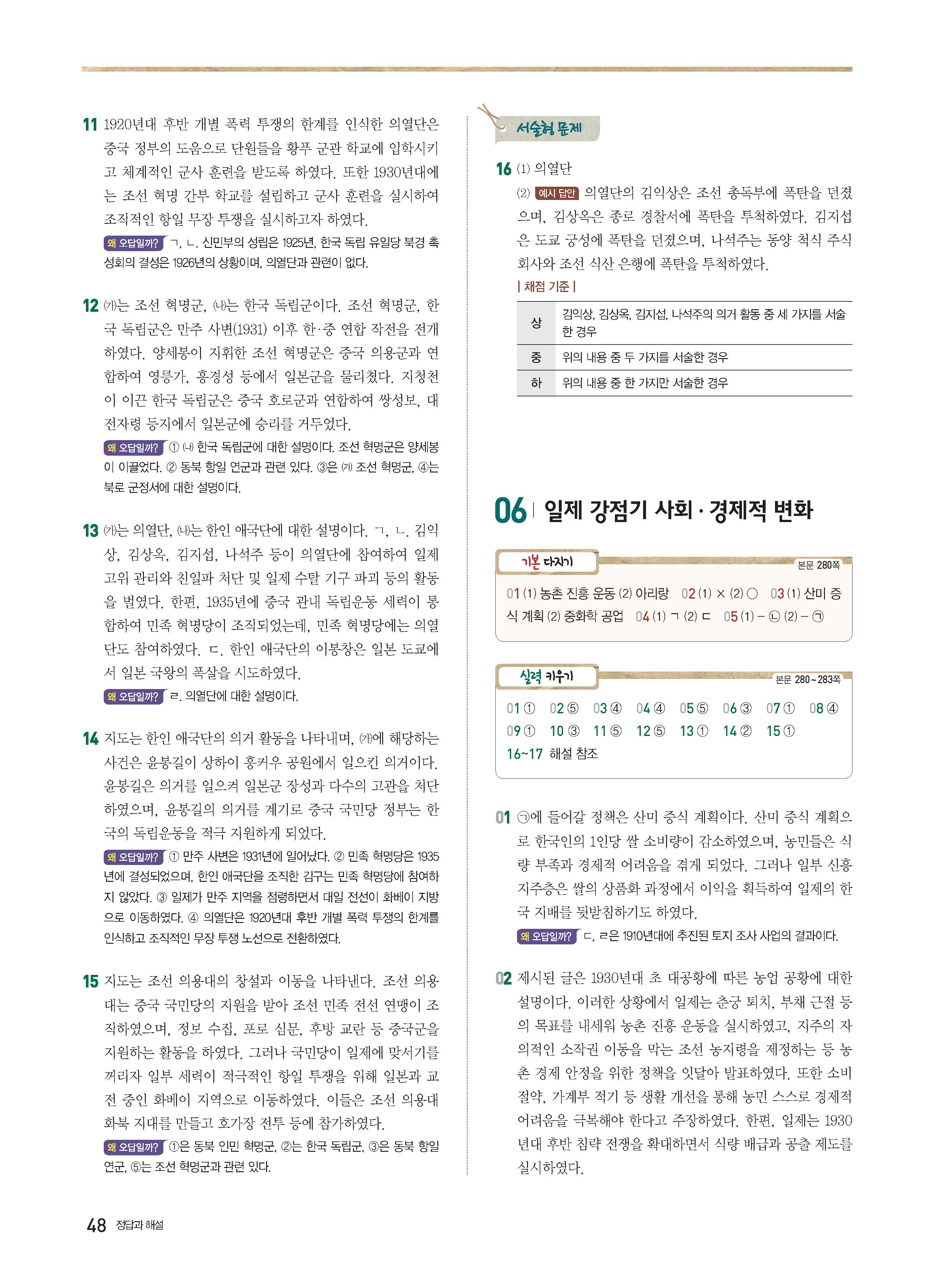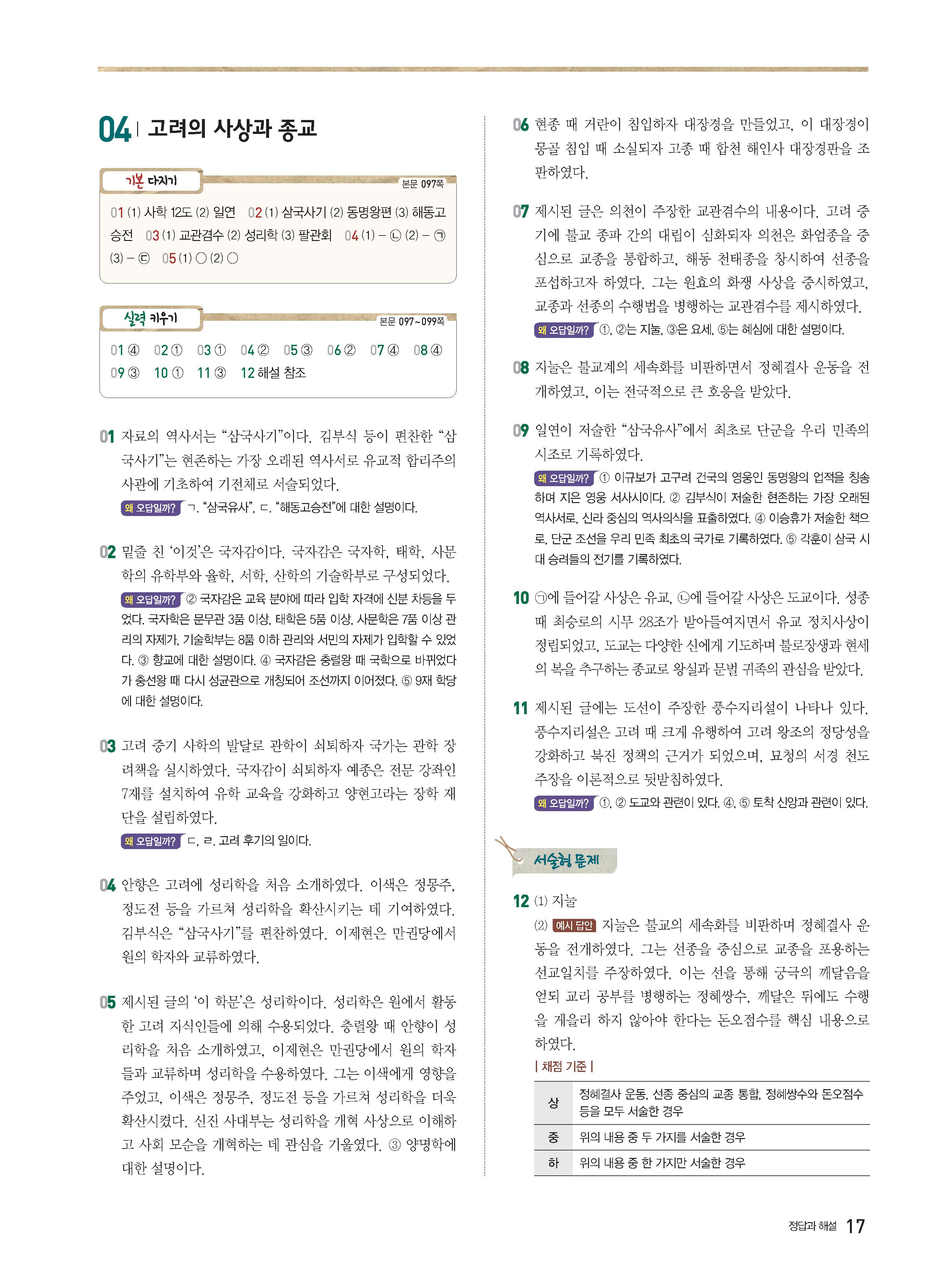 비상 자습서 고등한국사 사진답지 빠른답지 모바일최적화