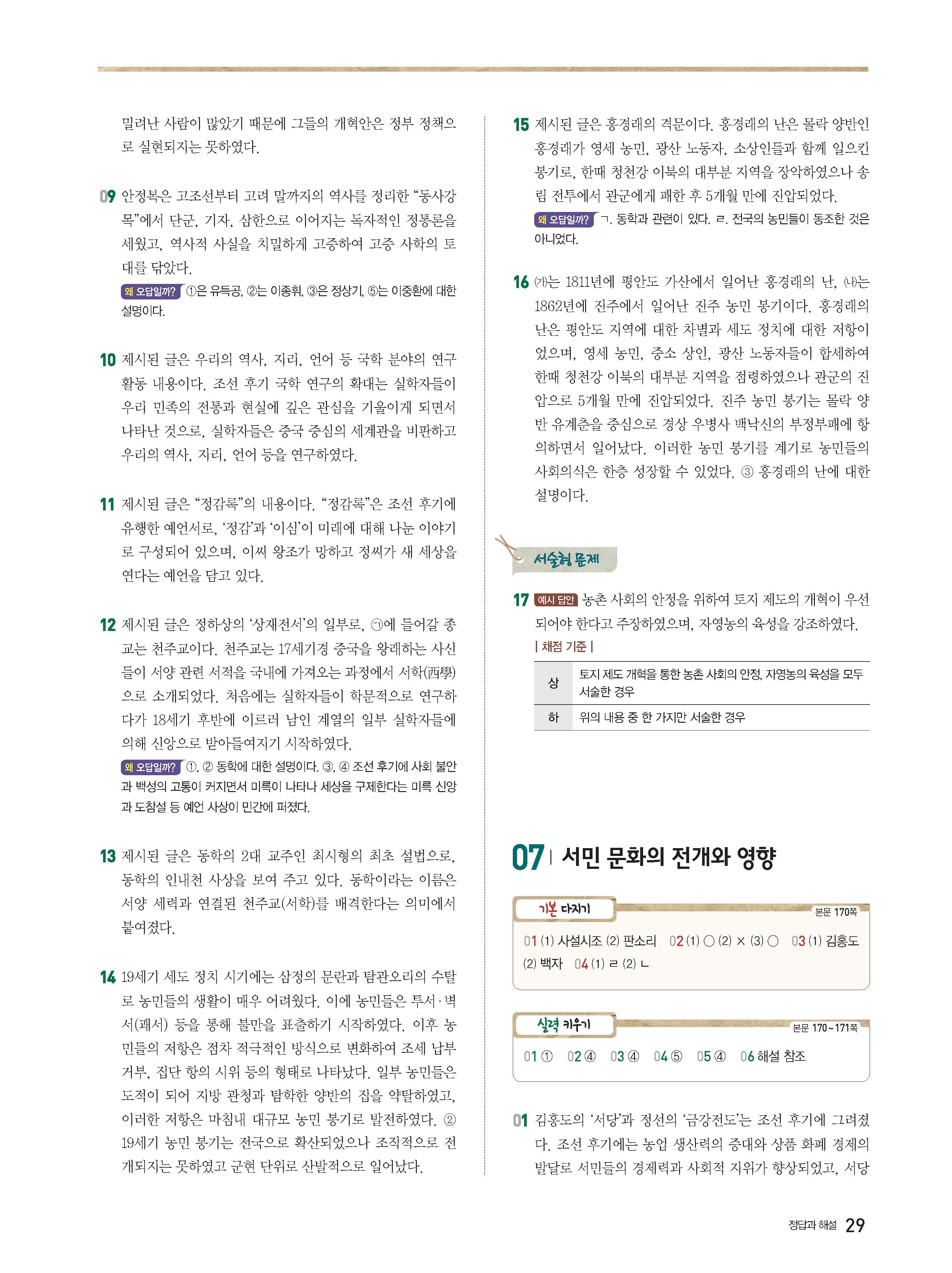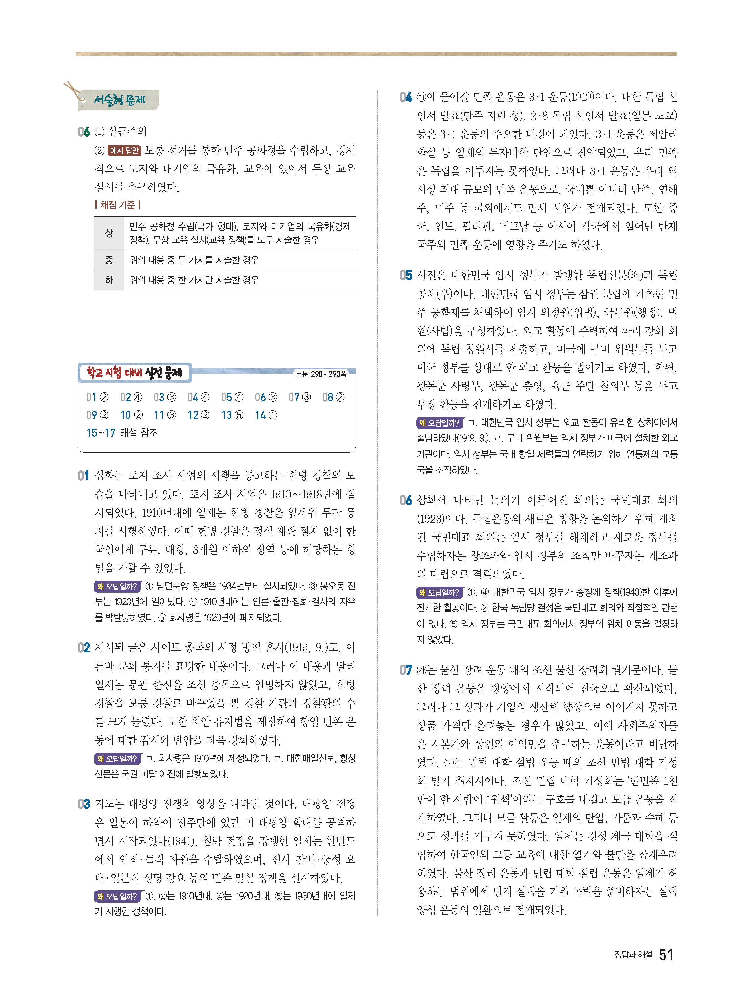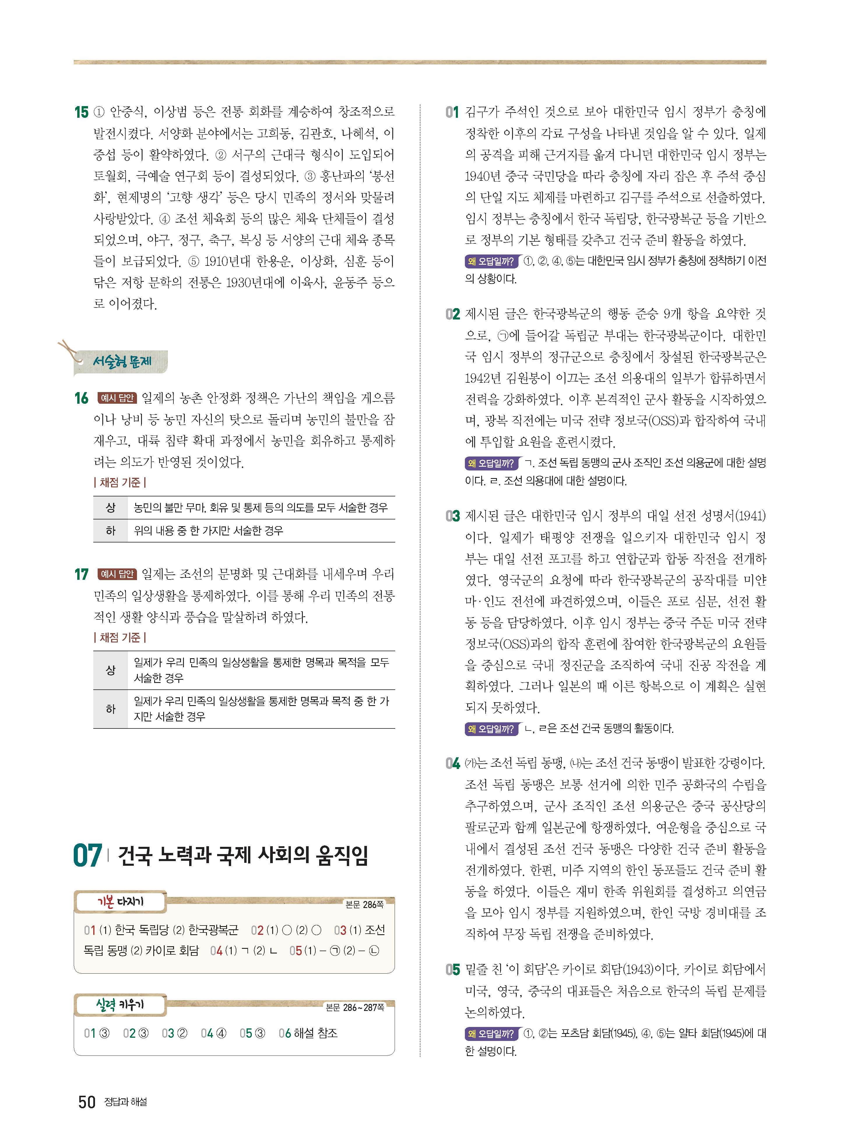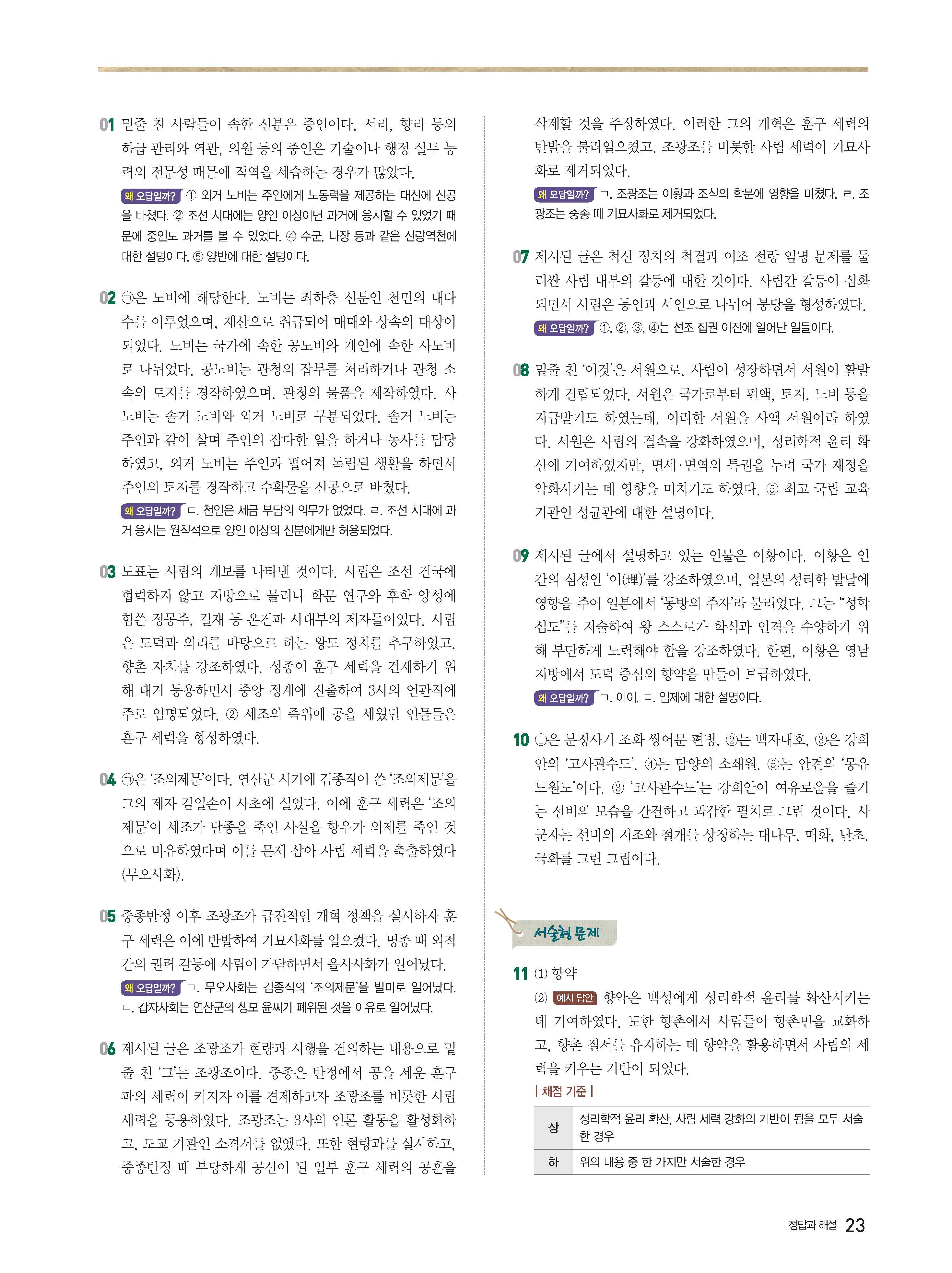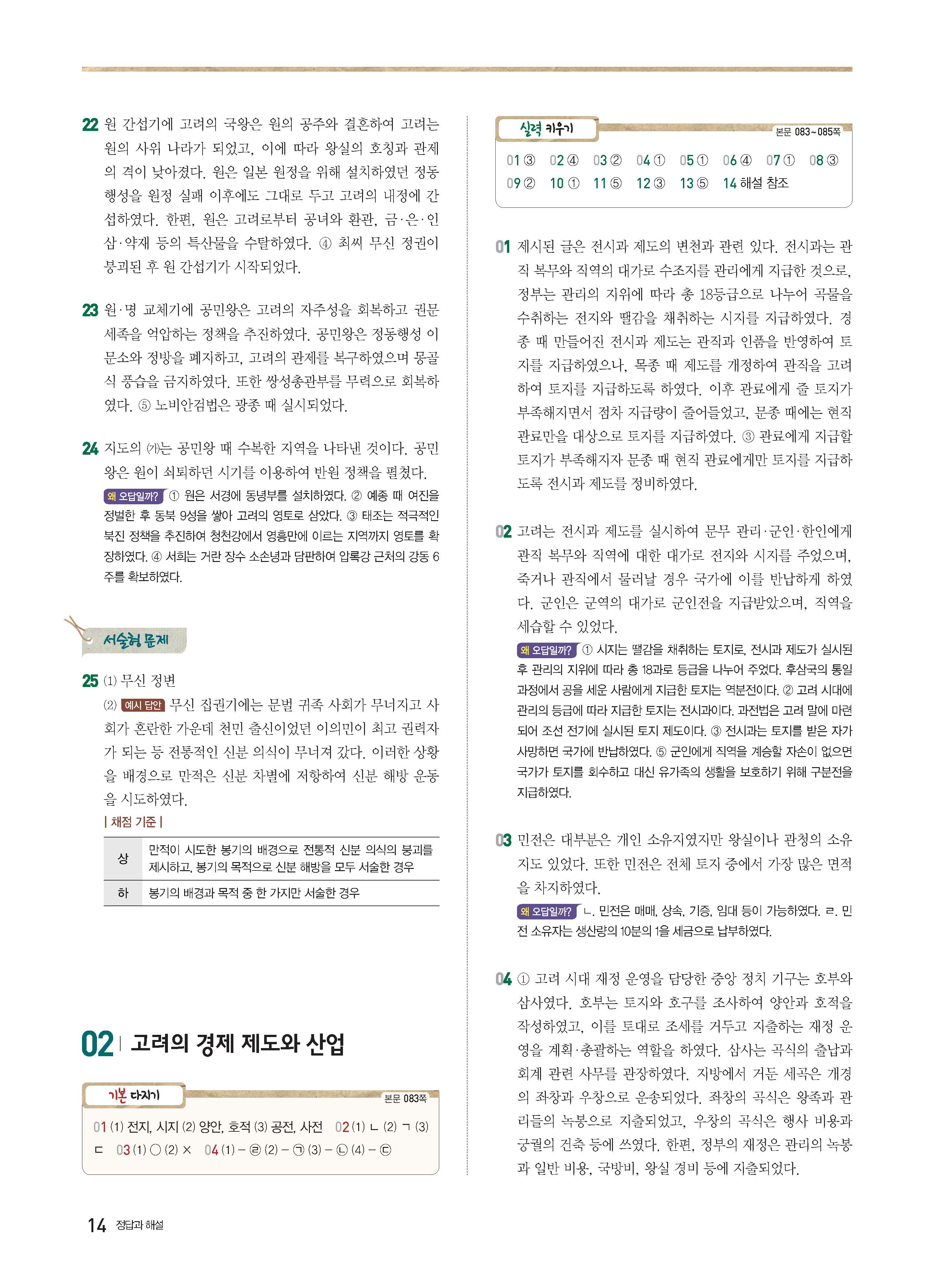 비상 자습서 고등한국사 사진답지 빠른답지 모바일최적화