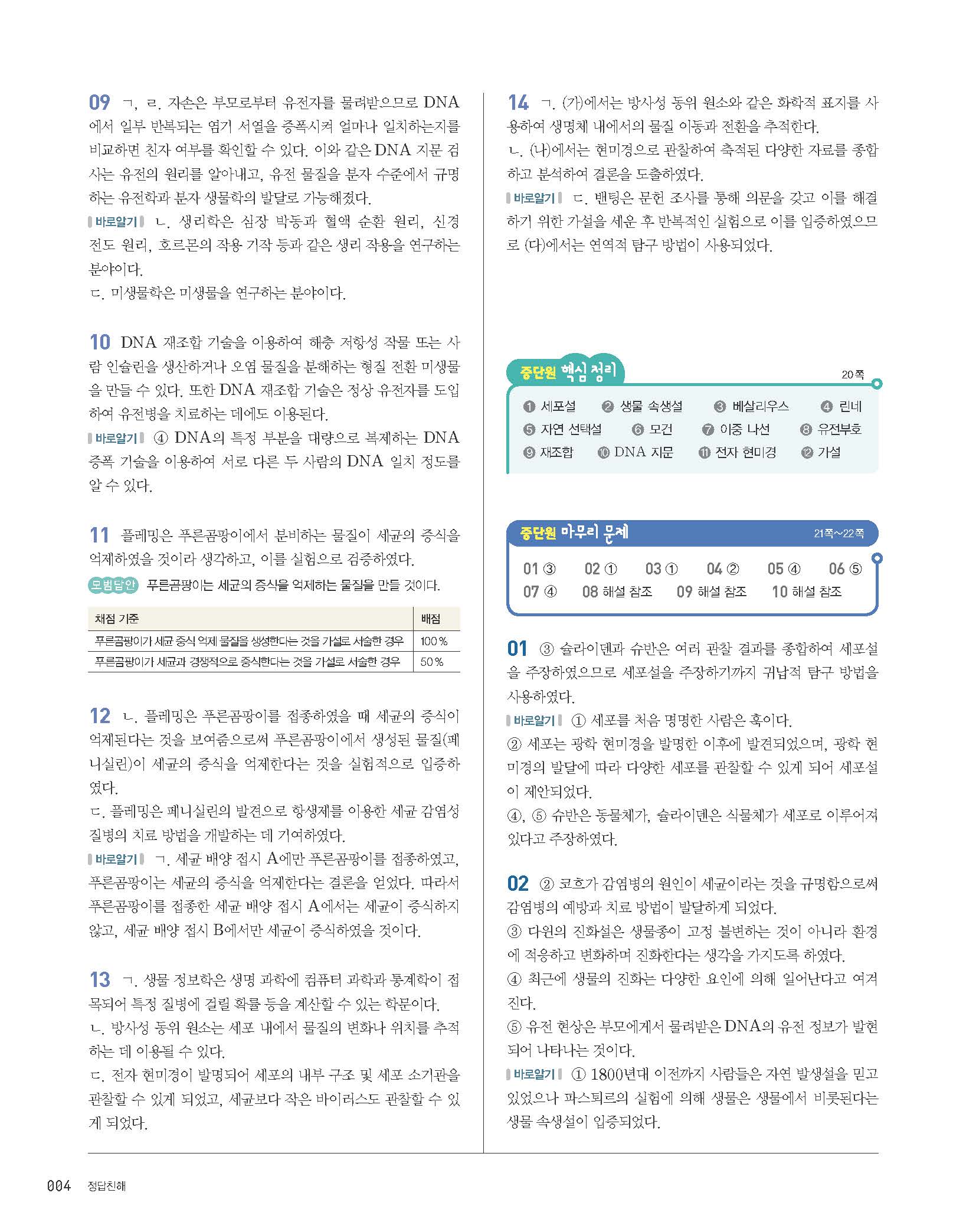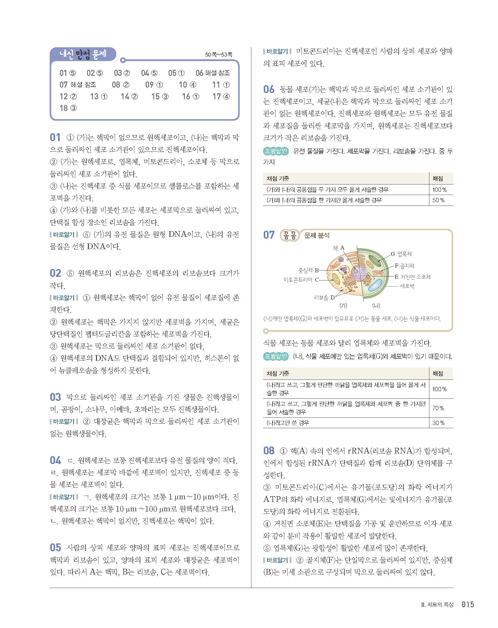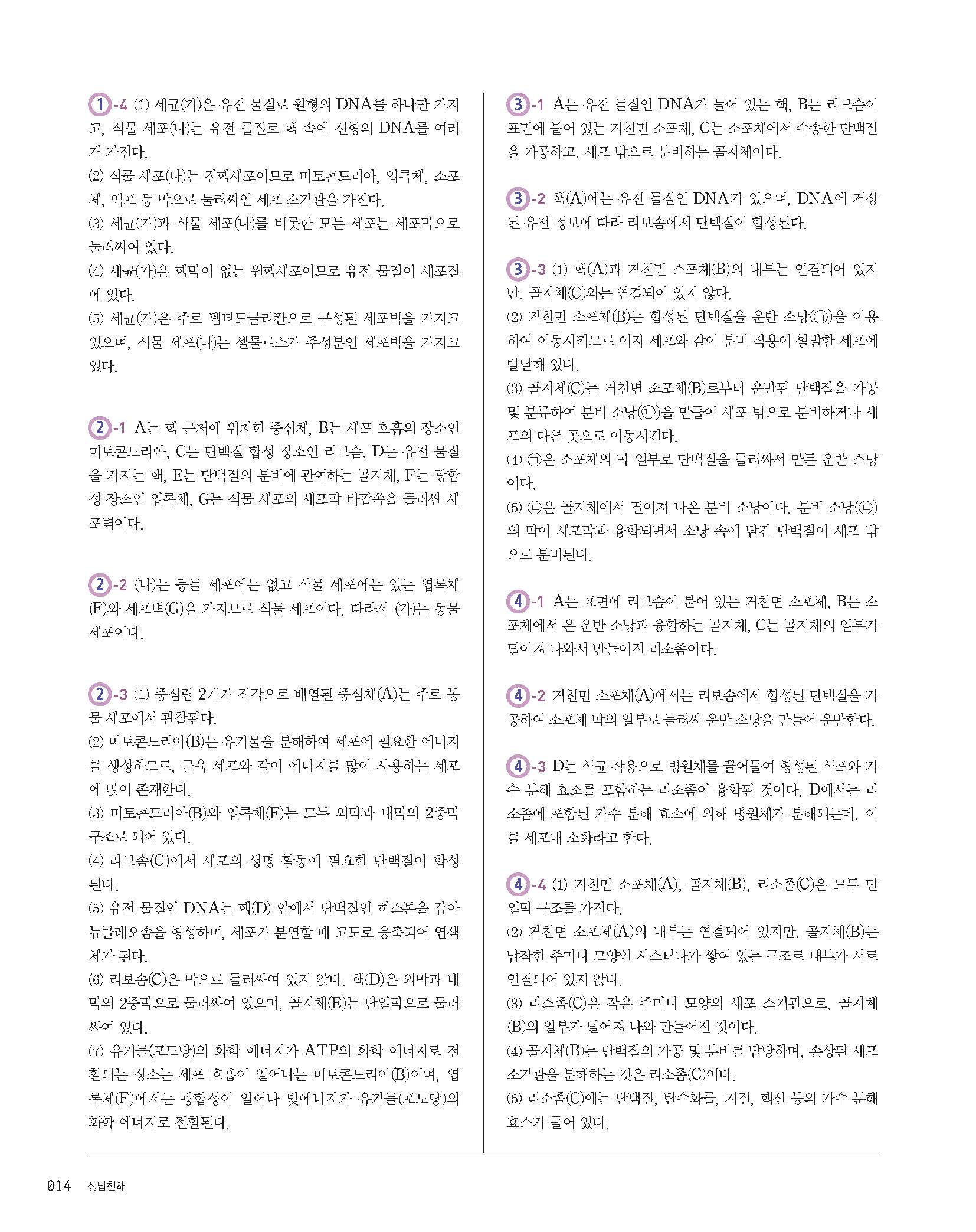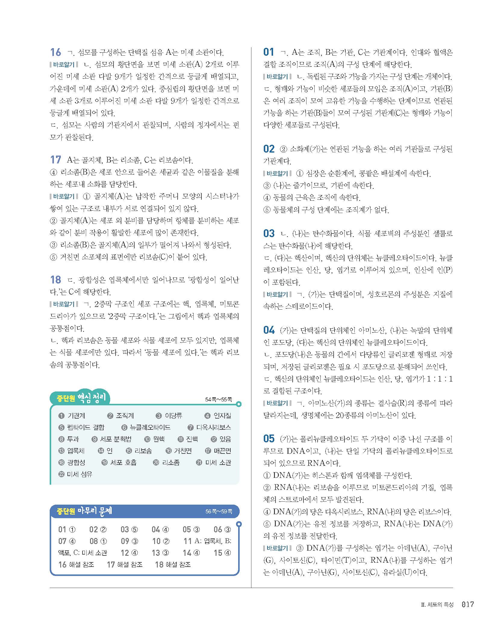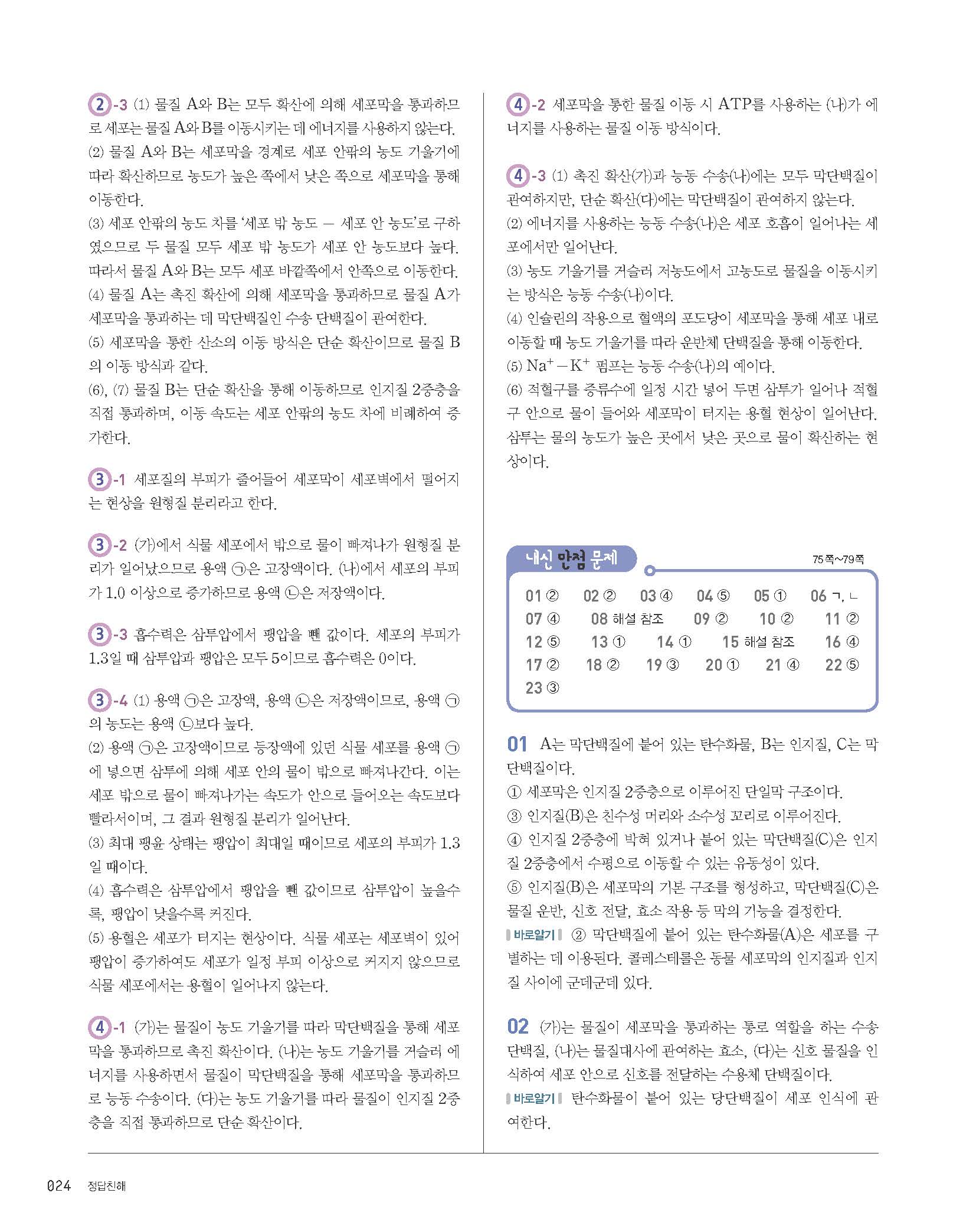 완자 고등생명과학2 사진답지 빠른답지 모바일최적화