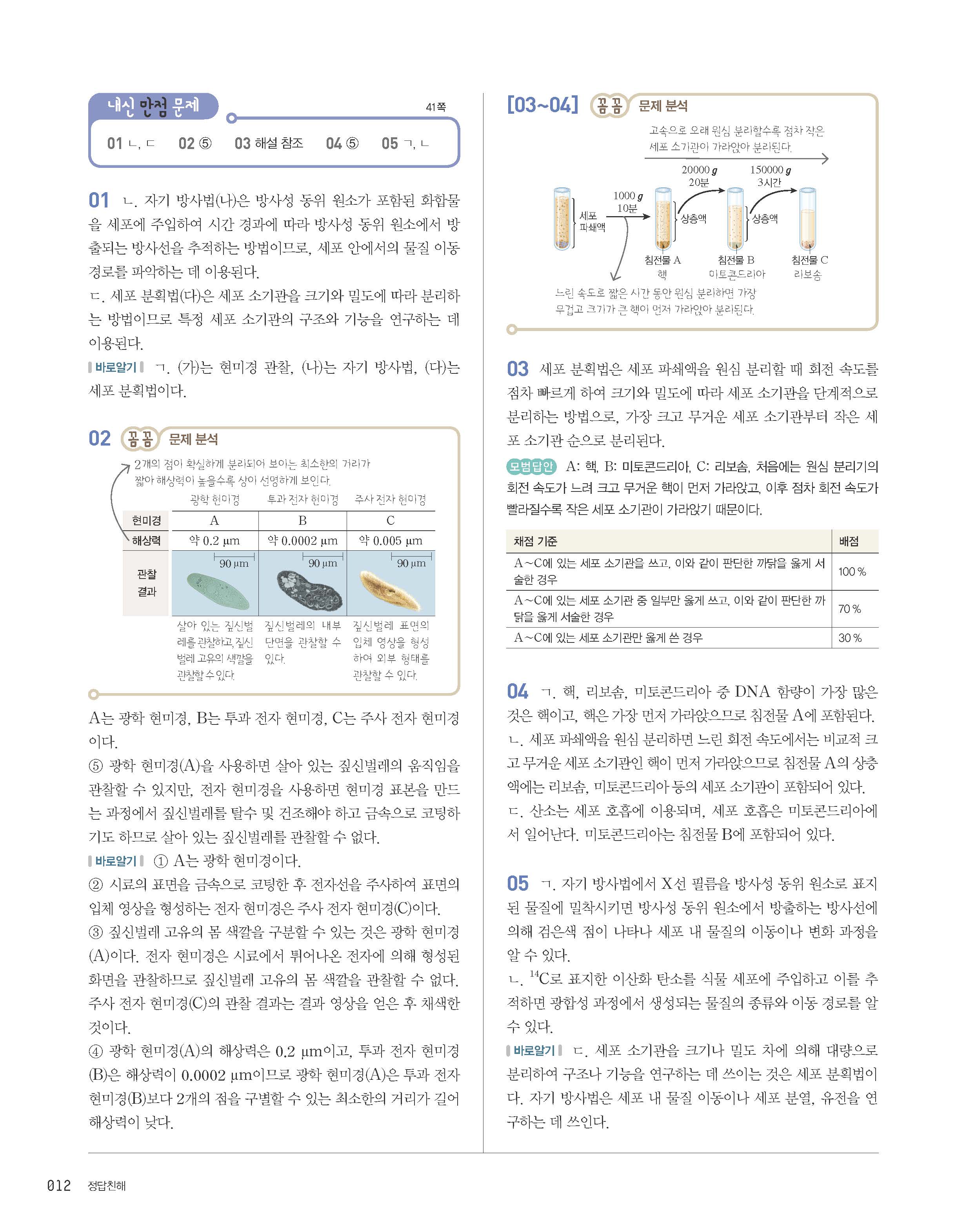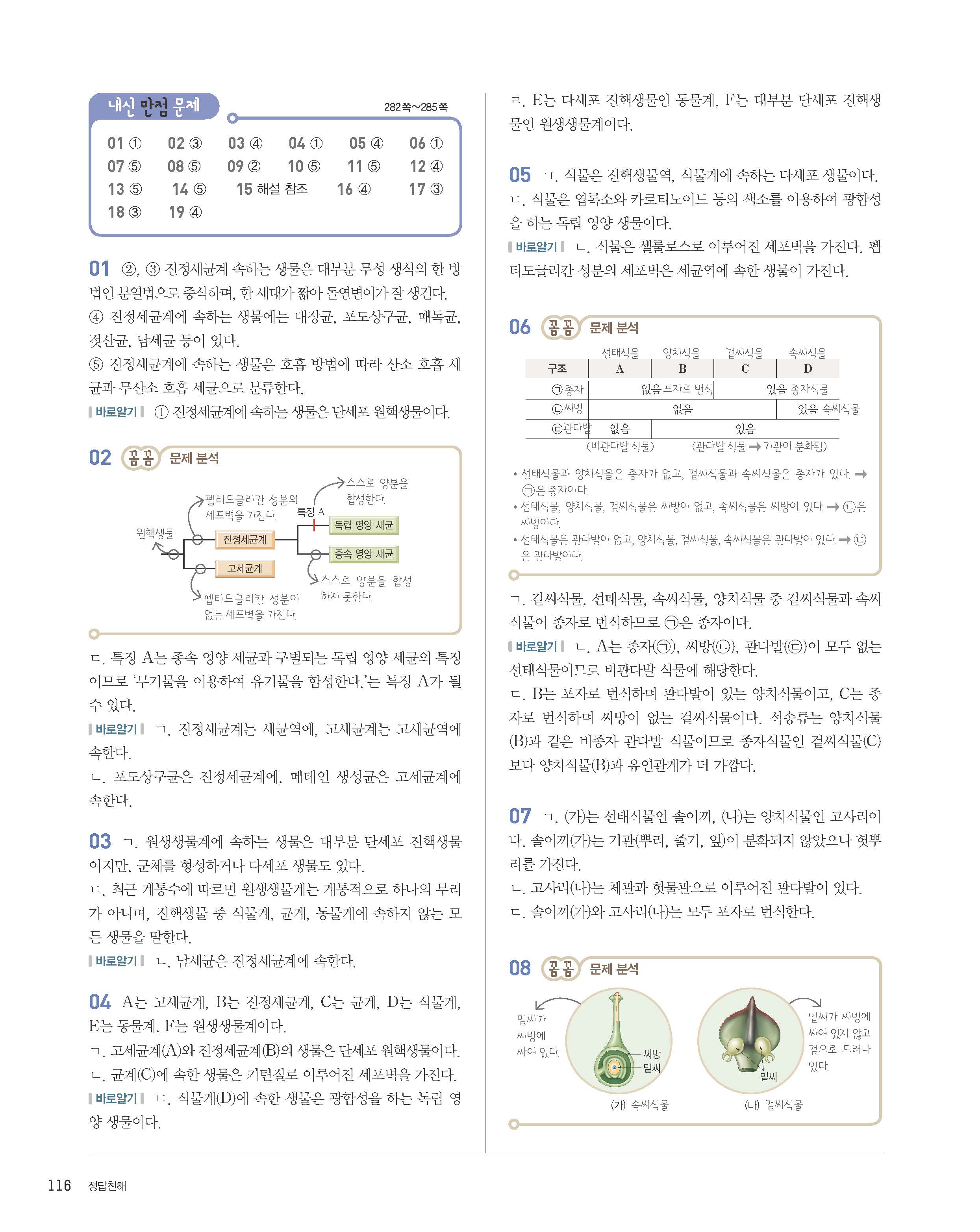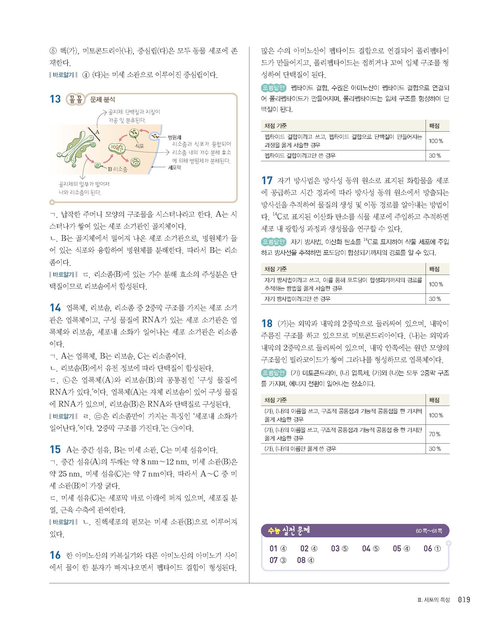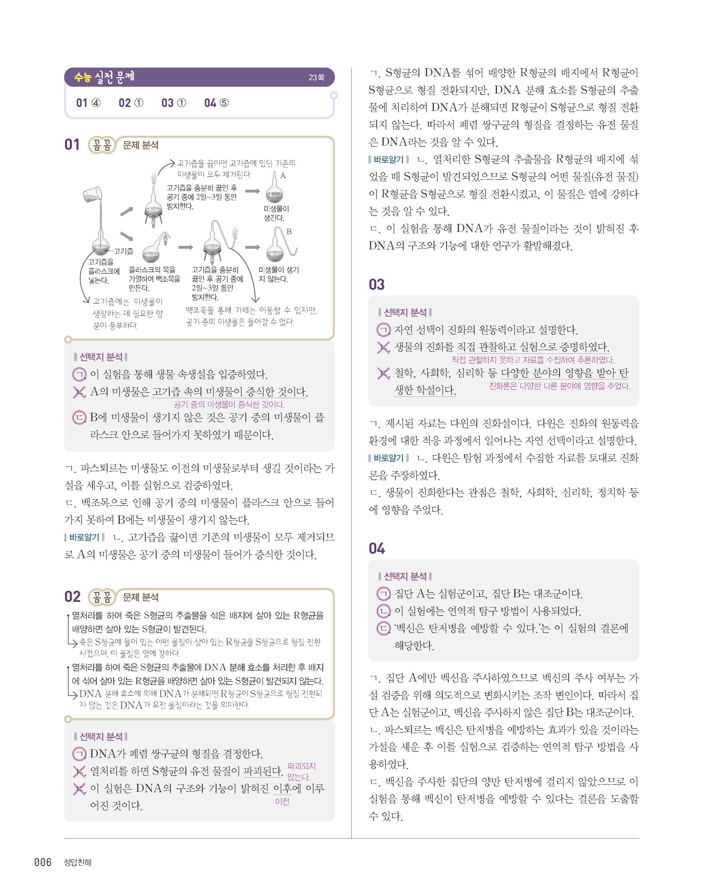 완자 고등생명과학2 사진답지 빠른답지 모바일최적화