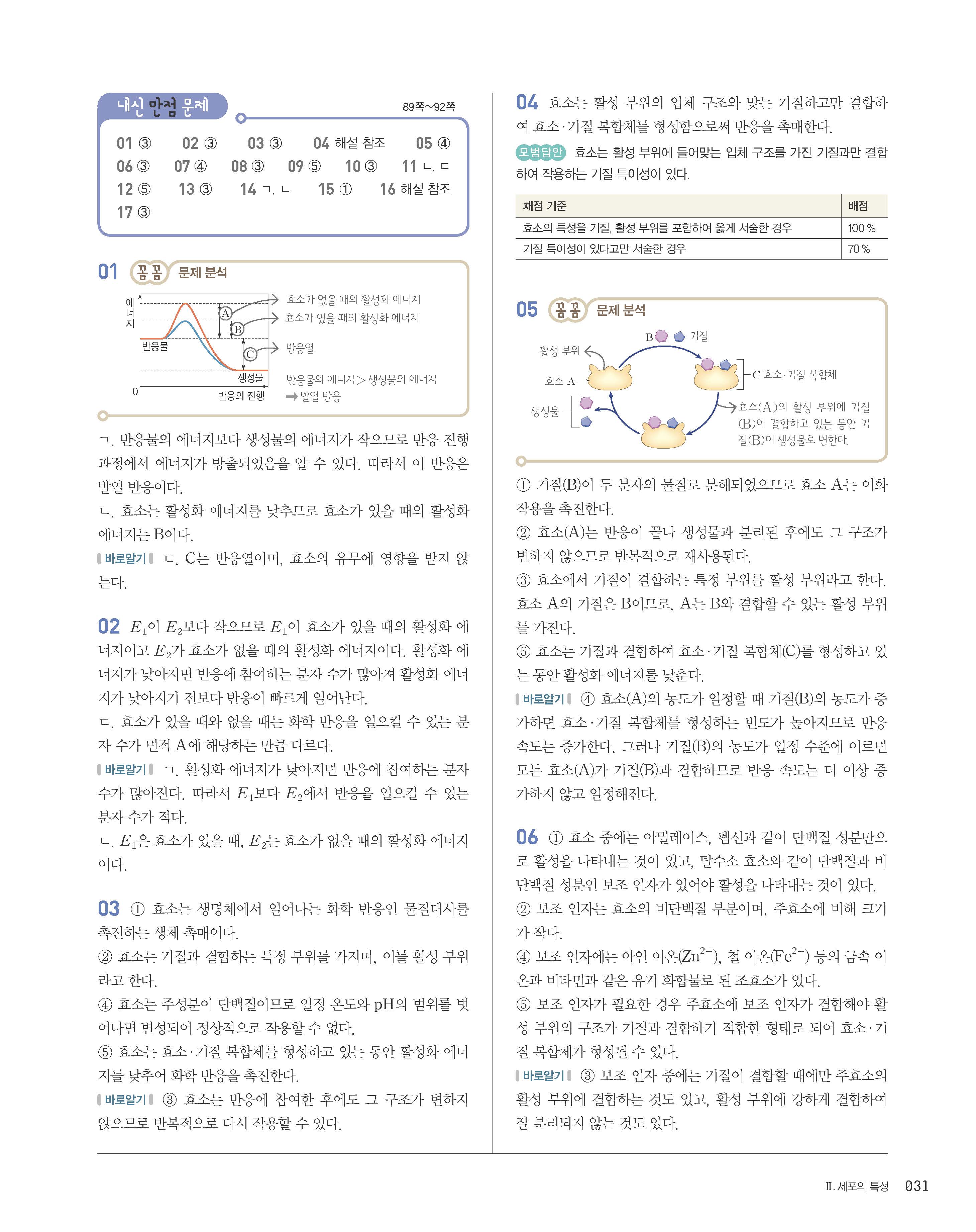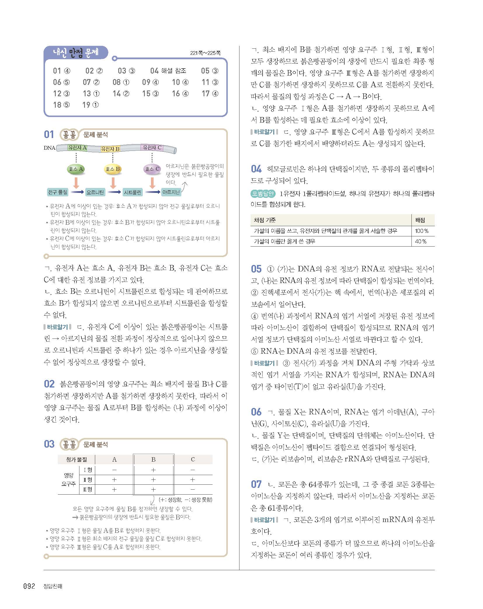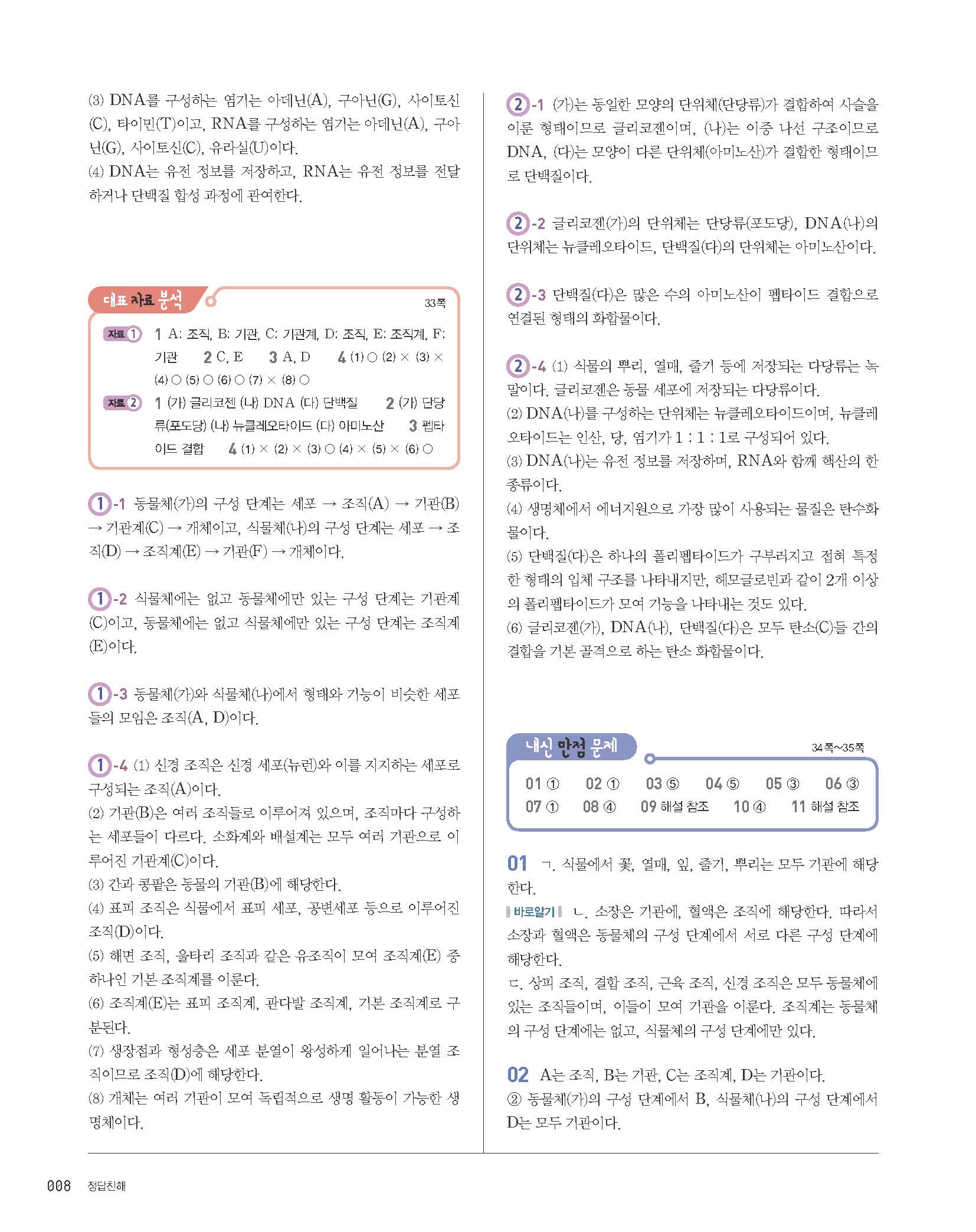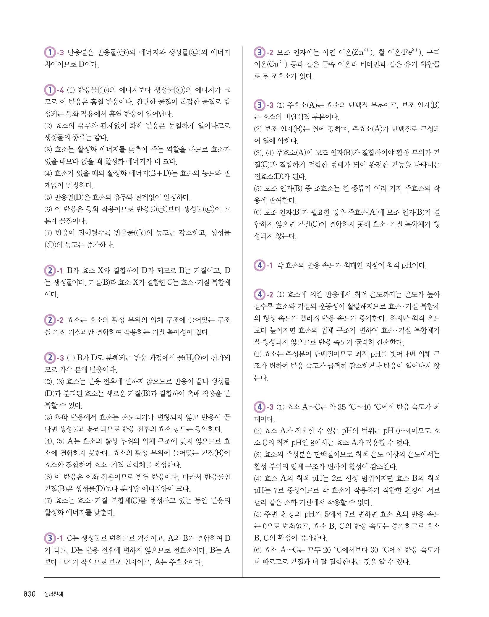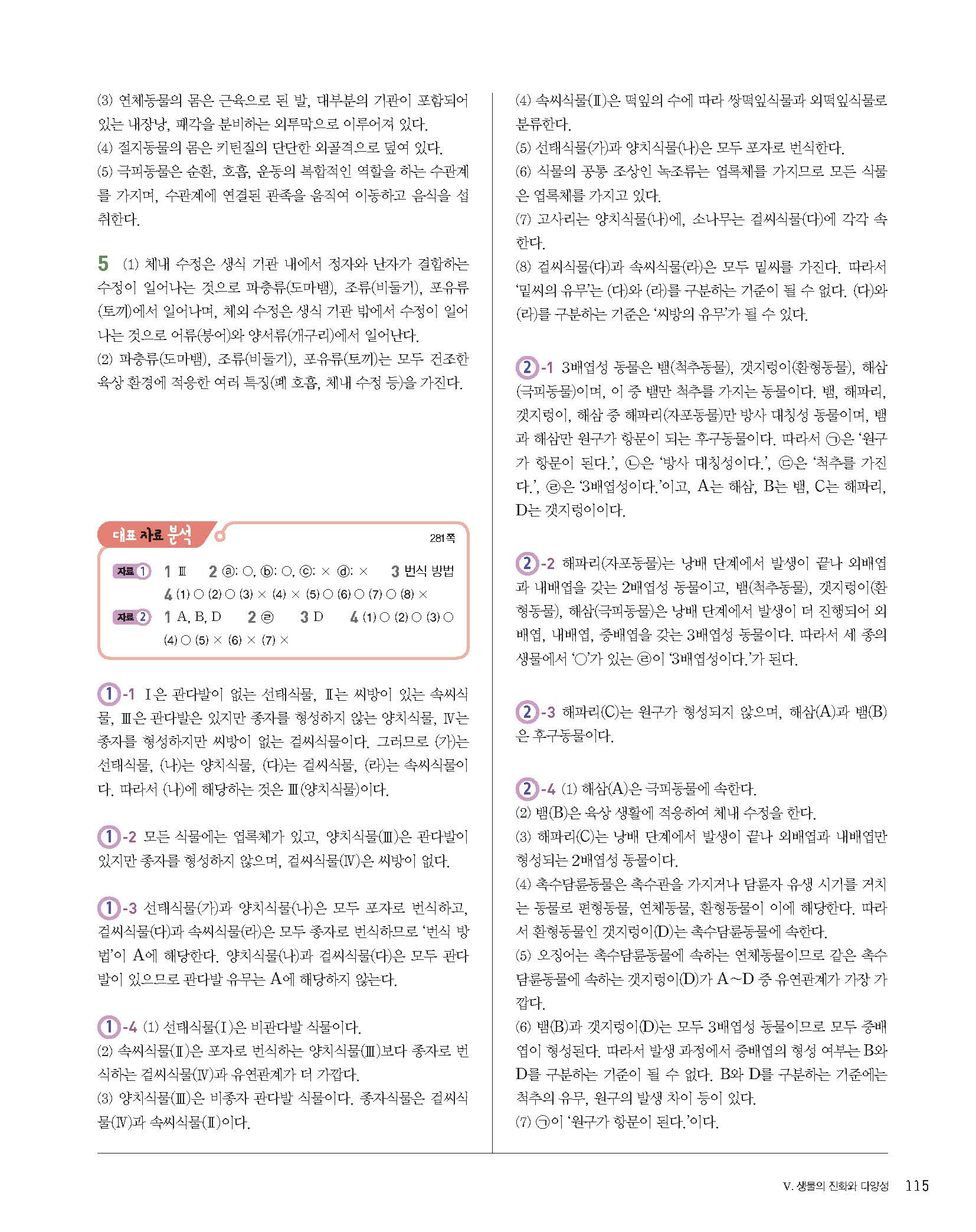 완자 고등생명과학2 사진답지 빠른답지 모바일최적화