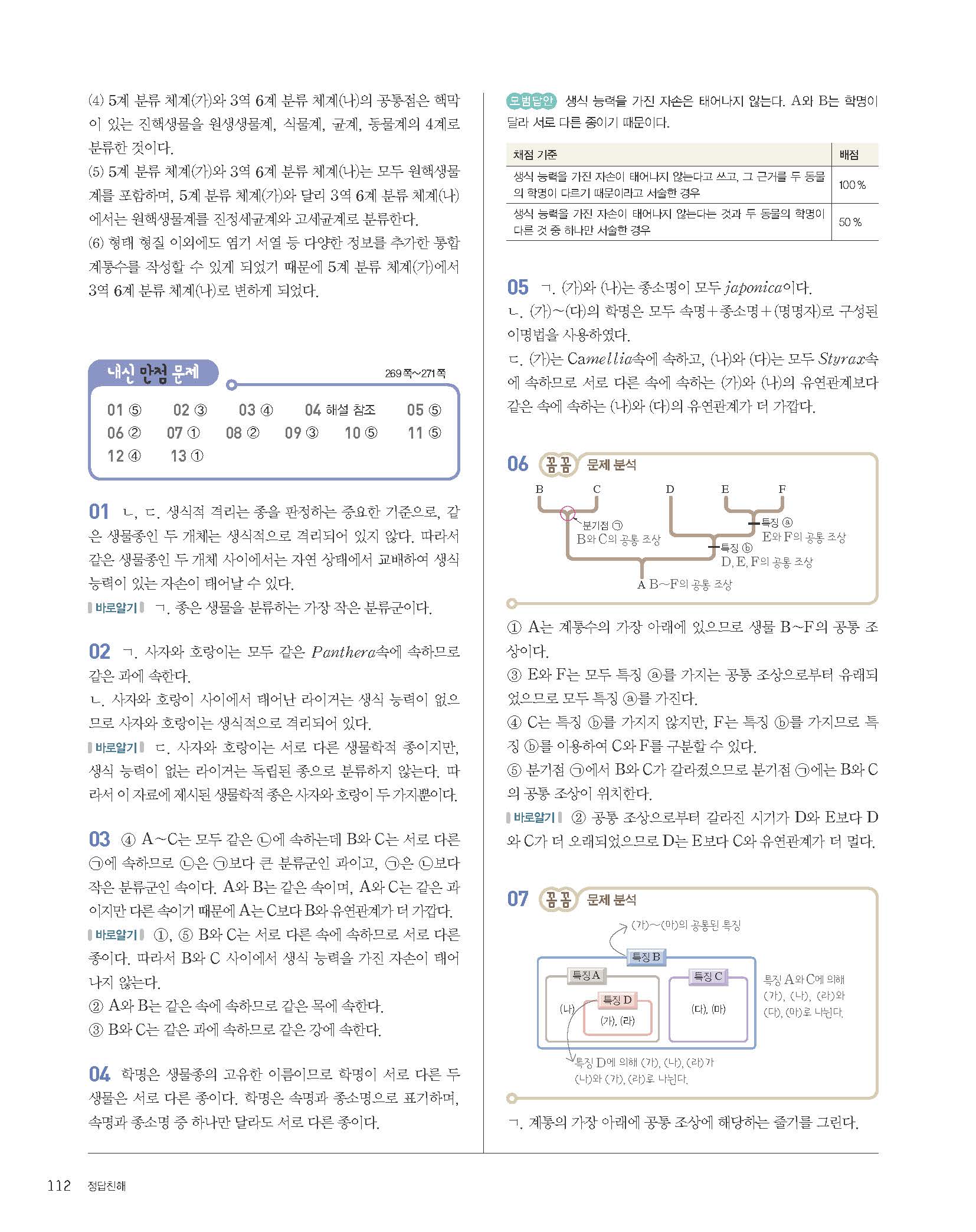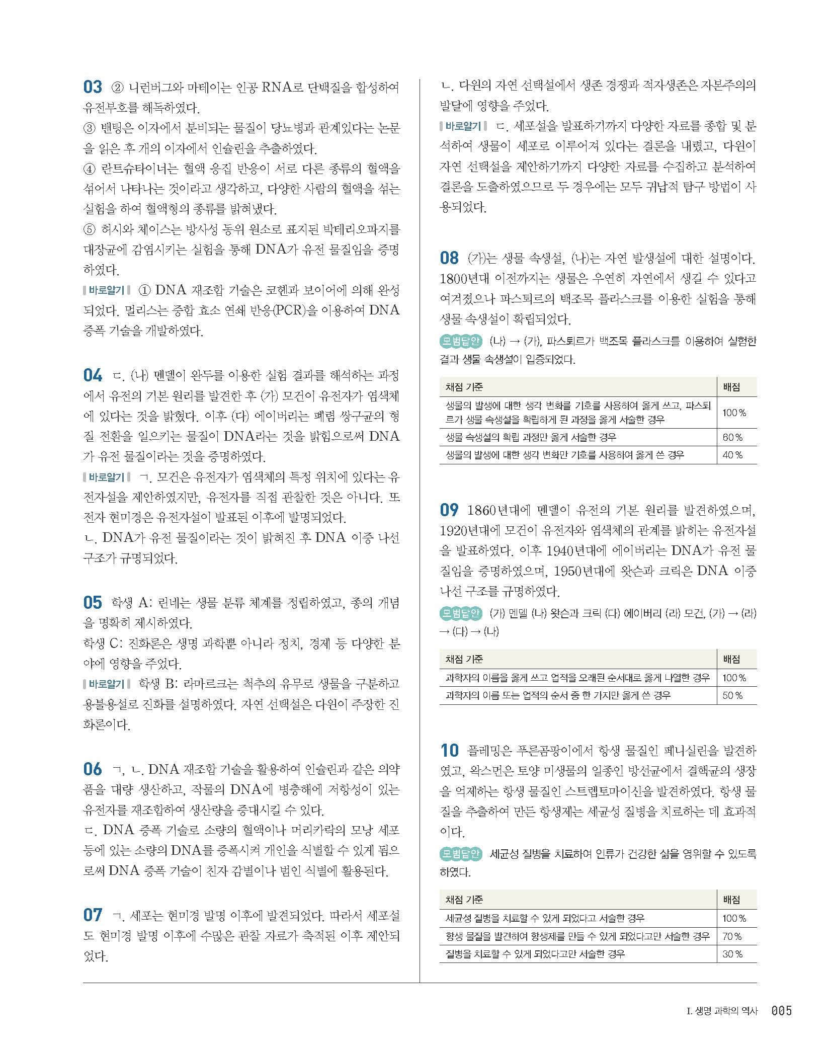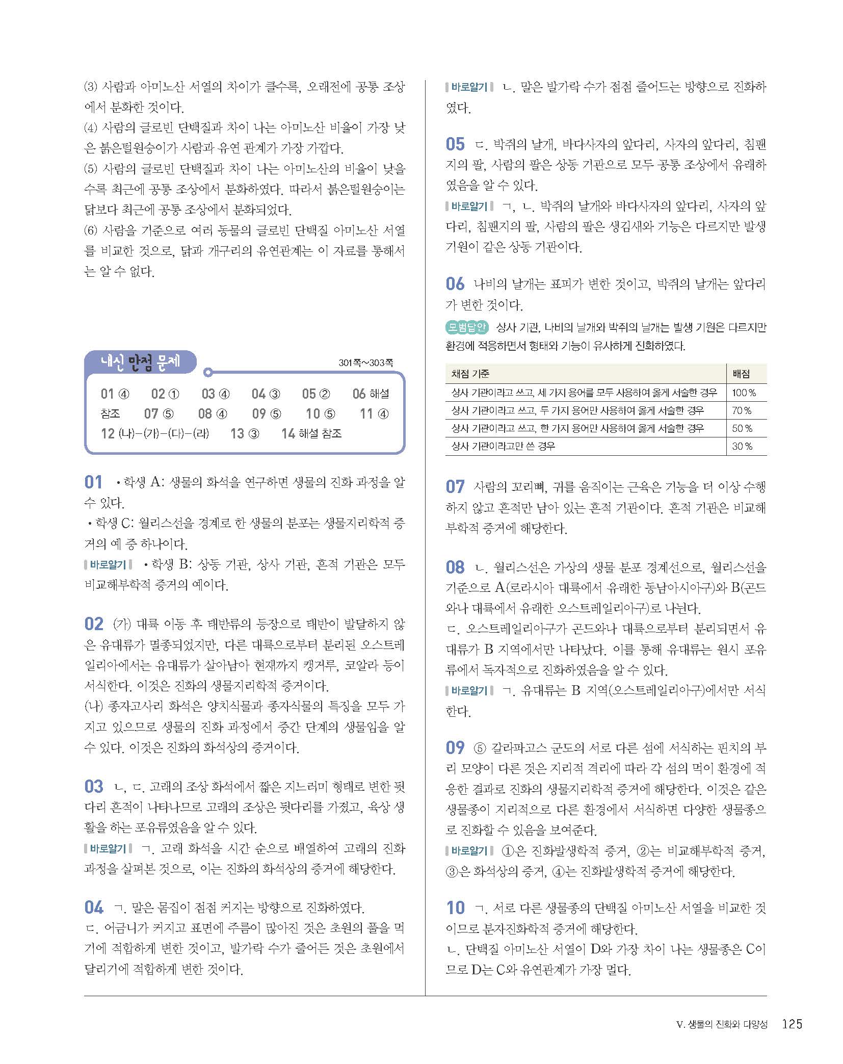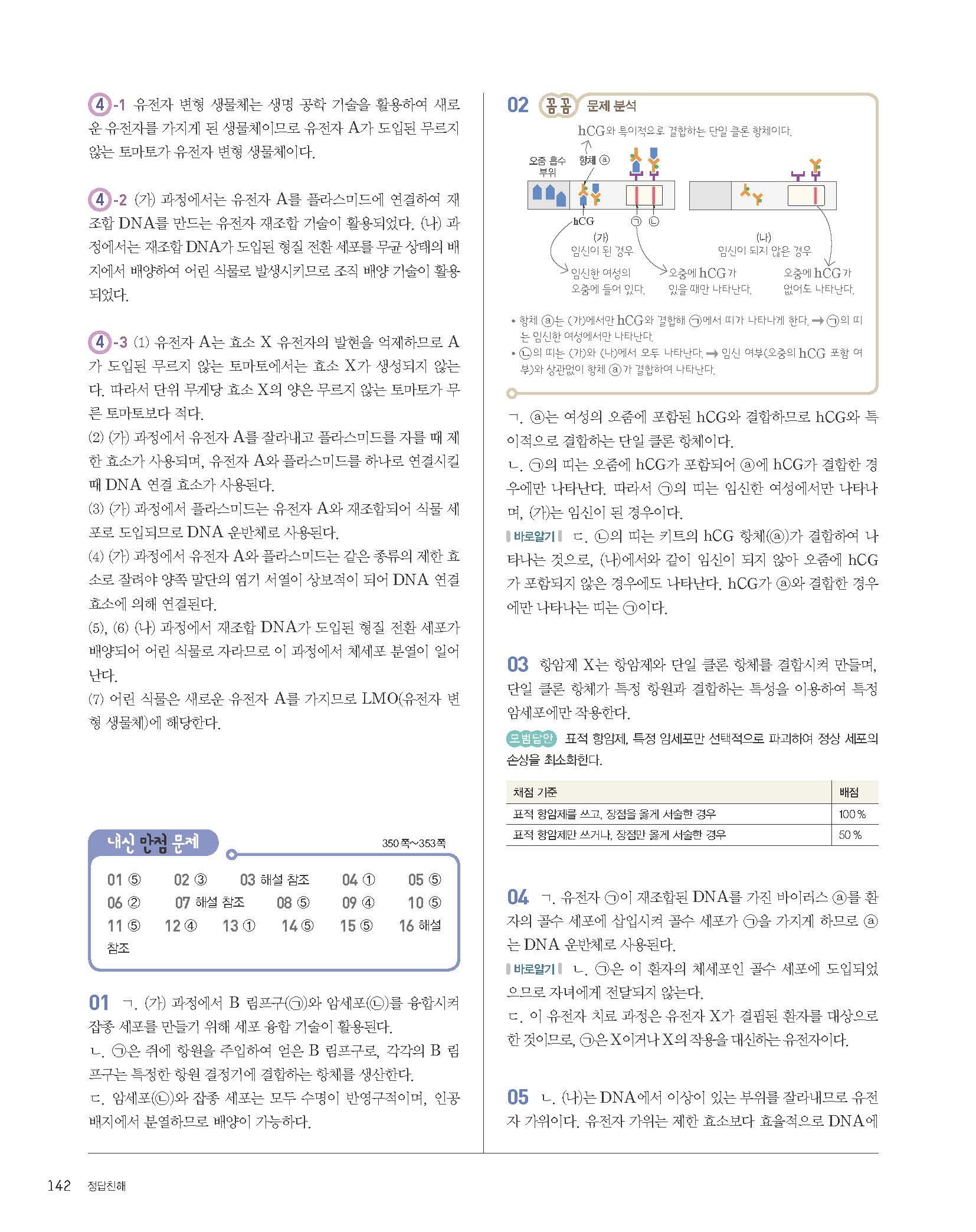 완자 고등생명과학2 사진답지 빠른답지 모바일최적화
