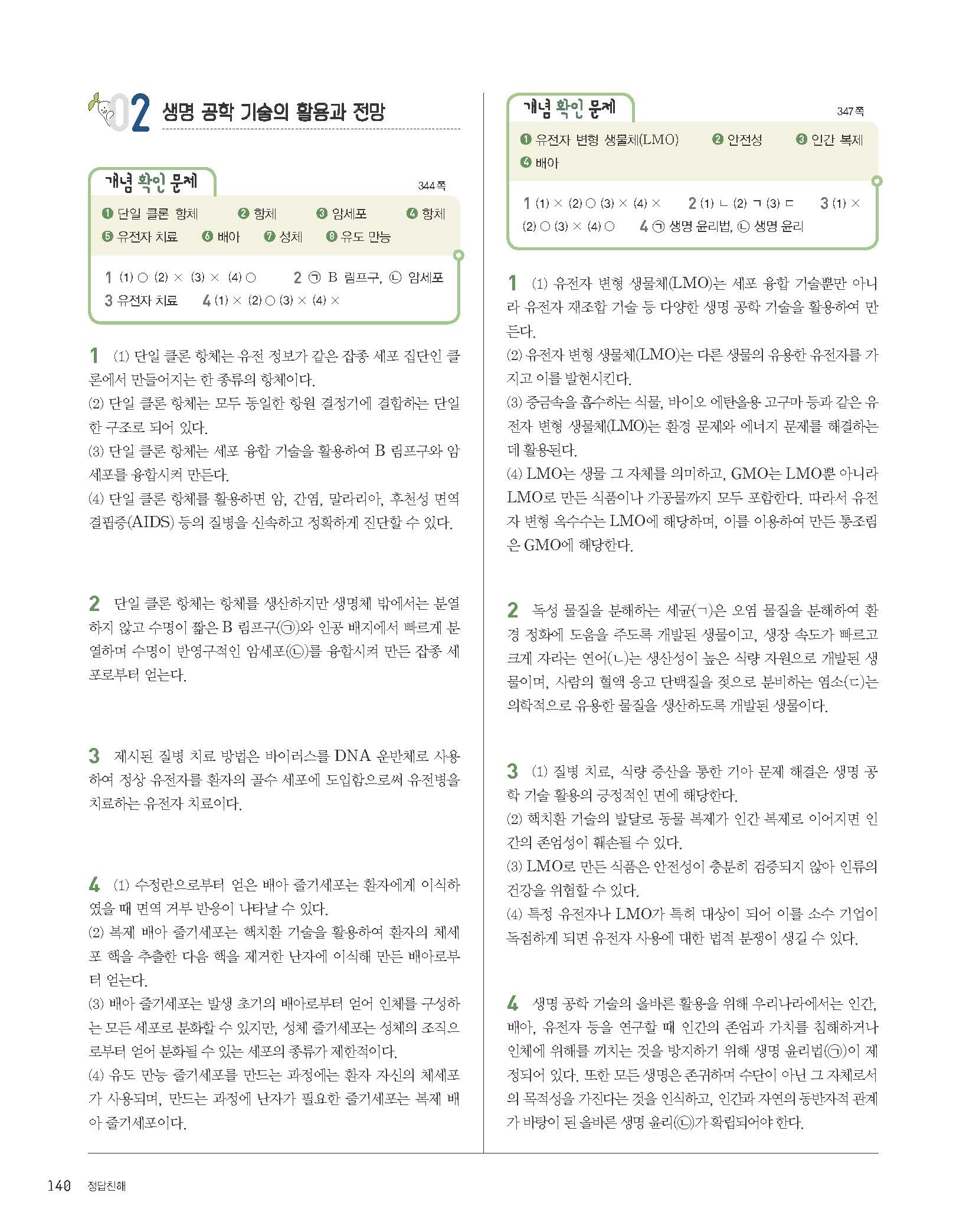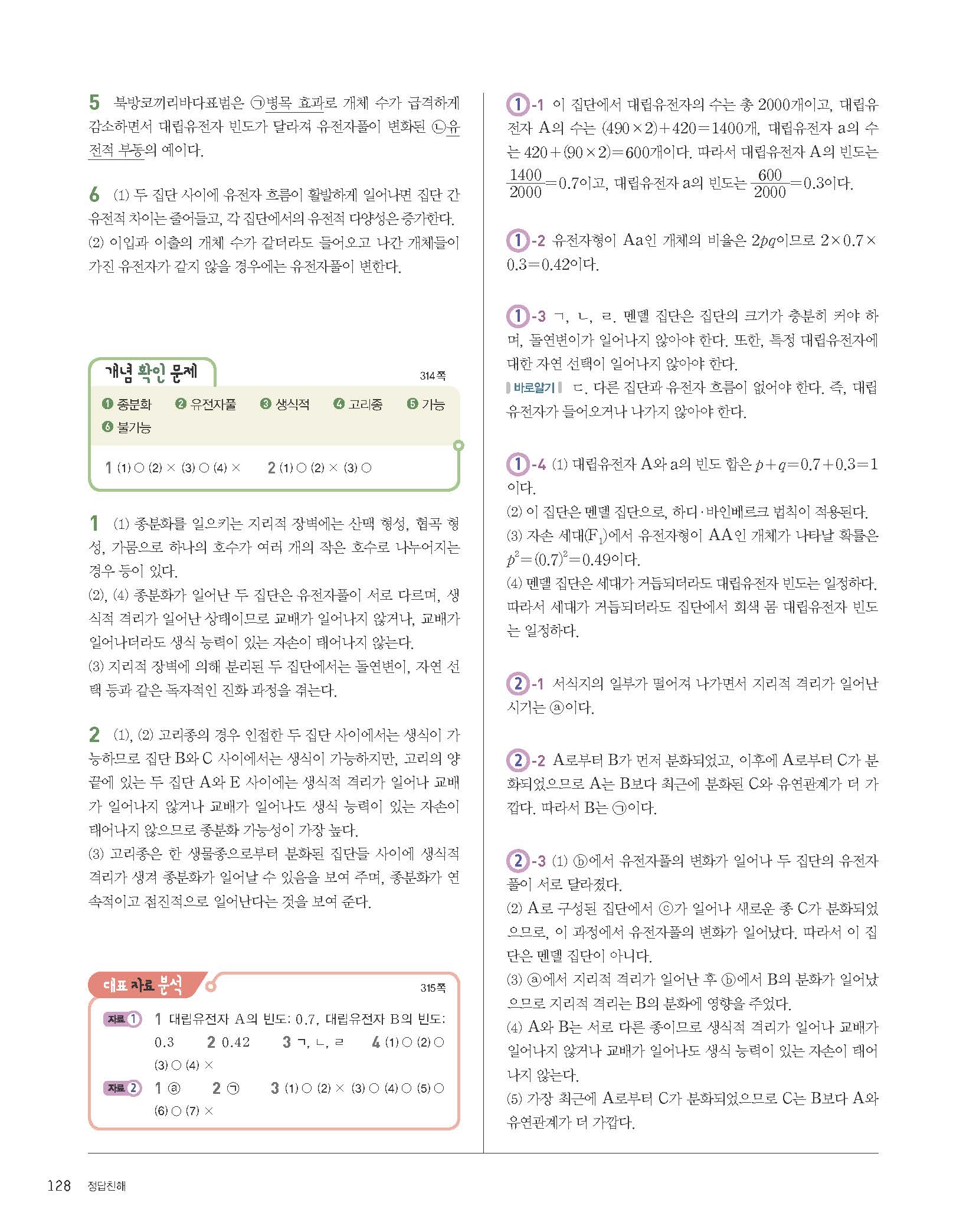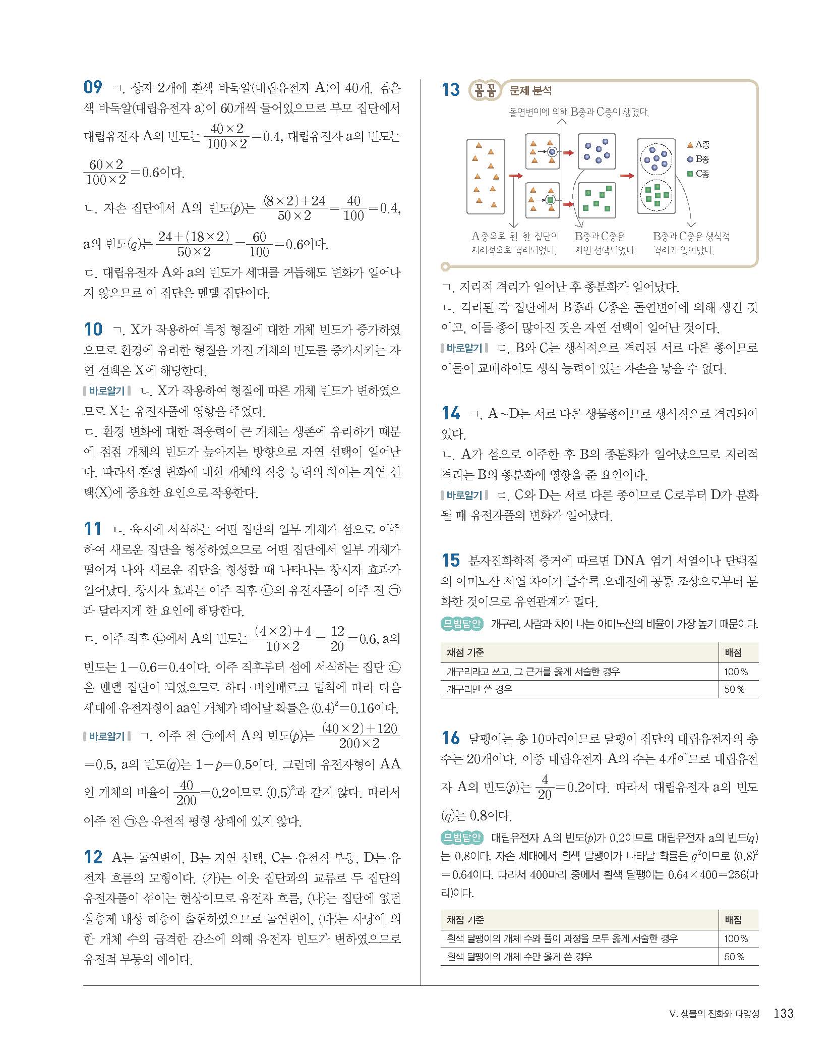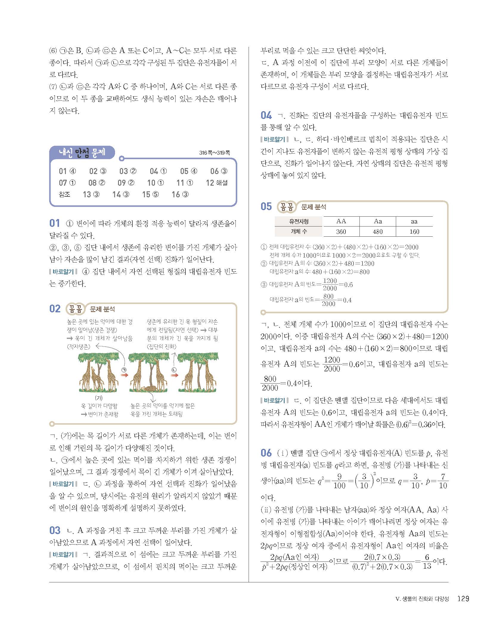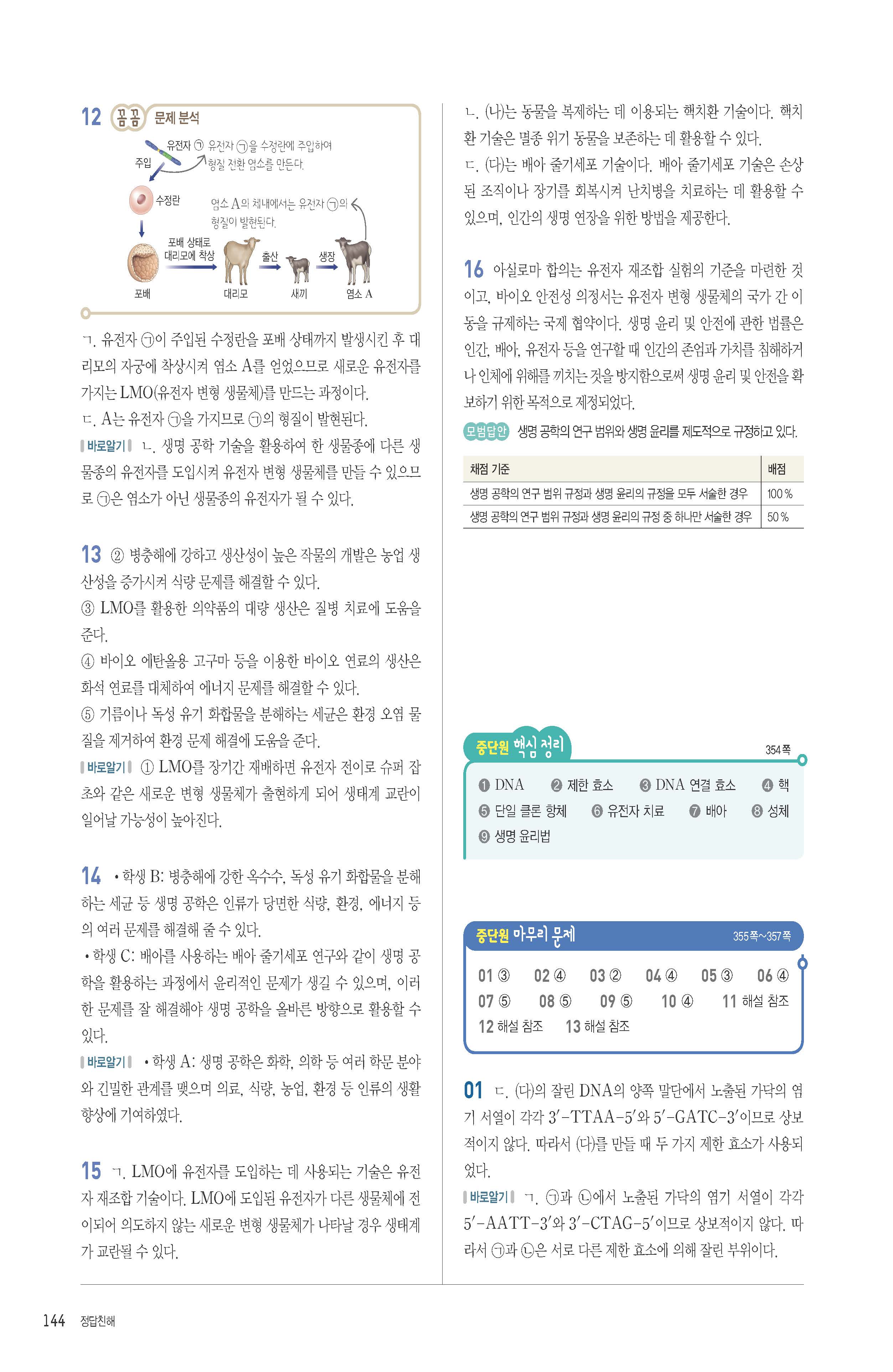 완자 고등생명과학2 사진답지 빠른답지 모바일최적화