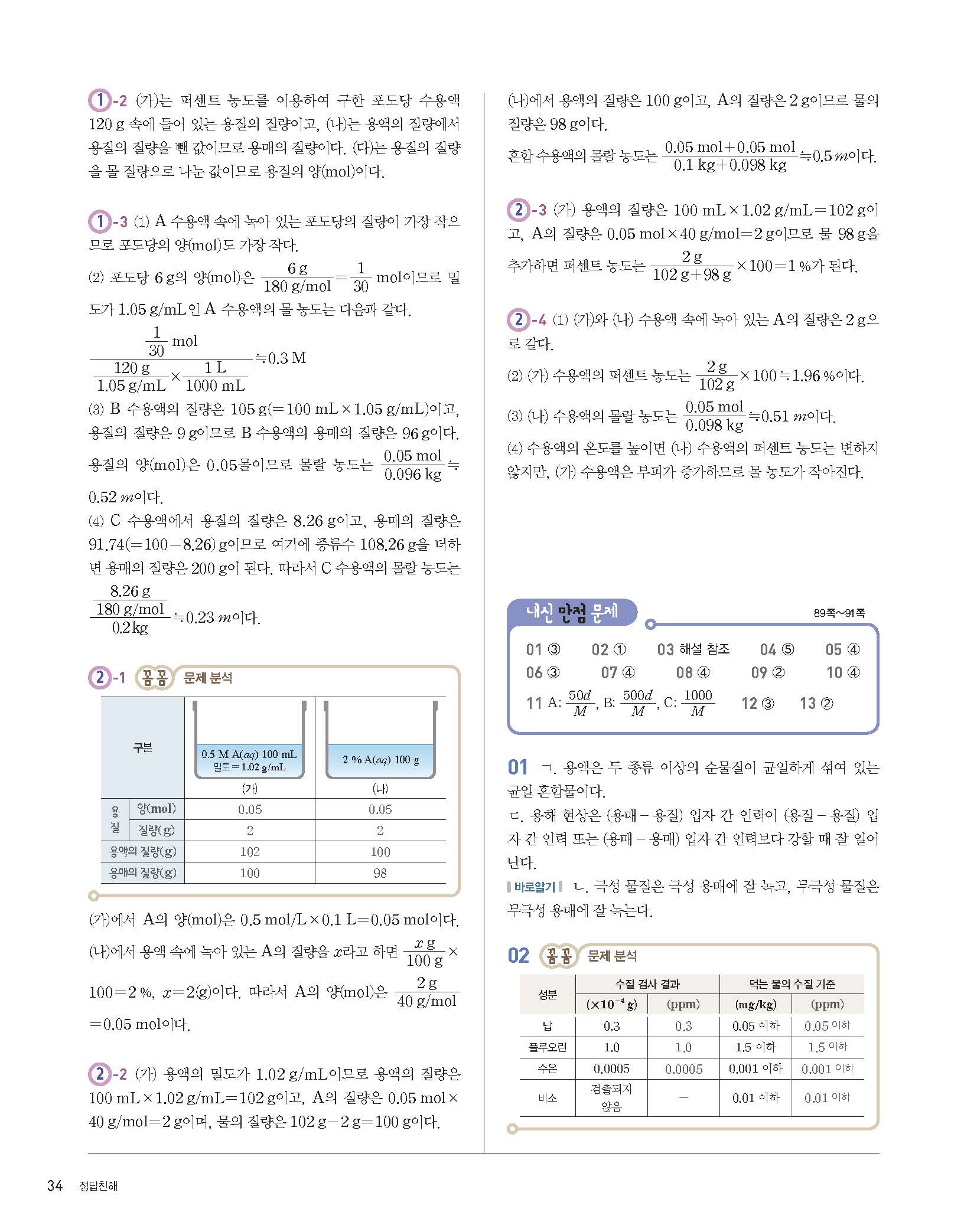 완자 고등화학2 사진답지 빠른답지 모바일최적화