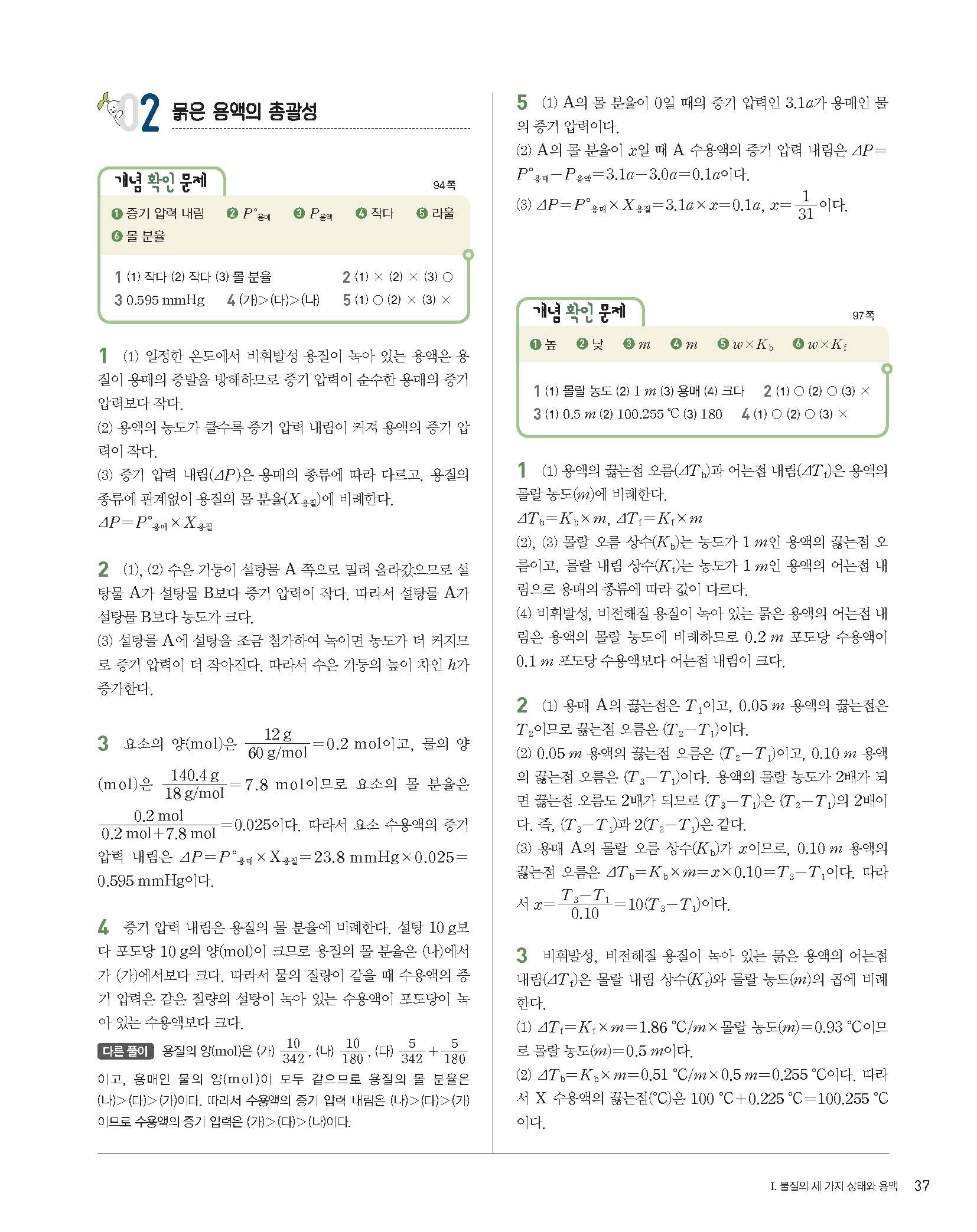 완자 고등화학2 사진답지 빠른답지 모바일최적화''