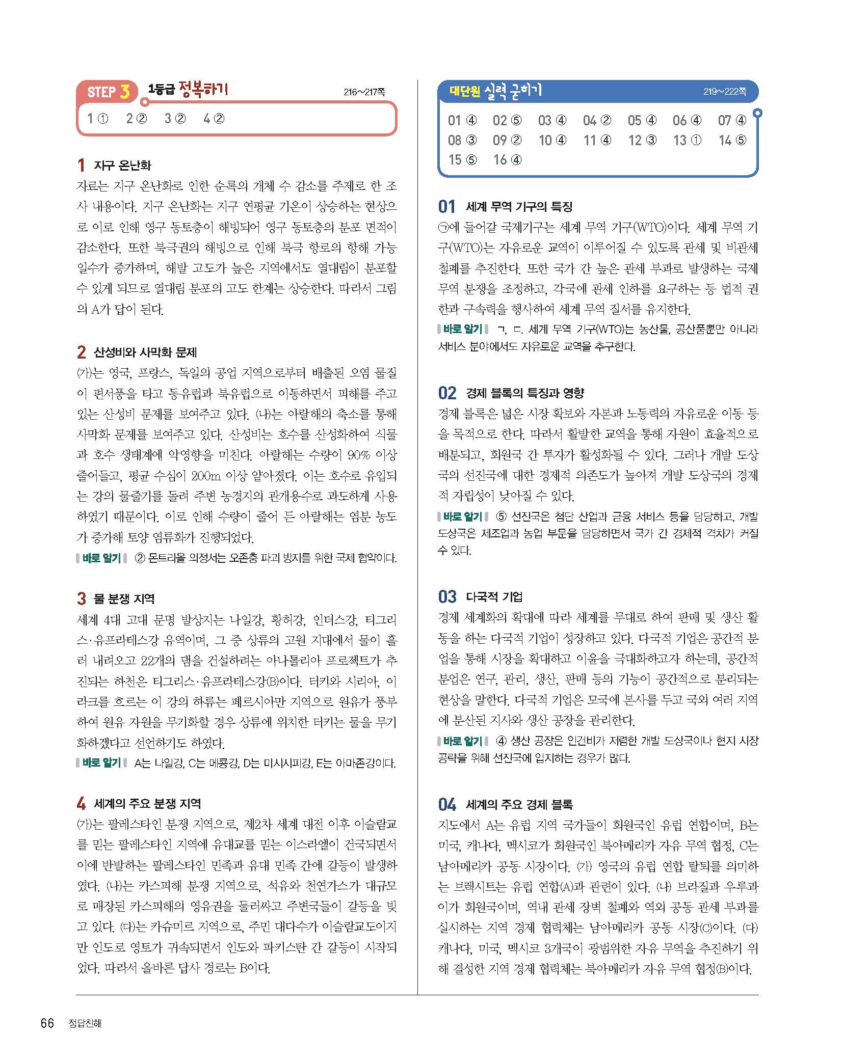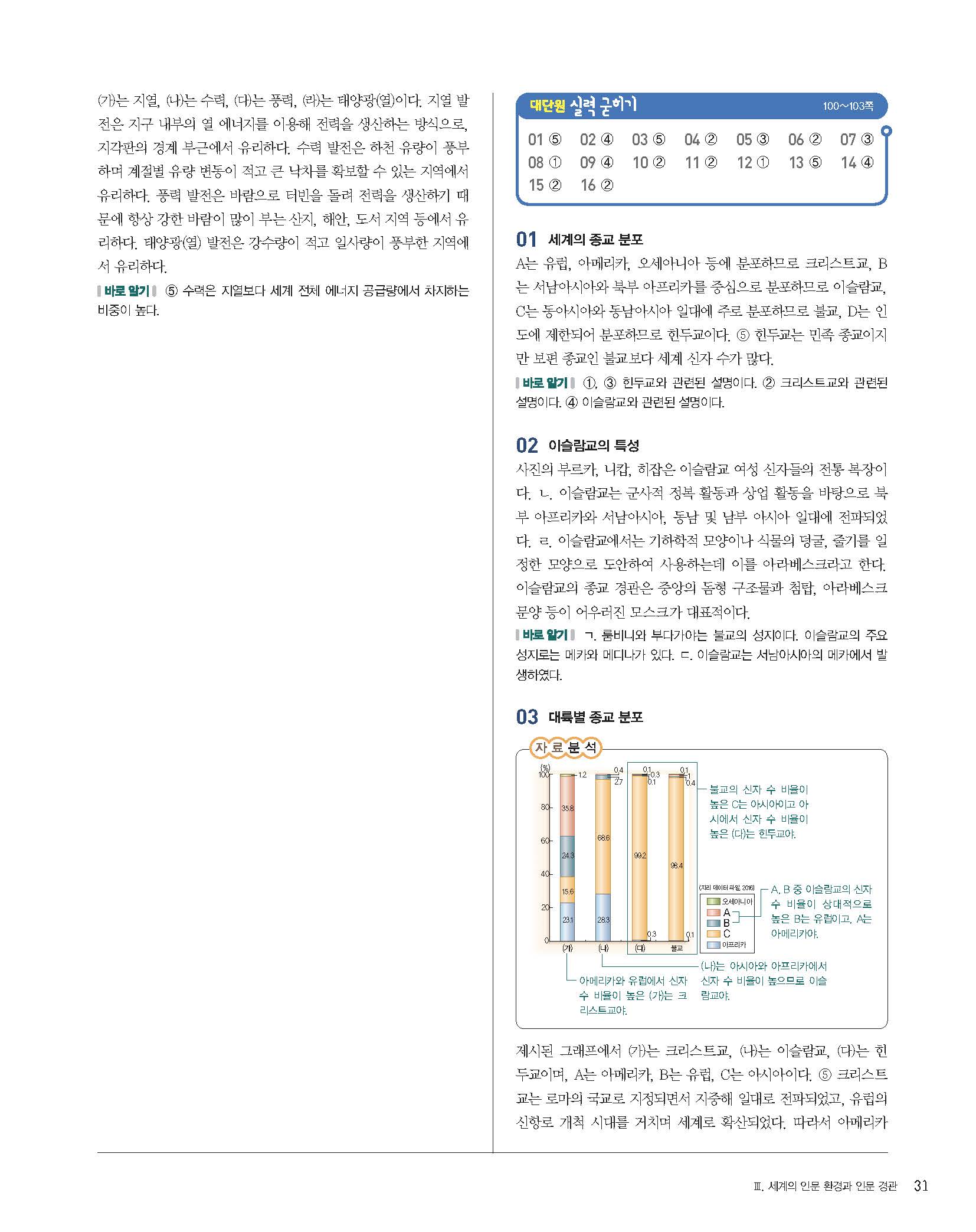 완자 고등세계지리 사진답지 빠른답지 모바일최적화