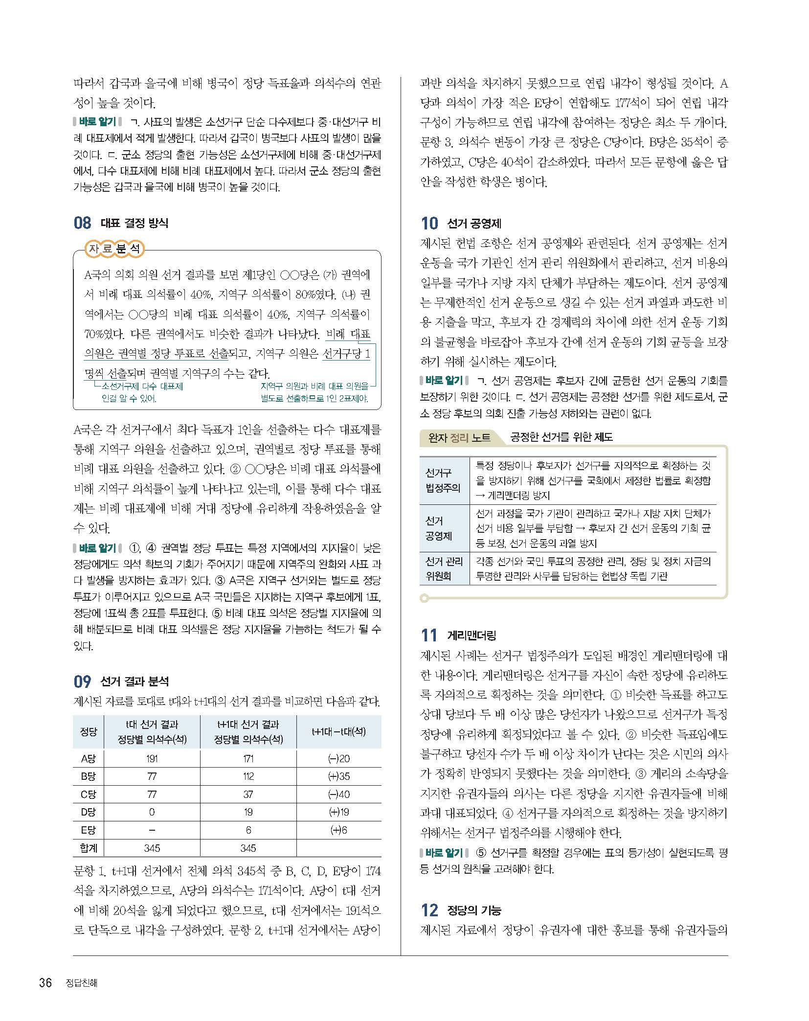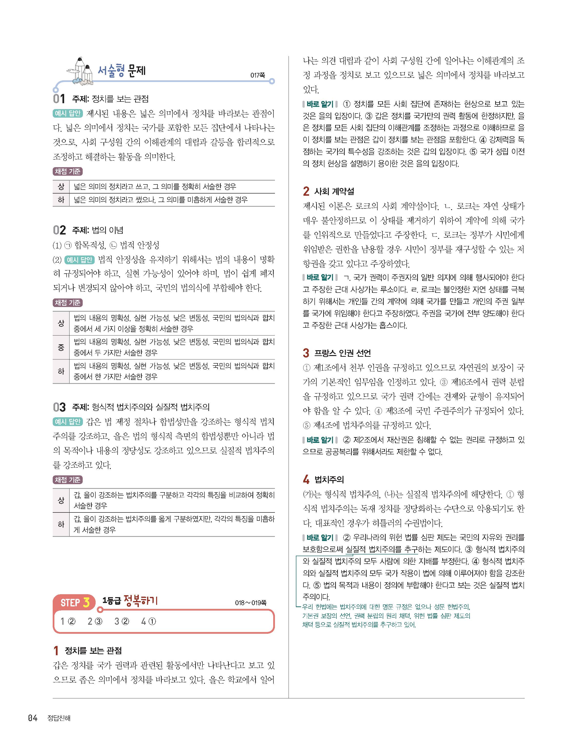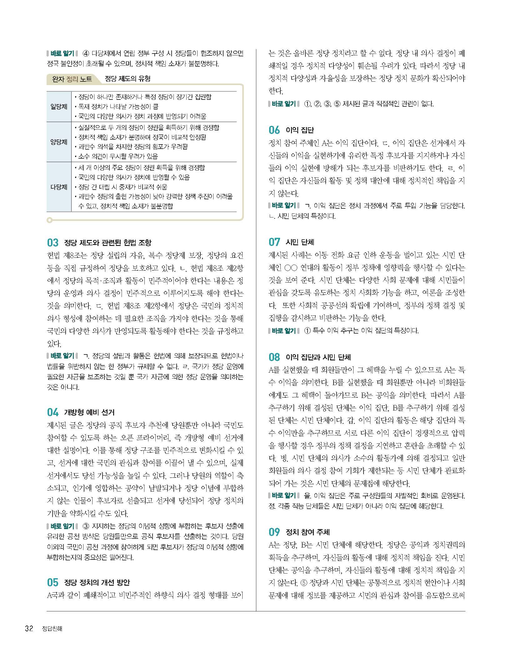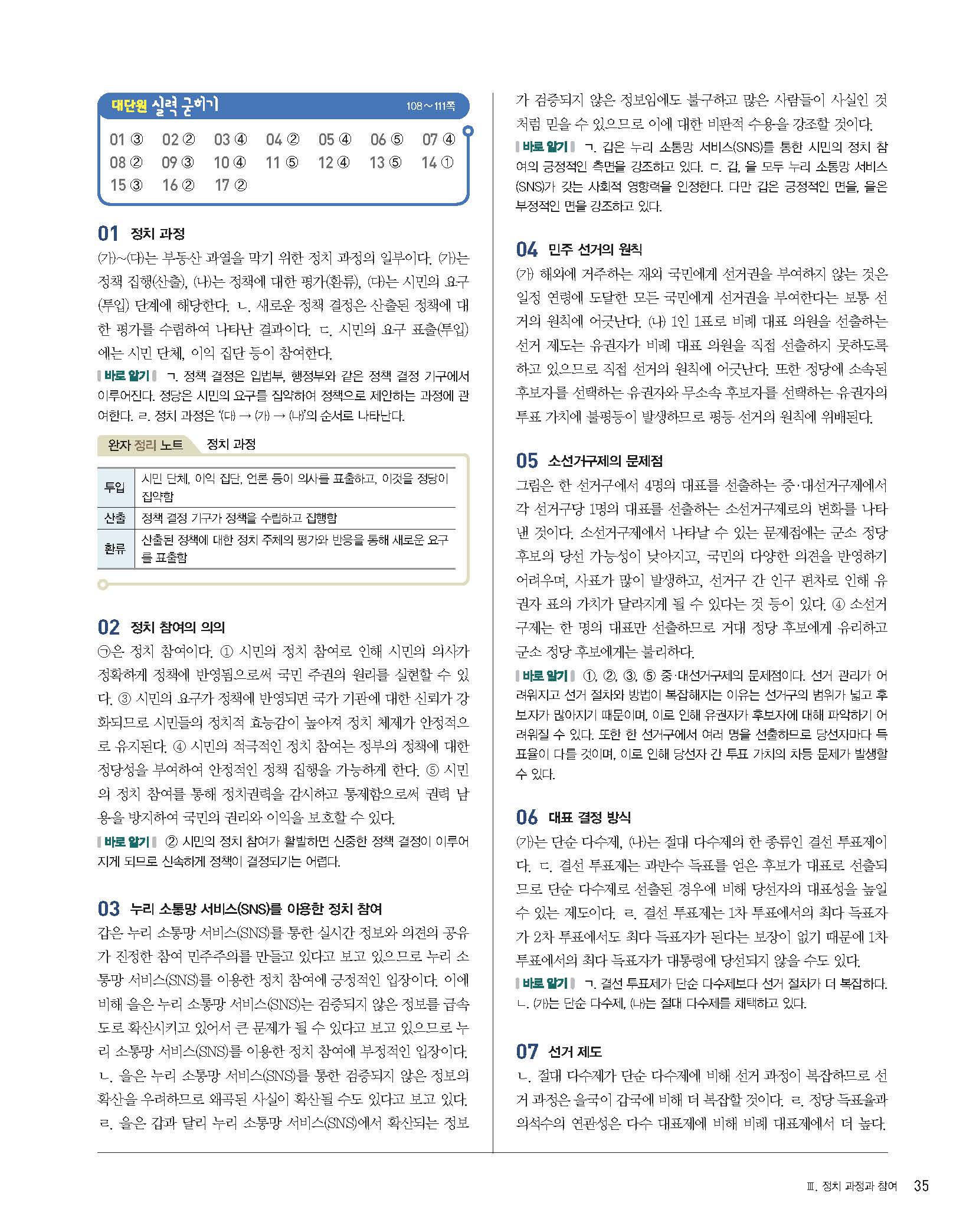 완자 정치와법 사진답지 빠른답지 모바일최적화