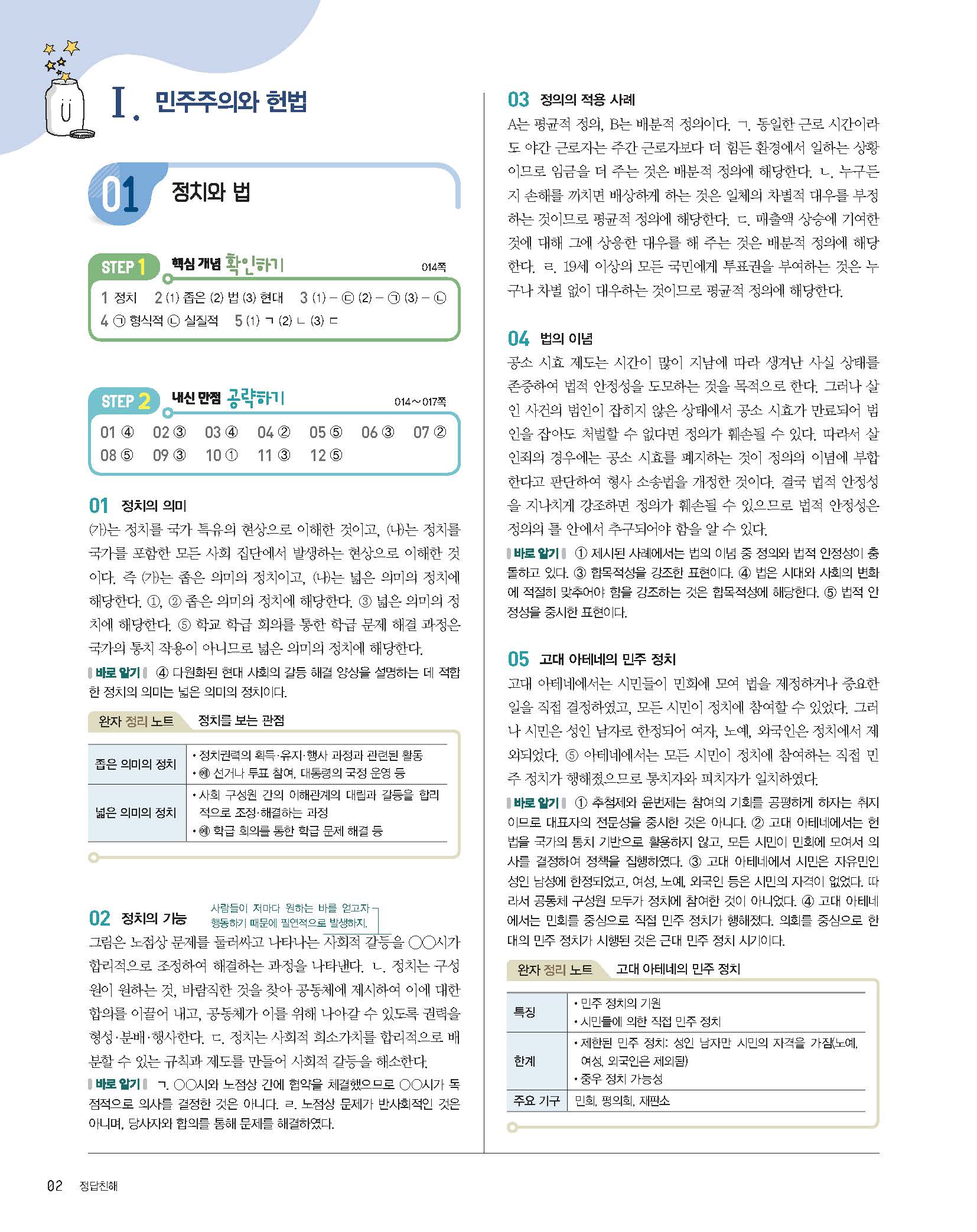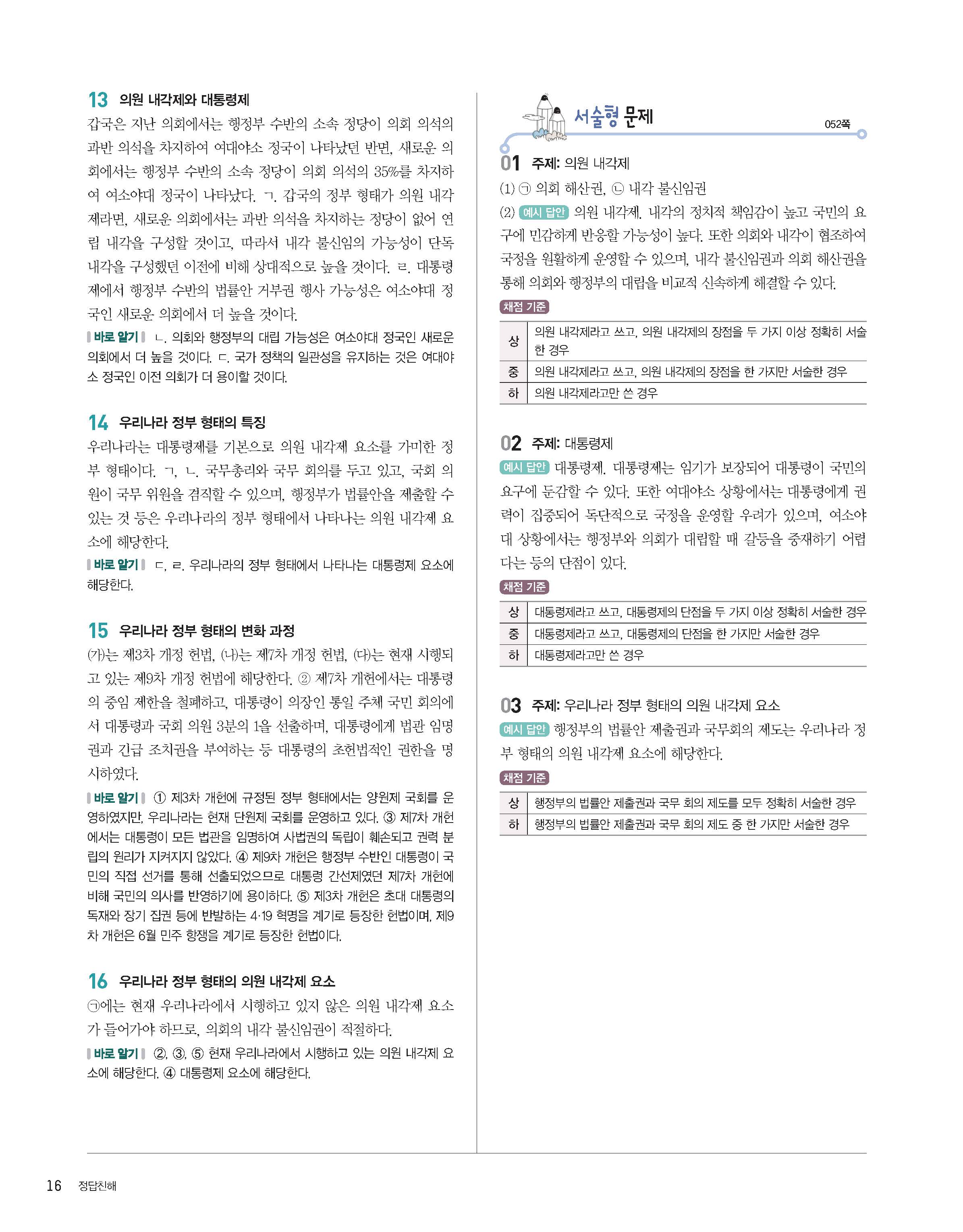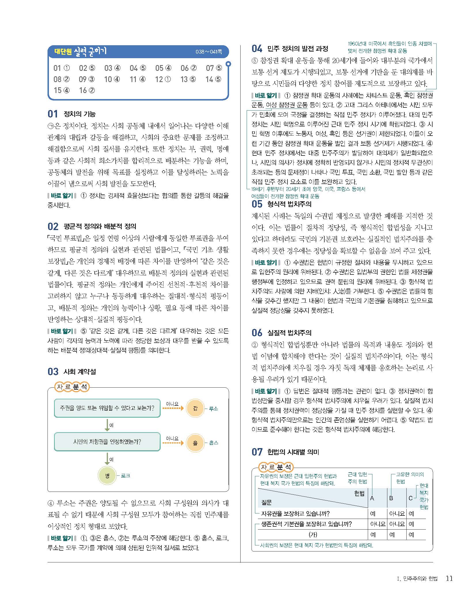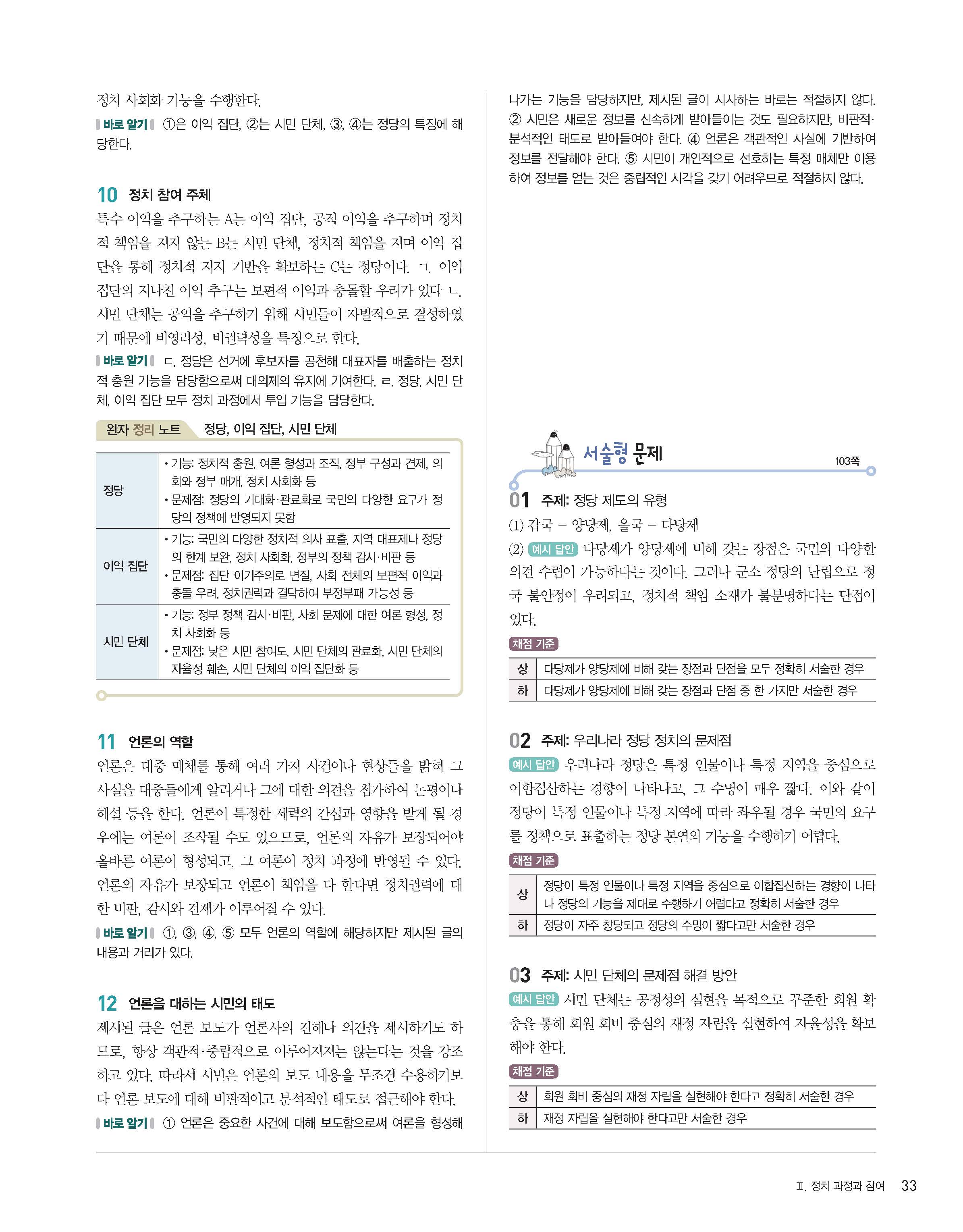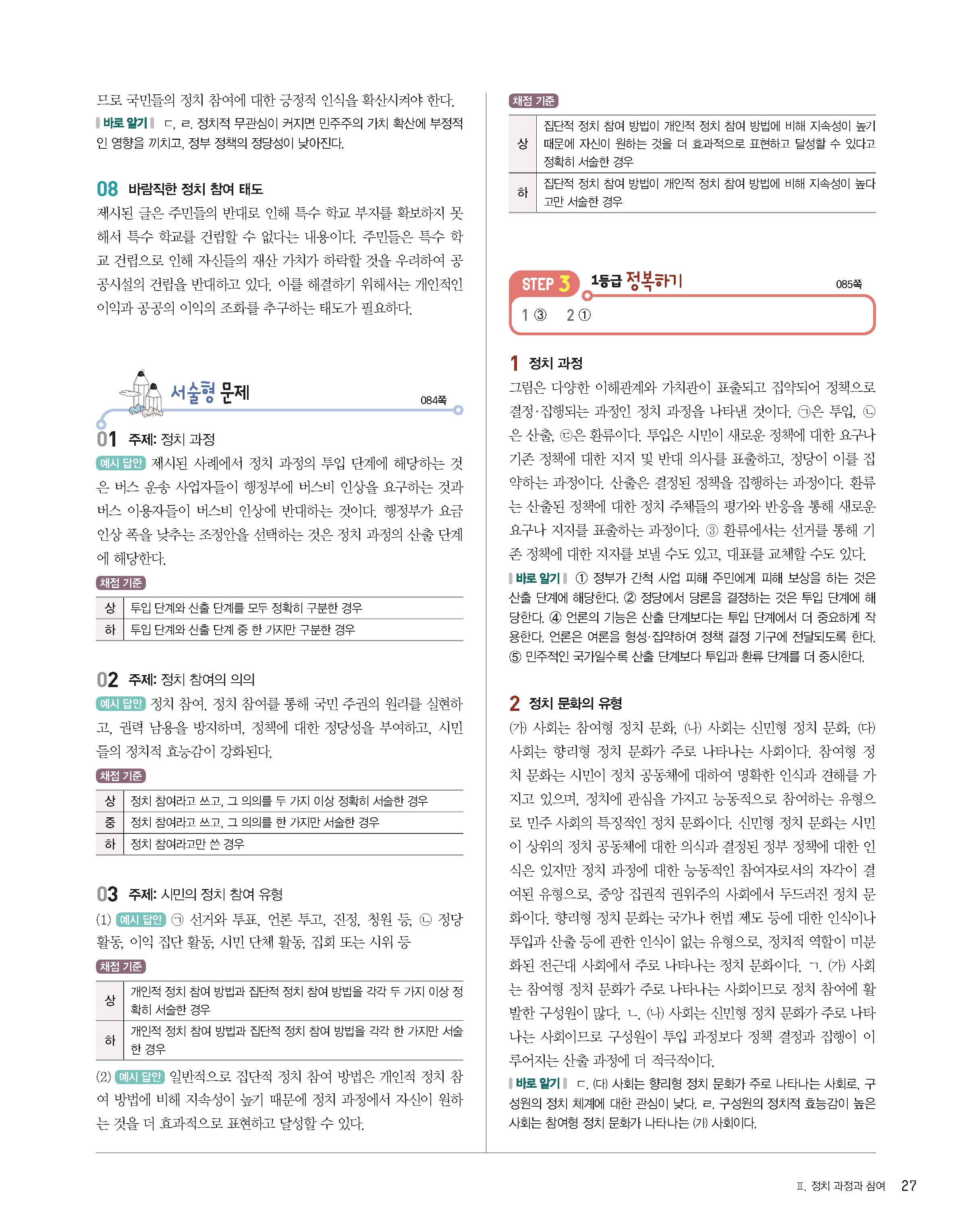 완자 정치와법 사진답지 빠른답지 모바일최적화