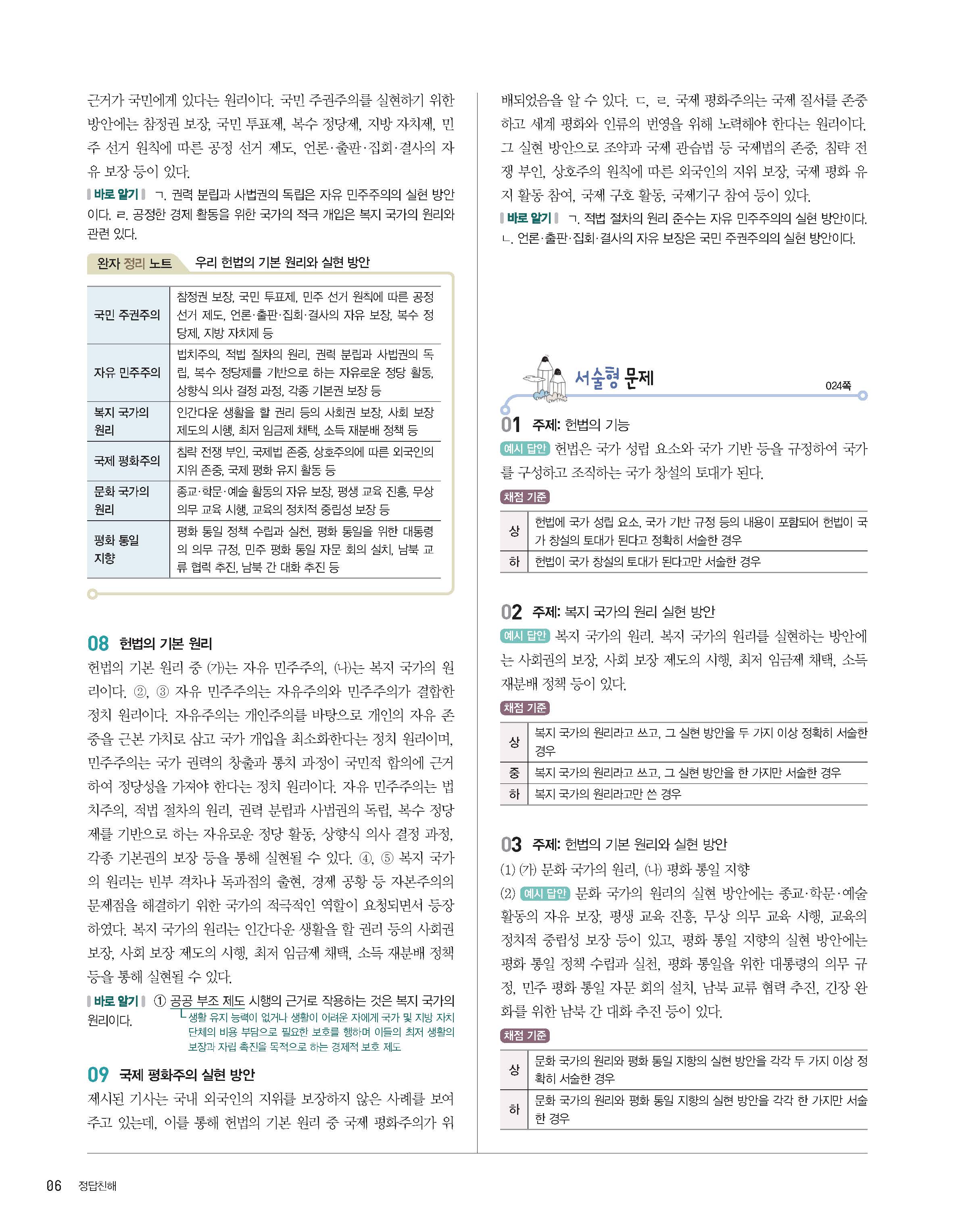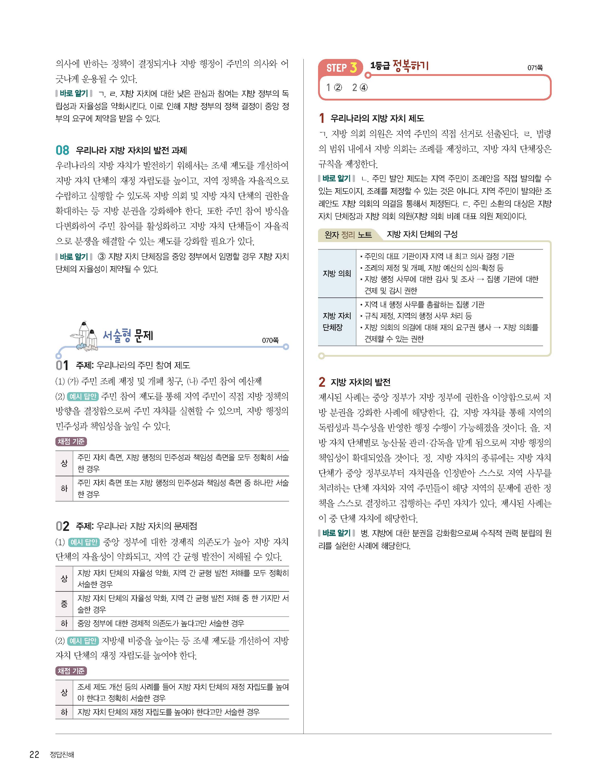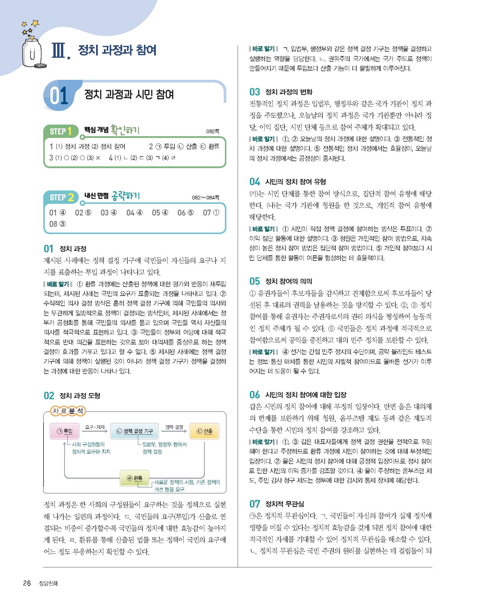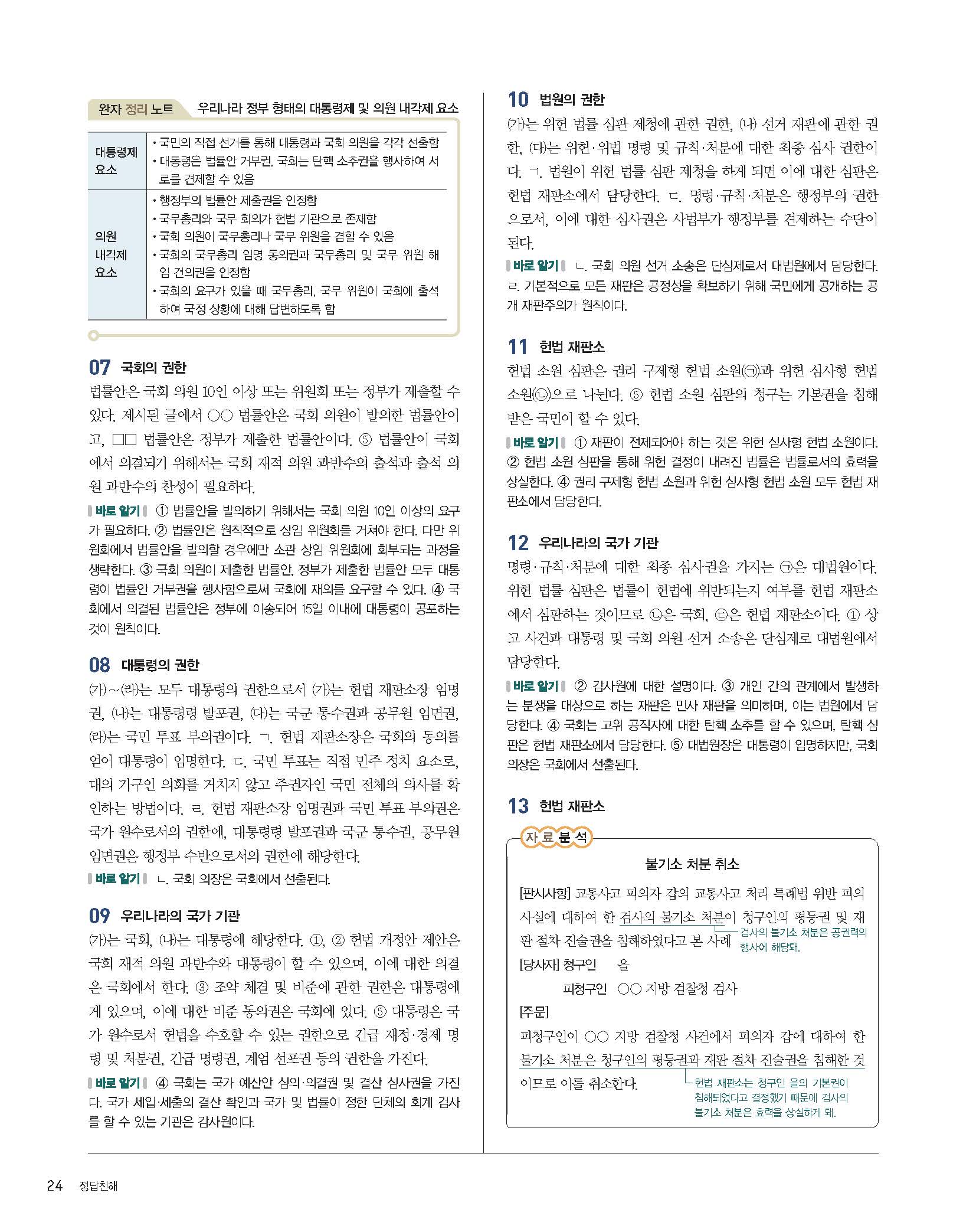 완자 정치와법 사진답지 빠른답지 모바일최적화