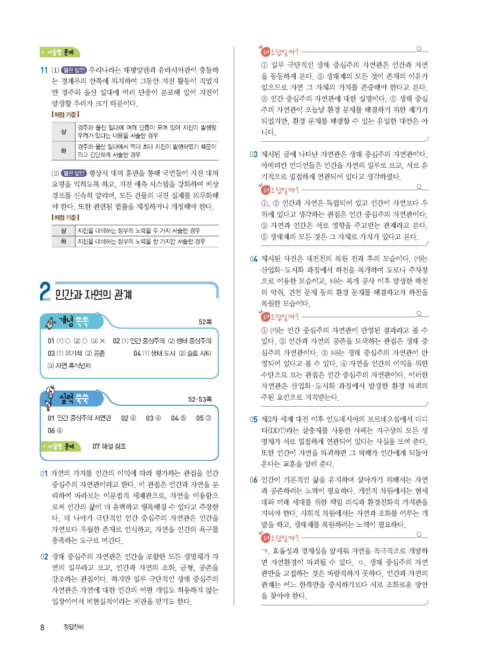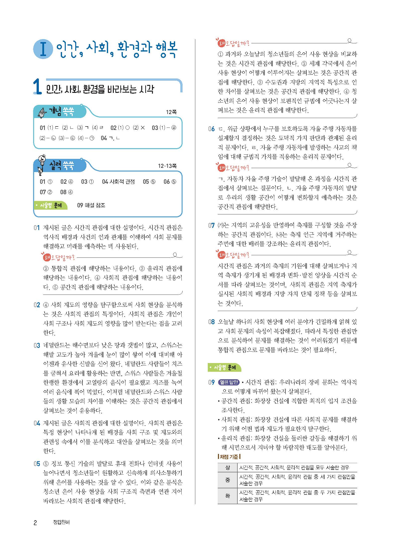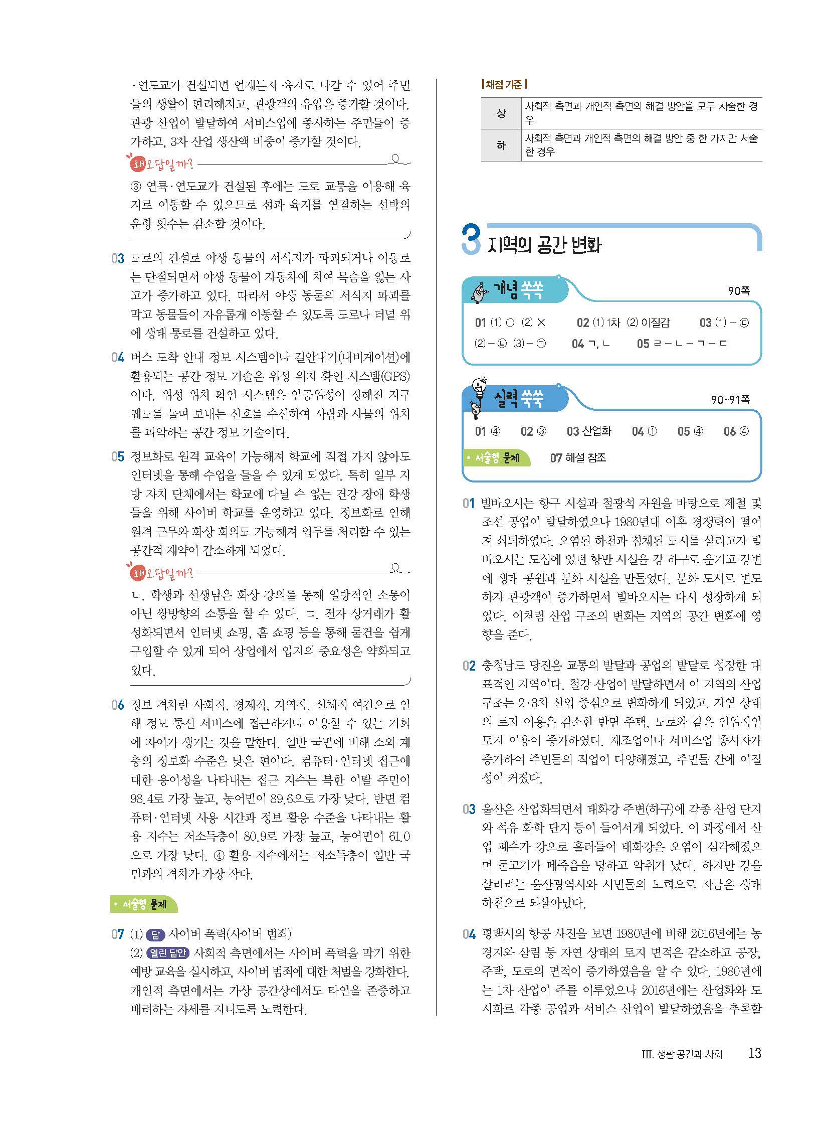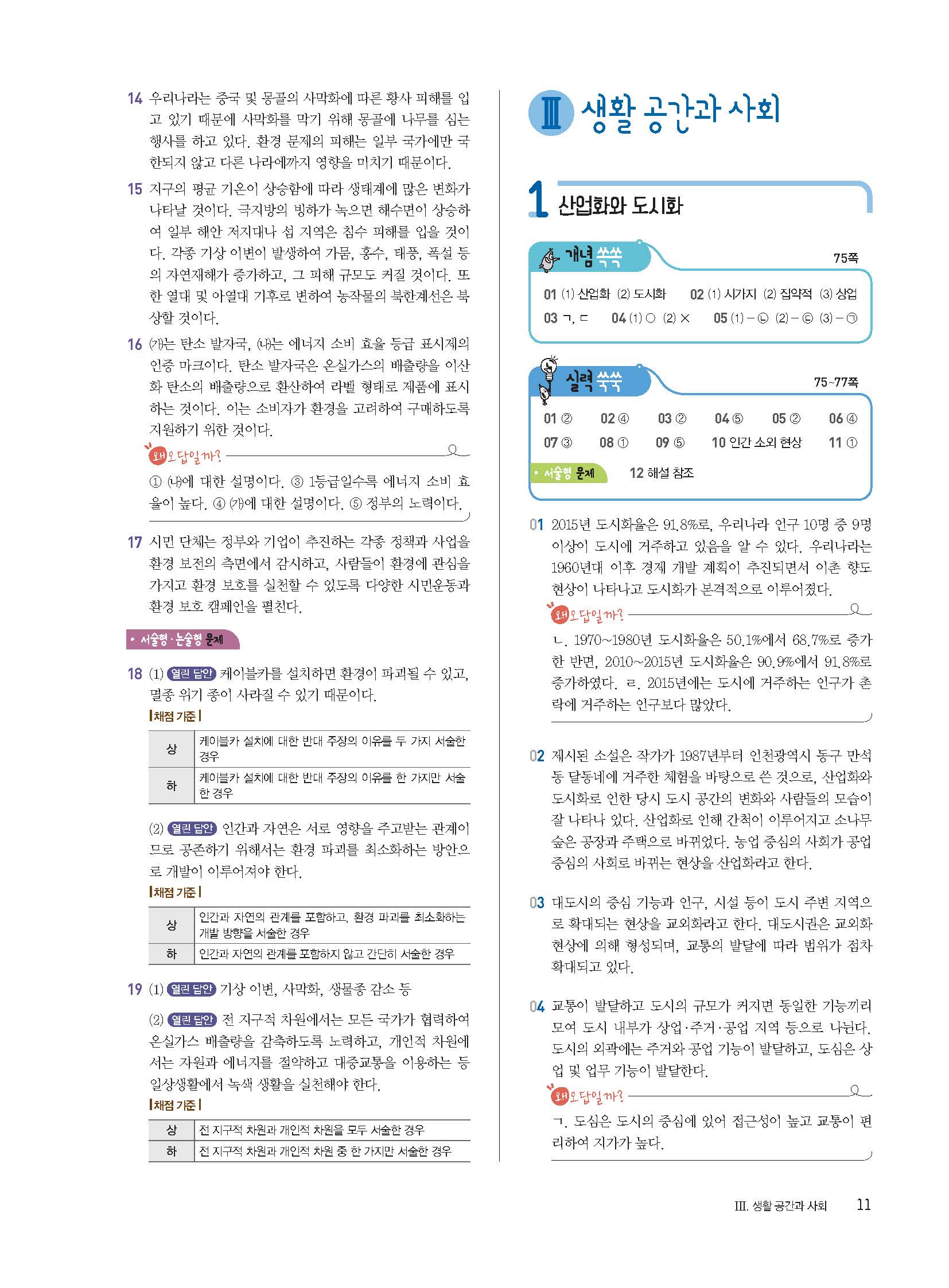 완자자습서 고등통합사회 사진답지 빠른답지 모바일최적화