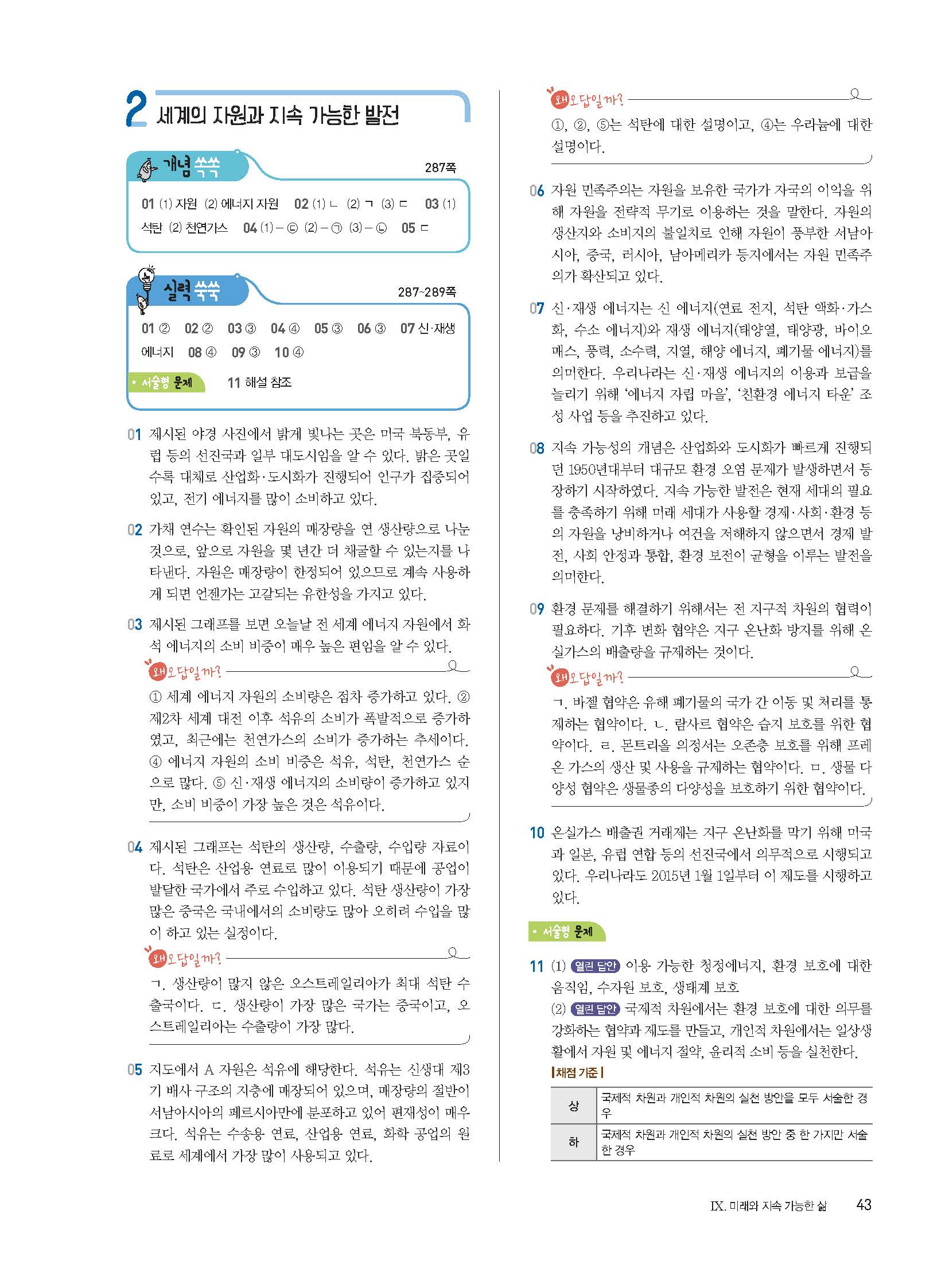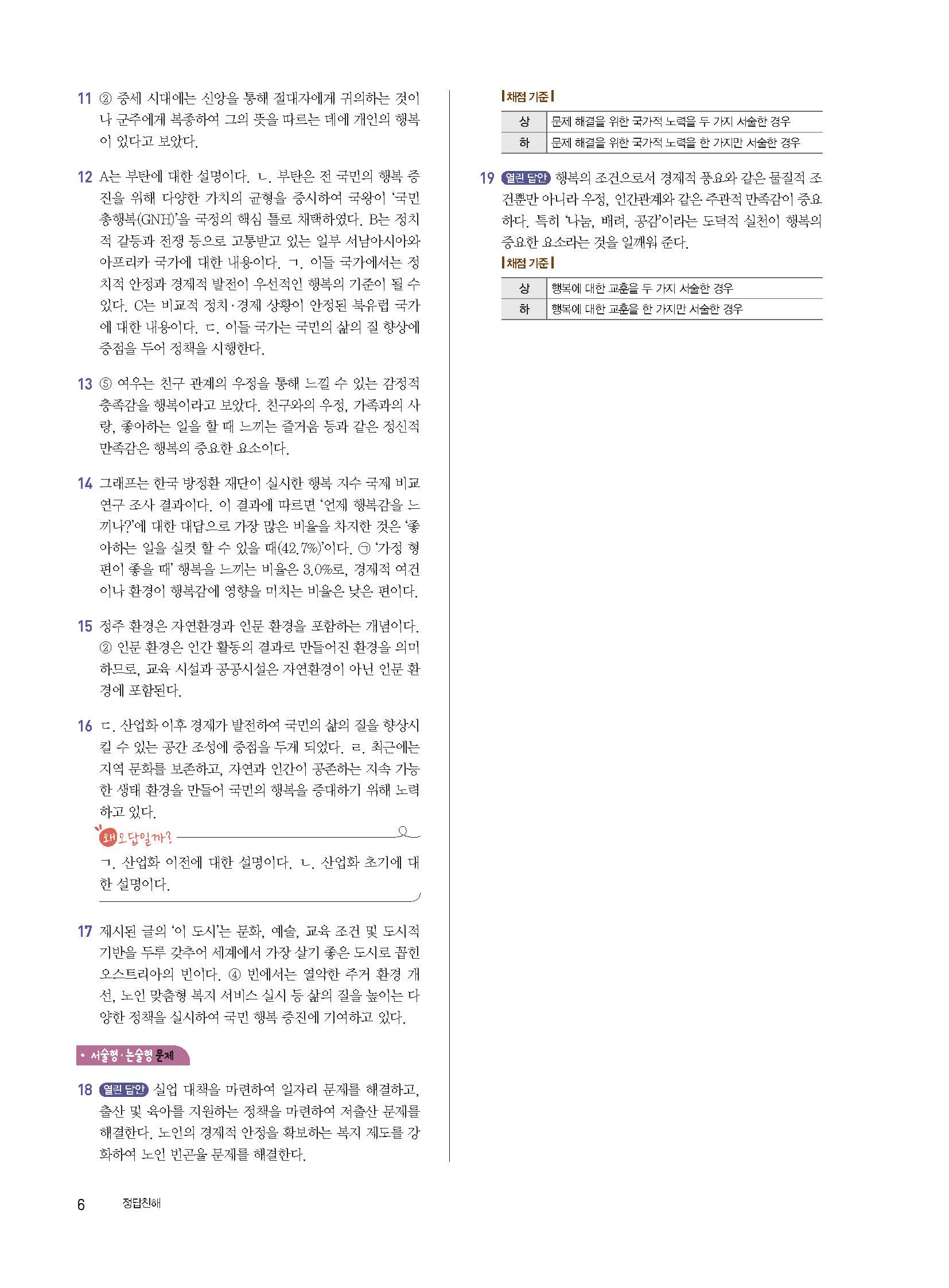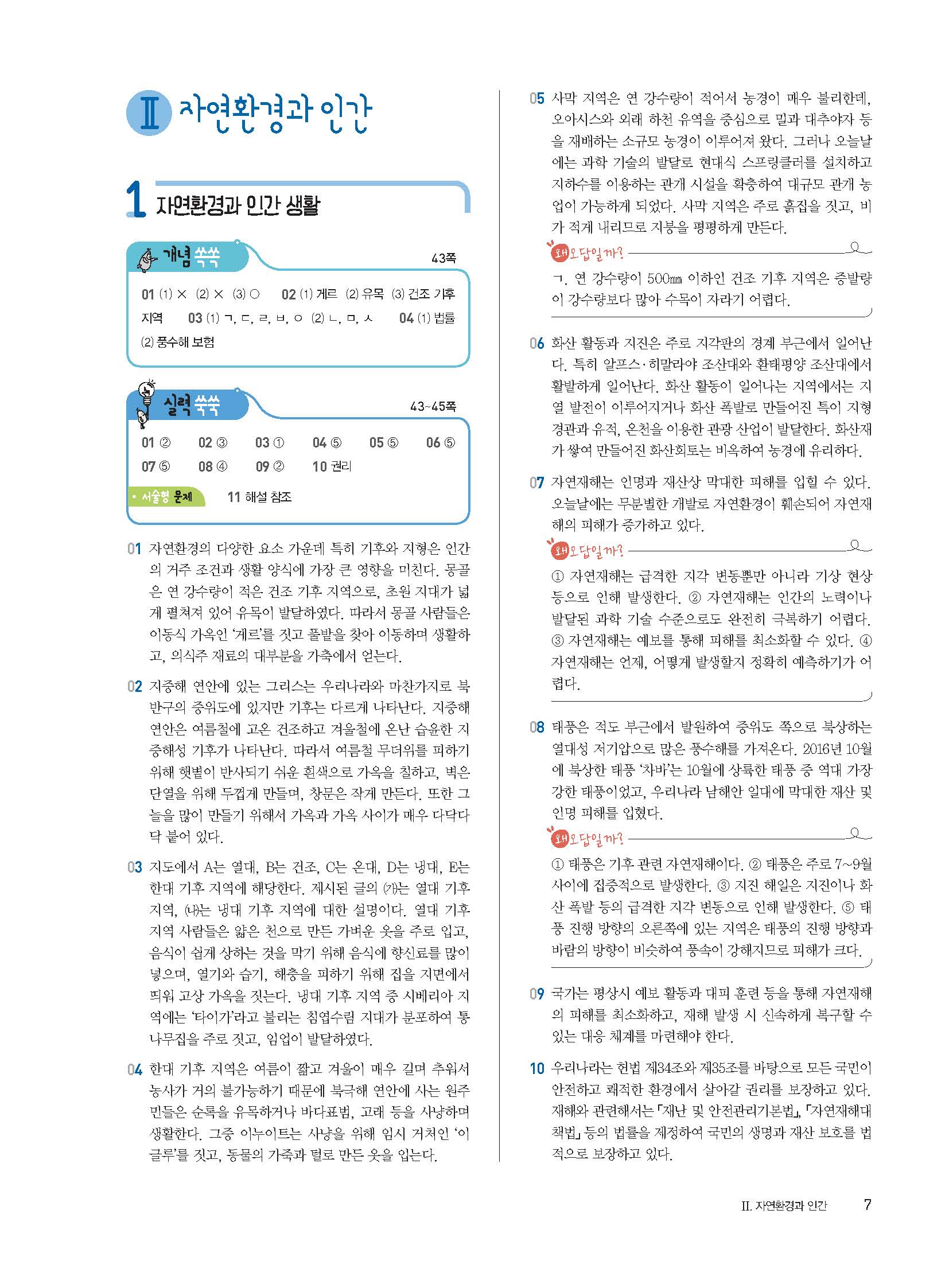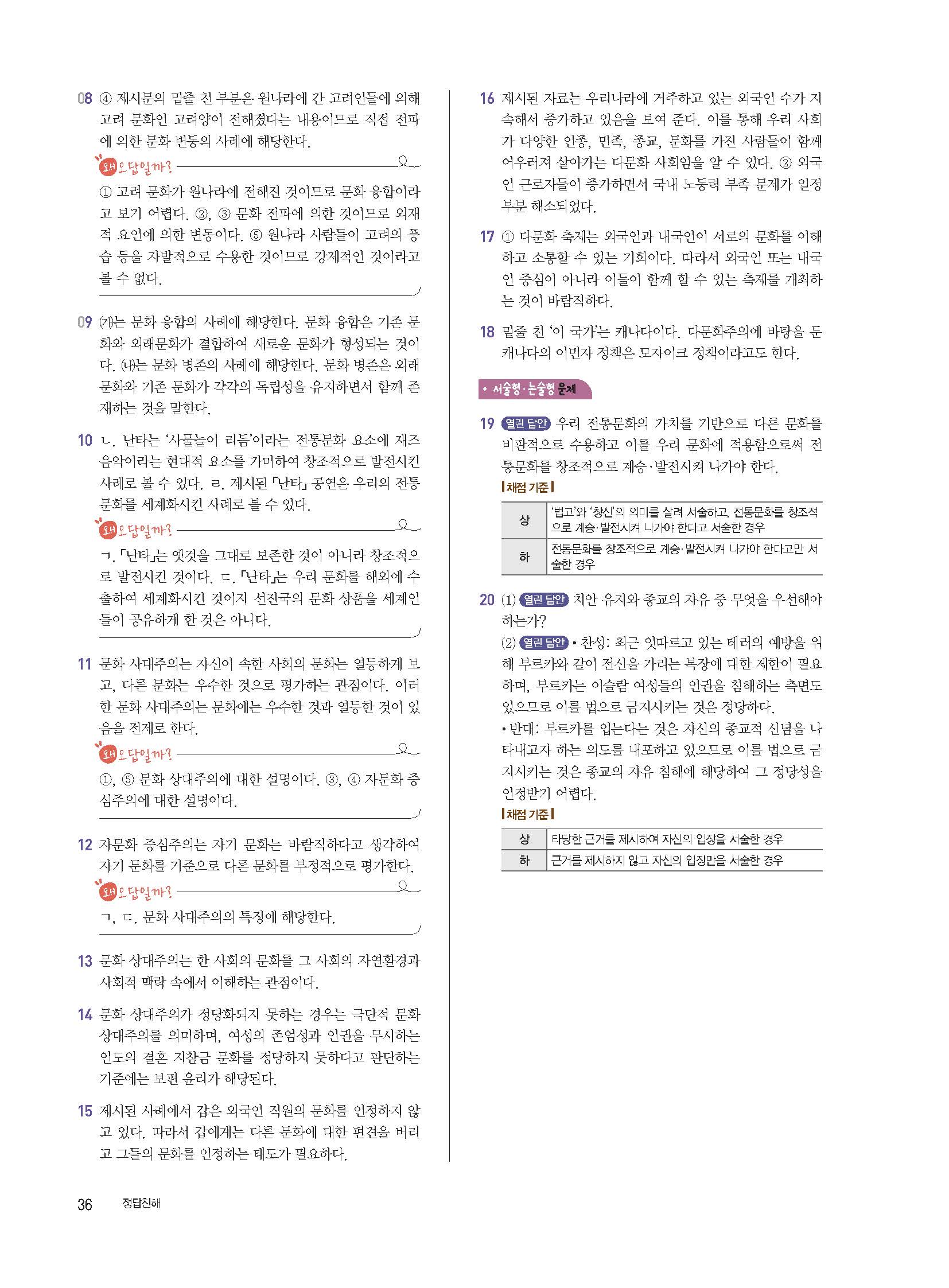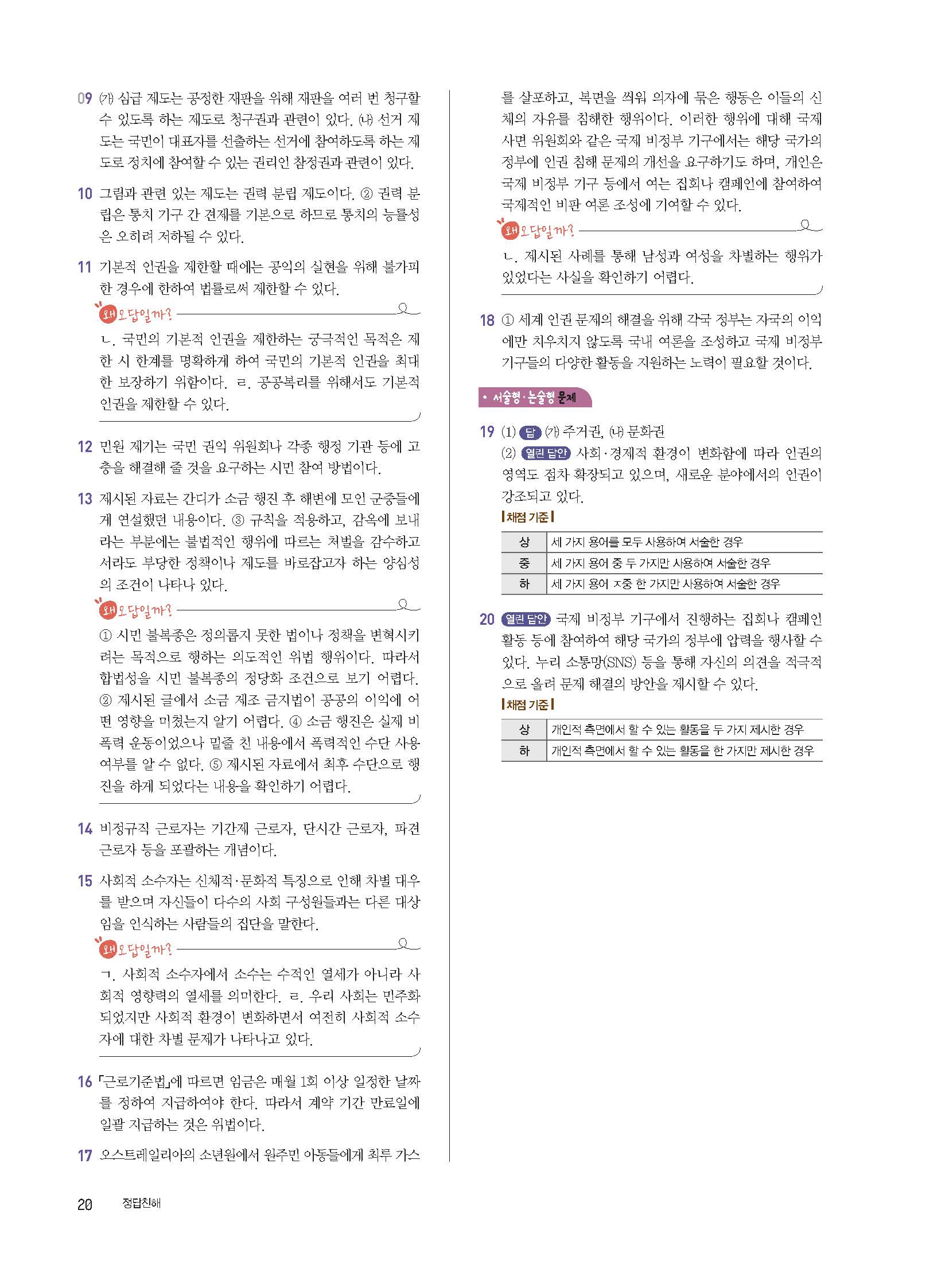 완자자습서 고등통합사회 사진답지 빠른답지 모바일최적화