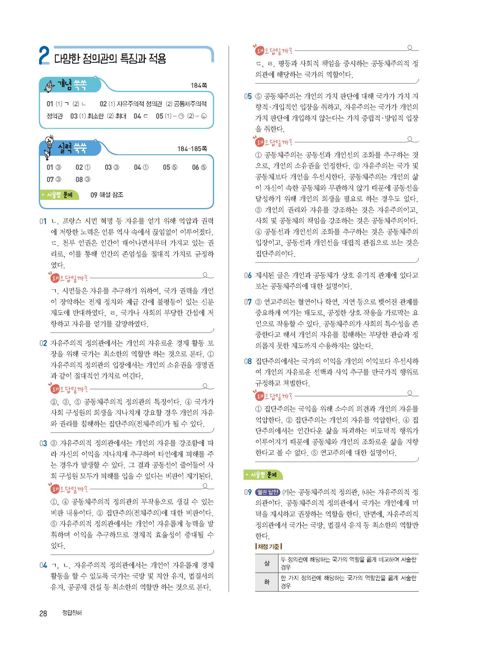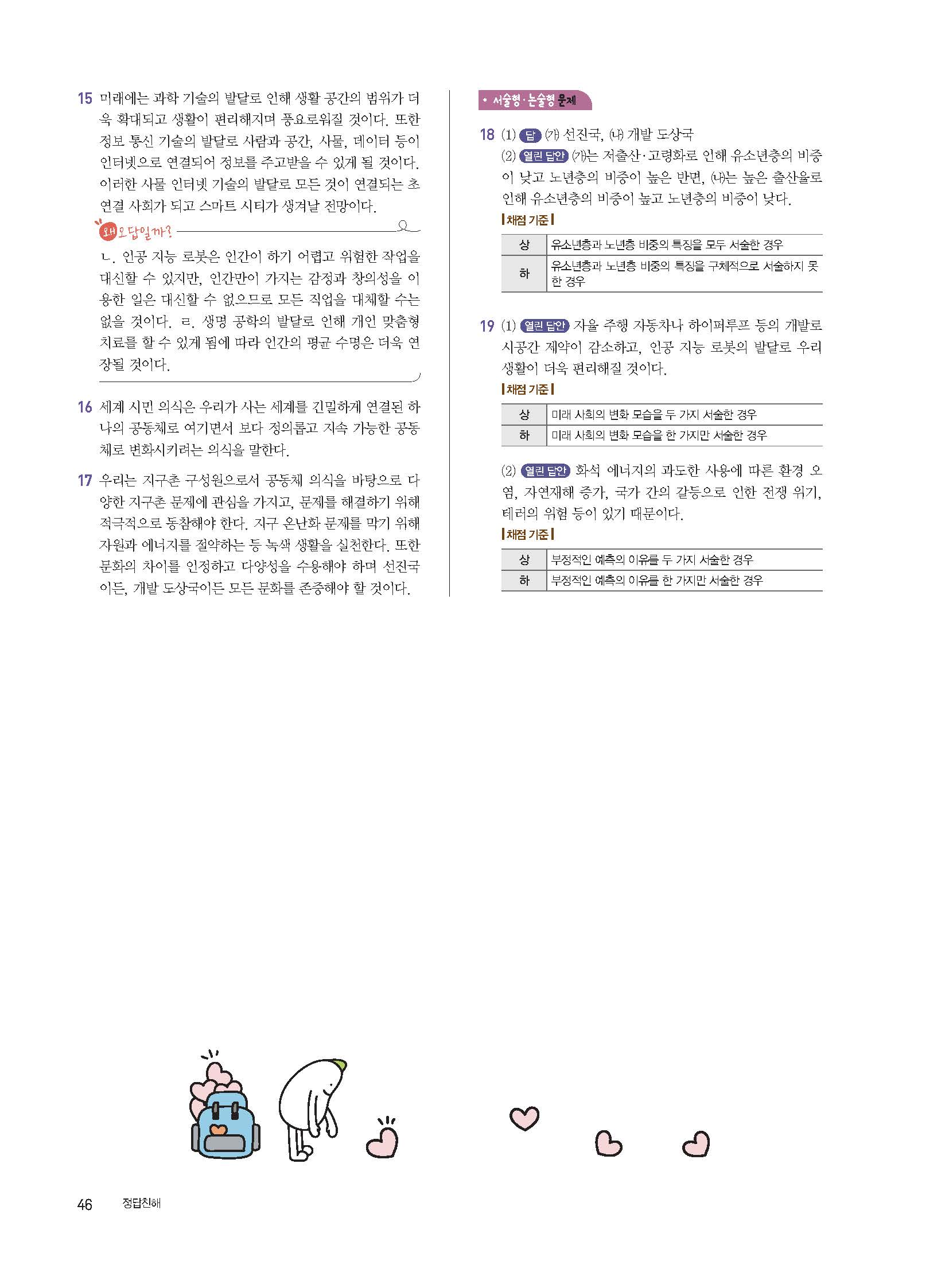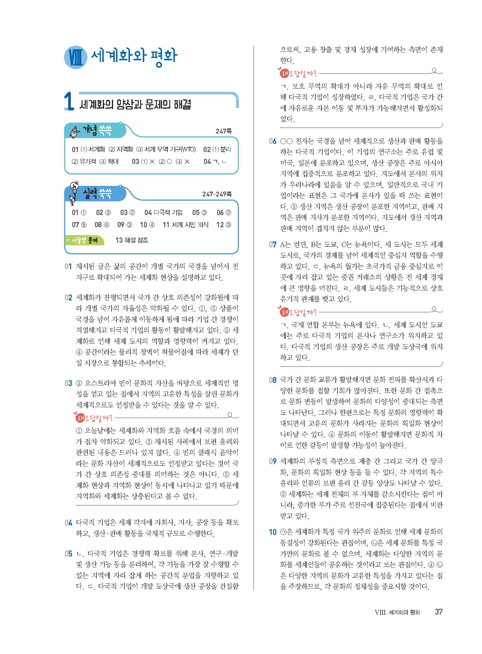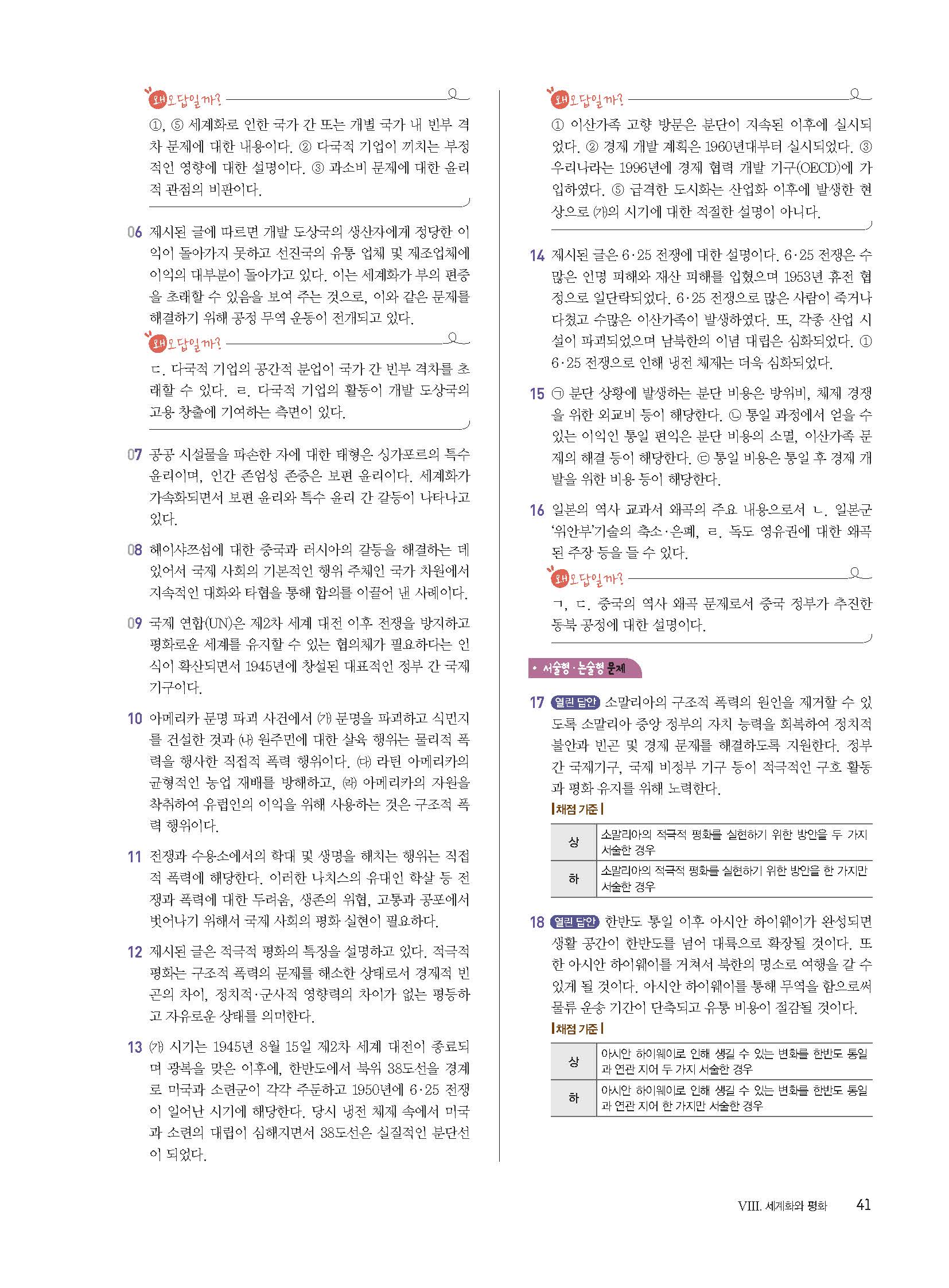 완자자습서 고등통합사회 사진답지 빠른답지 모바일최적화