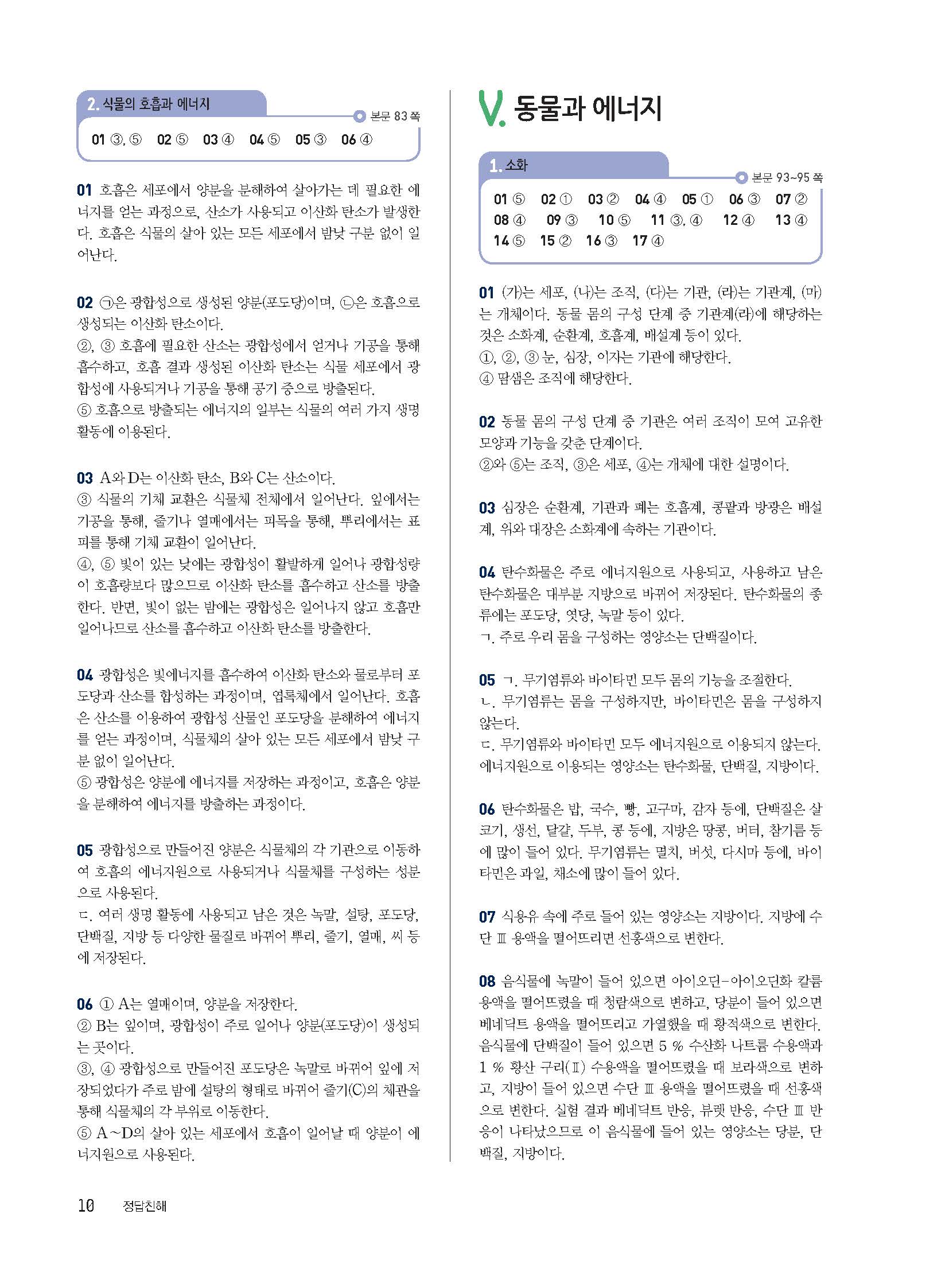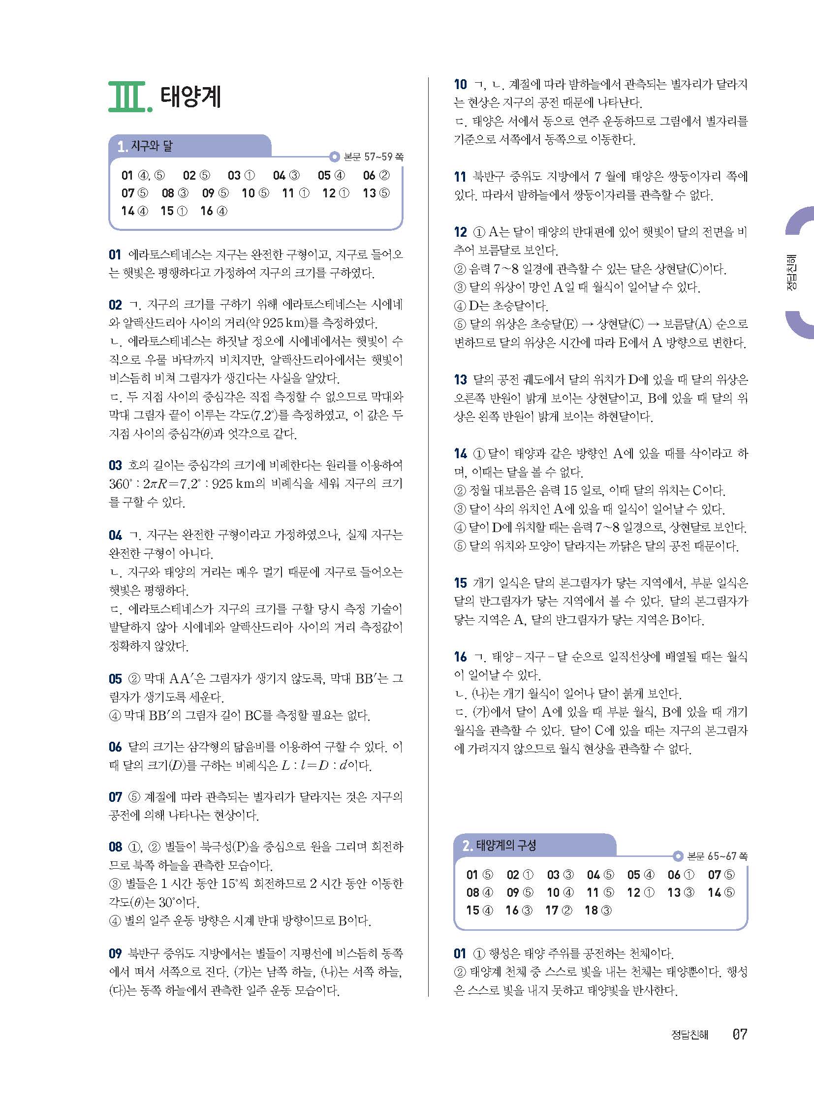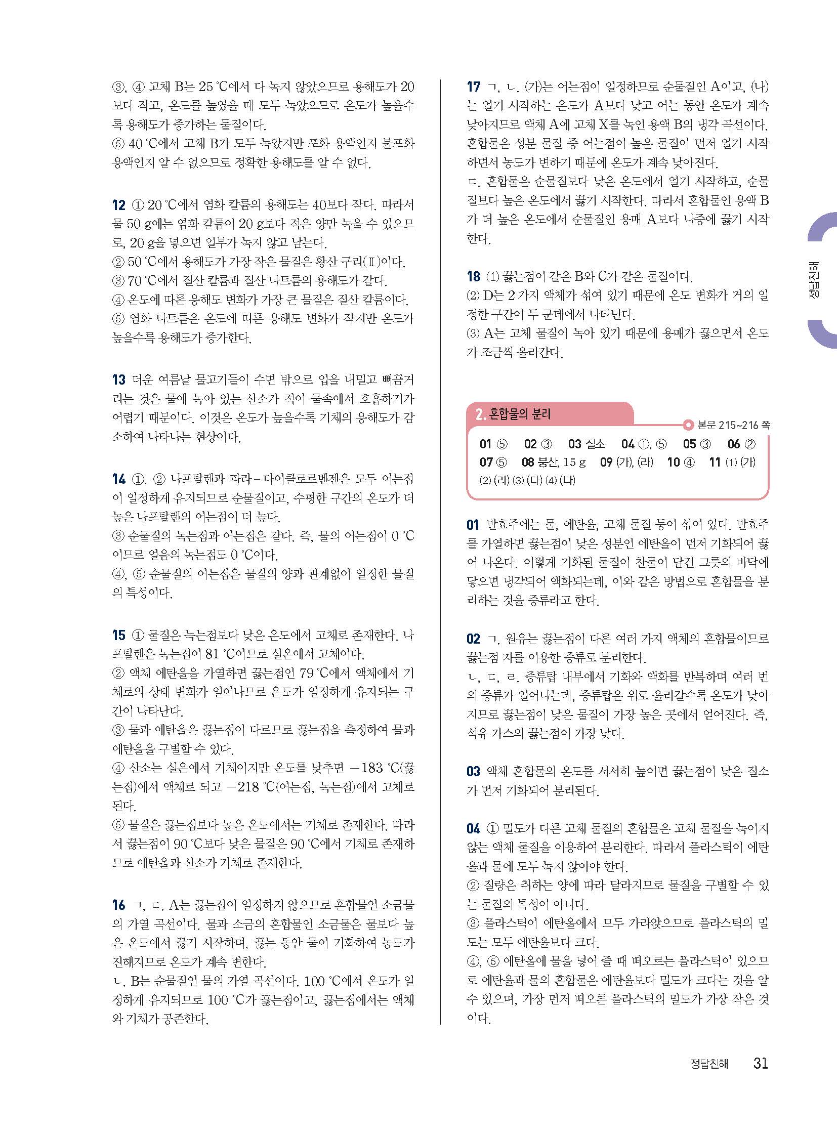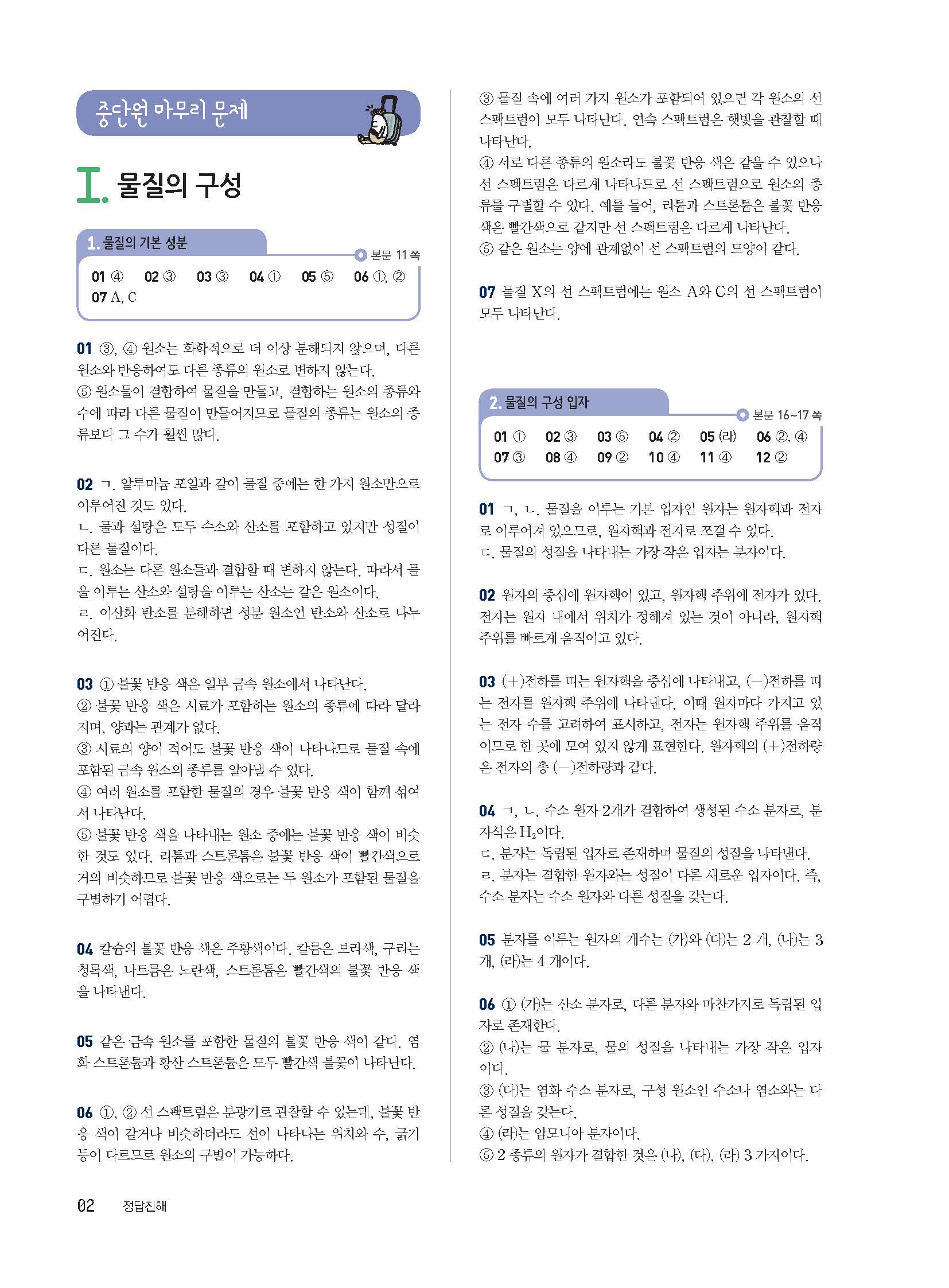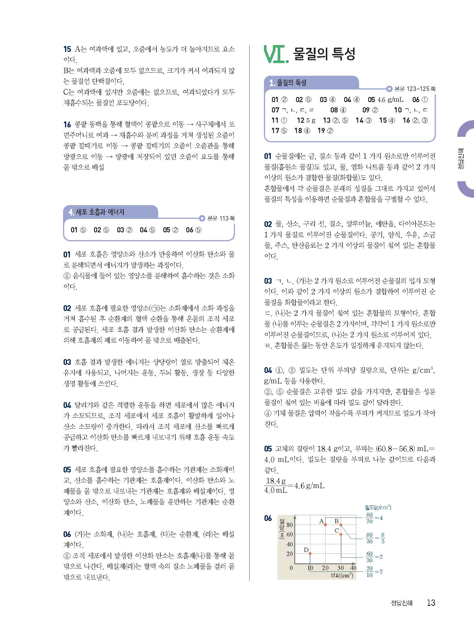 완자 자습서 중등과학2 사진답지 빠른답지 모바일최적화