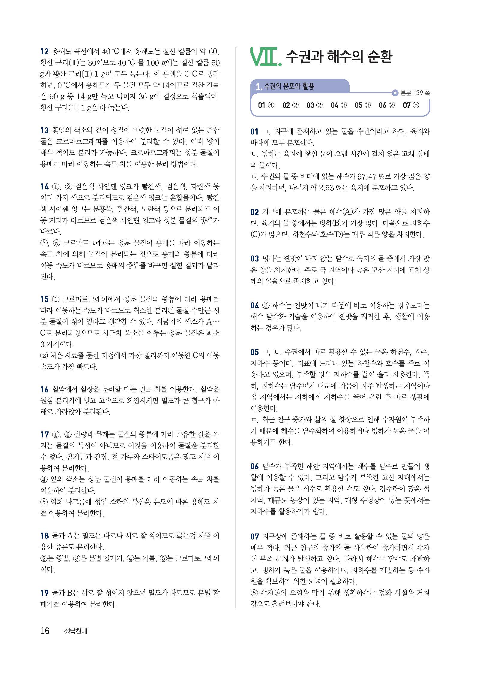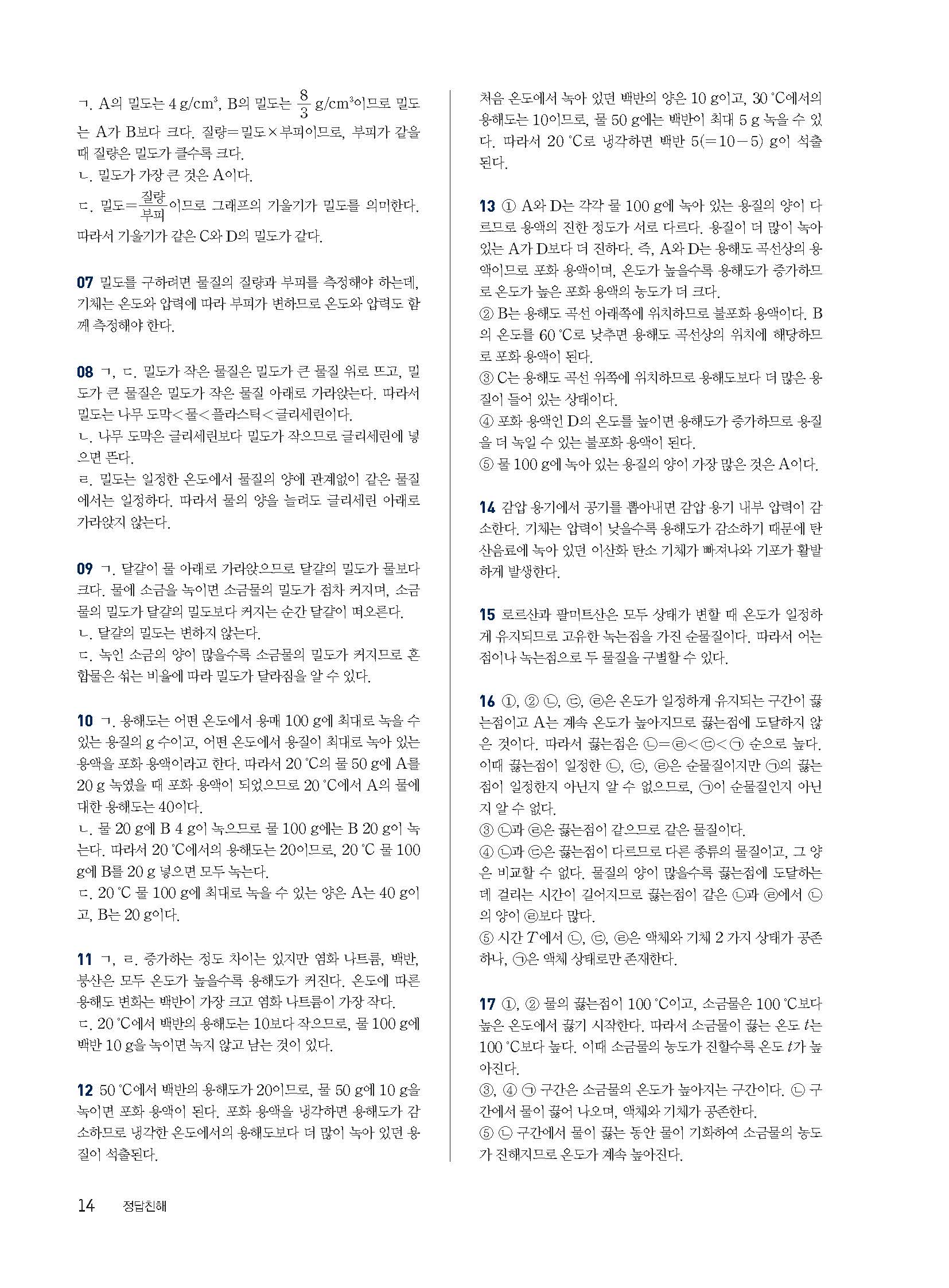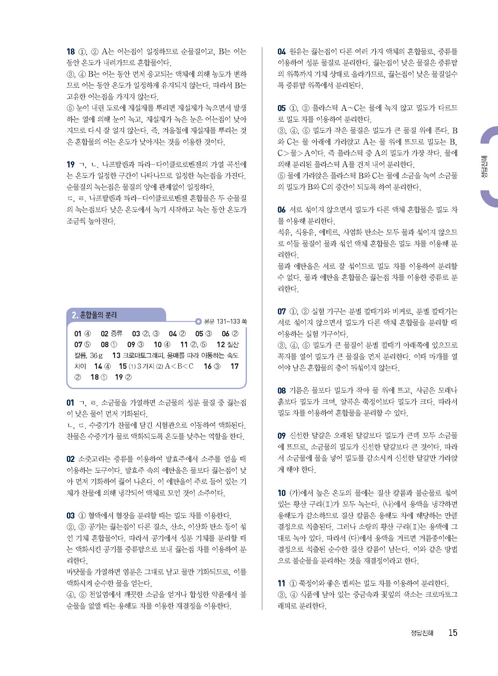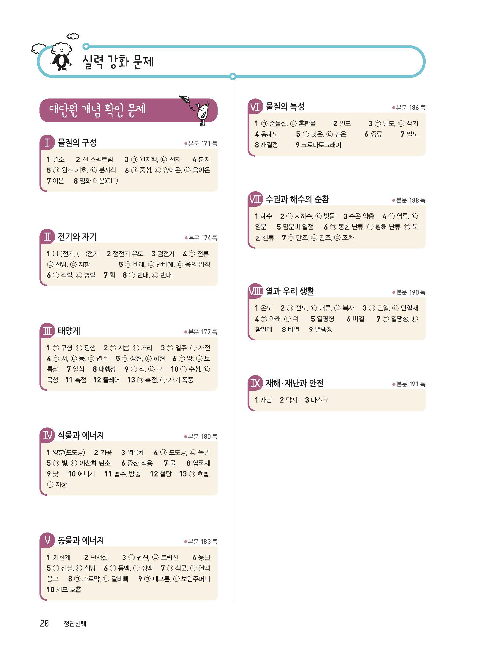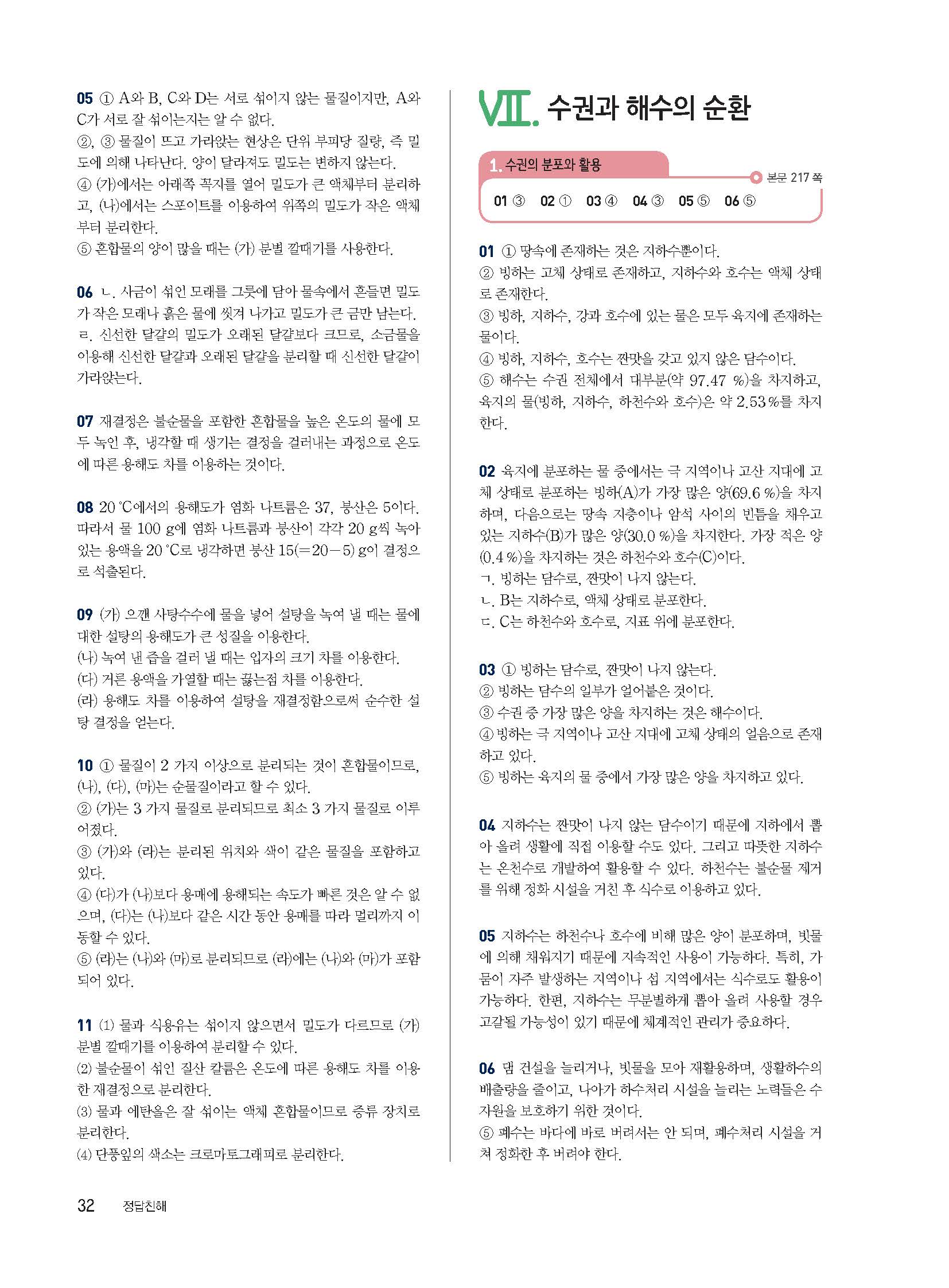 완자 자습서 중등과학2 사진답지 빠른답지 모바일최적화