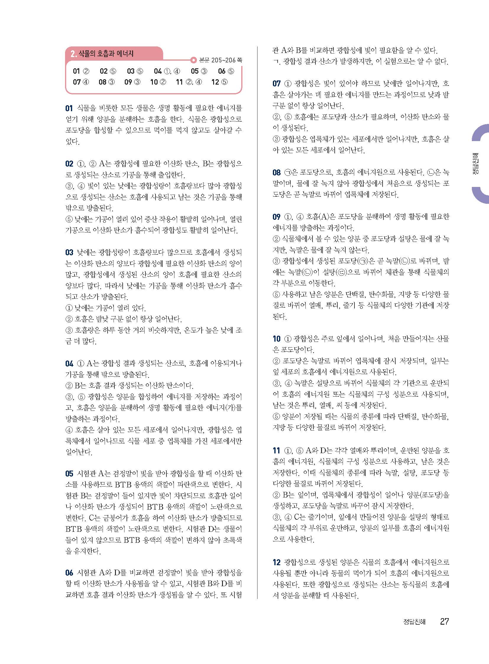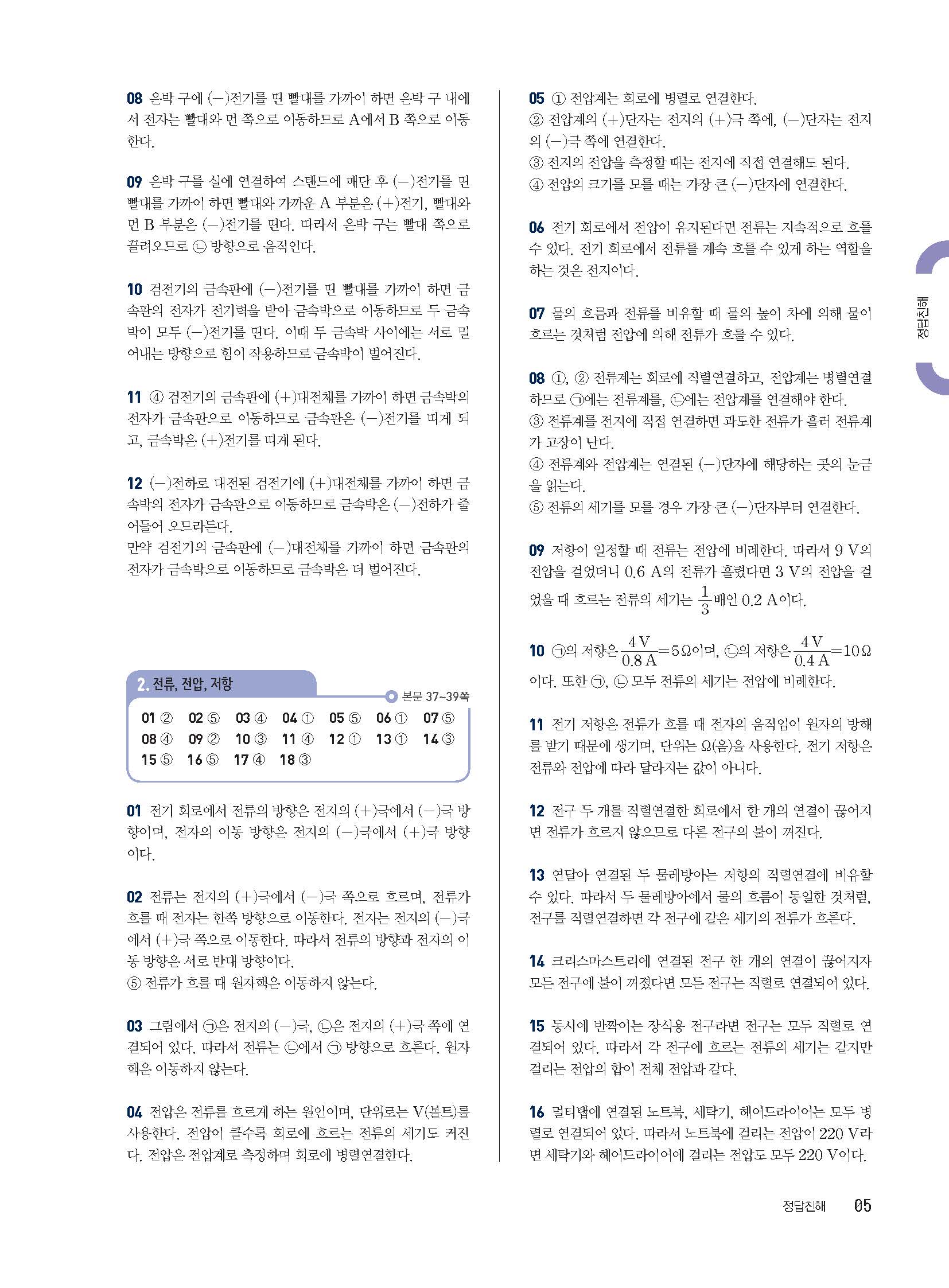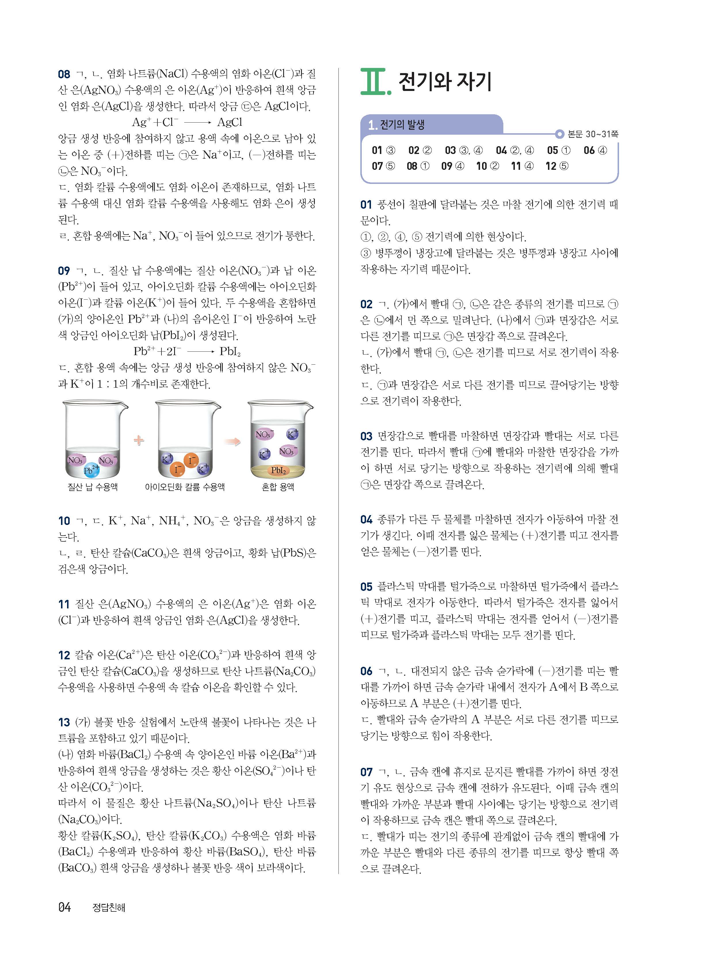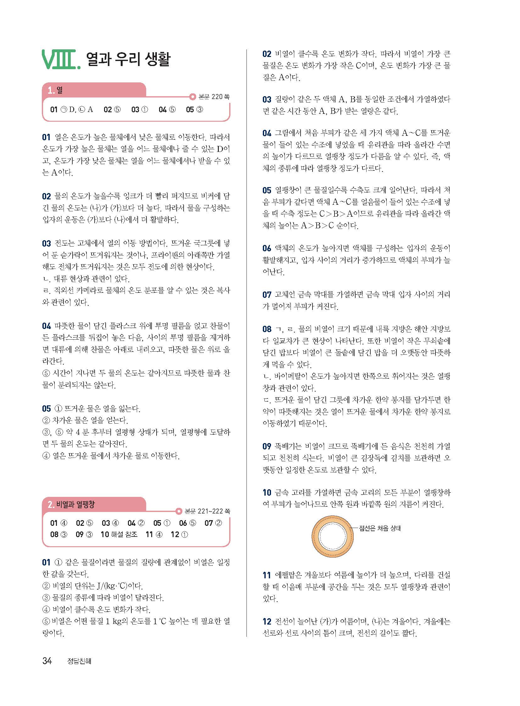 완자 자습서 중등과학2 사진답지 빠른답지 모바일최적화