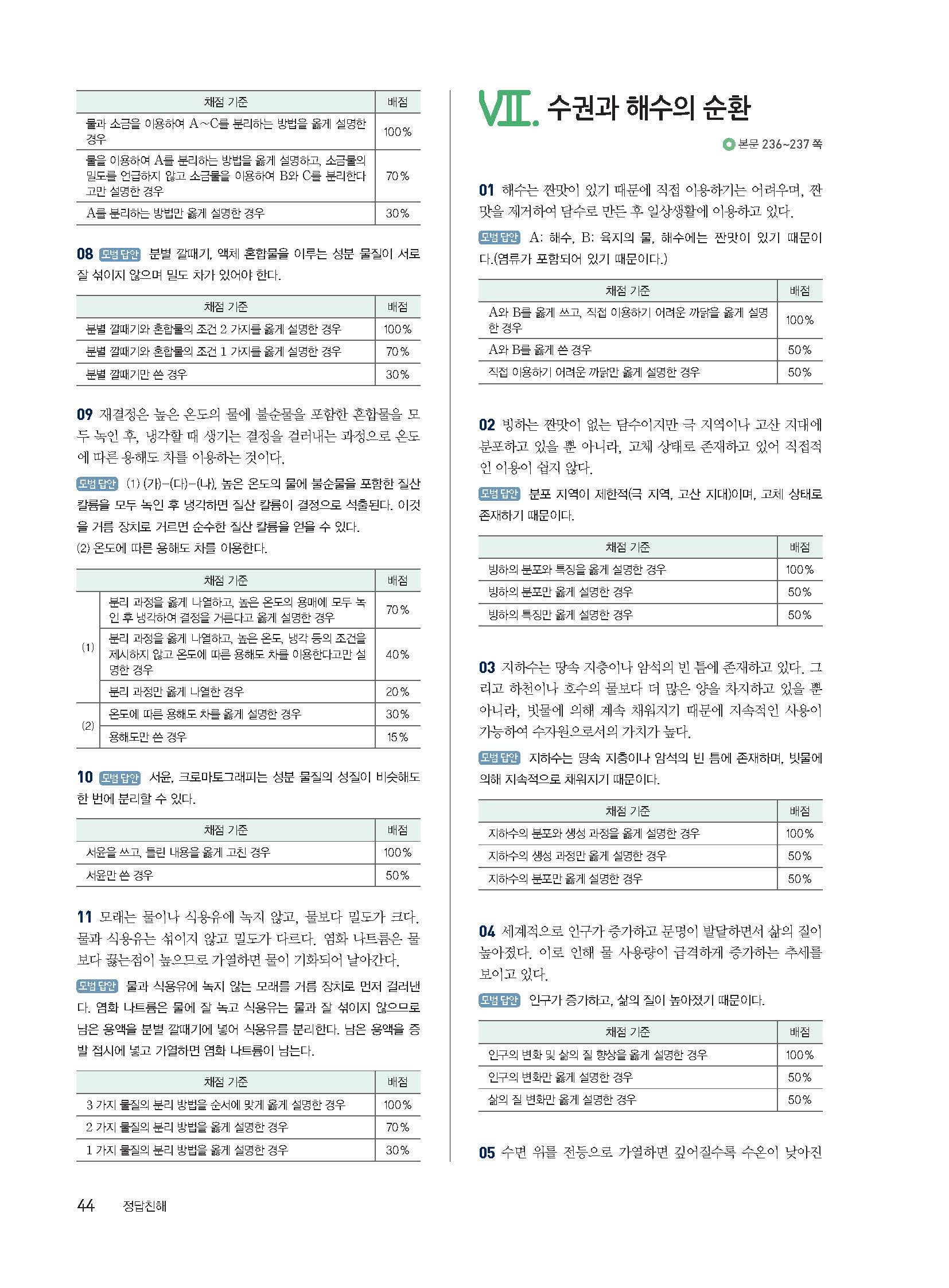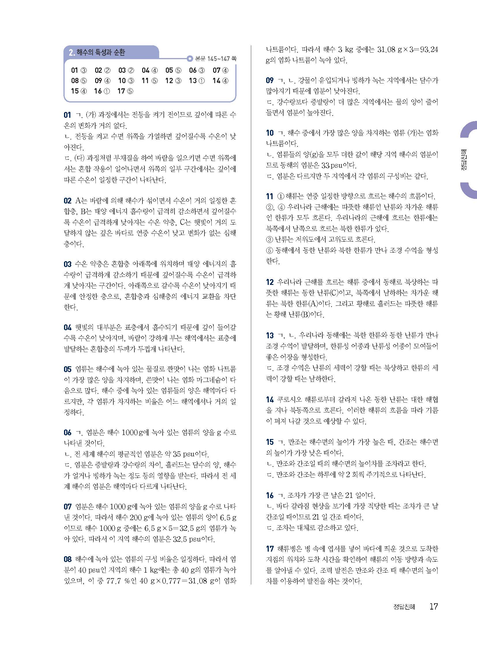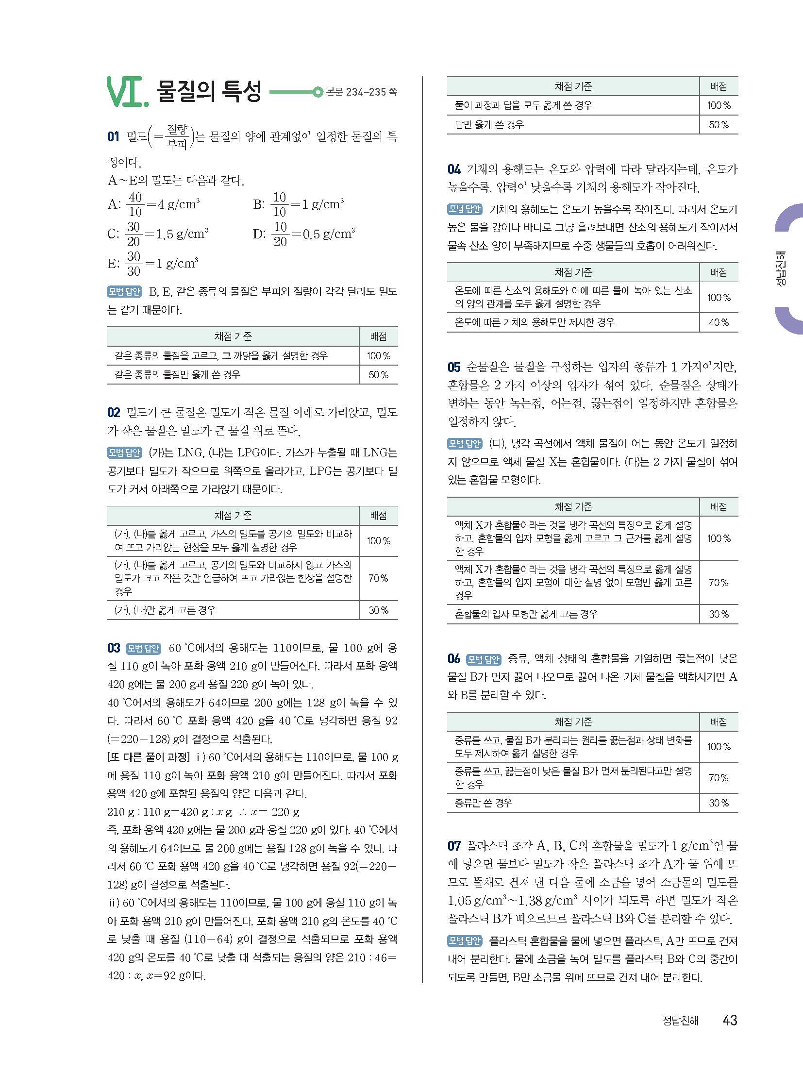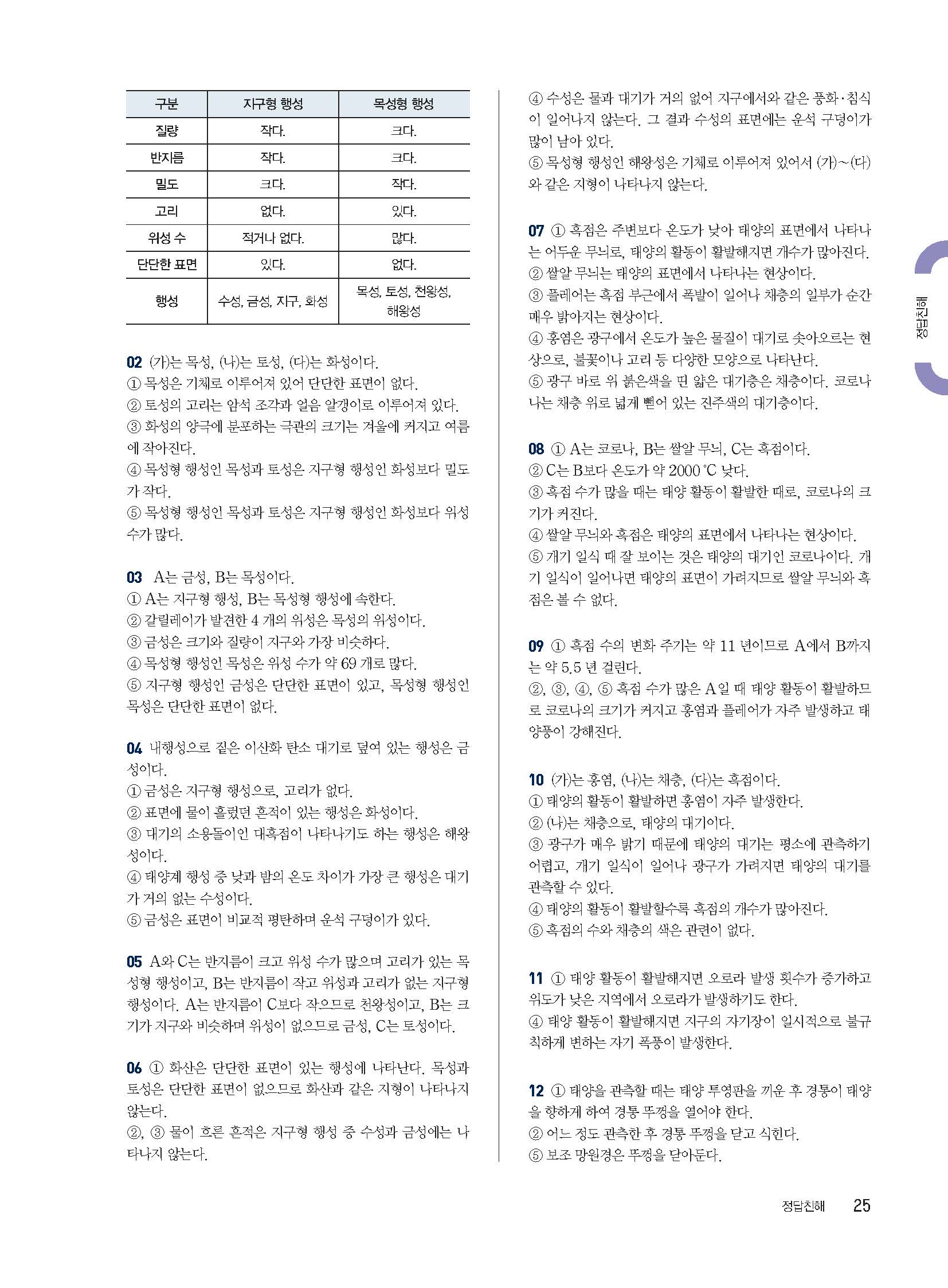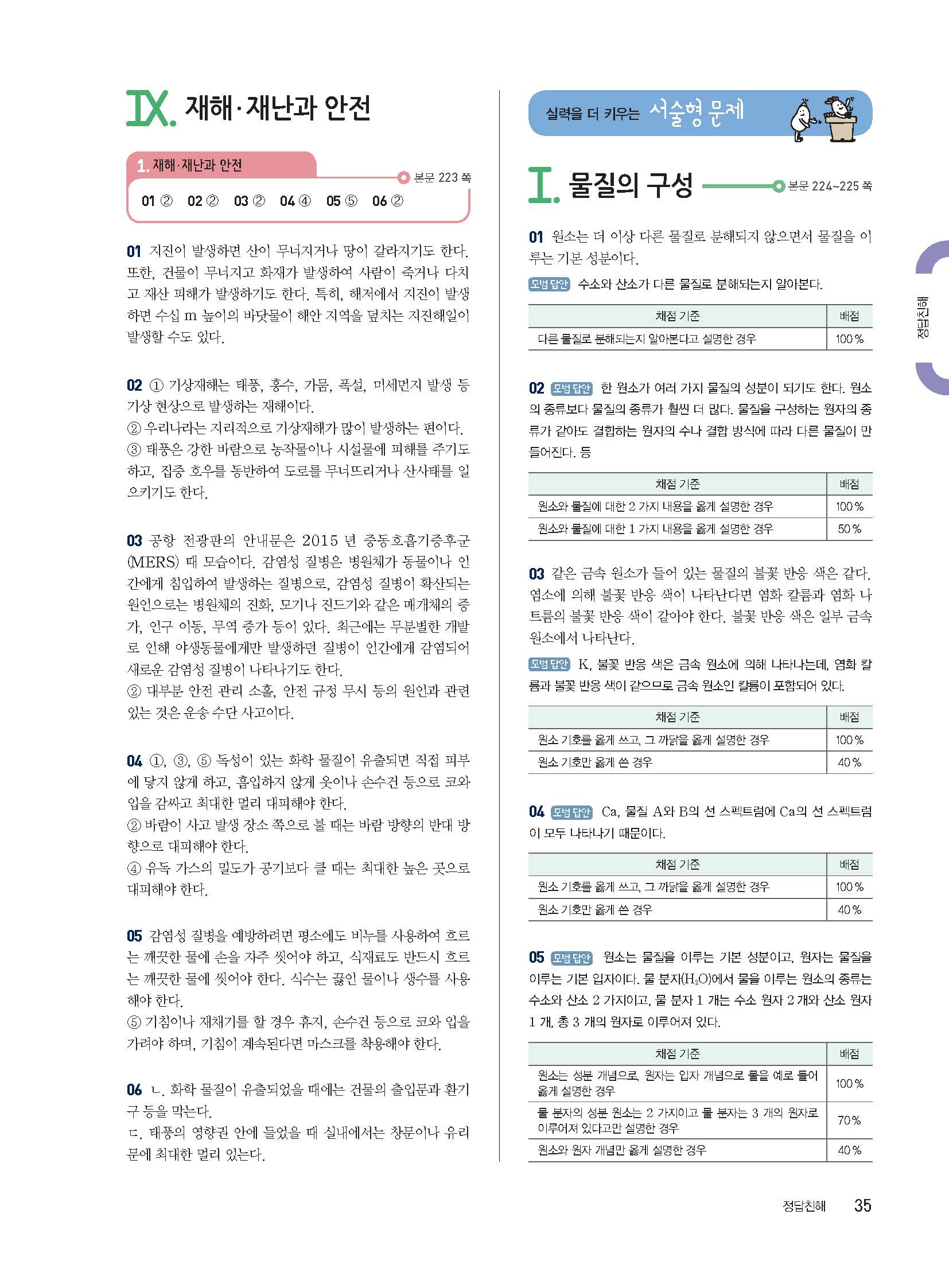 완자 자습서 중등과학2 사진답지 빠른답지 모바일최적화
