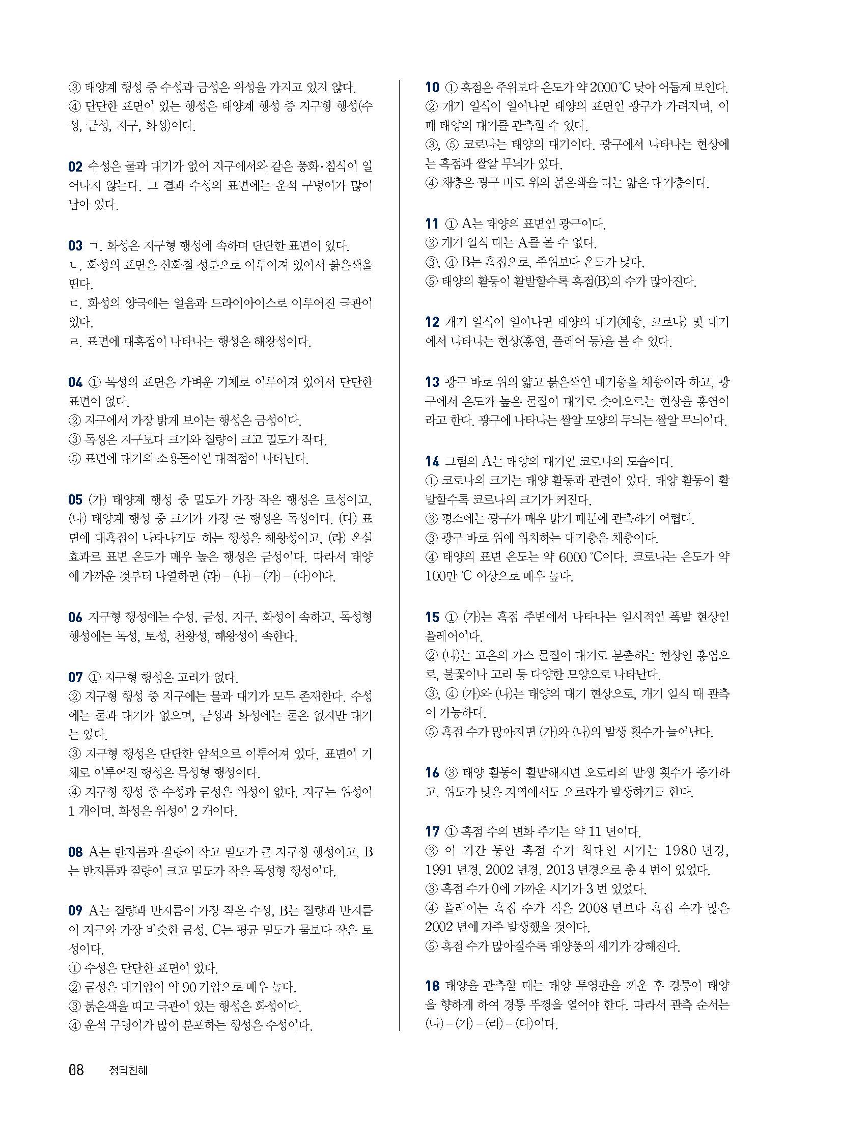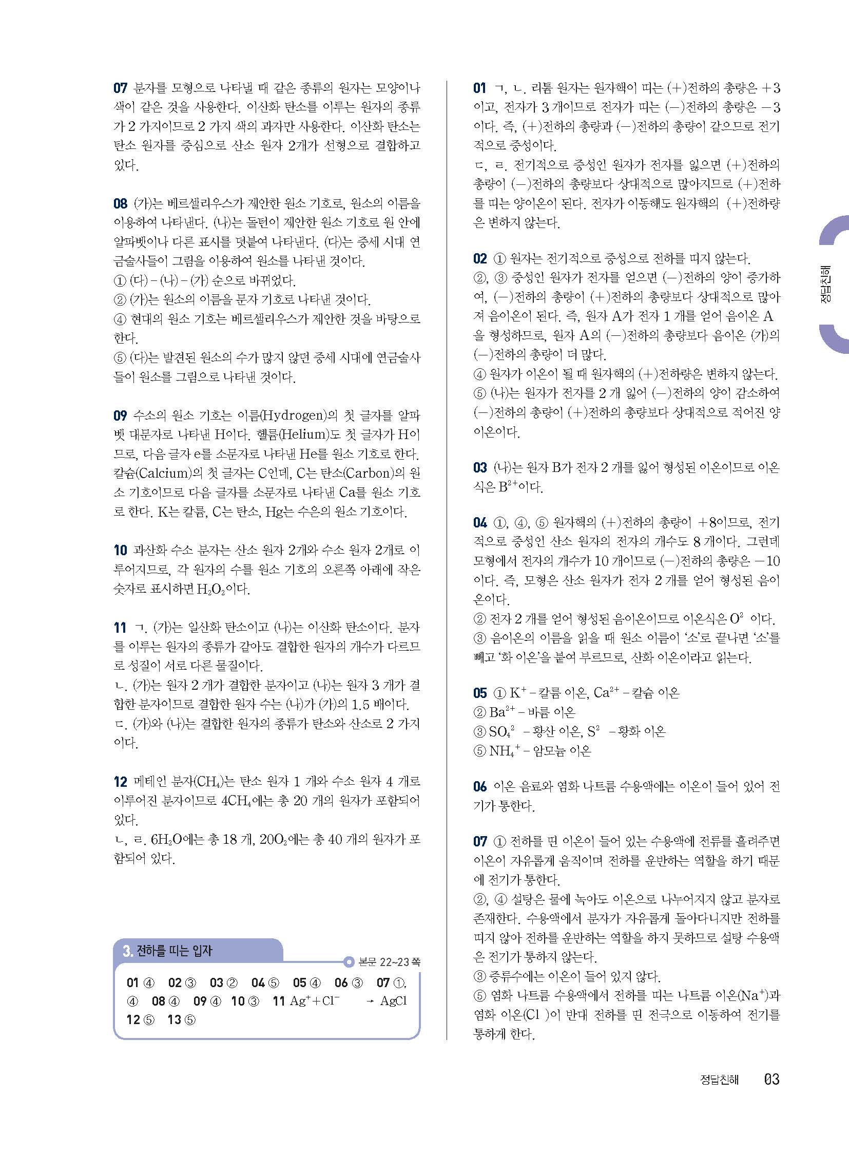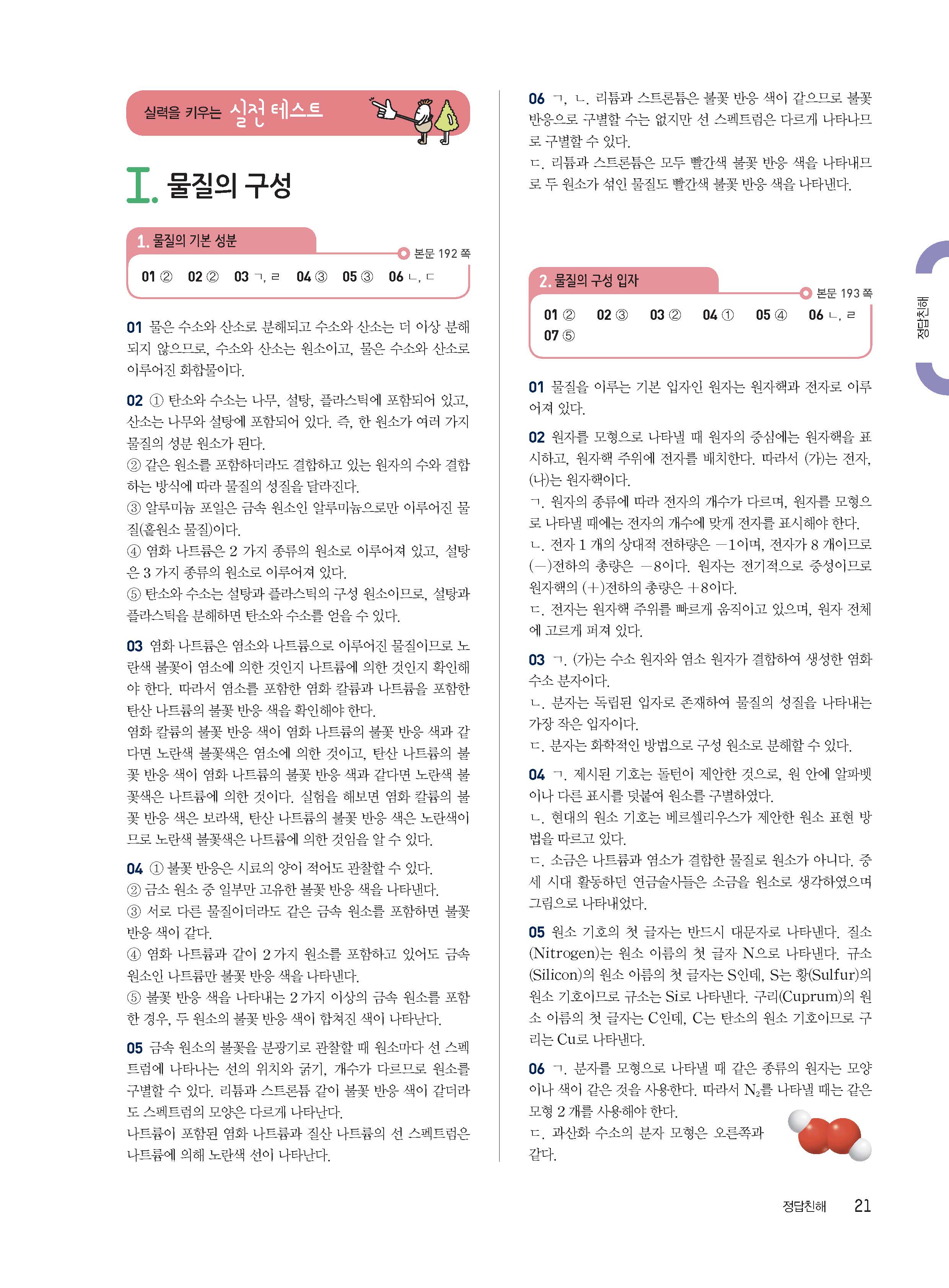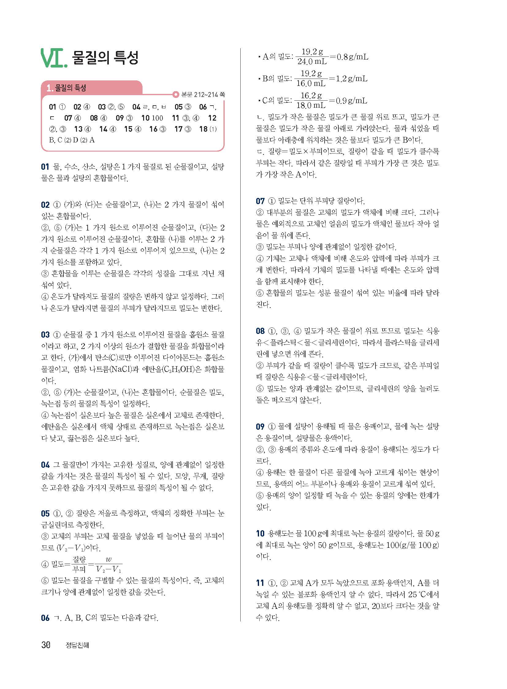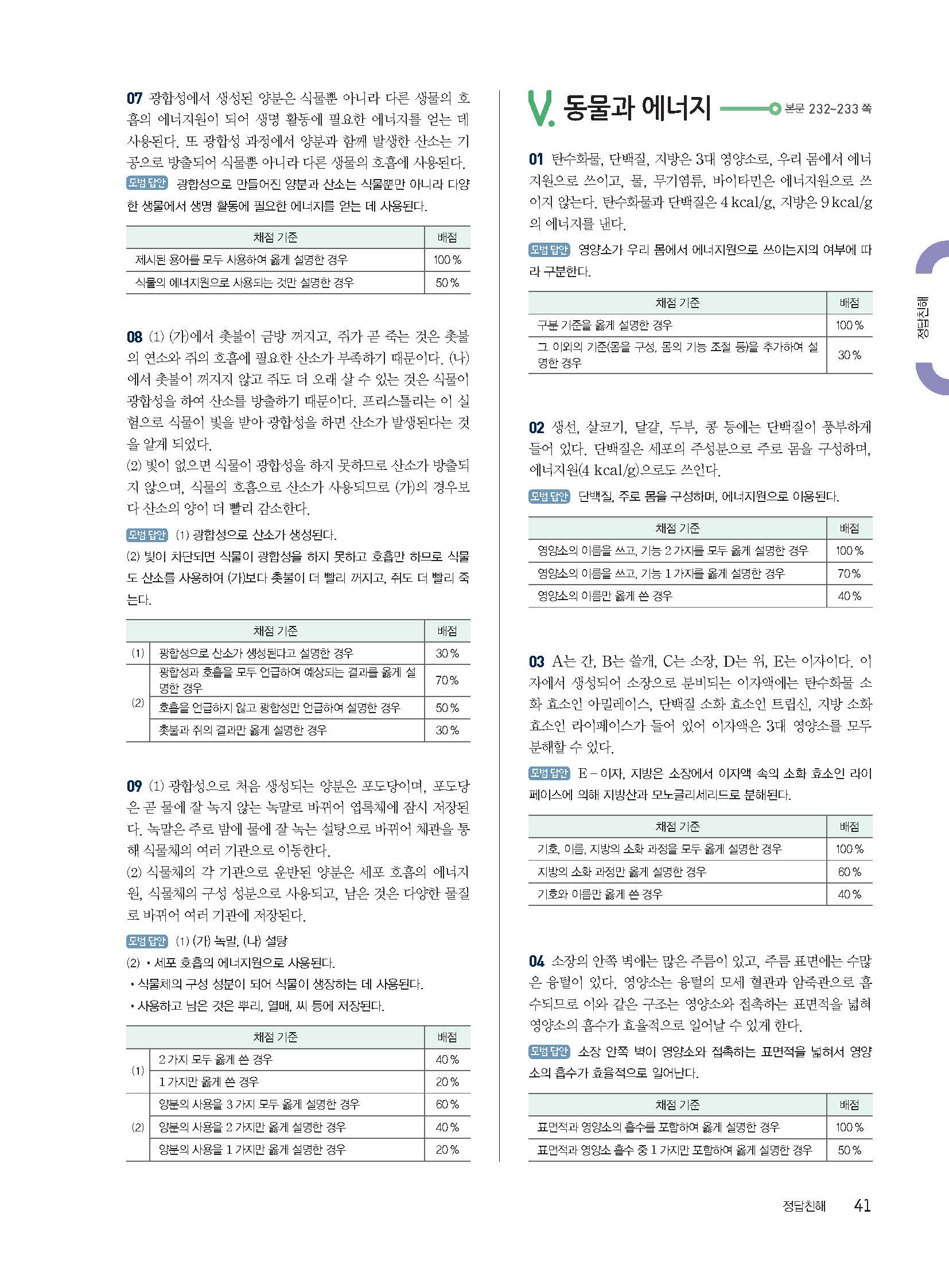 완자 자습서 중등과학2 사진답지 빠른답지 모바일최적화