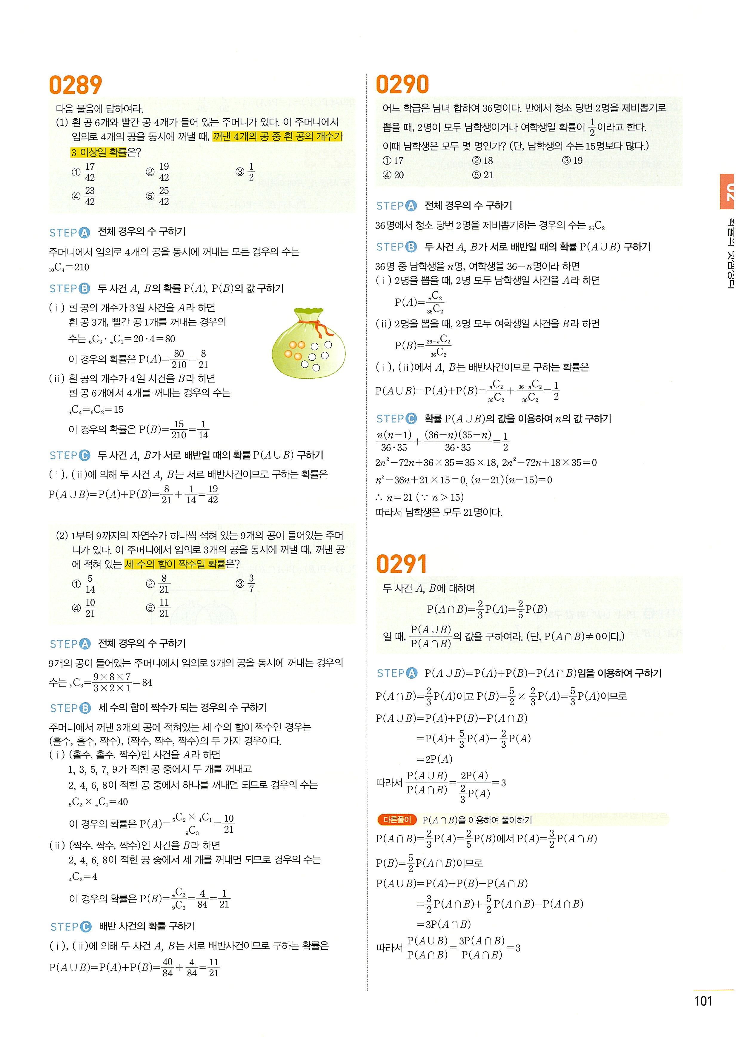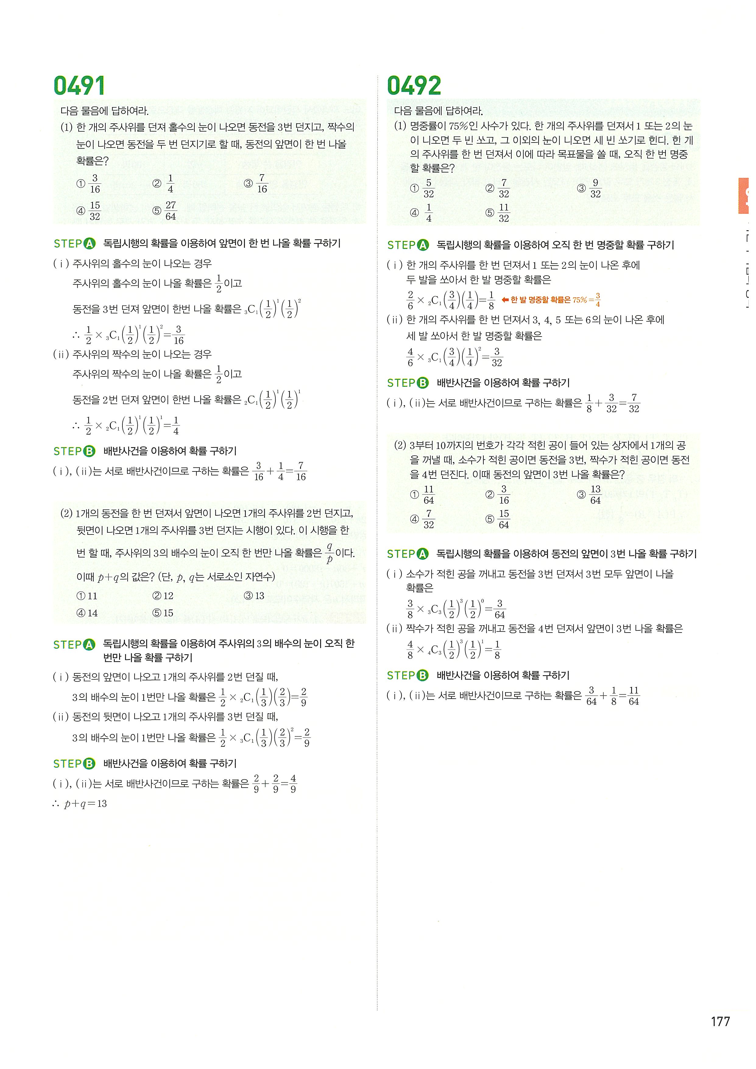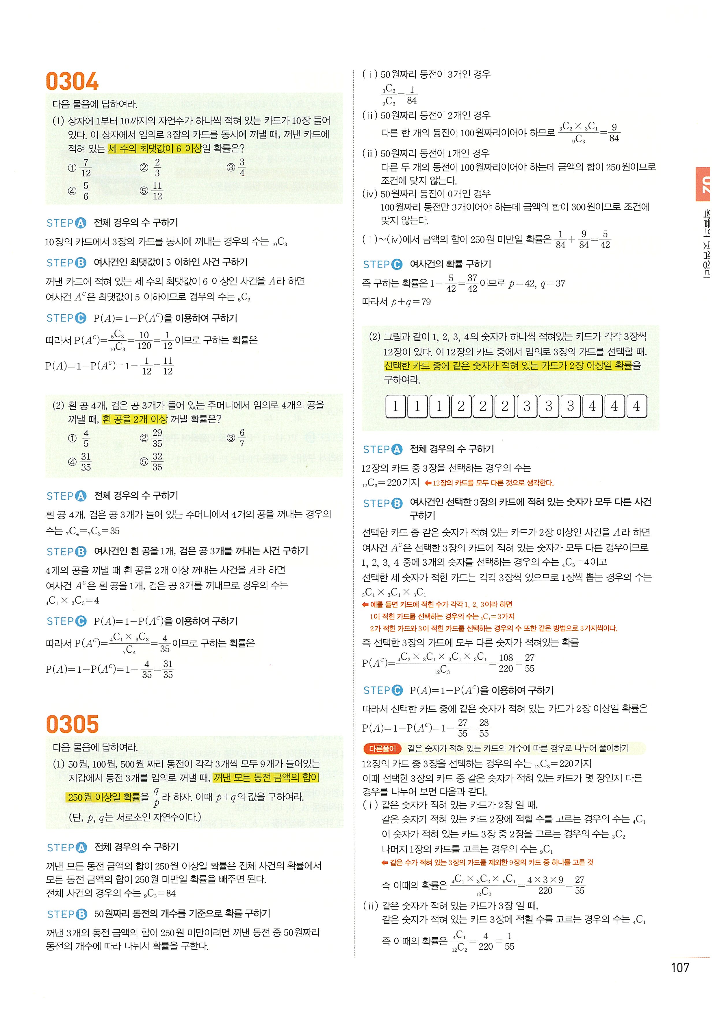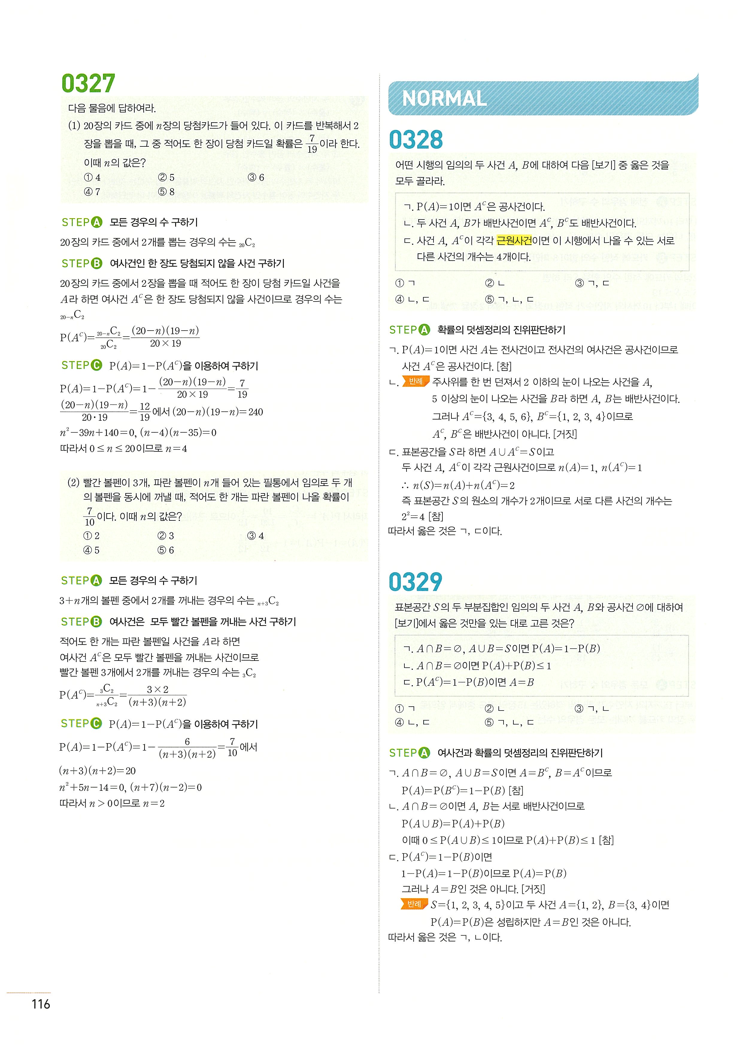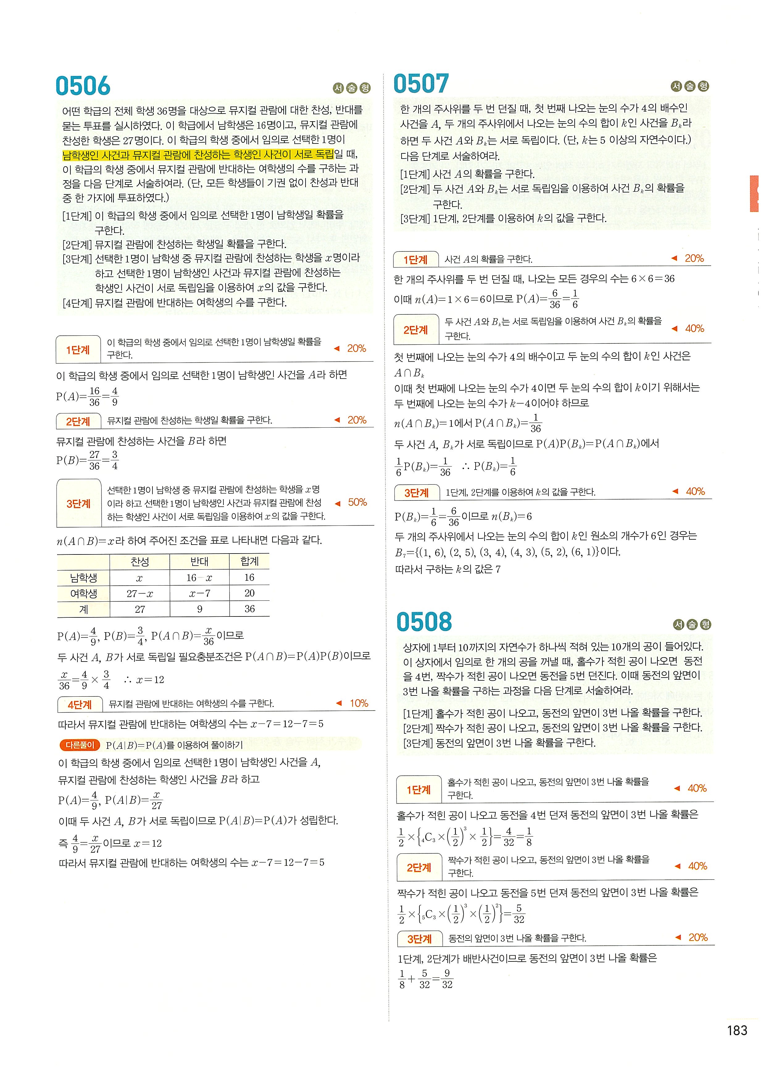 마플교과서 확률과통계 답지 사진답지 빠른답지 모바일최적화