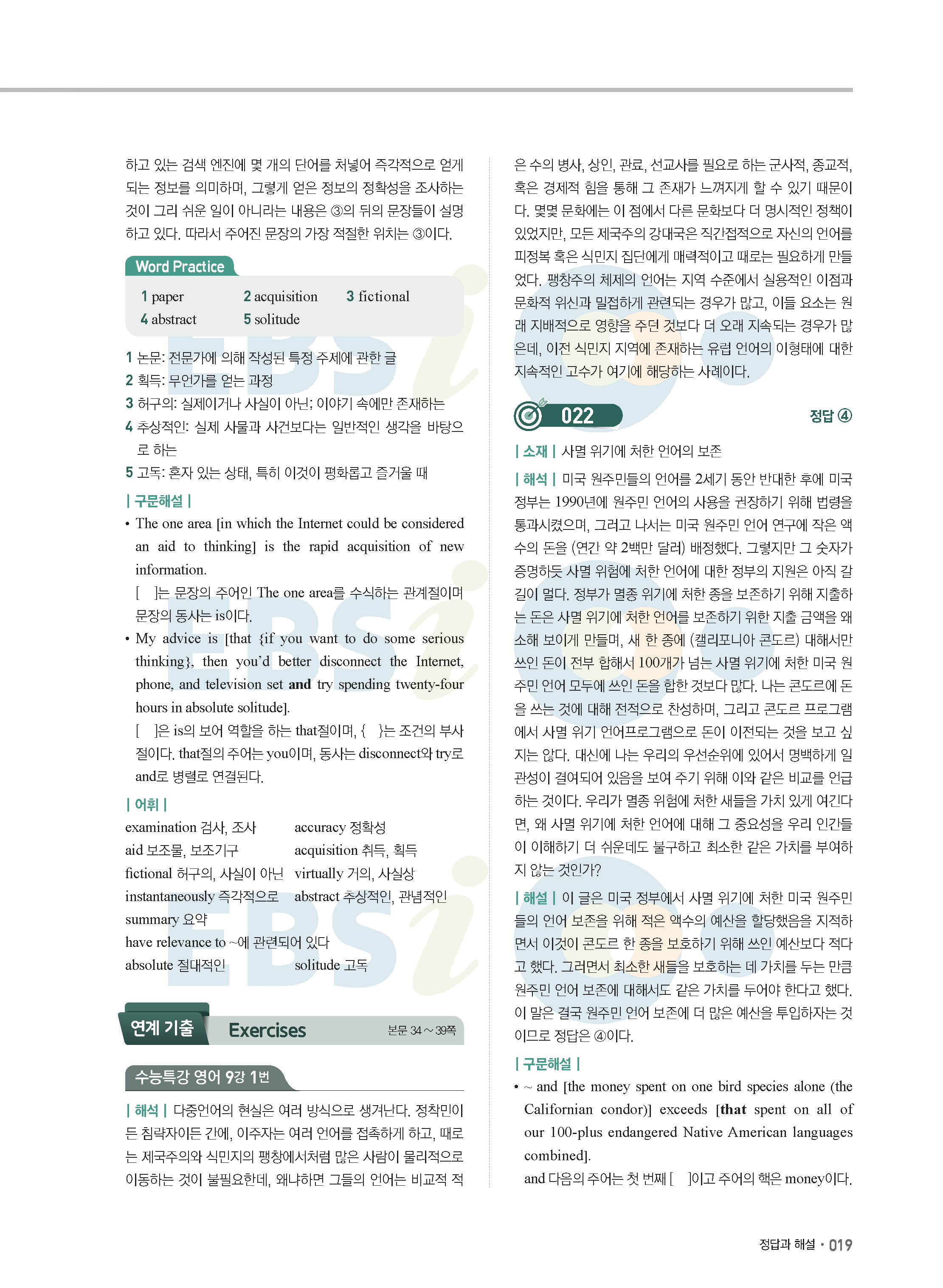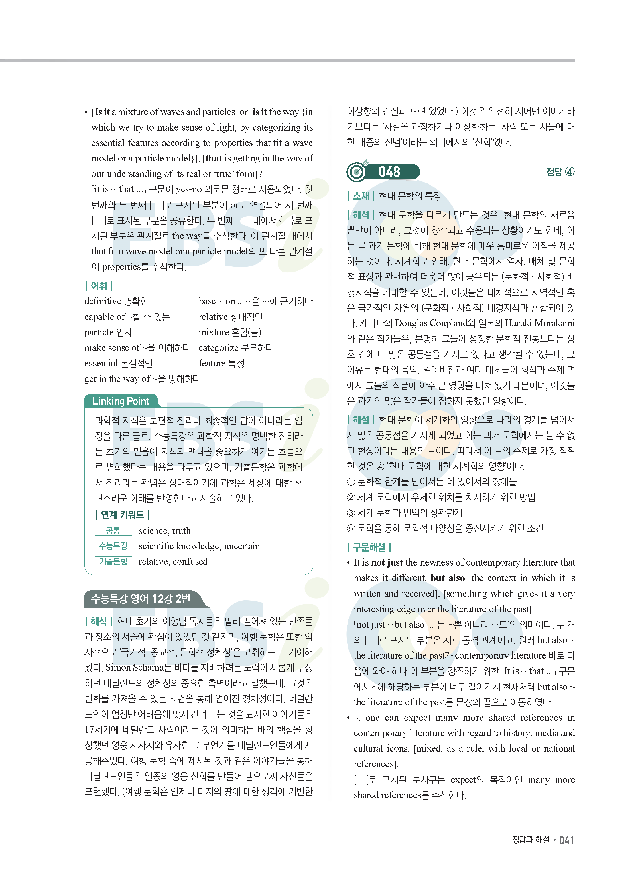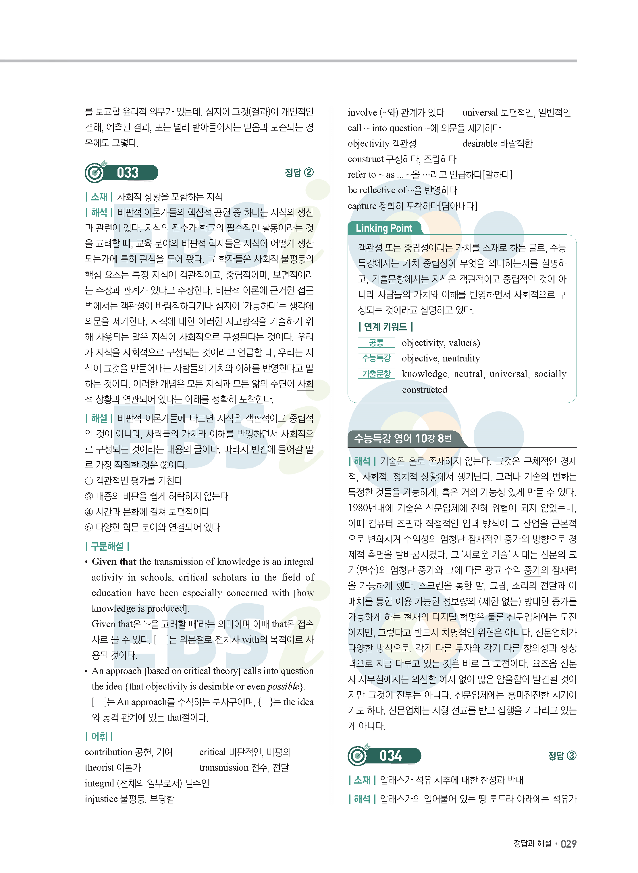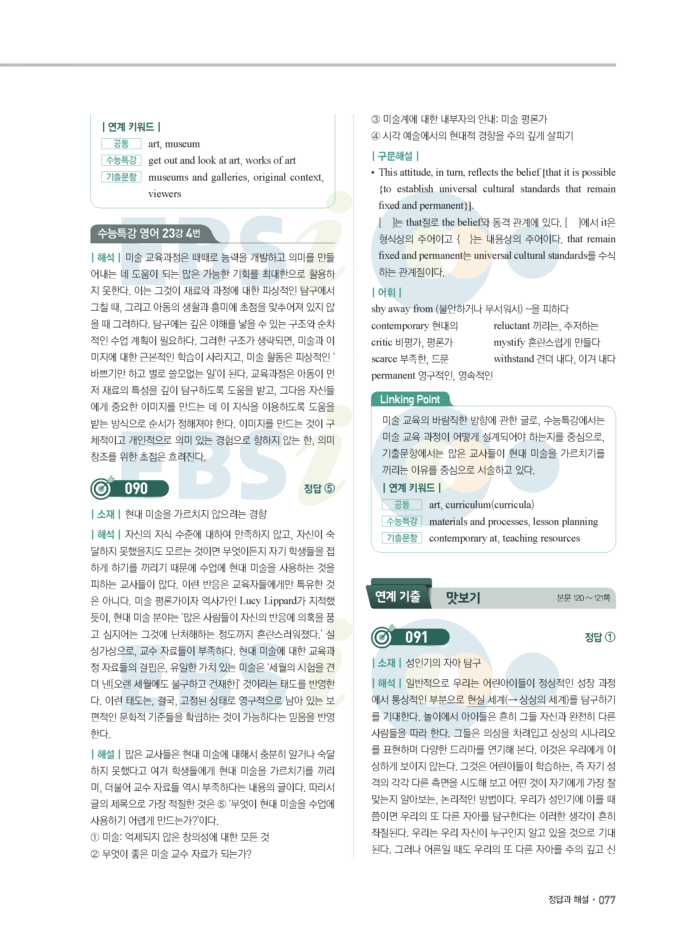 EBS 2022학년도 수능특강 연계 기출 영어 답지 해설 바로보는 사진답지 모바일최적화