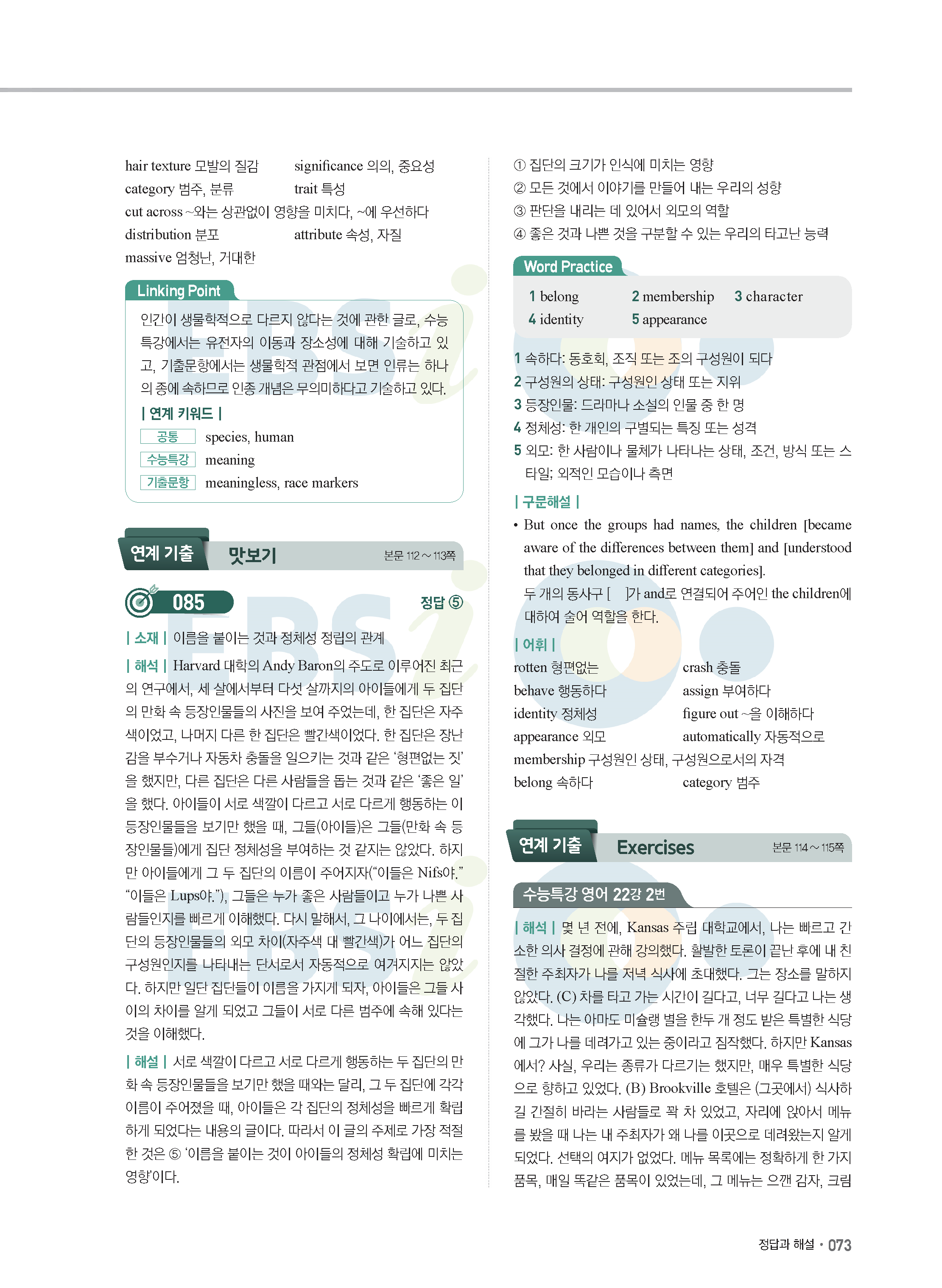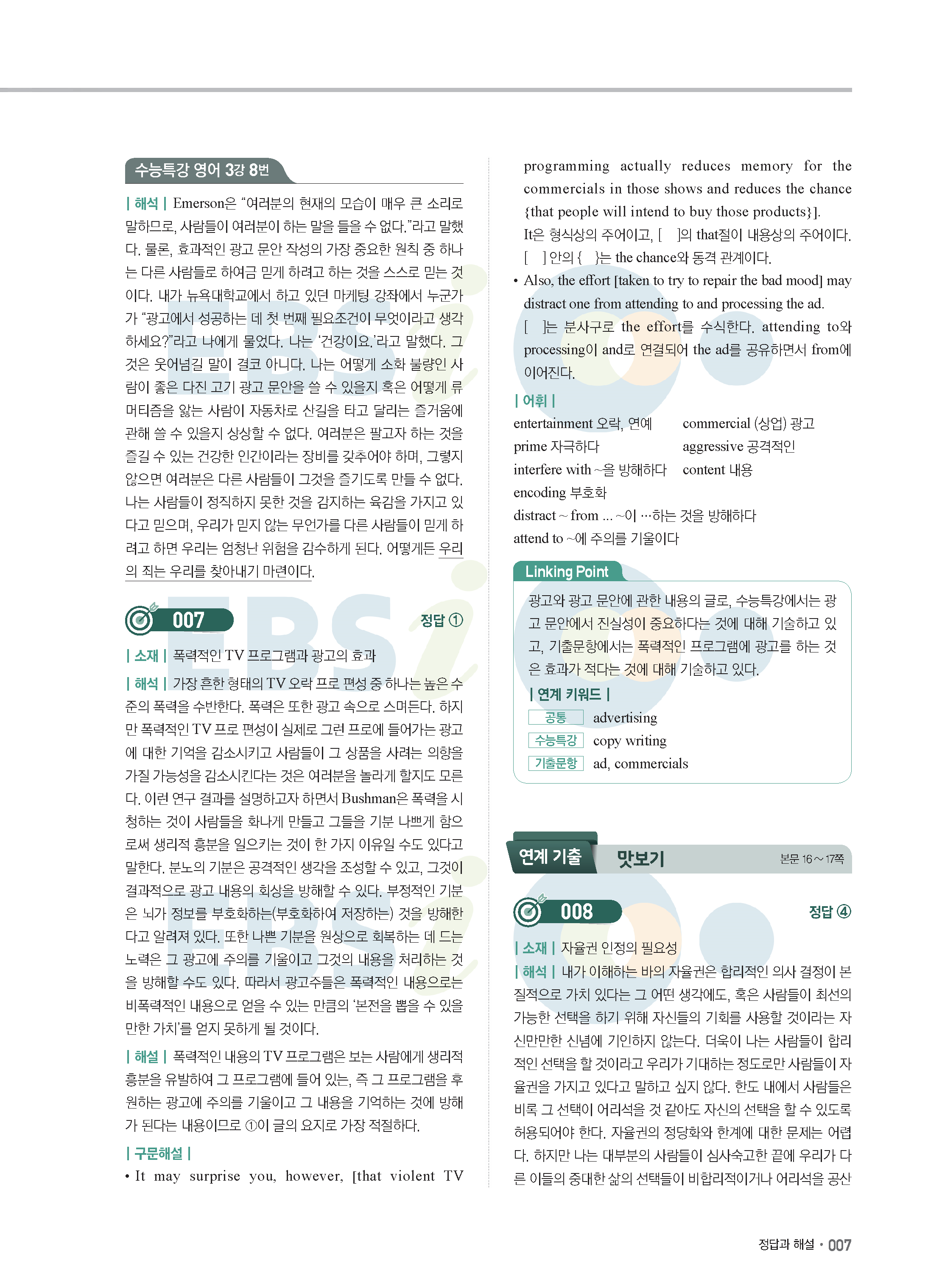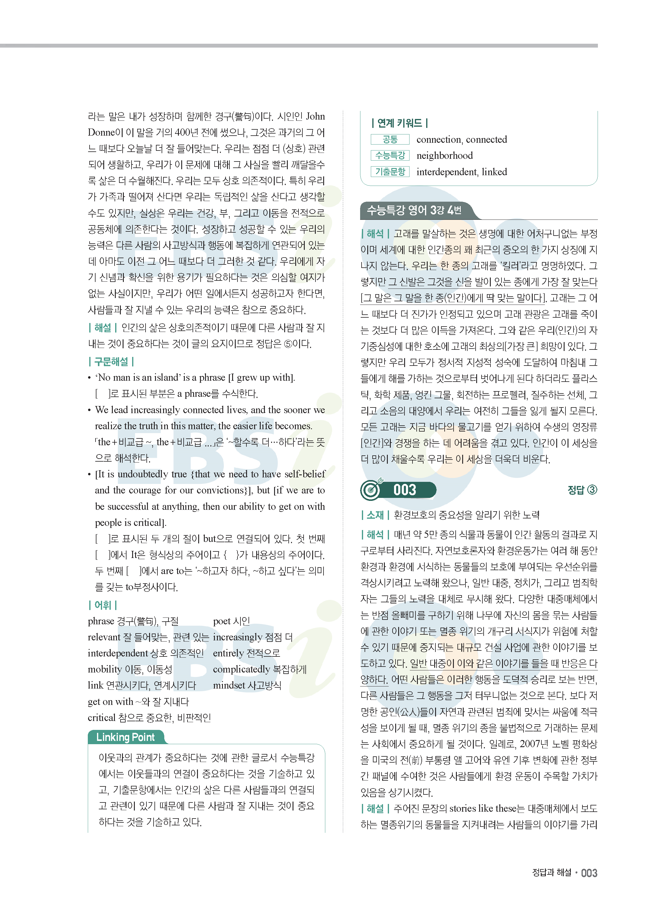EBS 2022학년도 수능특강 연계 기출 영어 답지 해설 바로보는 사진답지 모바일최적화