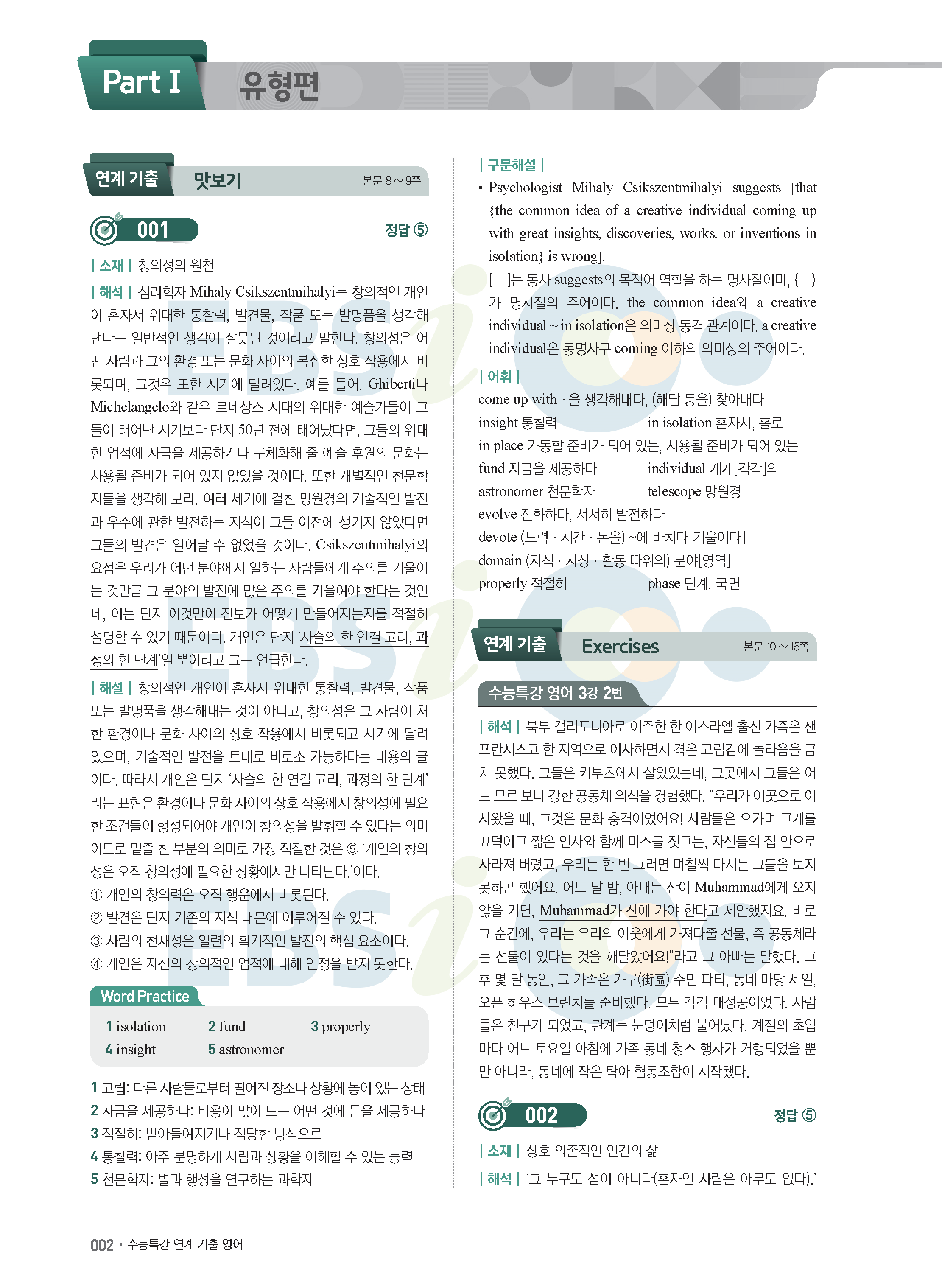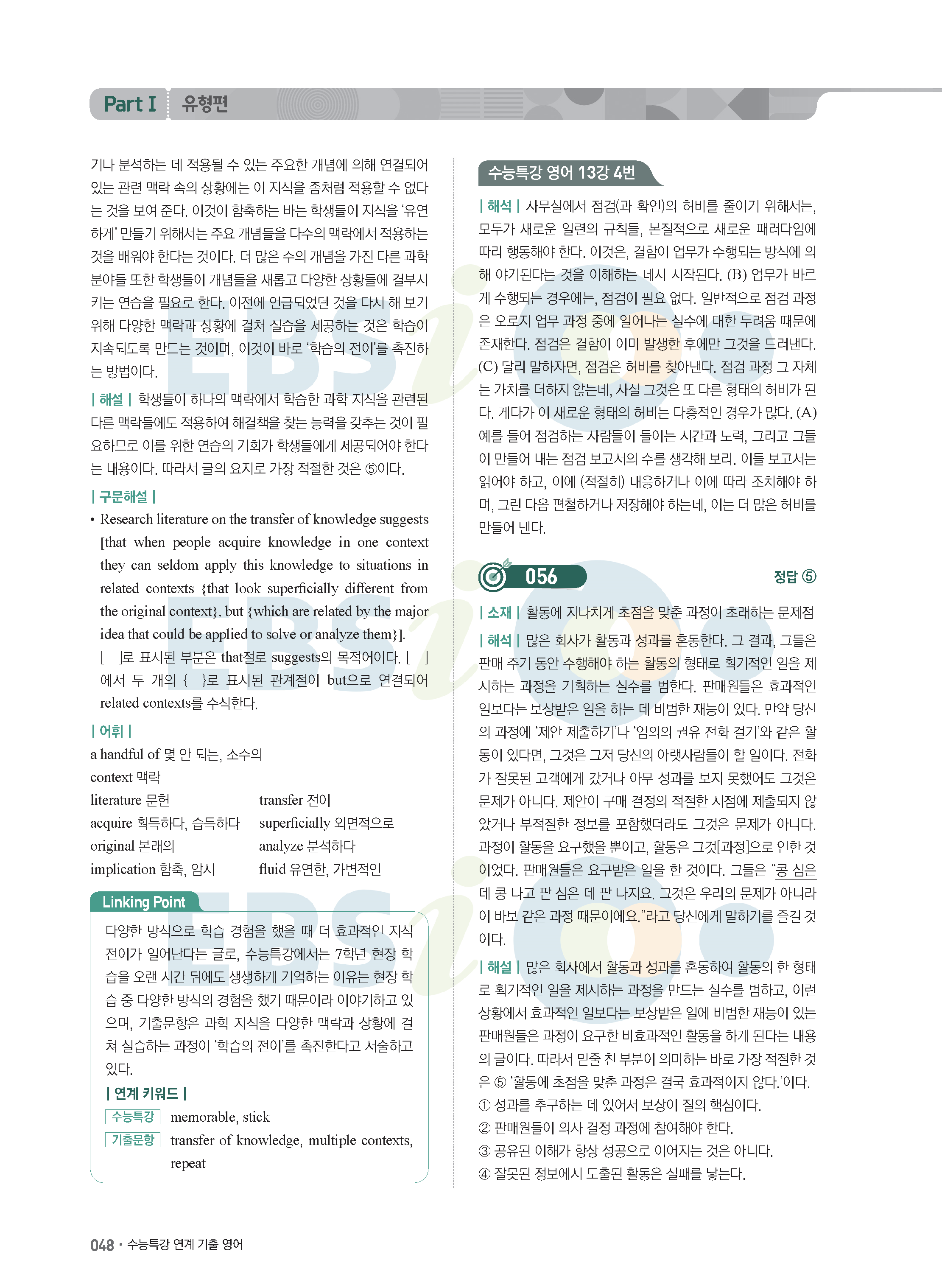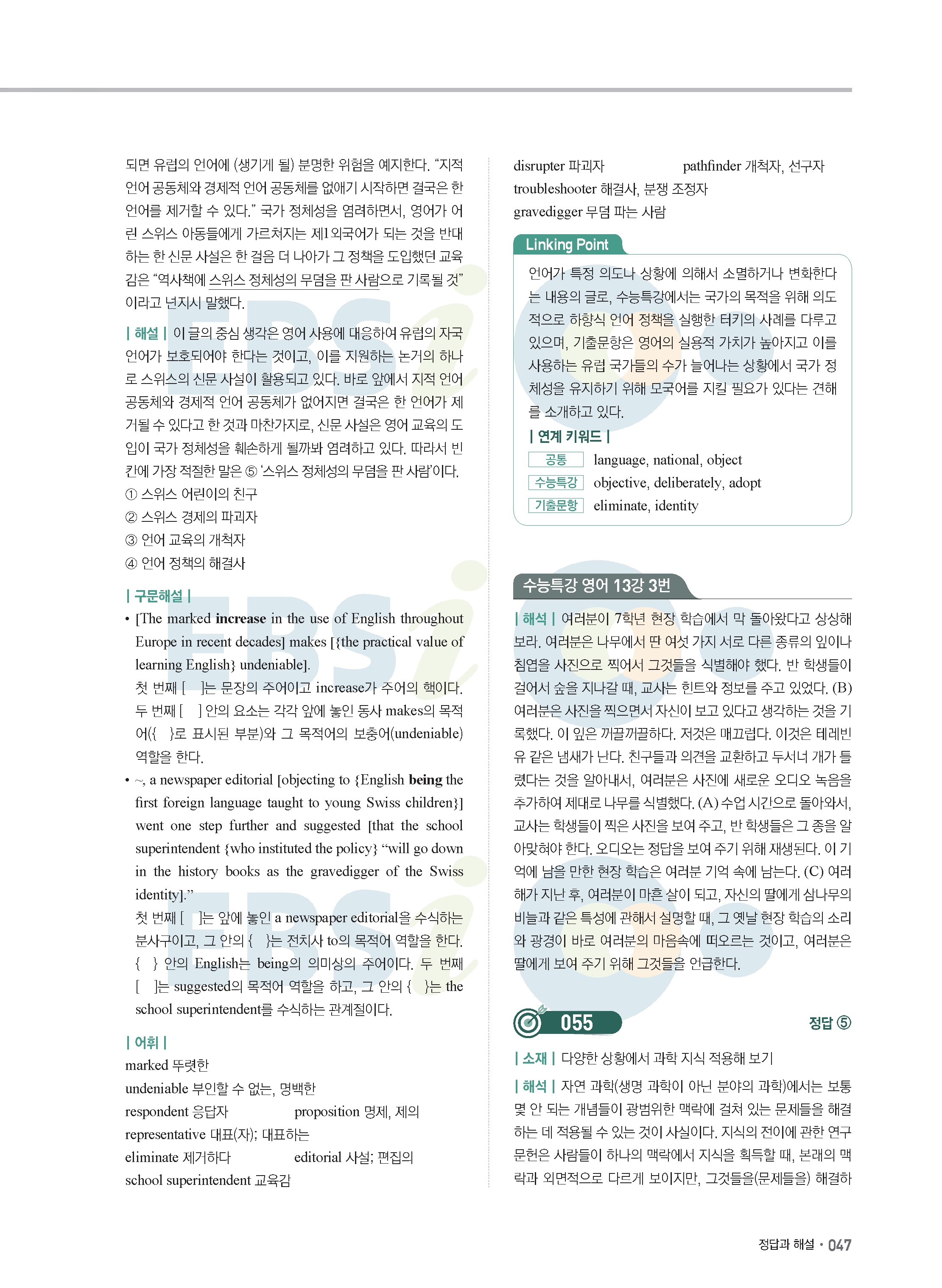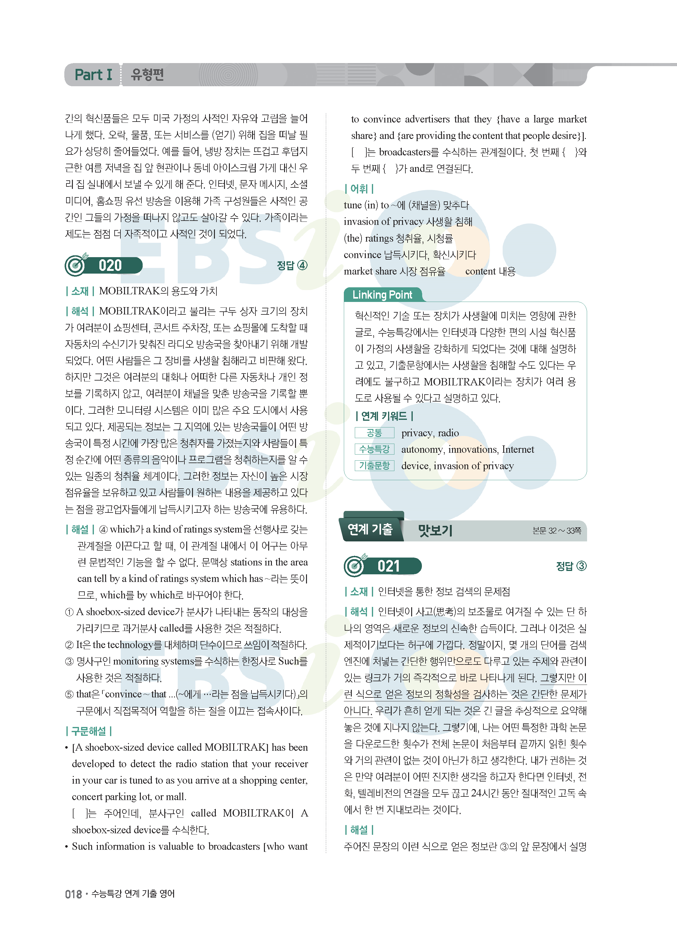 EBS 2022학년도 수능특강 연계 기출 영어 답지 해설 바로보는 사진답지 모바일최적화