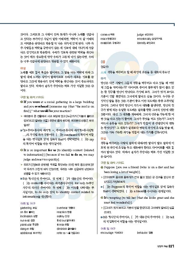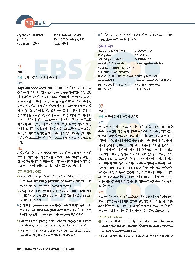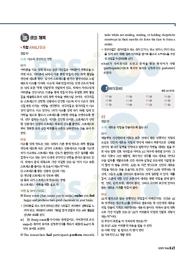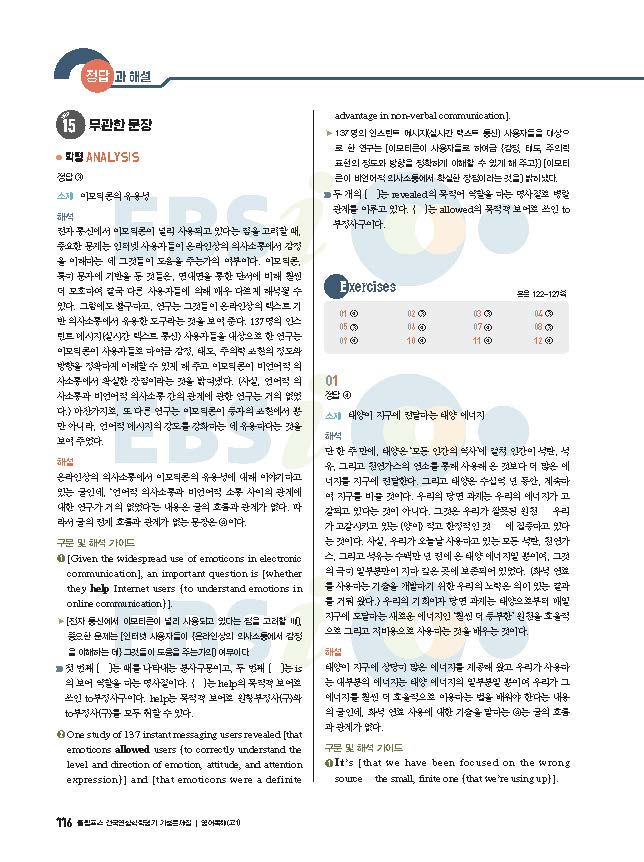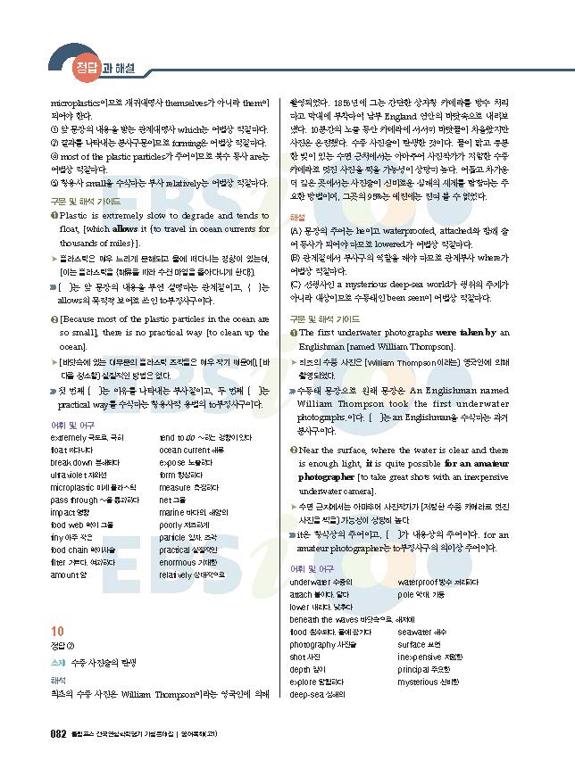 EBS 올림포스 전국연합 학령평가 기출문제집 영어독해 고1 빠른답지 사진답지 해설지 모바일최적화