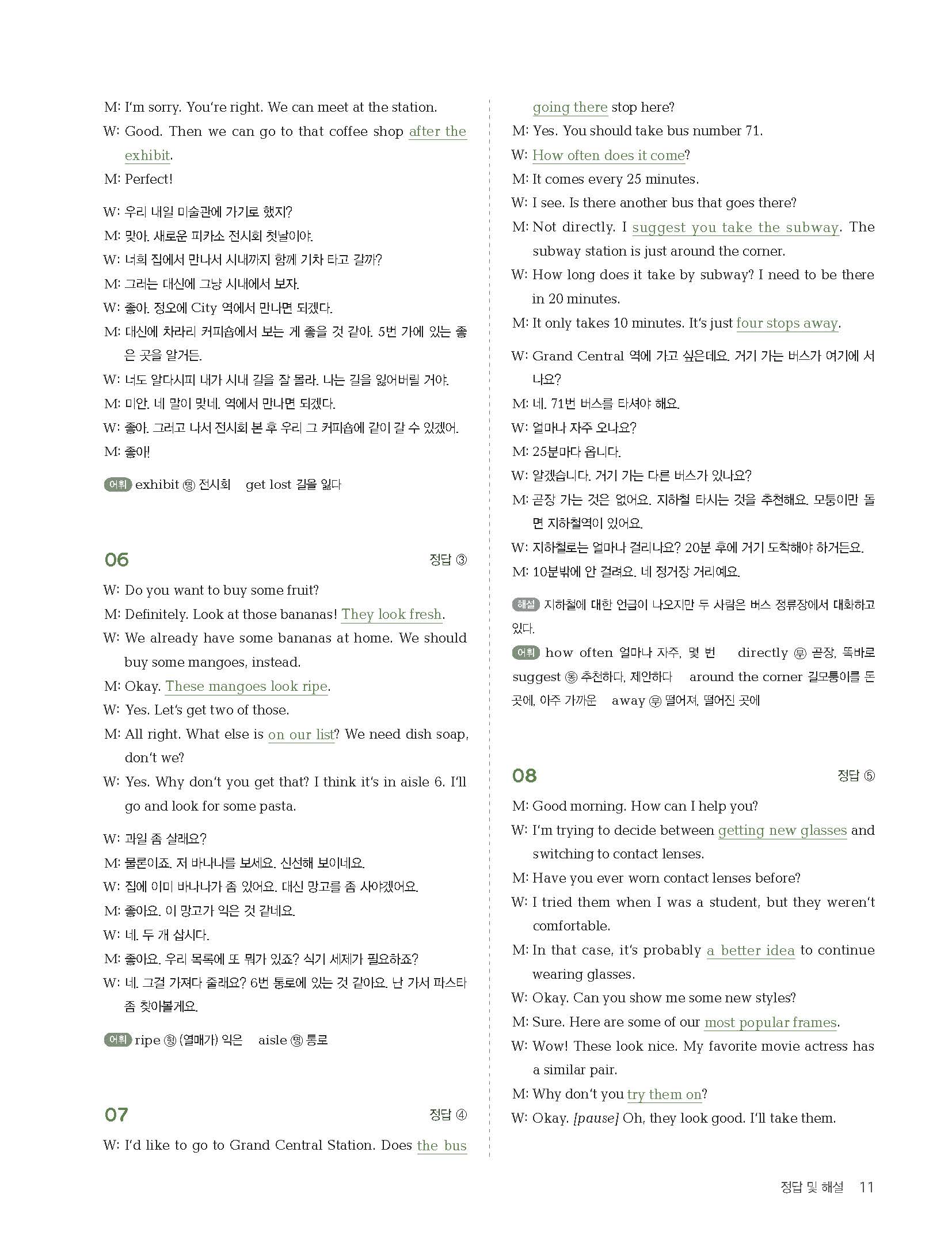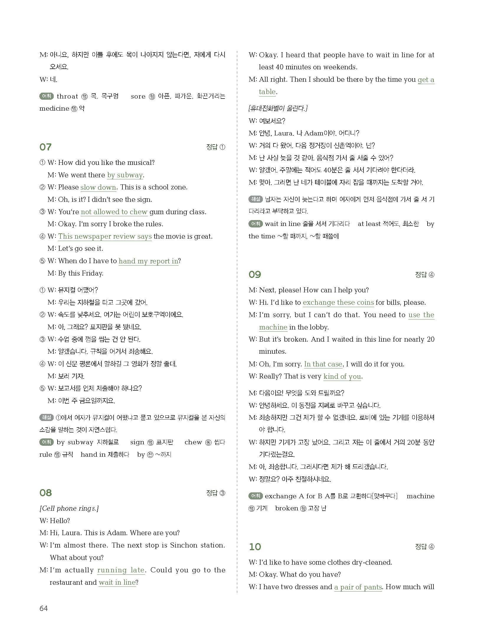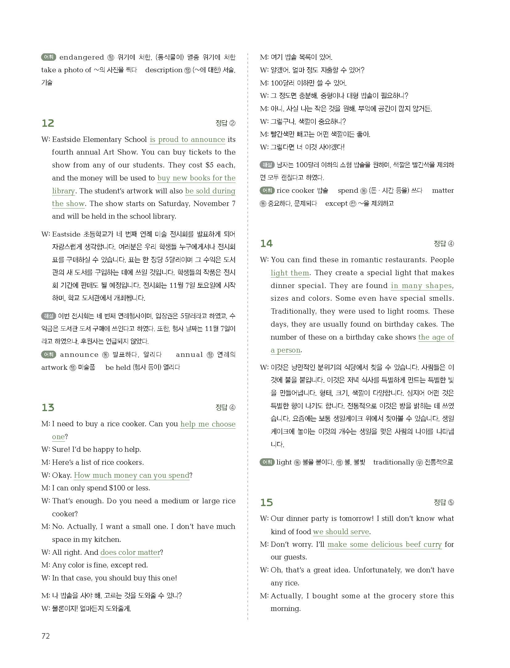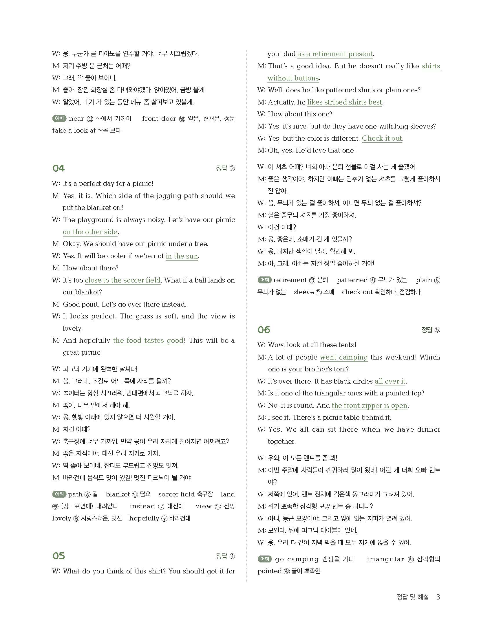 1316팬클럽 듣기 Level 3 답지 해설지 사진답지 빠른답지 모바일최적화